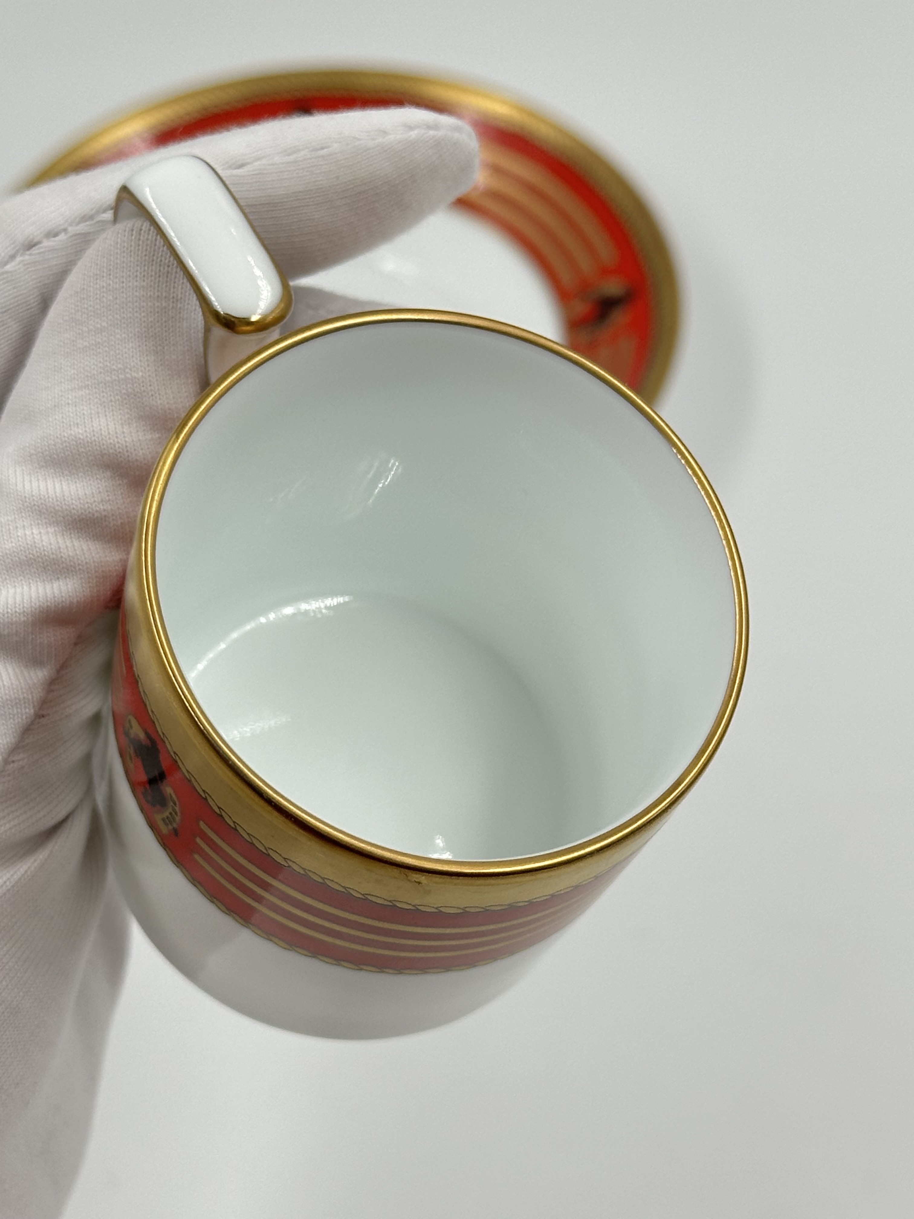 Фарфор. Диаметр блюдца 12,5см. Объём чашки 90мл.