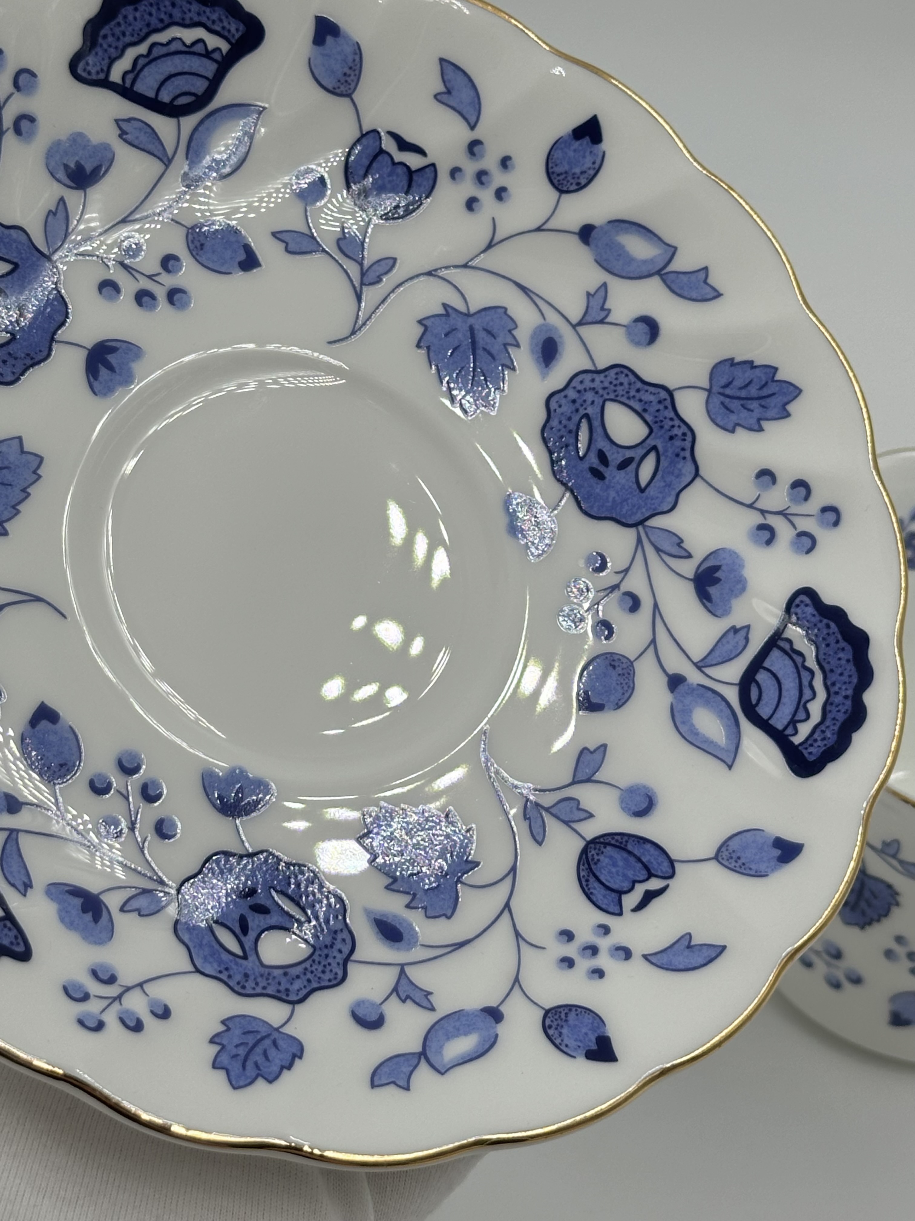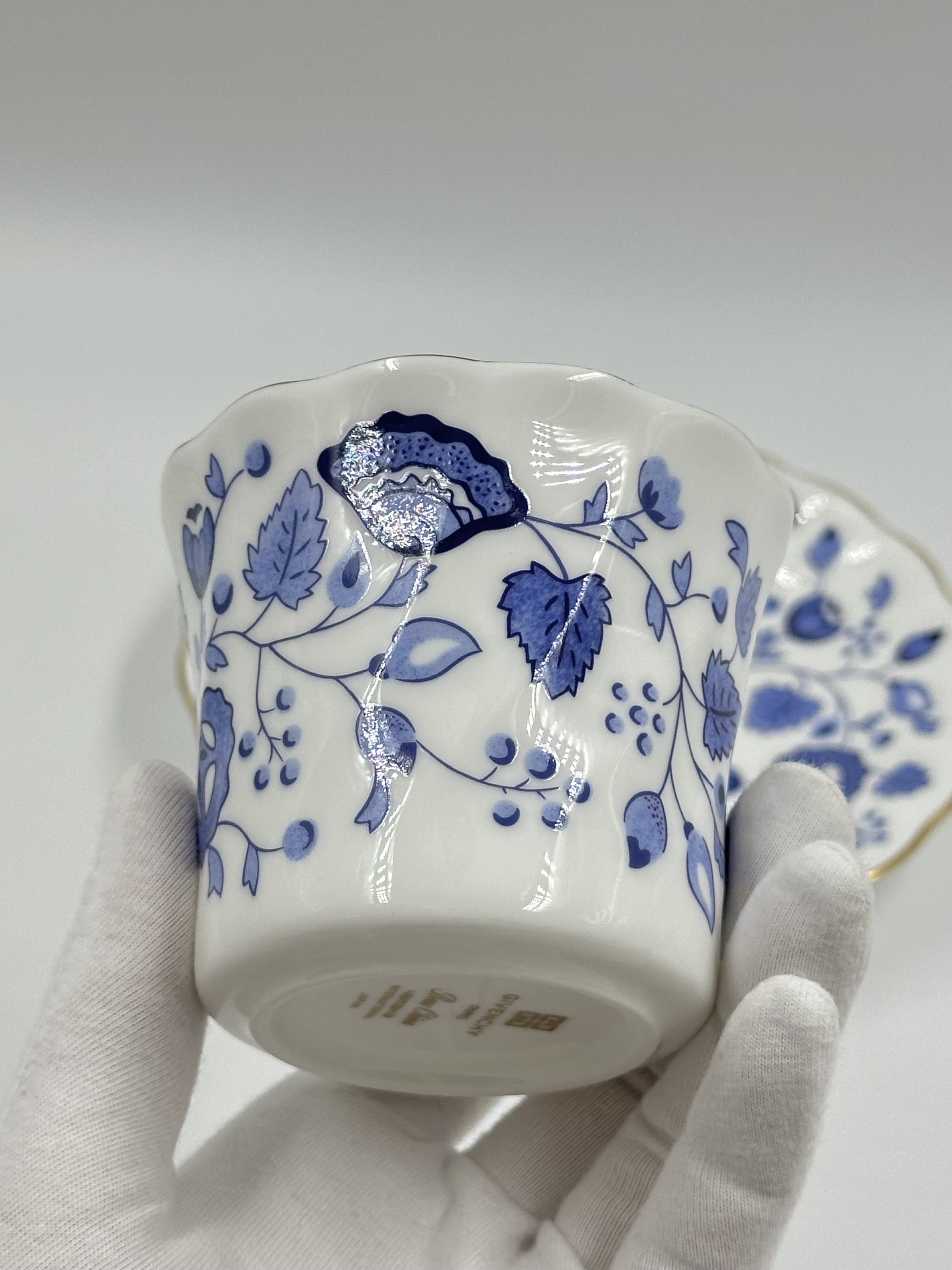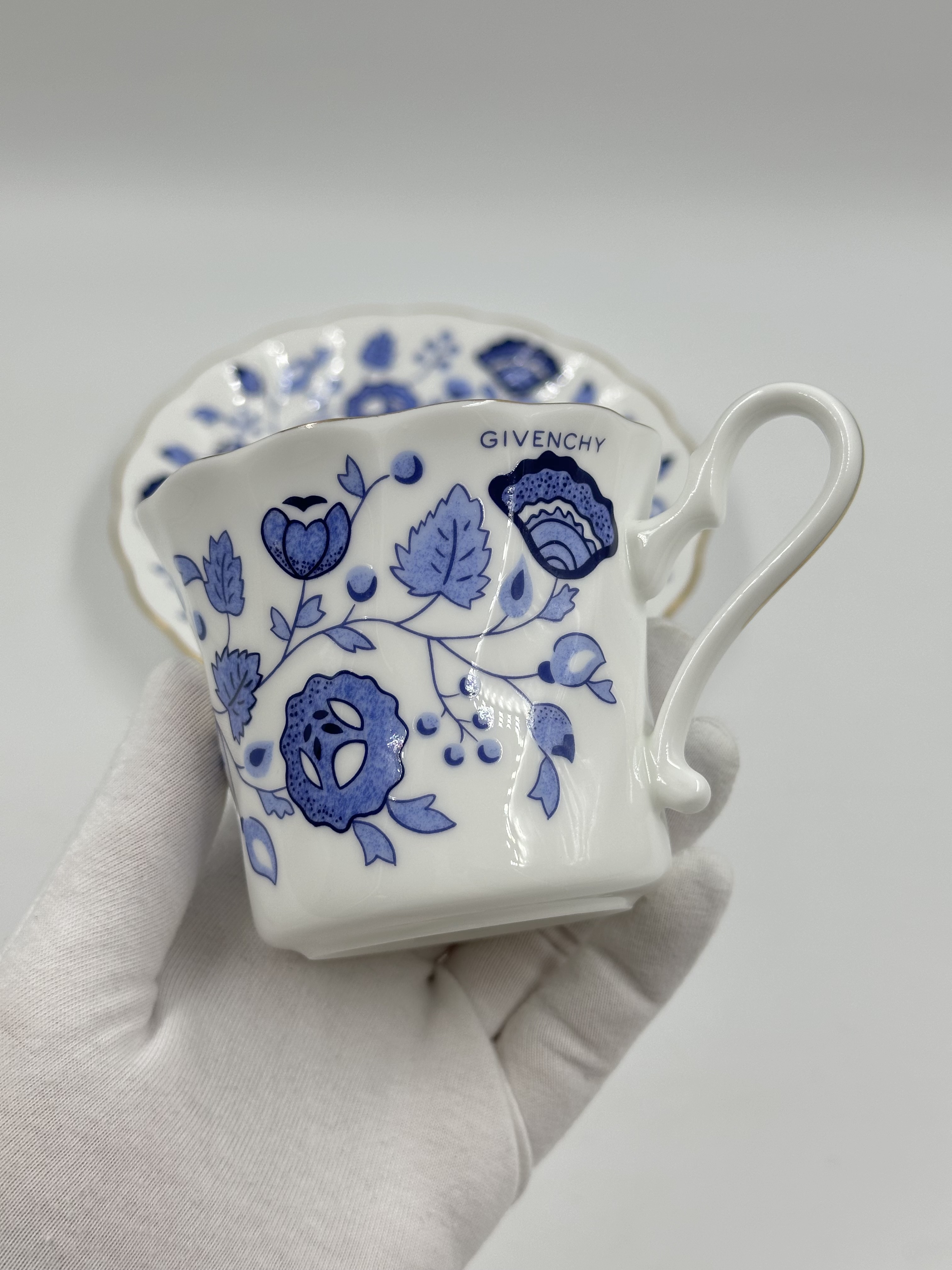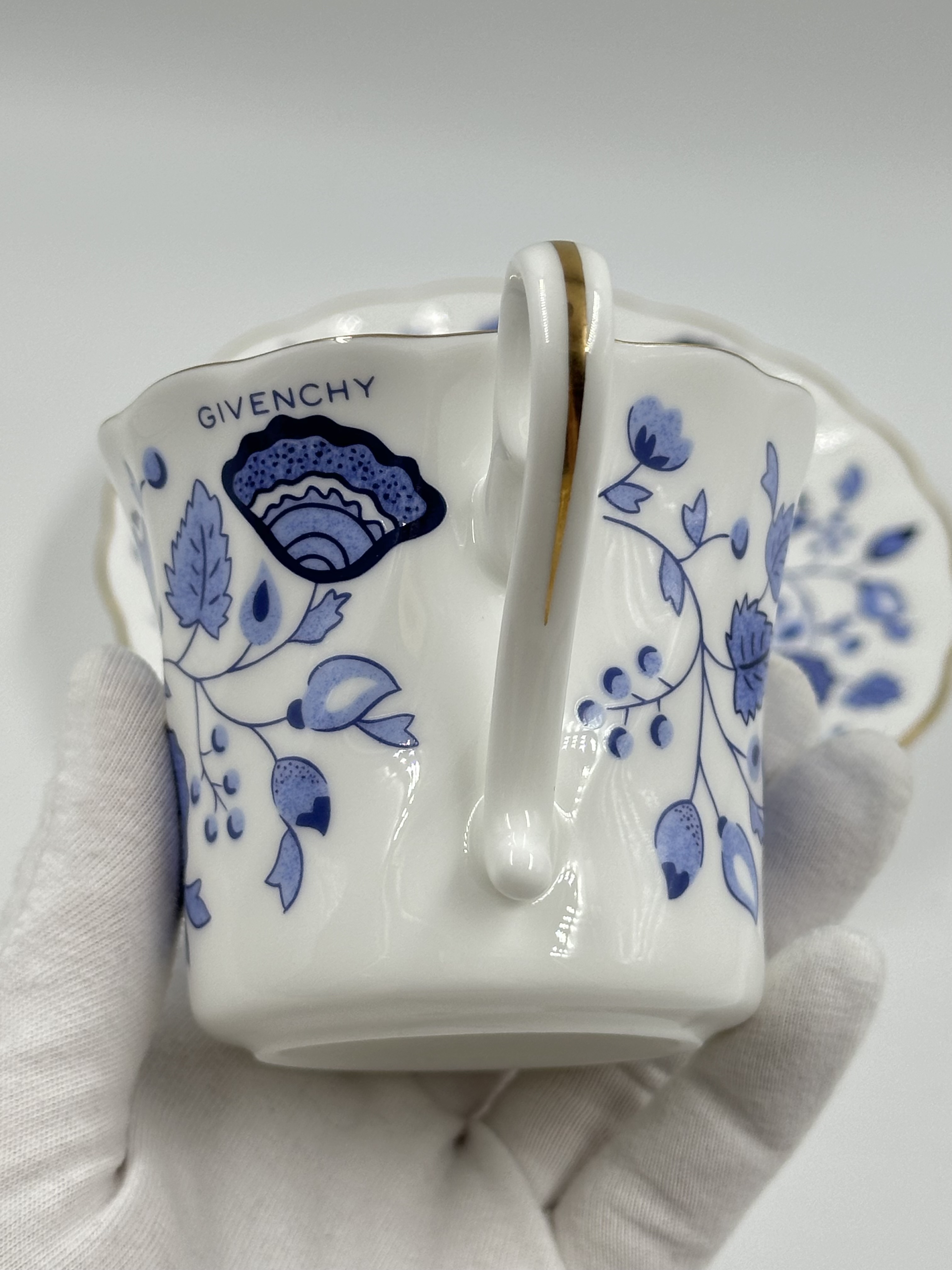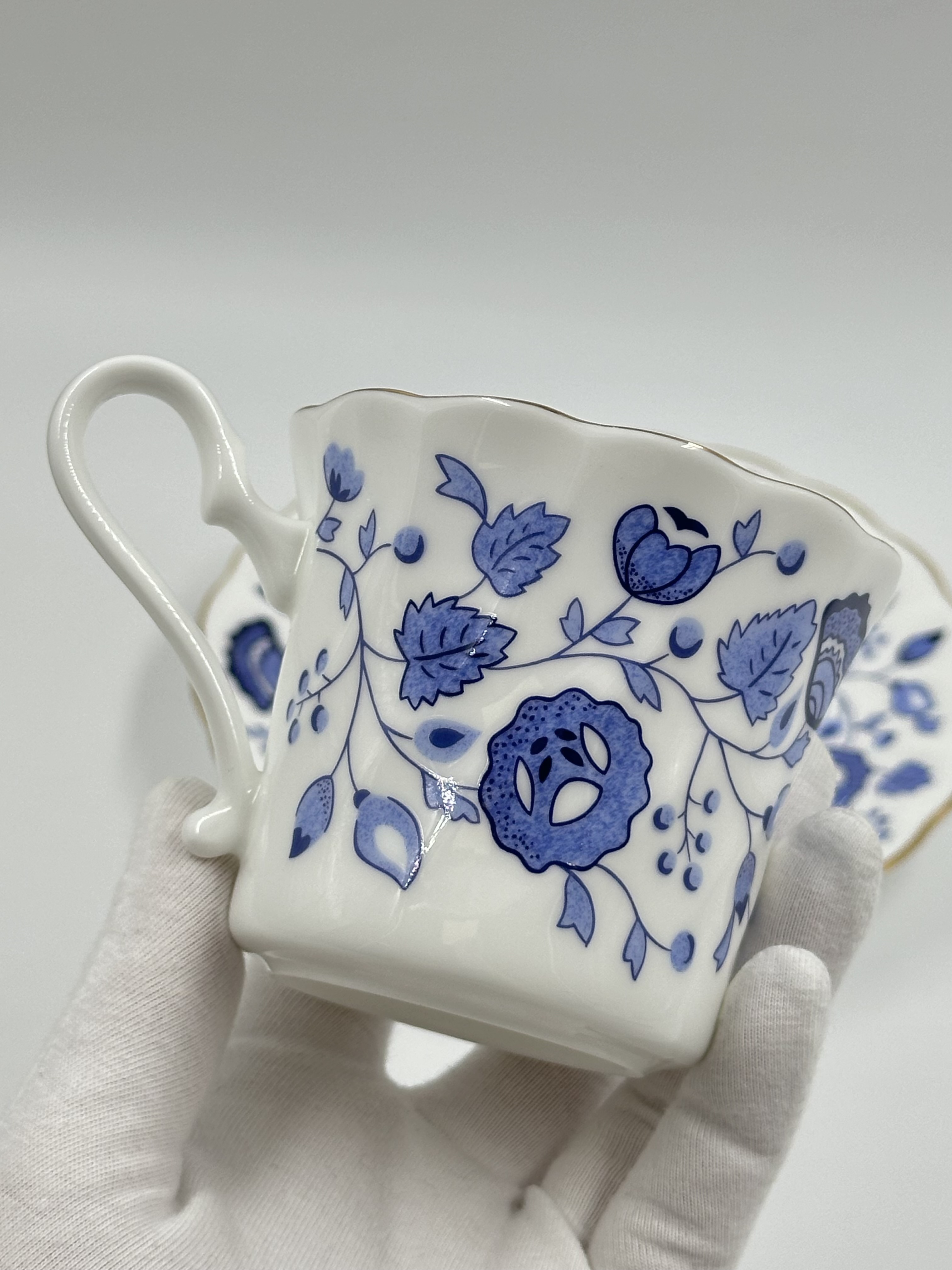 Фарфор. Диаметр блюдца 15,2см. По краю чашки присутствуют небольшие потертости позолоты. Объём чашки 200мл. В наличии 2 пары, цена указана за 1.
