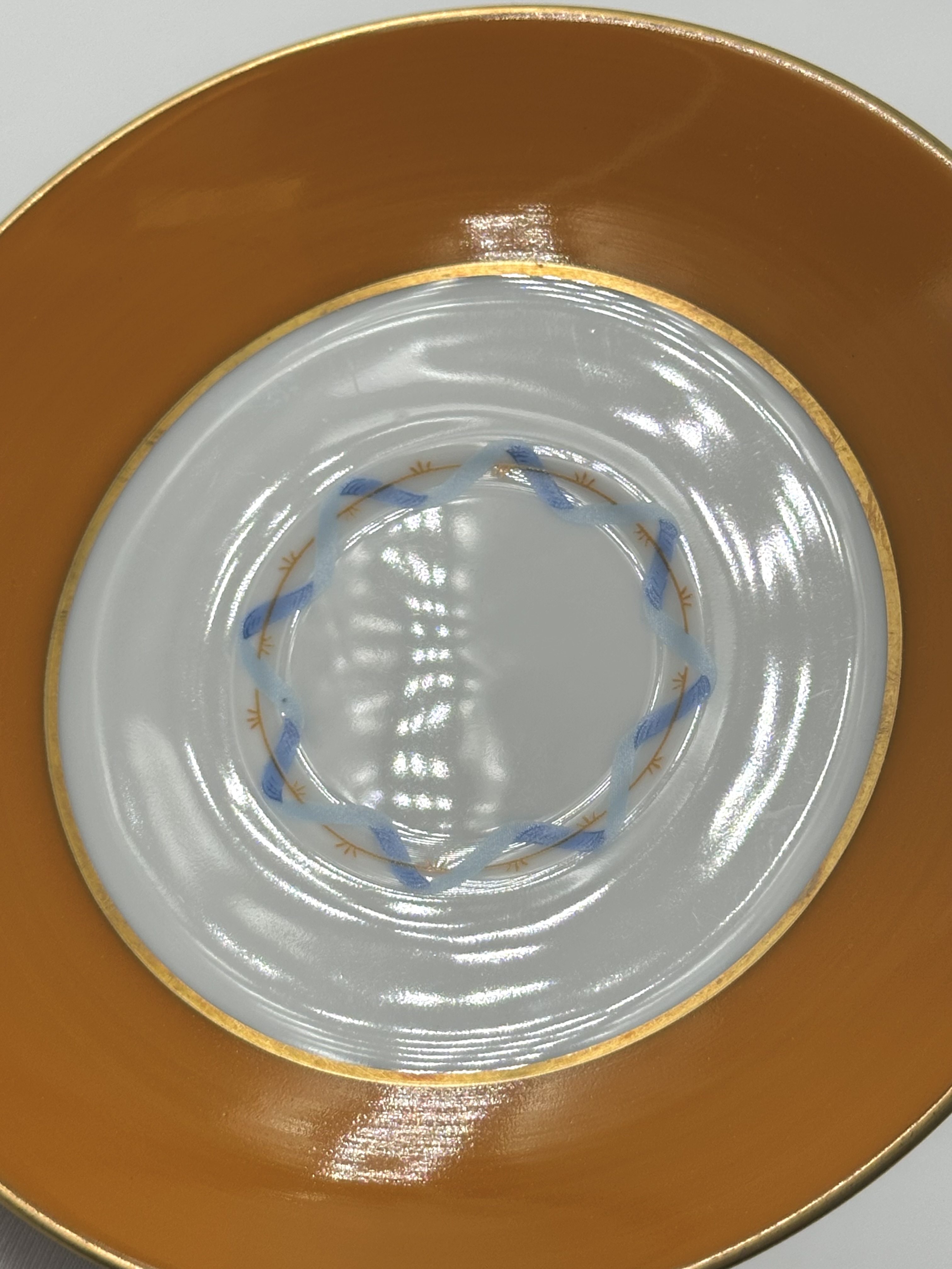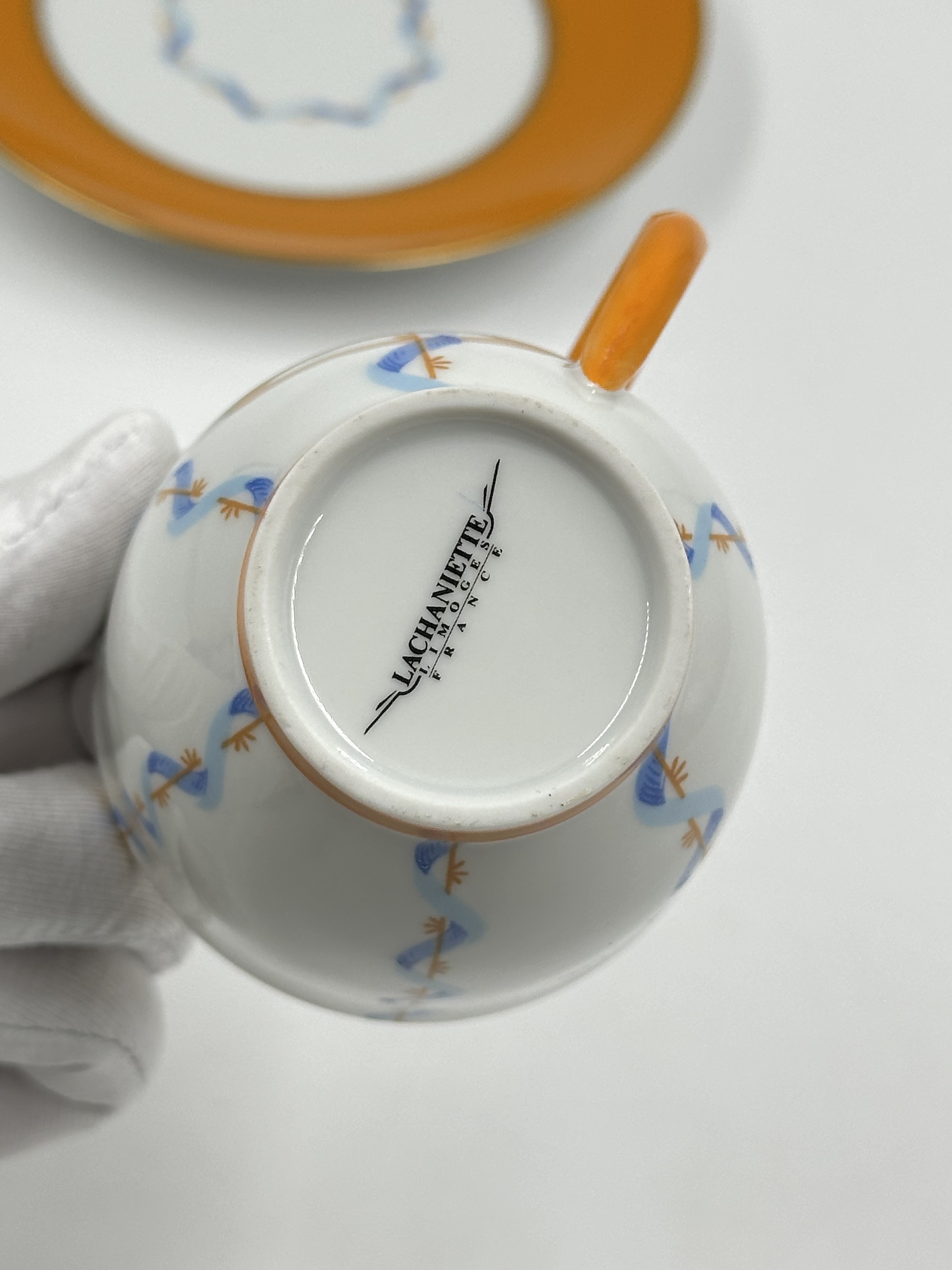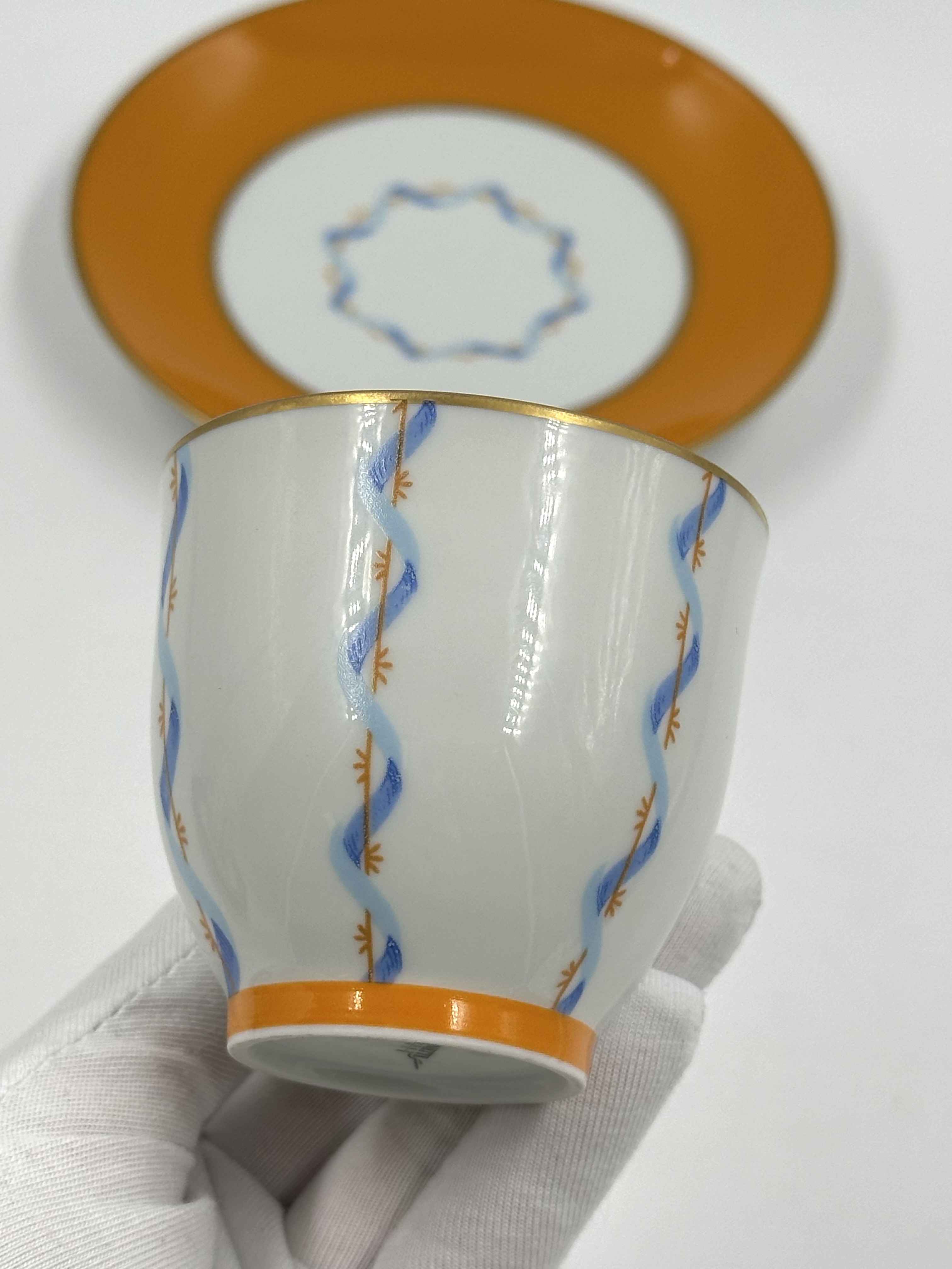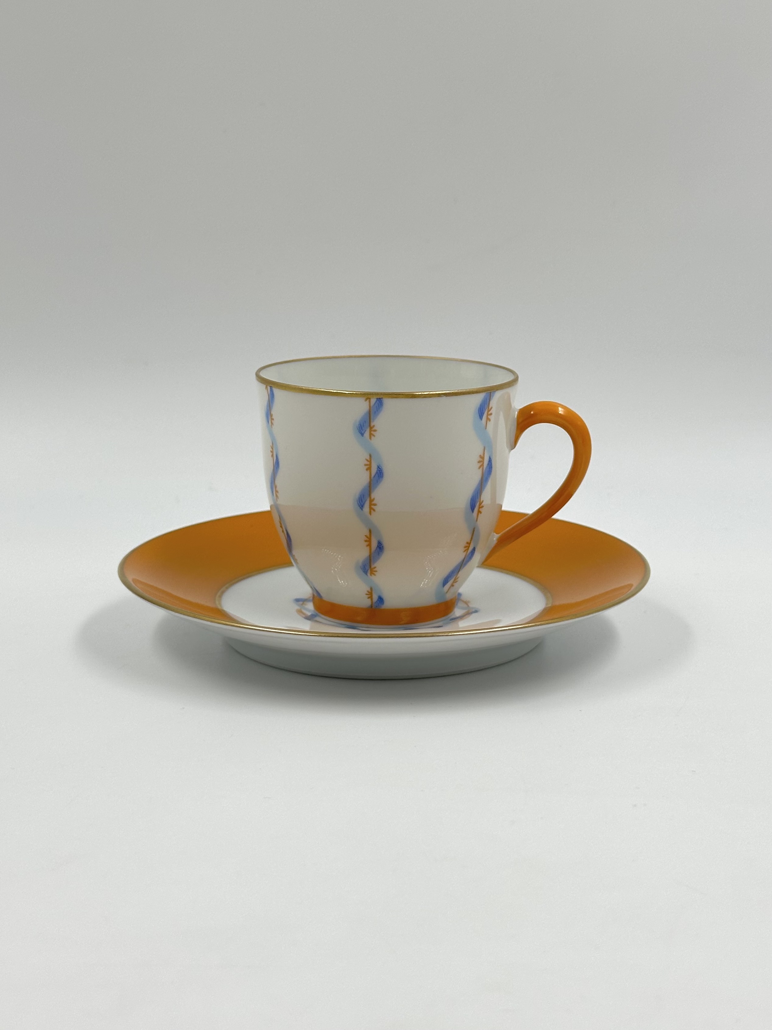 Фарфор, деколь. Диаметр блюдца 13,3см. Объём чашки 120мл.