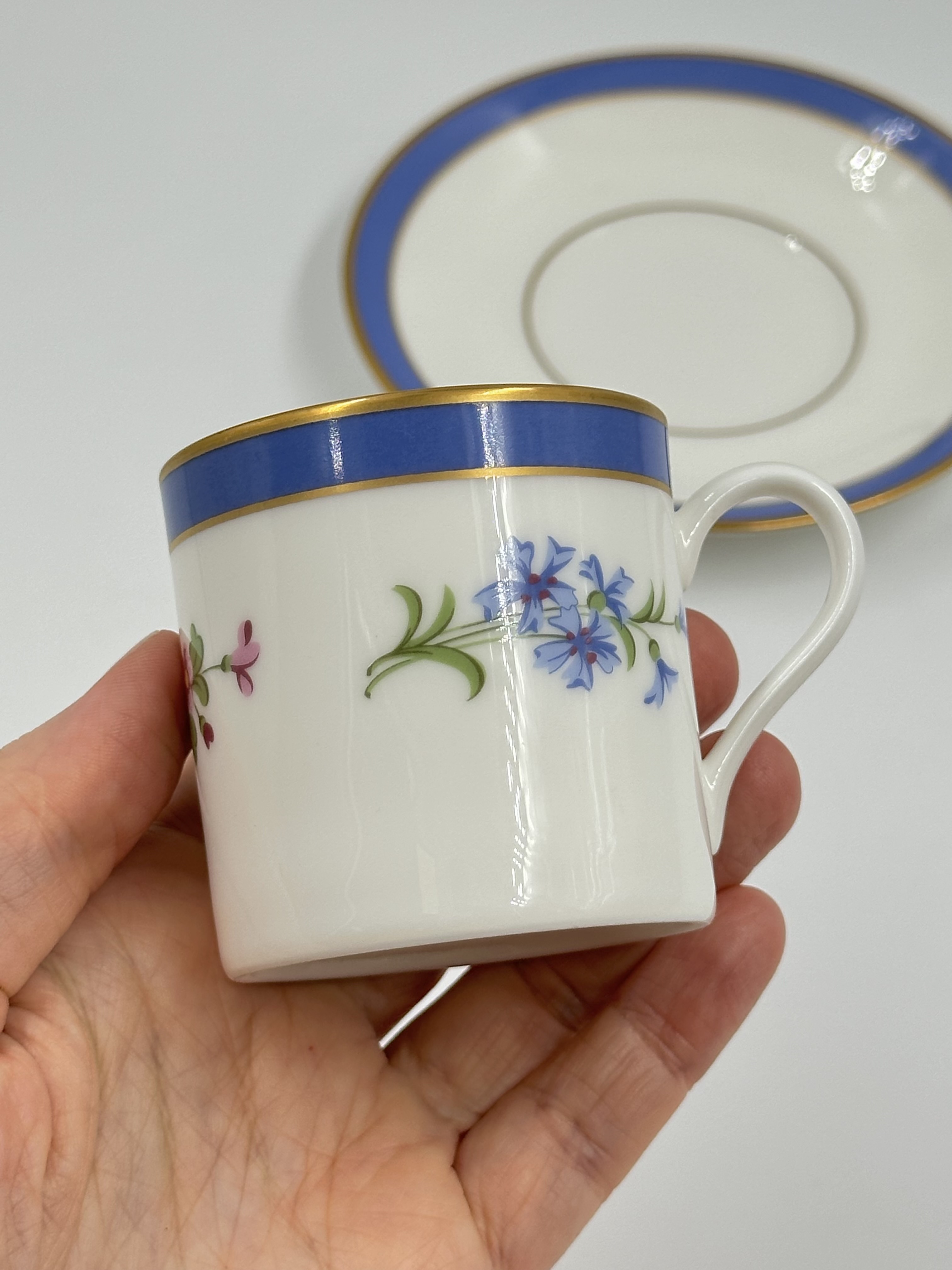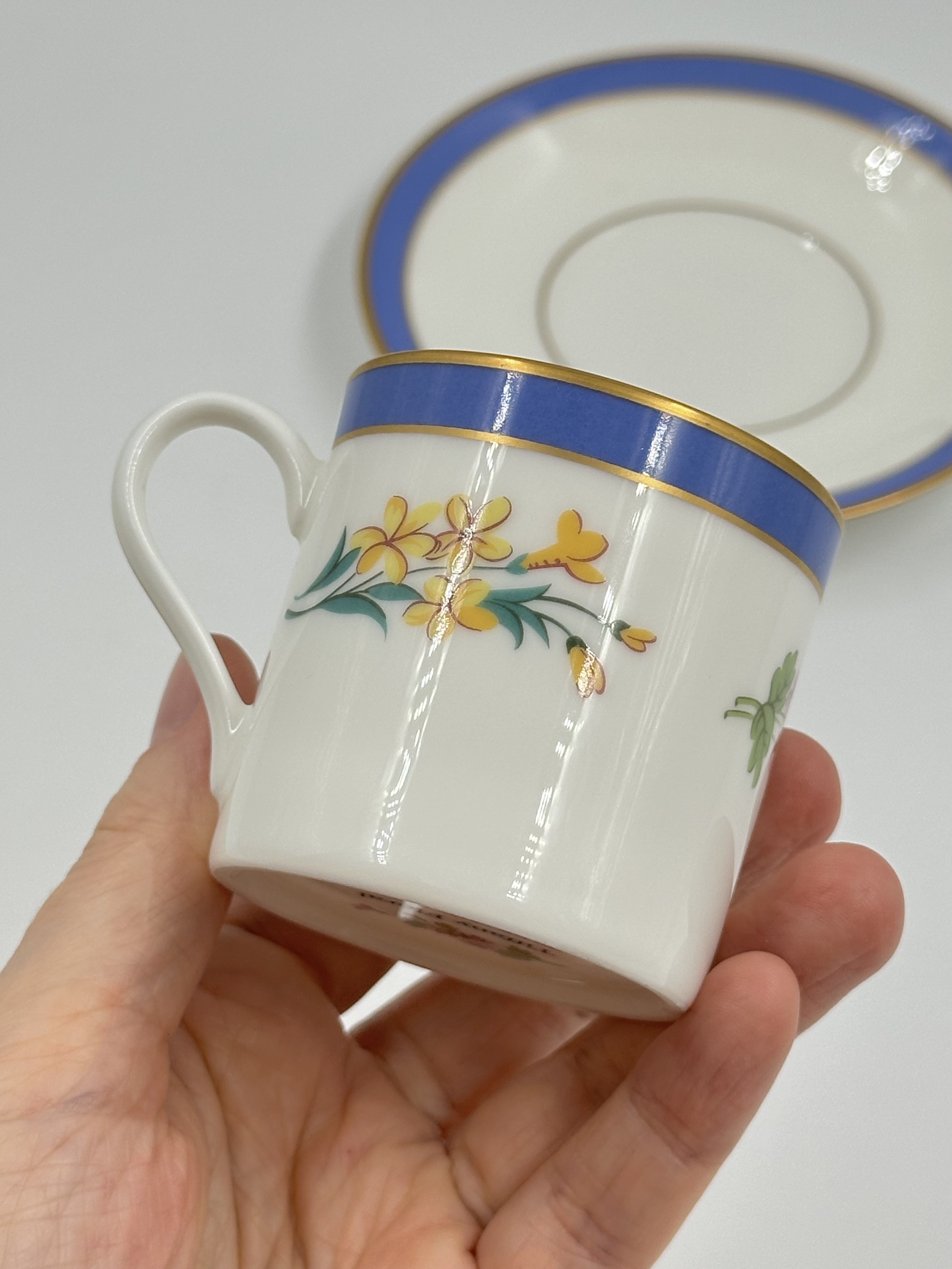 Фарфор. Диаметр блюдца 12см, объём чашки 100мл.