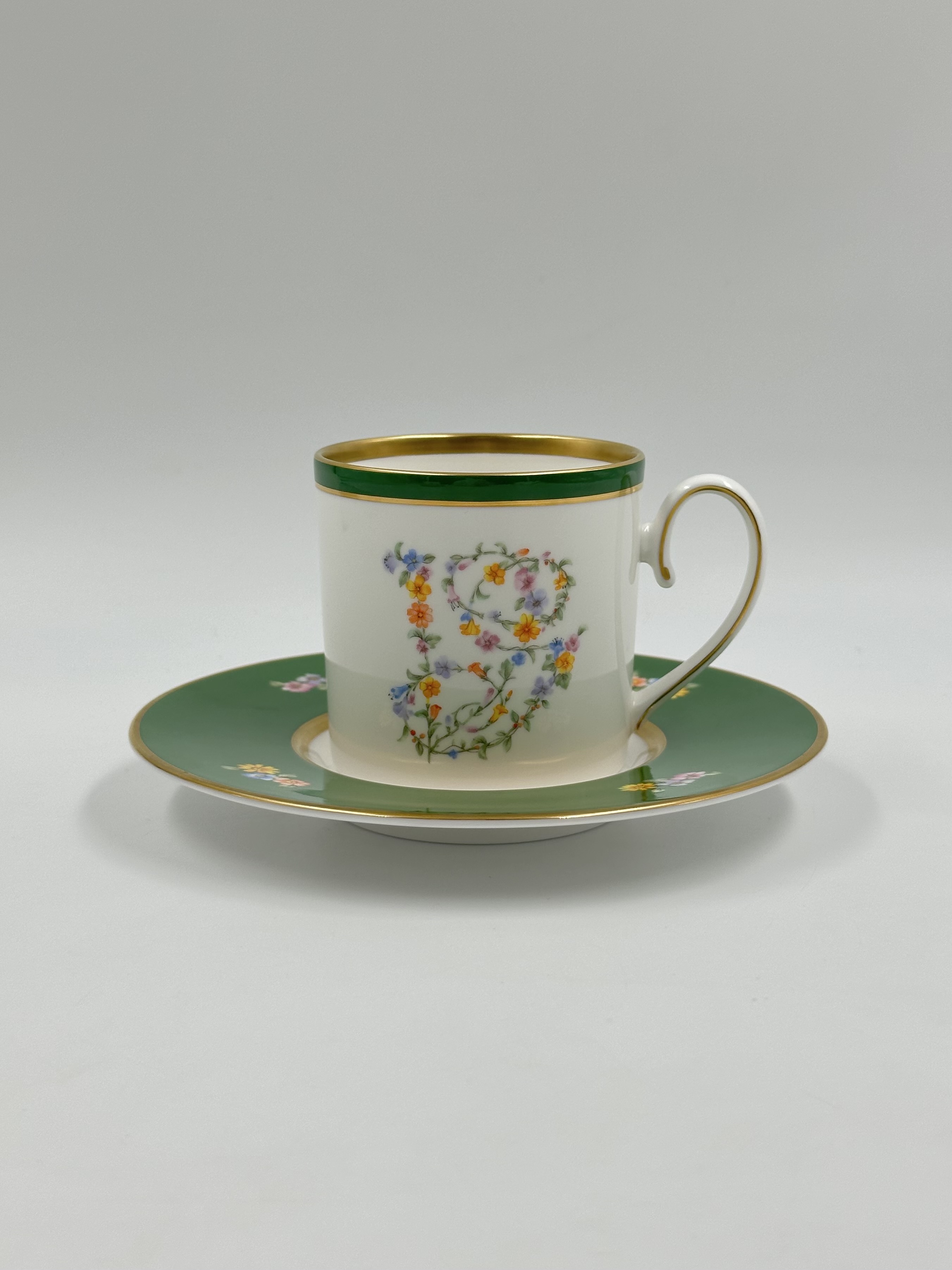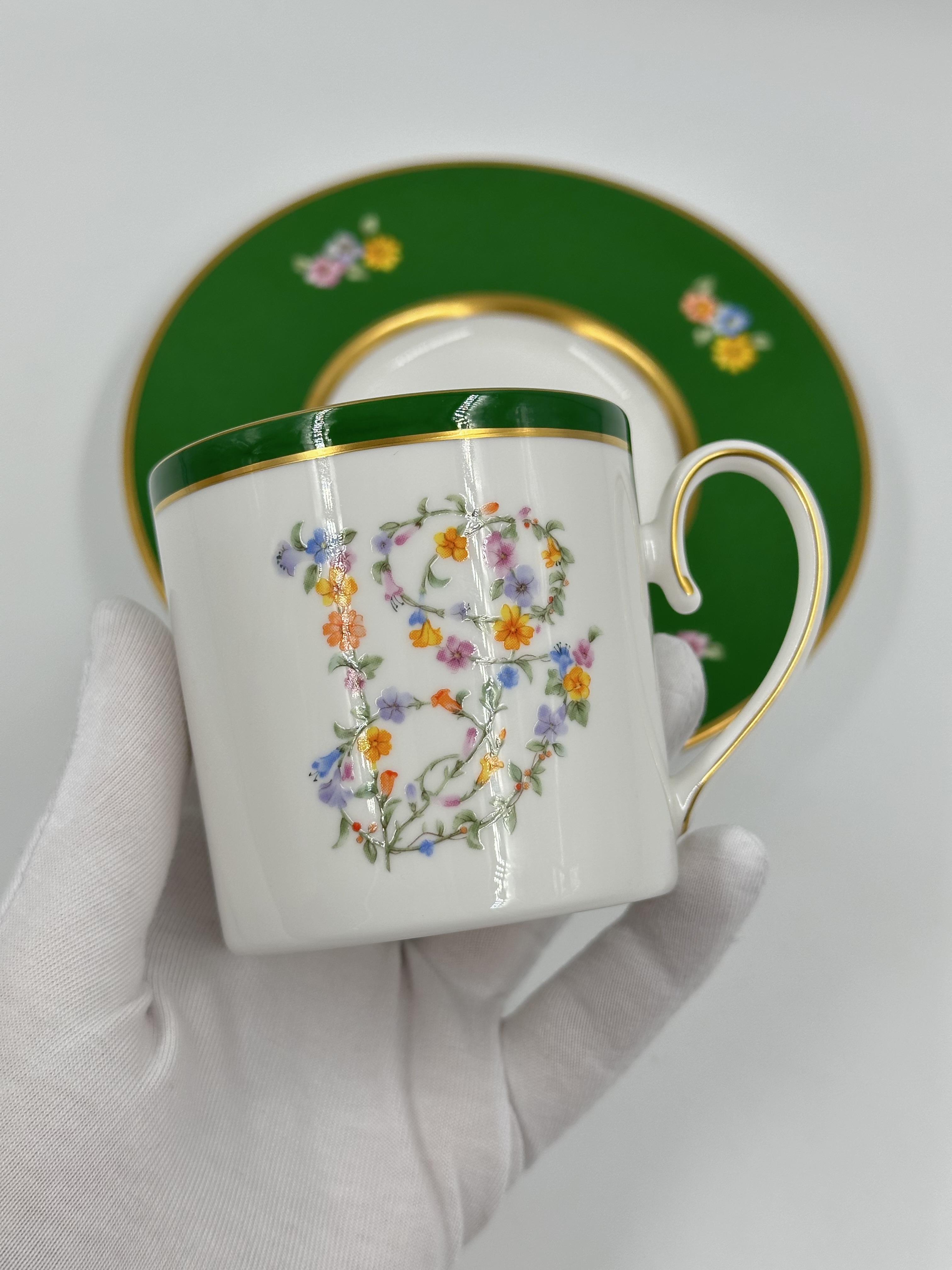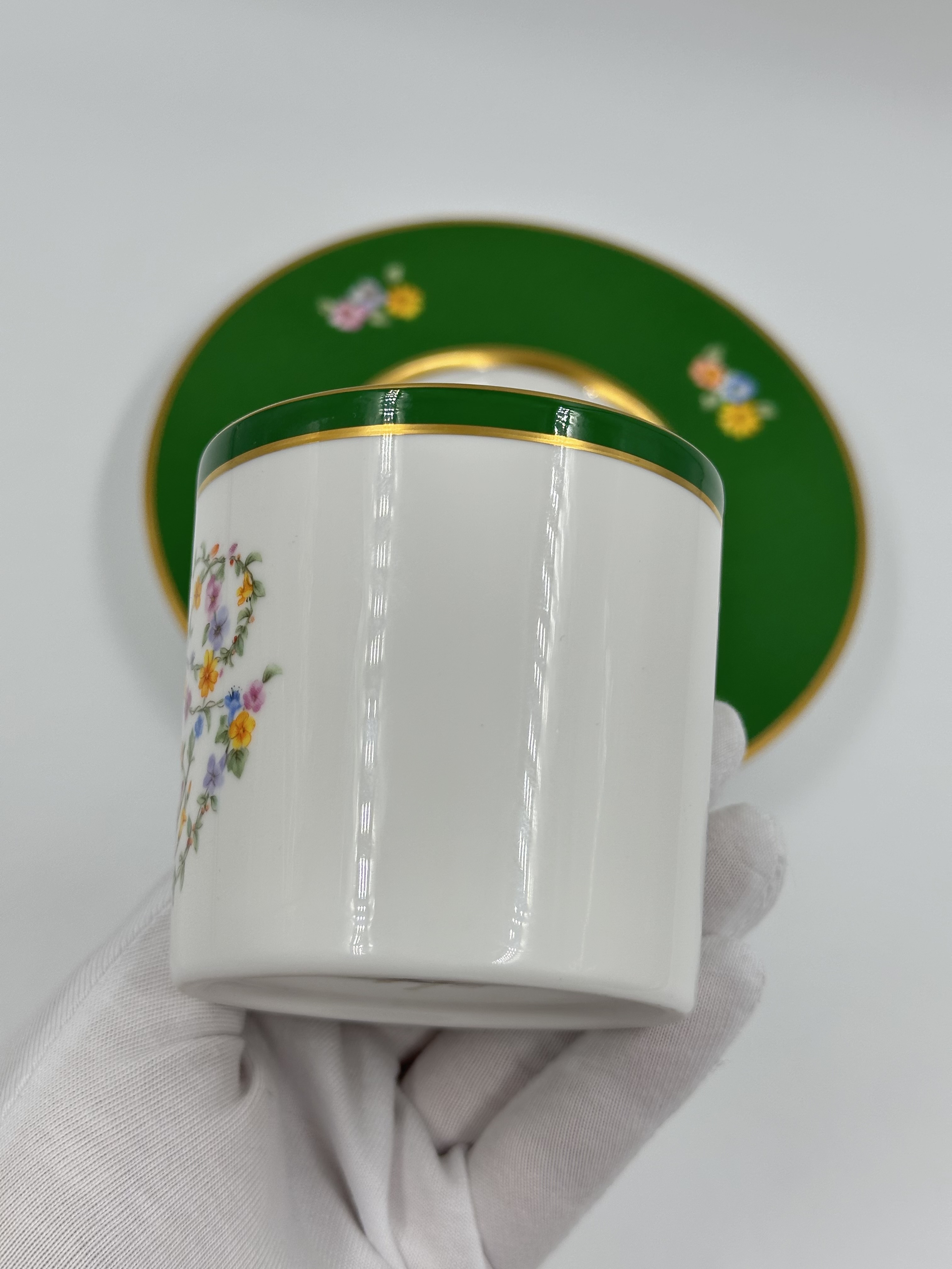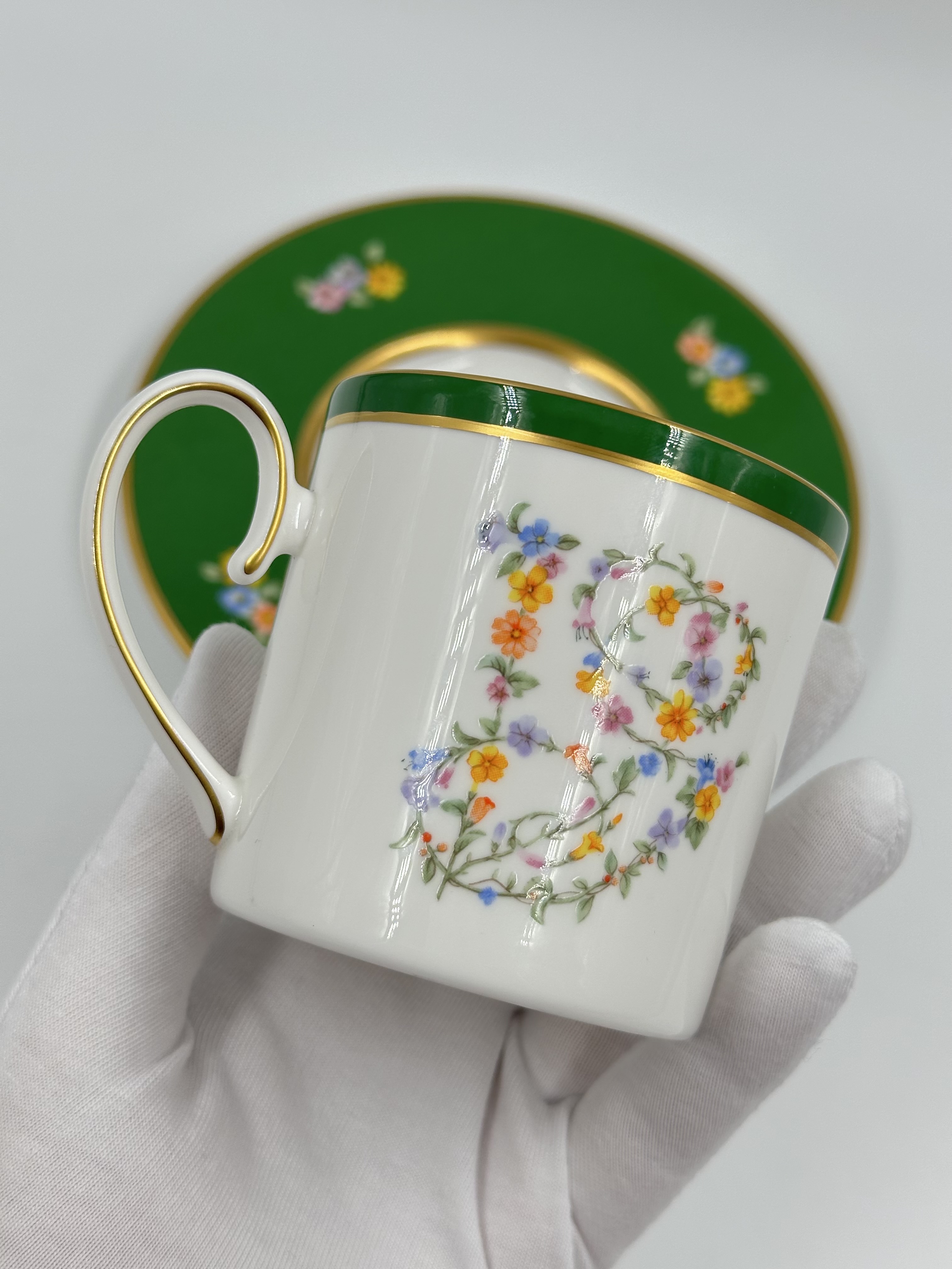 Фарфор. Диаметр блюдца 14,5см. Объём чашки 175мл. На блюдце небольшие царапины.