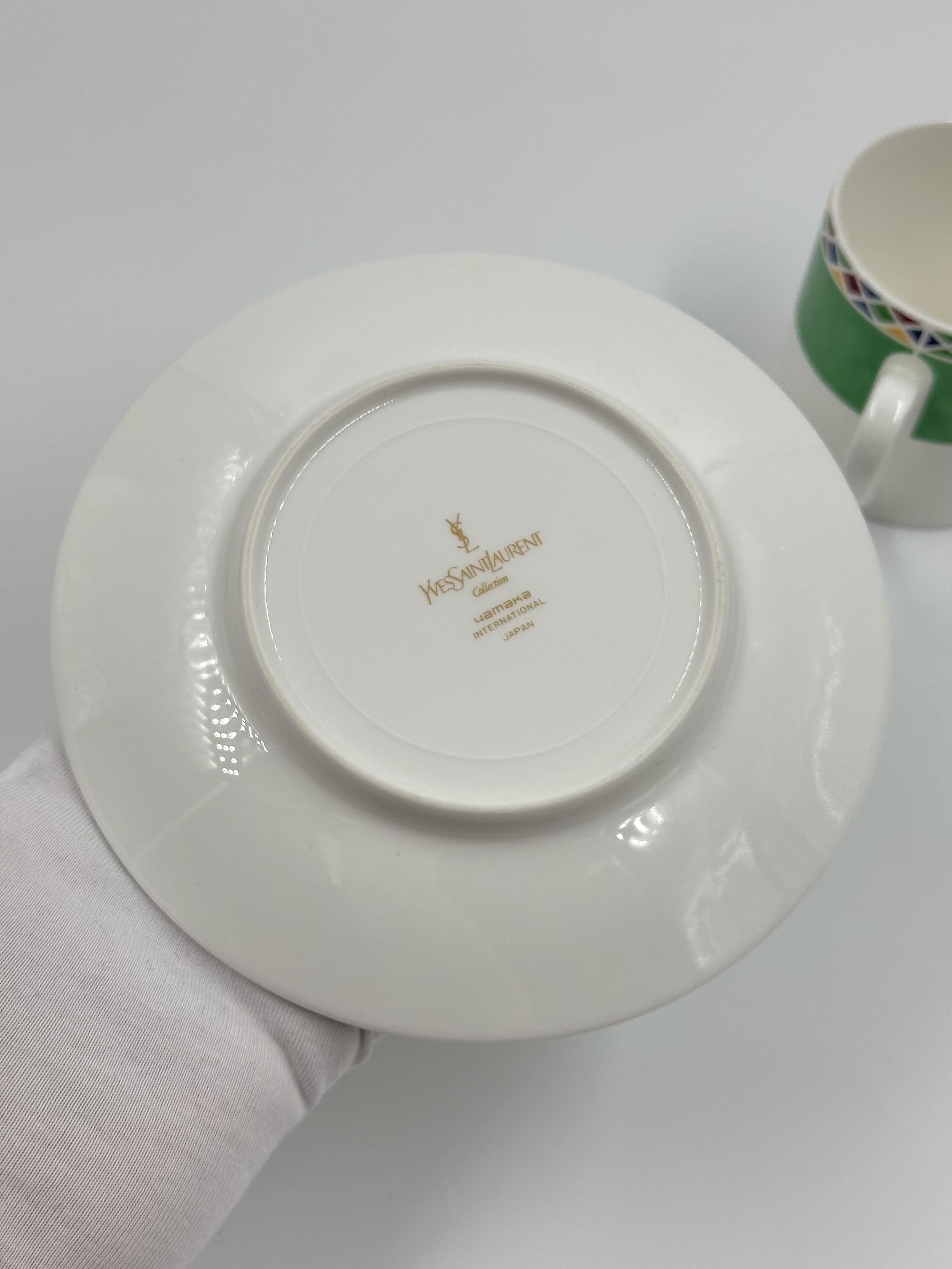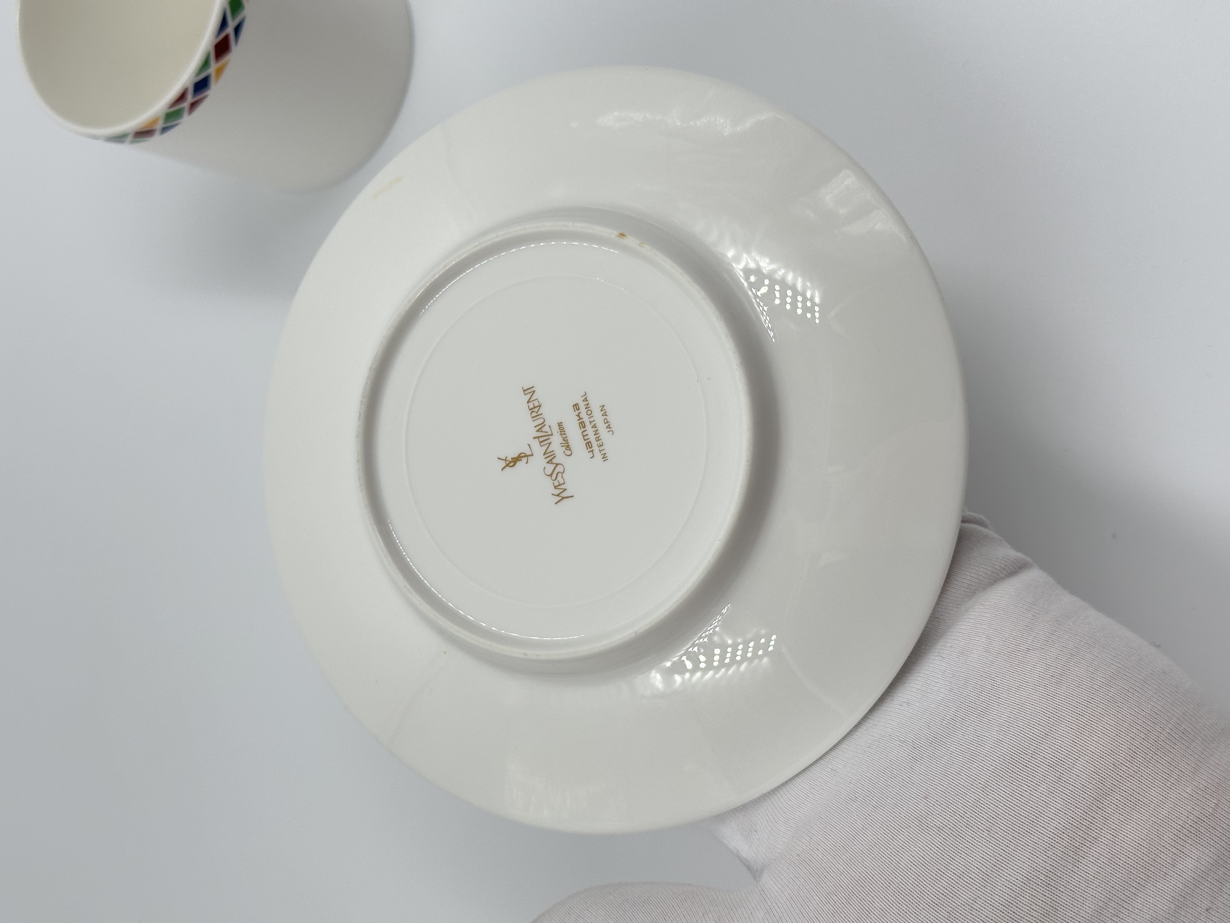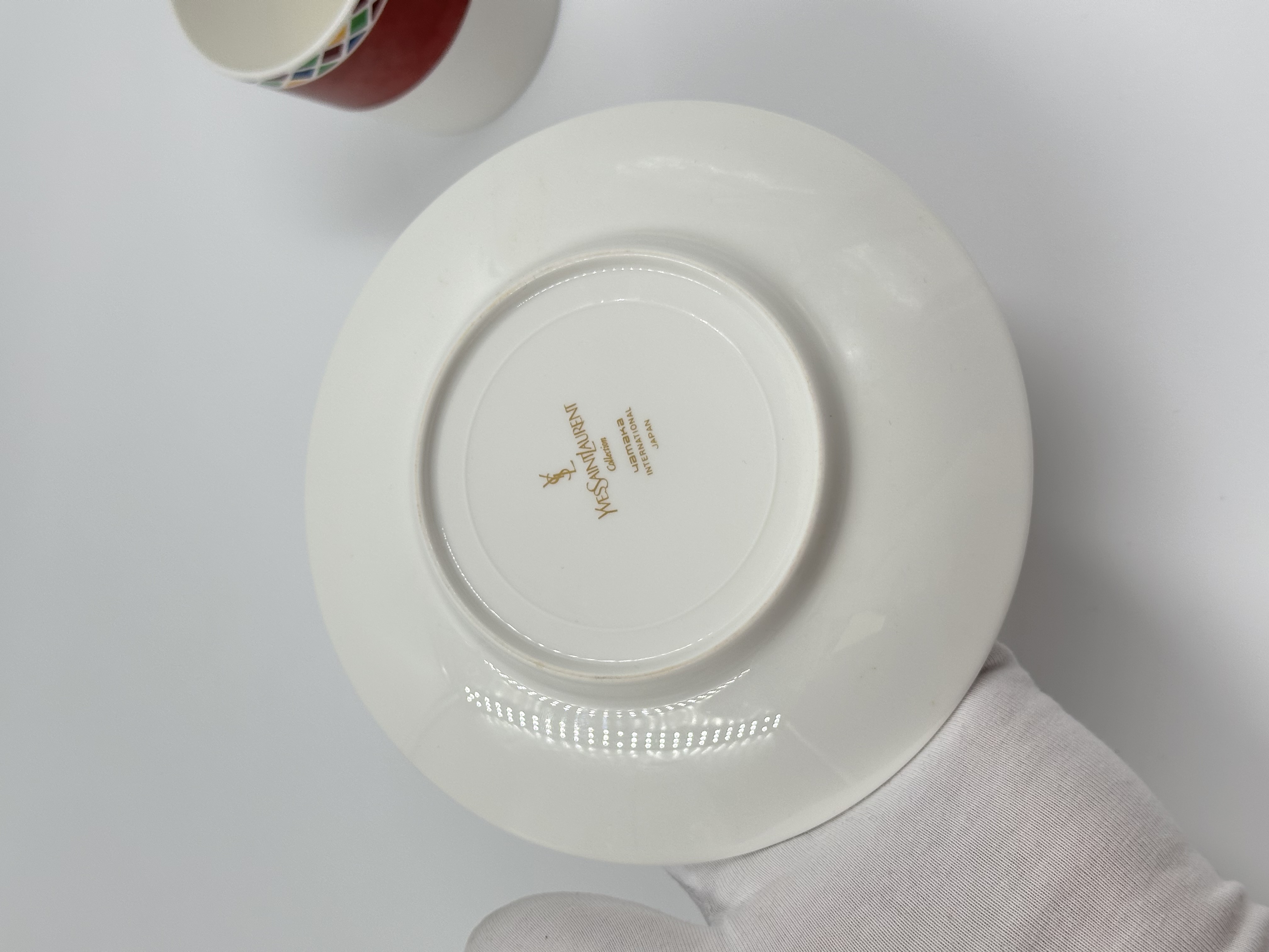 Фарфор. На блюдце присутствуют небольшие царапины.