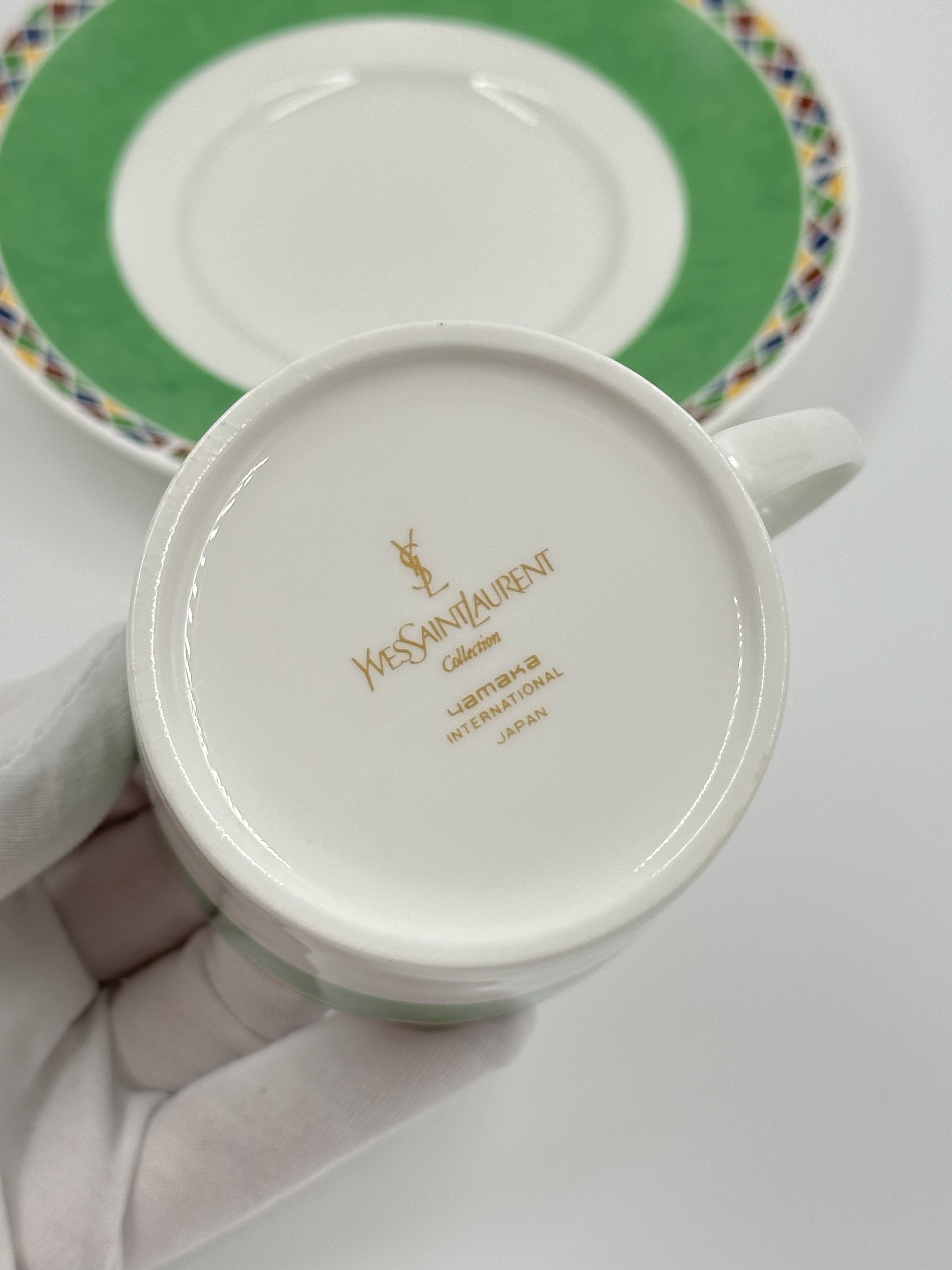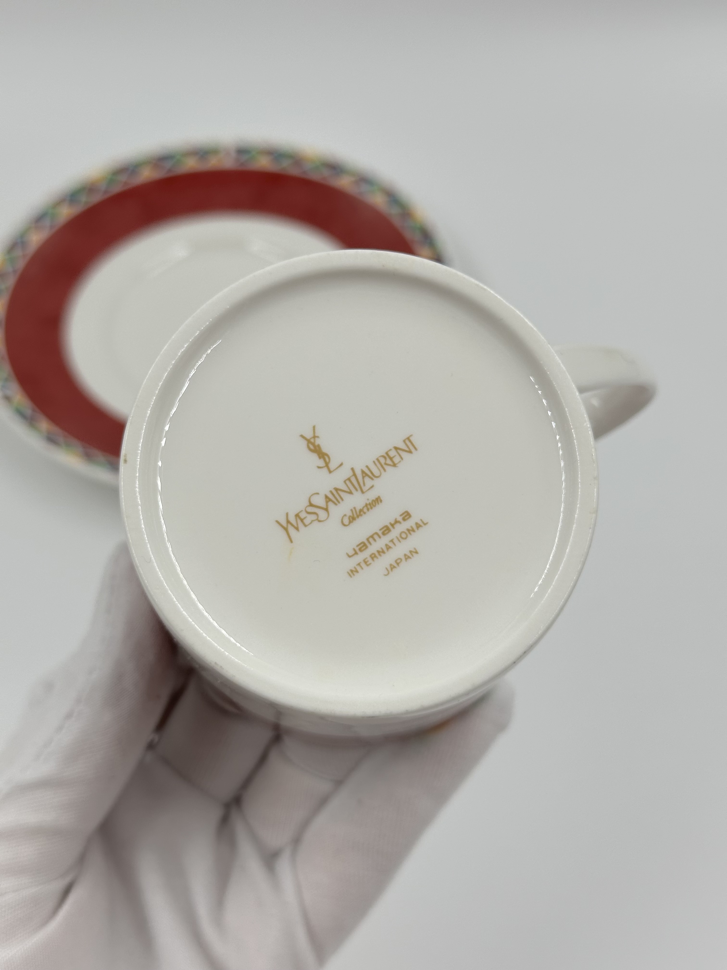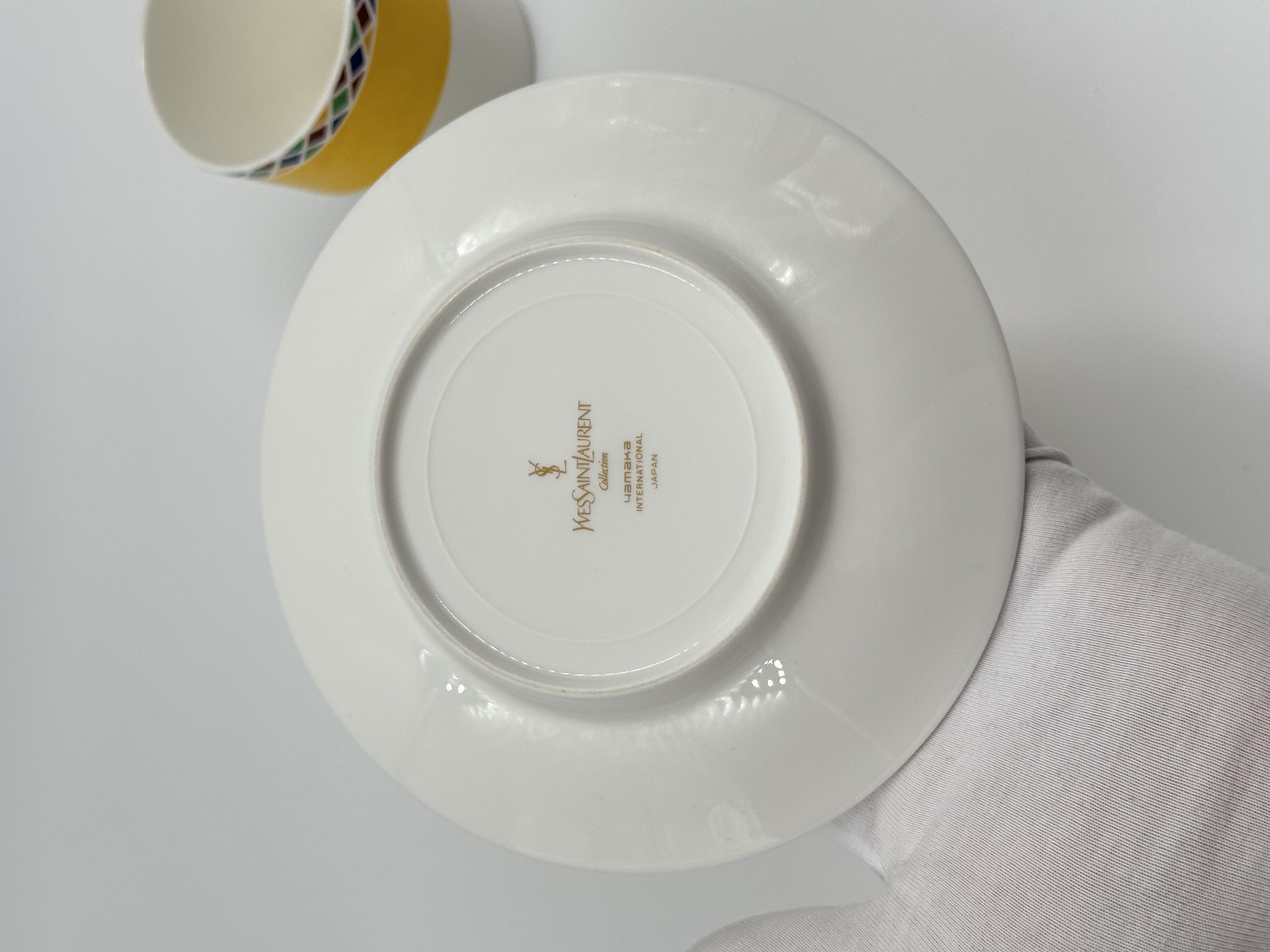 Фарфор. На блюдце присутствуют небольшие царапины.