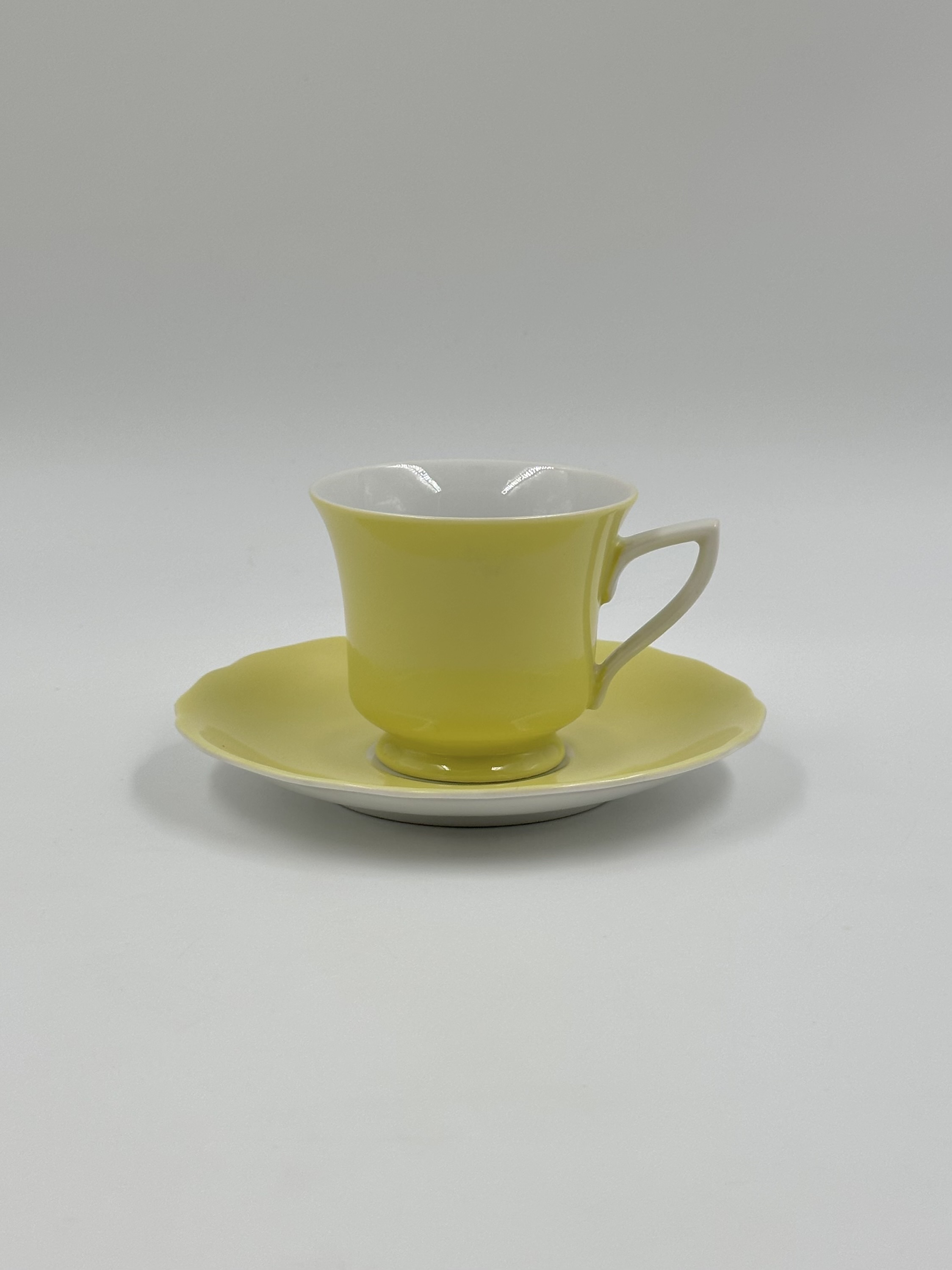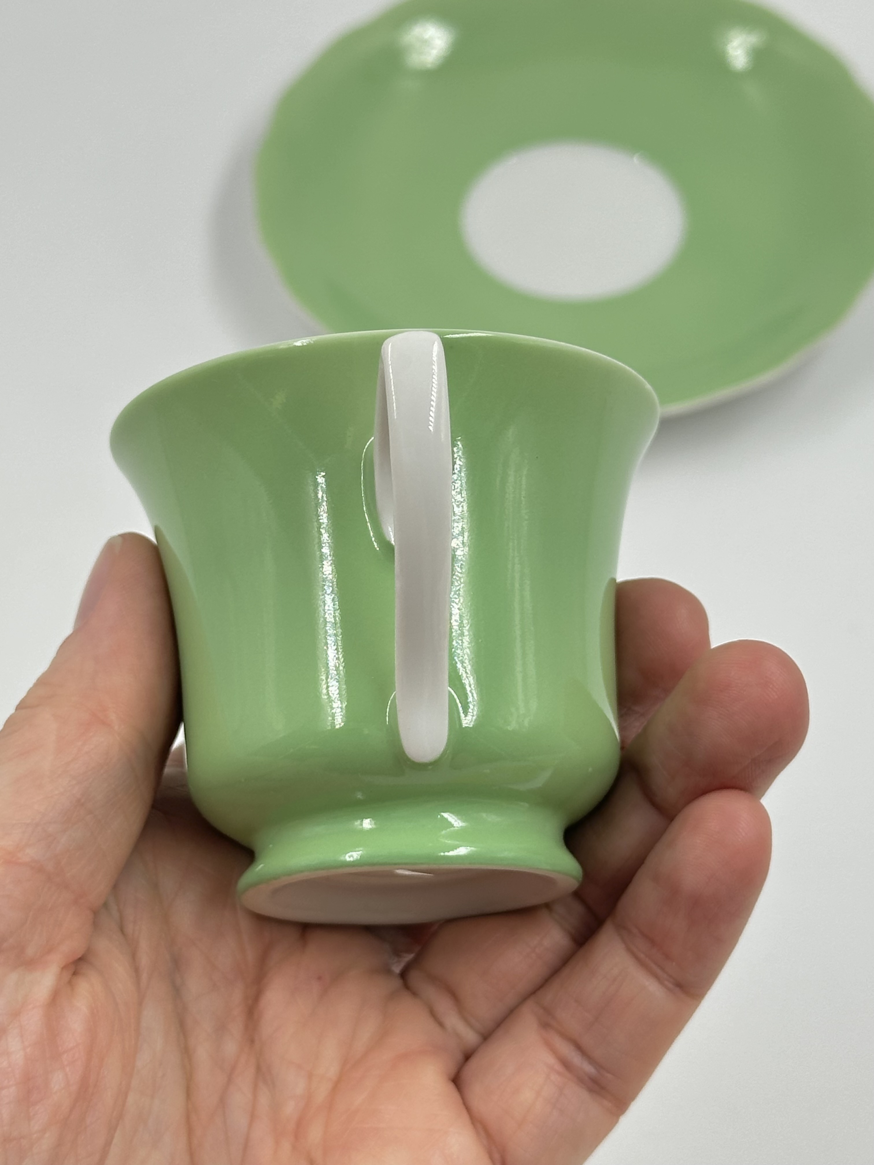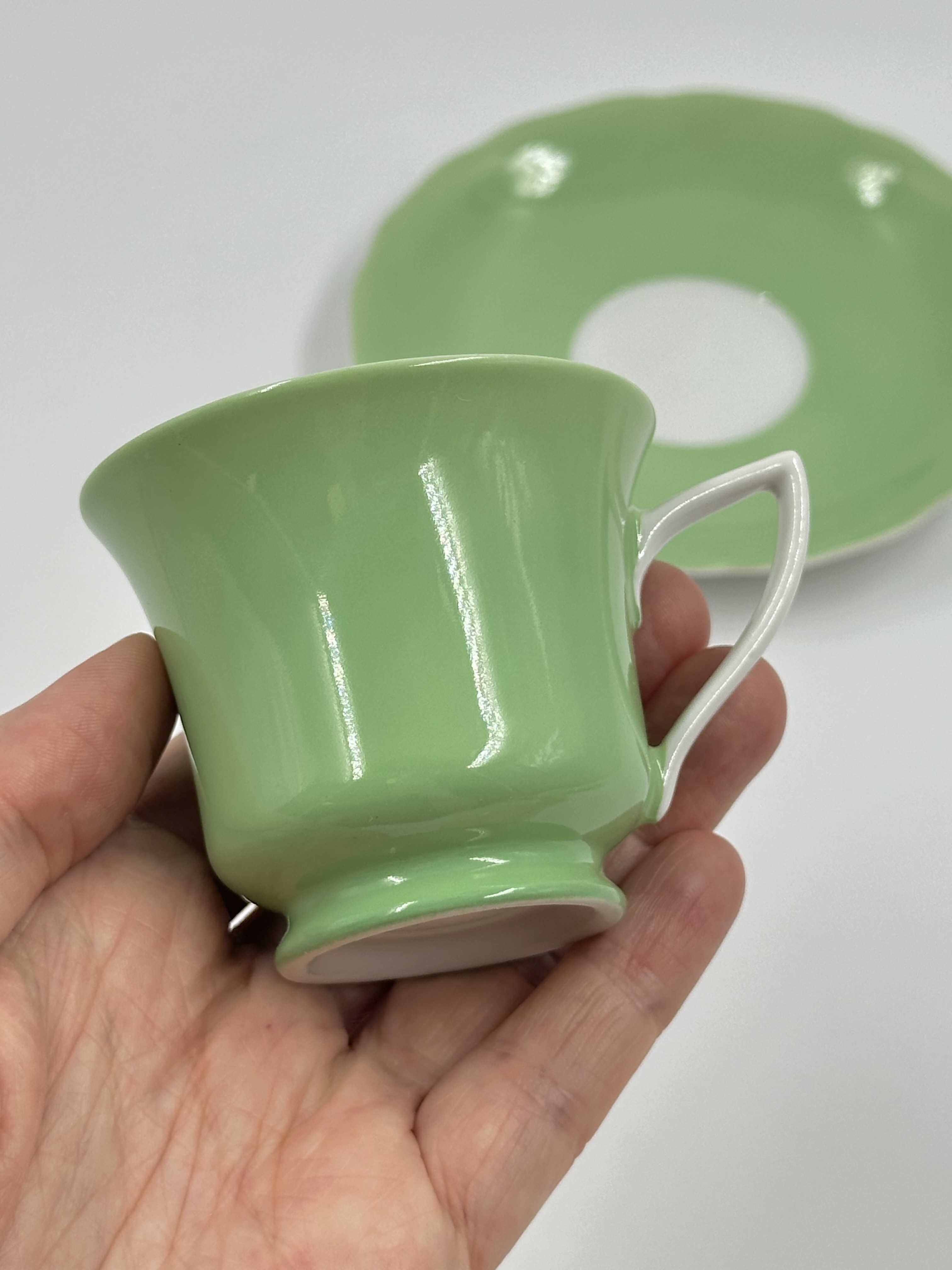 На дне чашки производственный дефект - частично отсутствует глазурь. Диаметр блюдца 11,5см, объём чашки 75мл. Чехословакия.