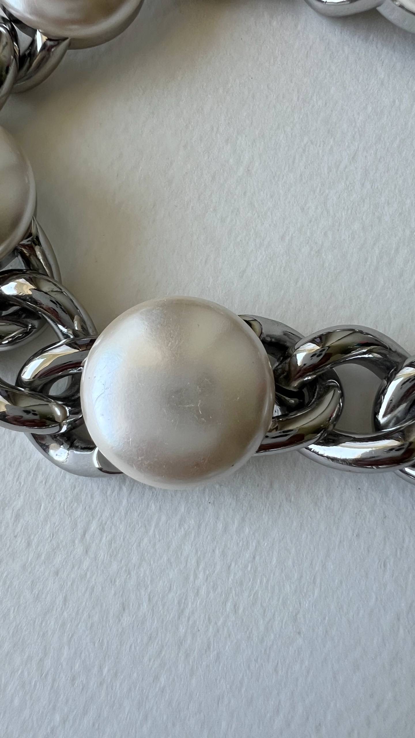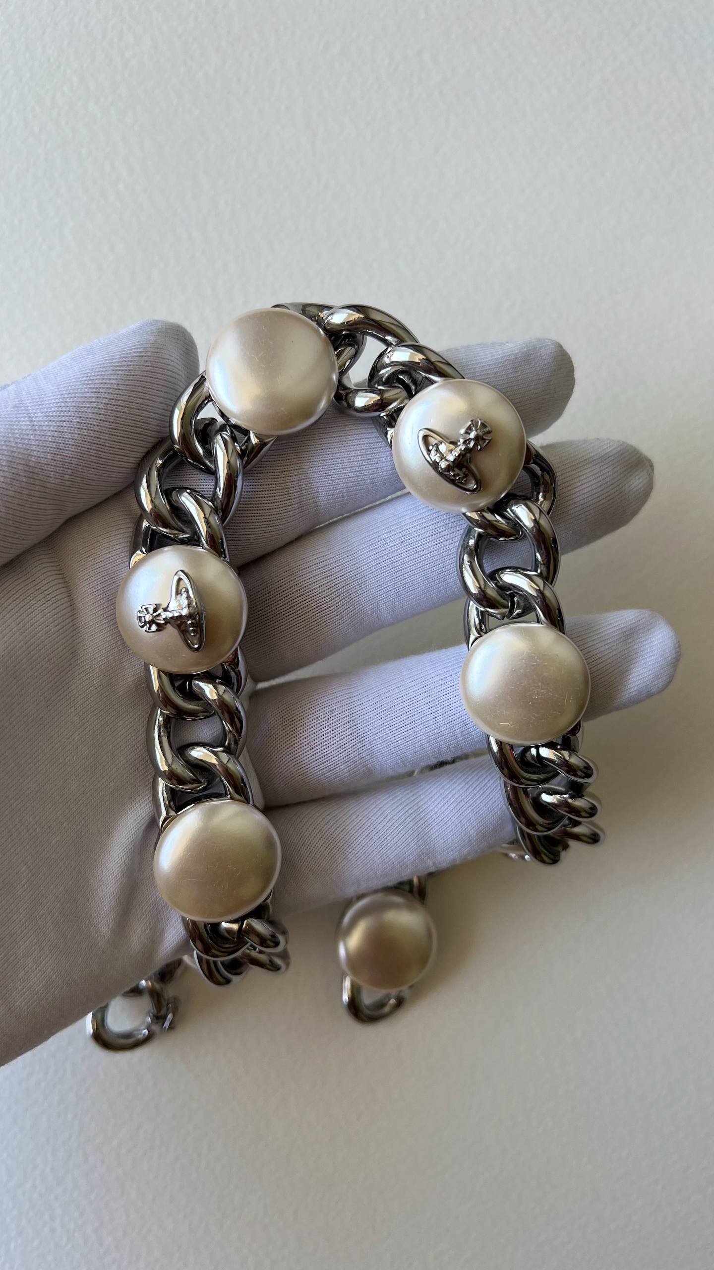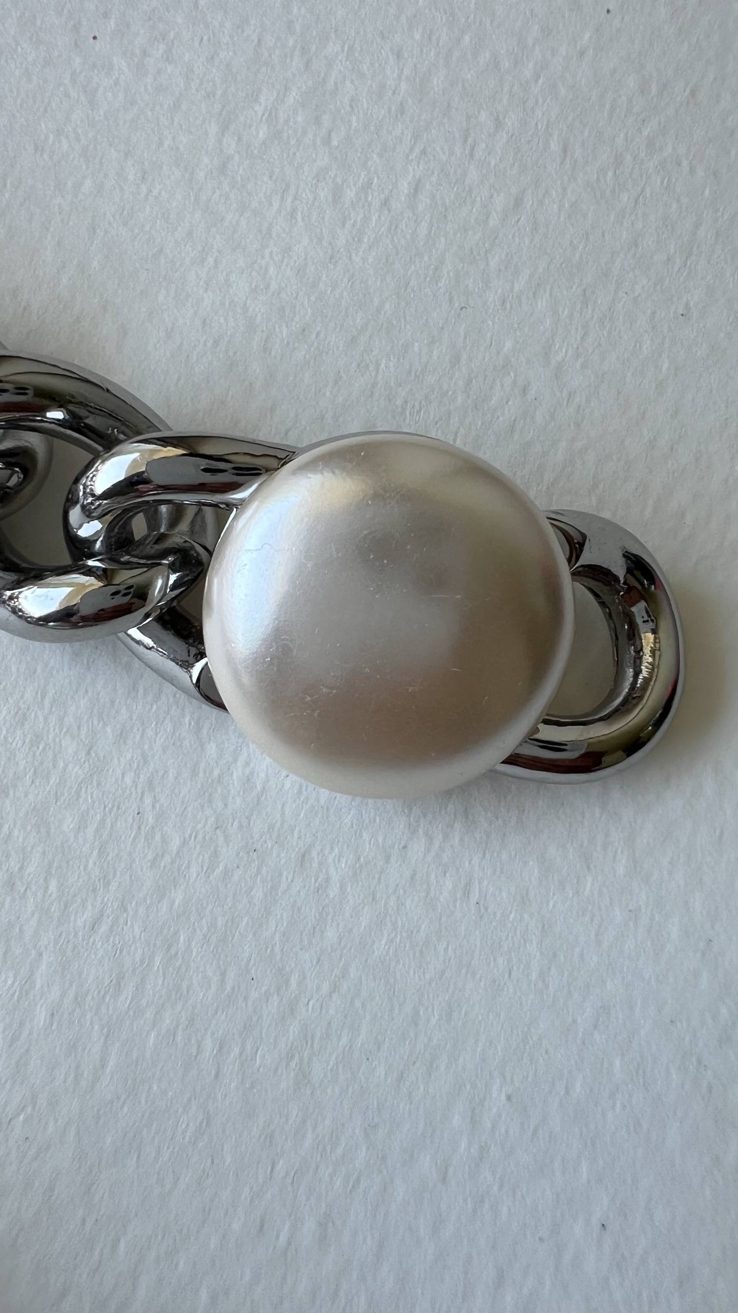 Бижутерный сплав, имитация жемчуга. На вставках присутствуют микроцарапины.