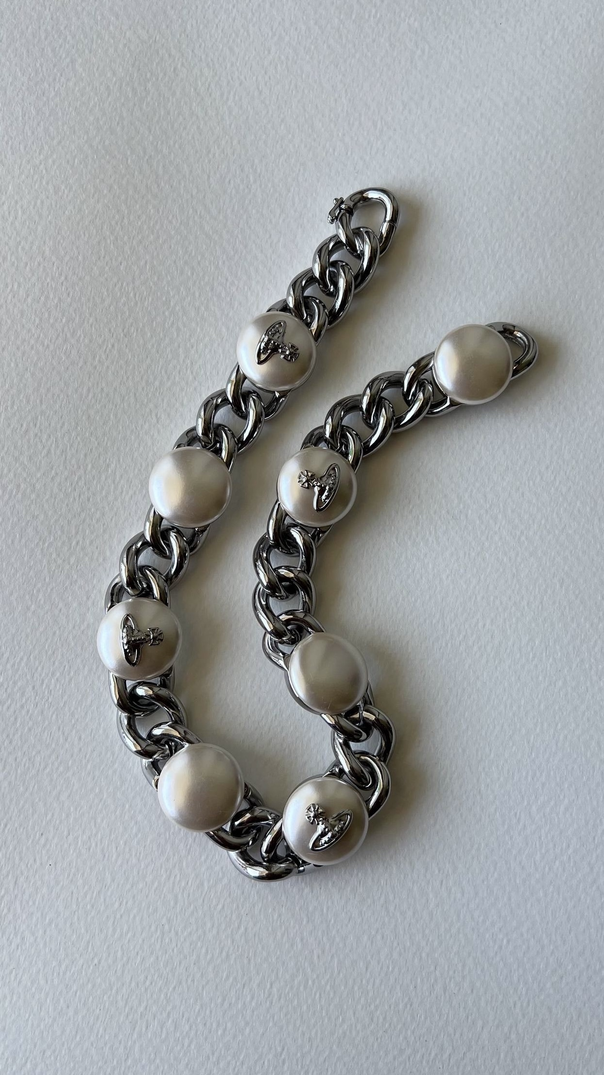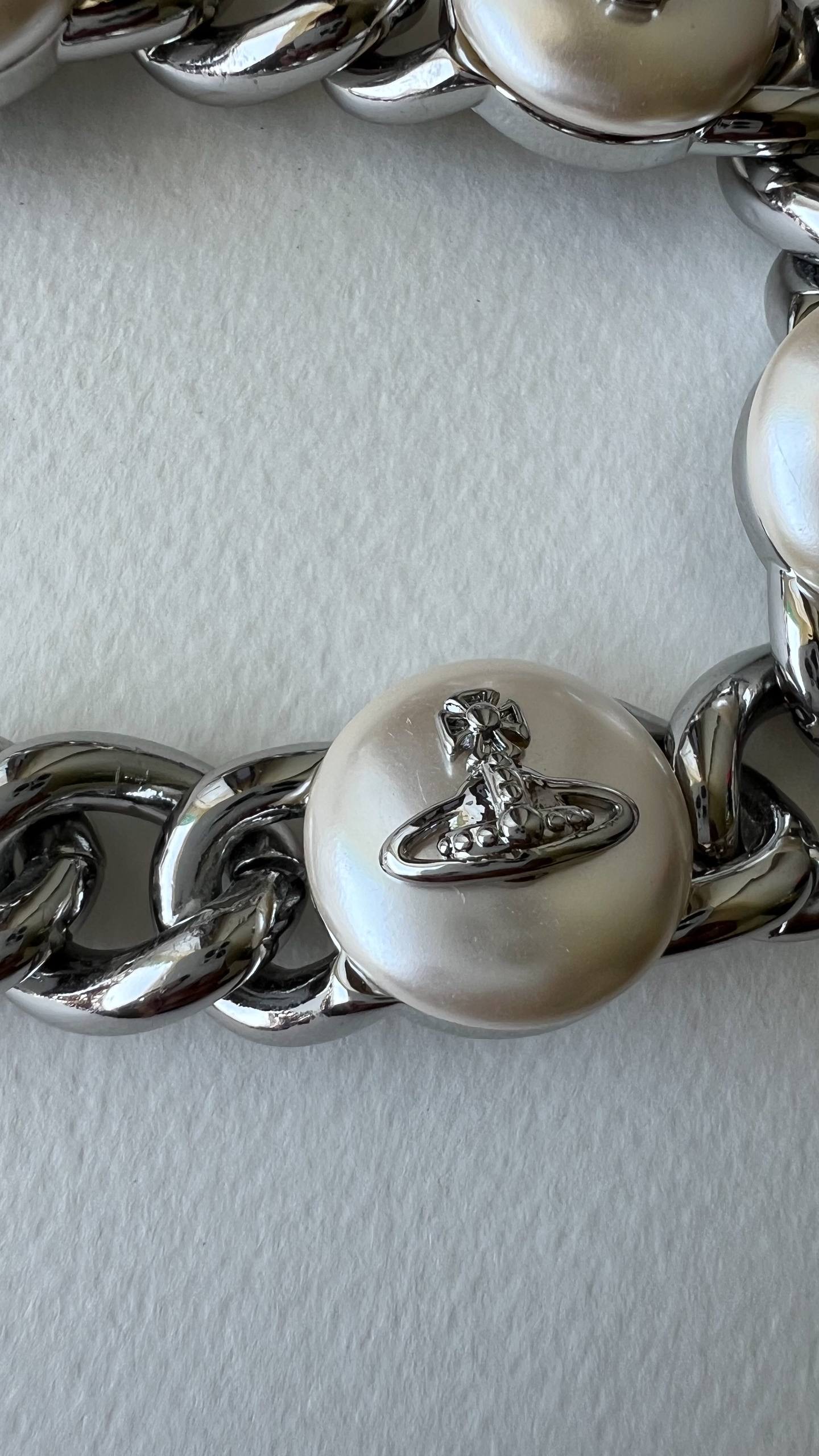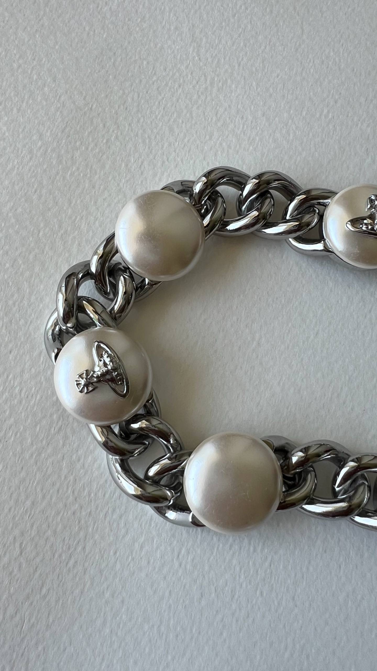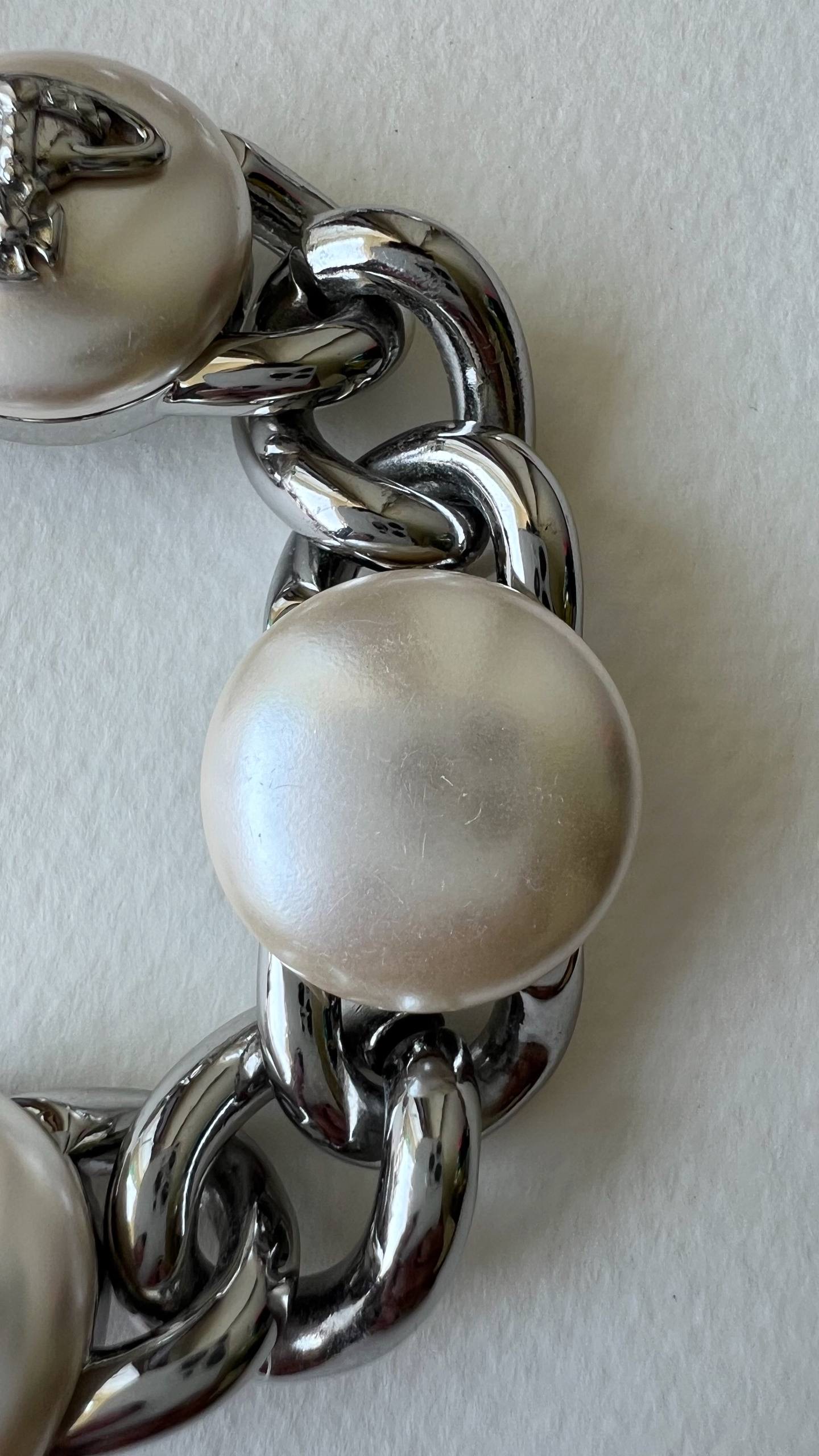 Бижутерный сплав, имитация жемчуга. На вставках присутствуют микроцарапины.