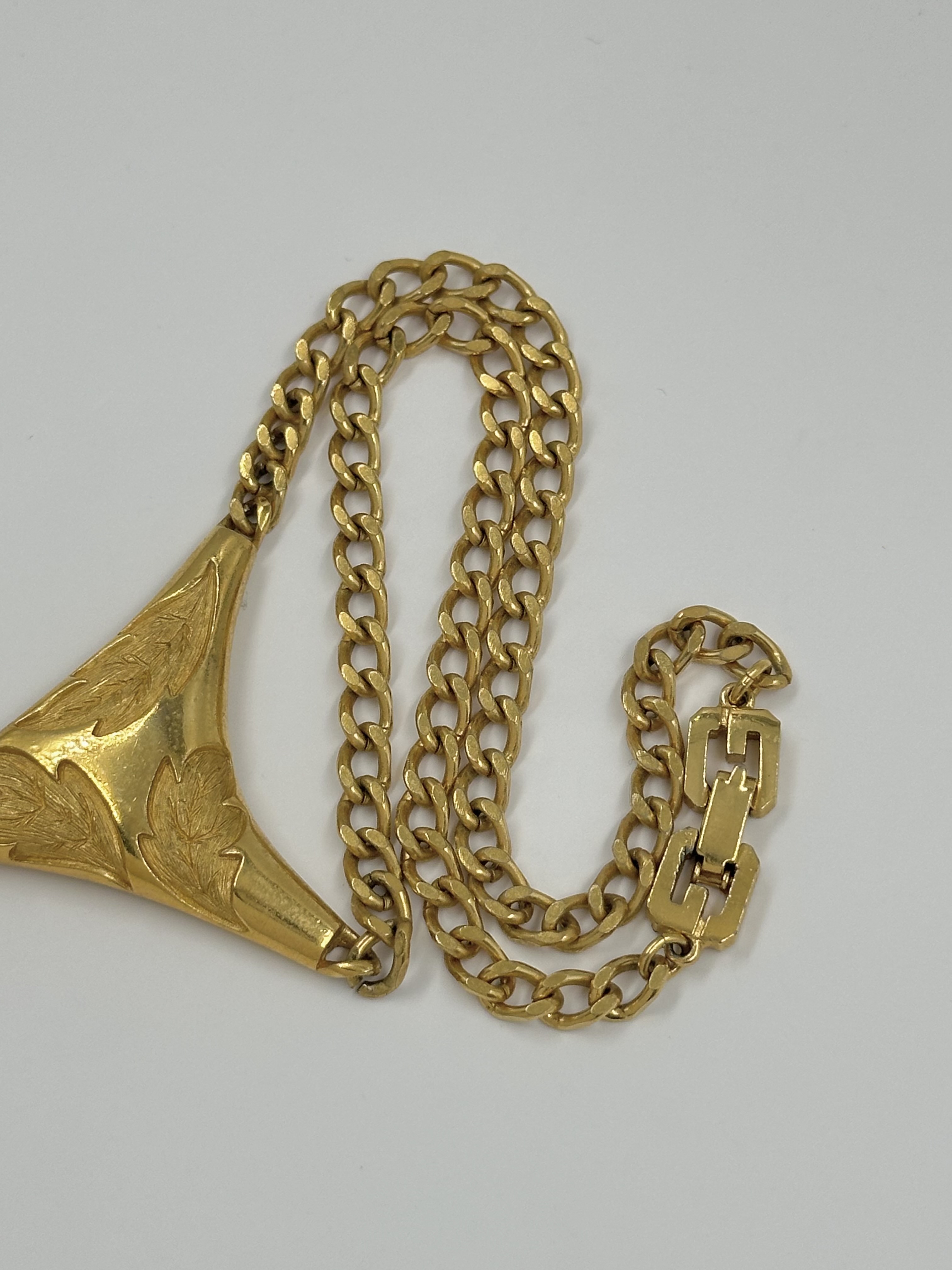 Бижутерный сплав, позолота. На замке присутствуют сколы покрытия. Длина 36,8см.