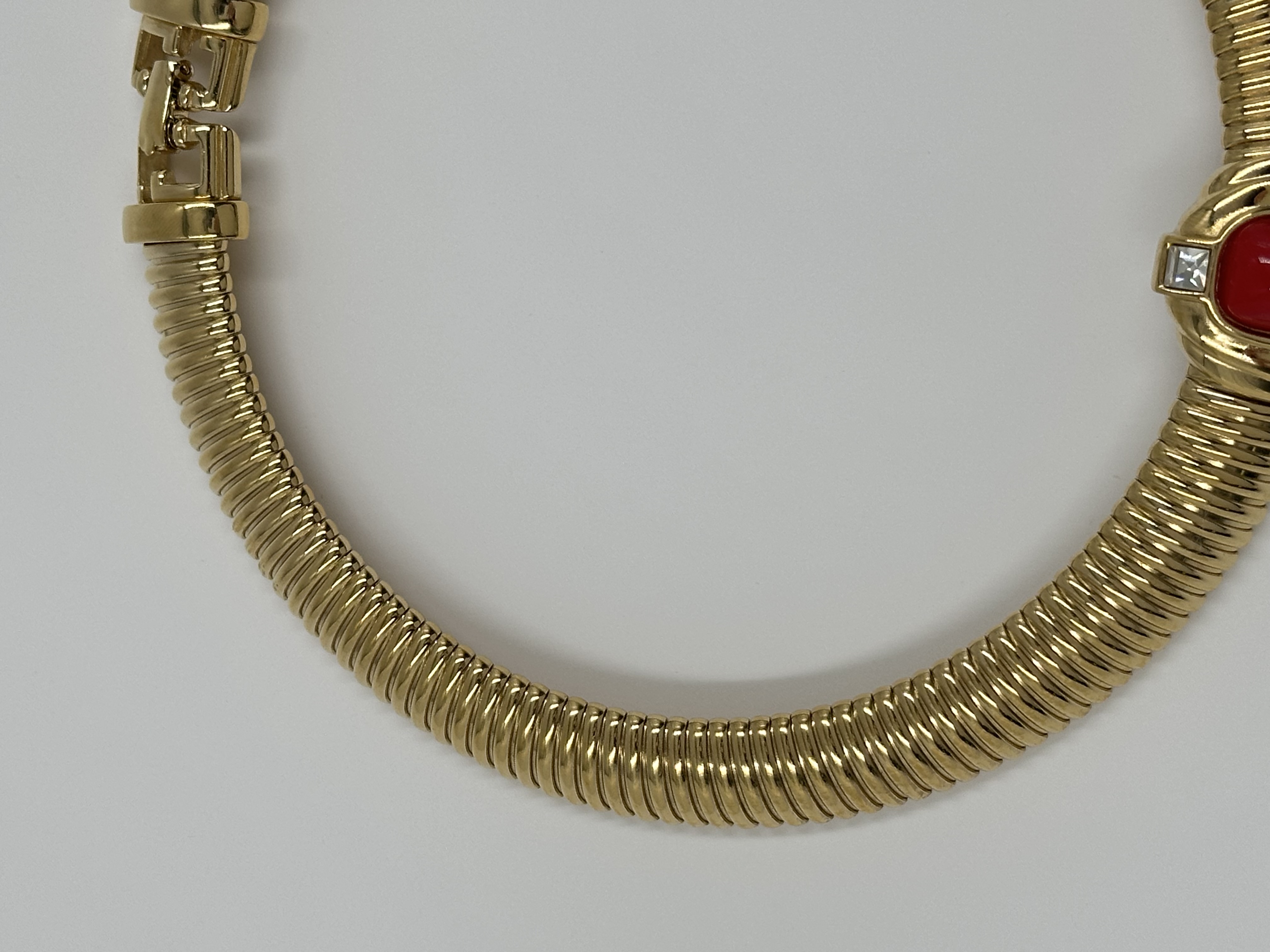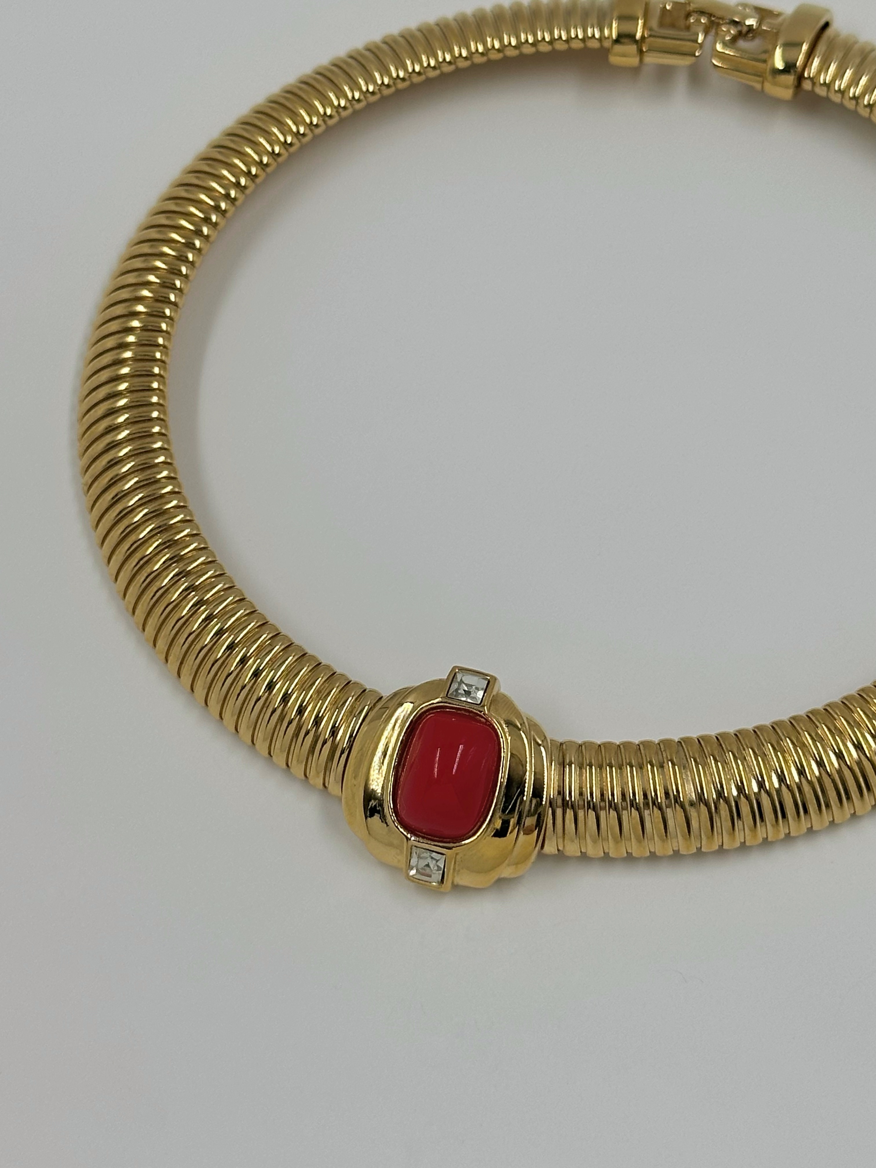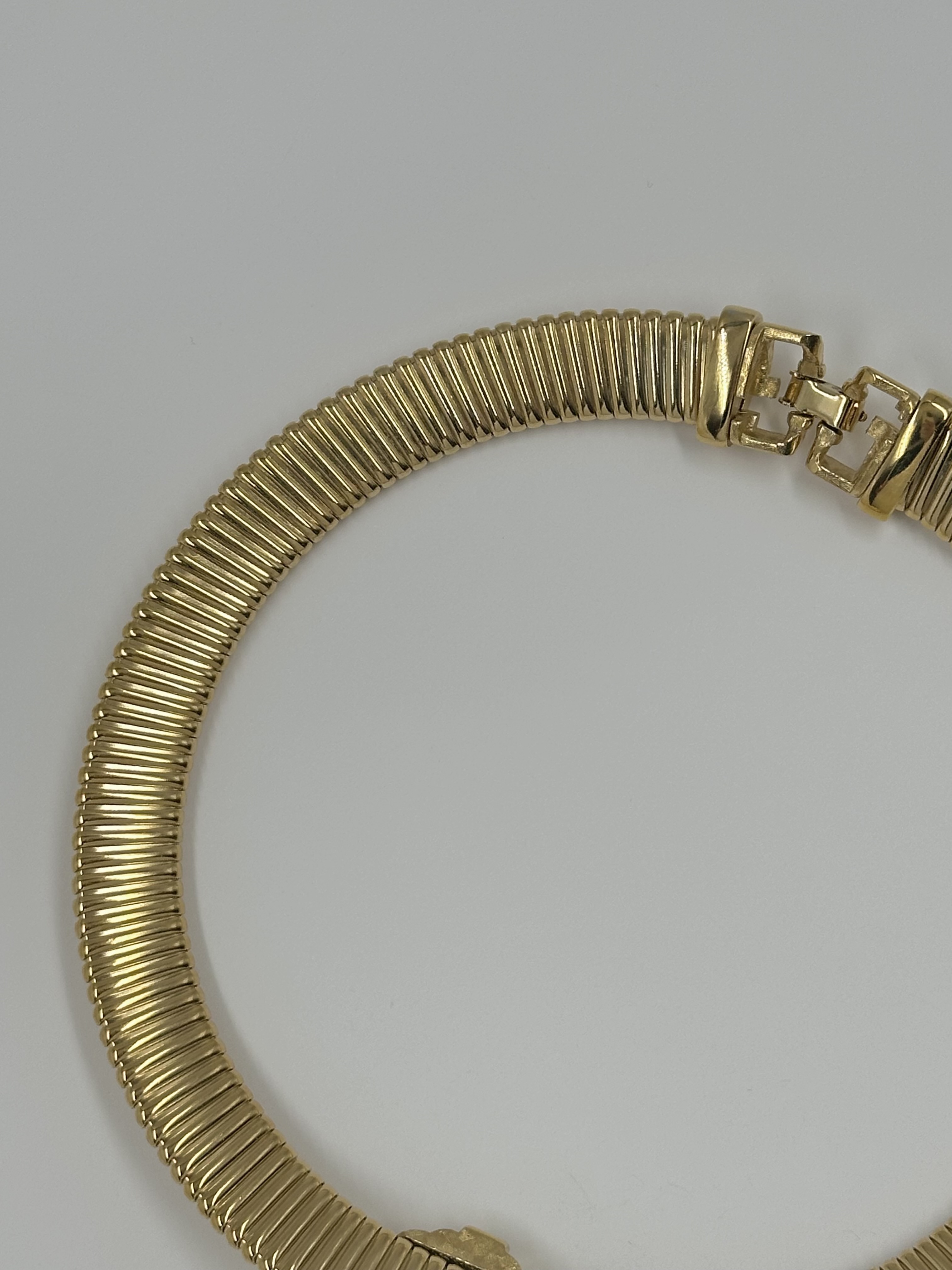 Бижутерный сплав, позолота, пластик, кристаллы. Размер по внутренней стороне 35,5см.