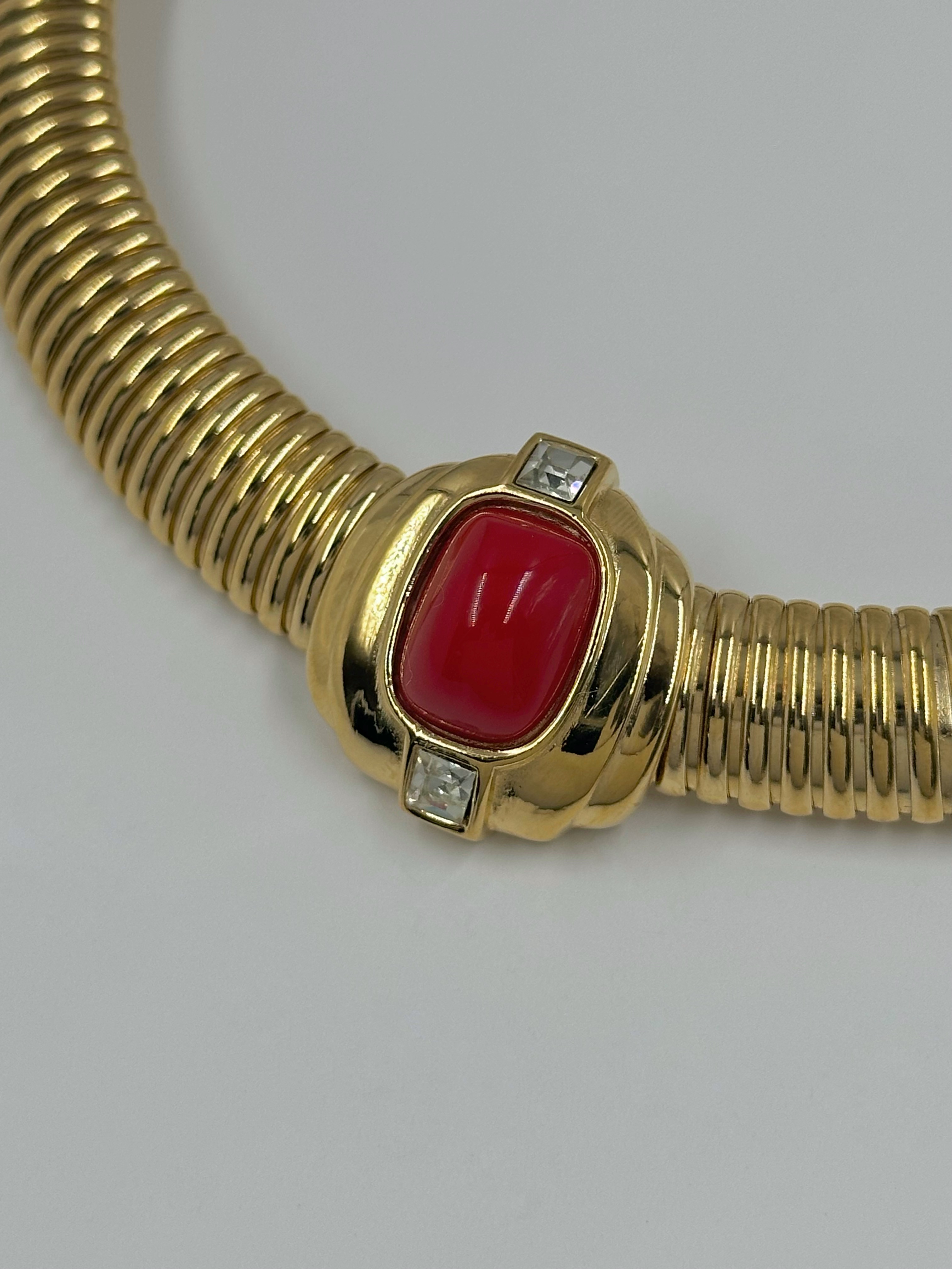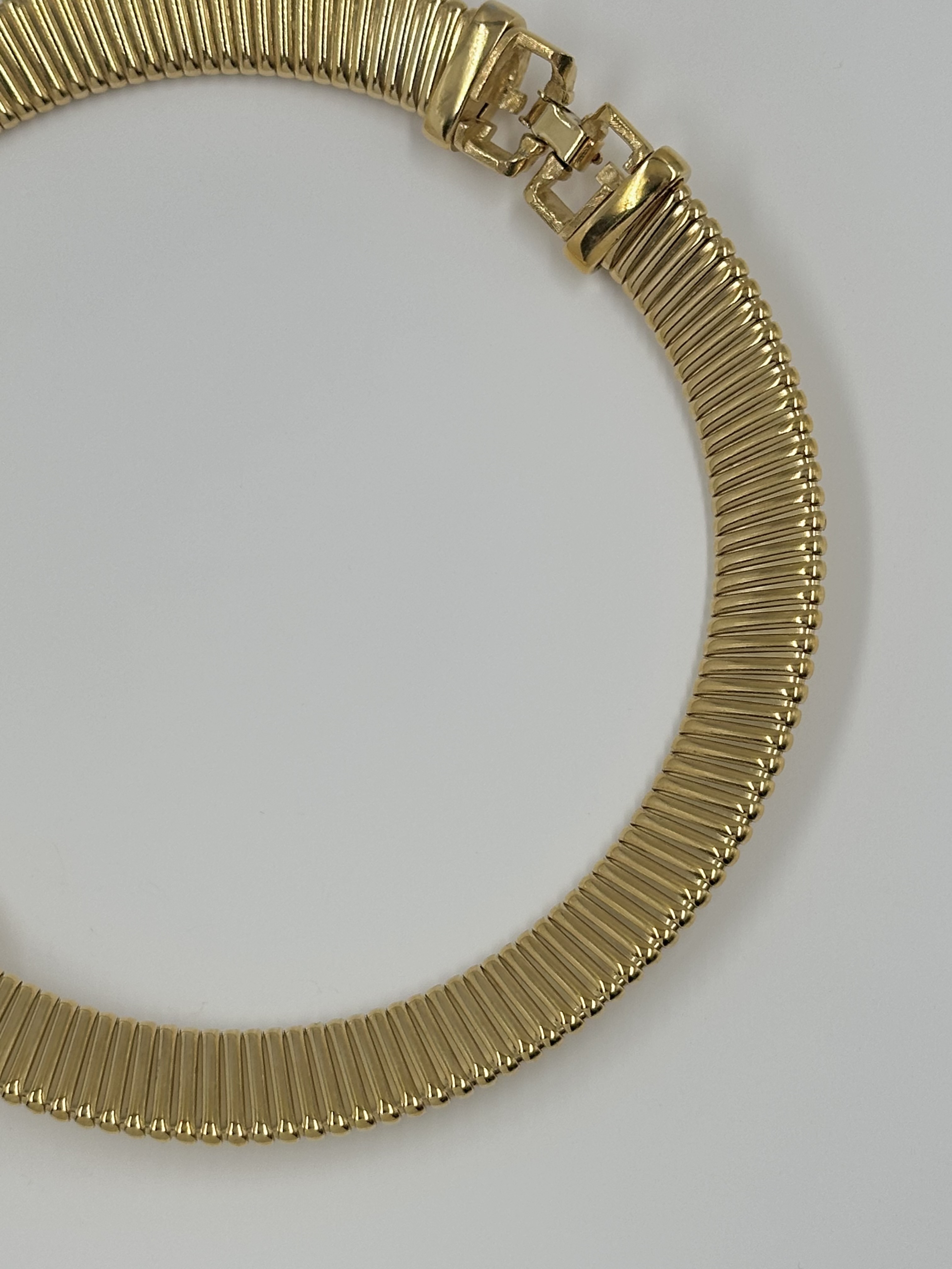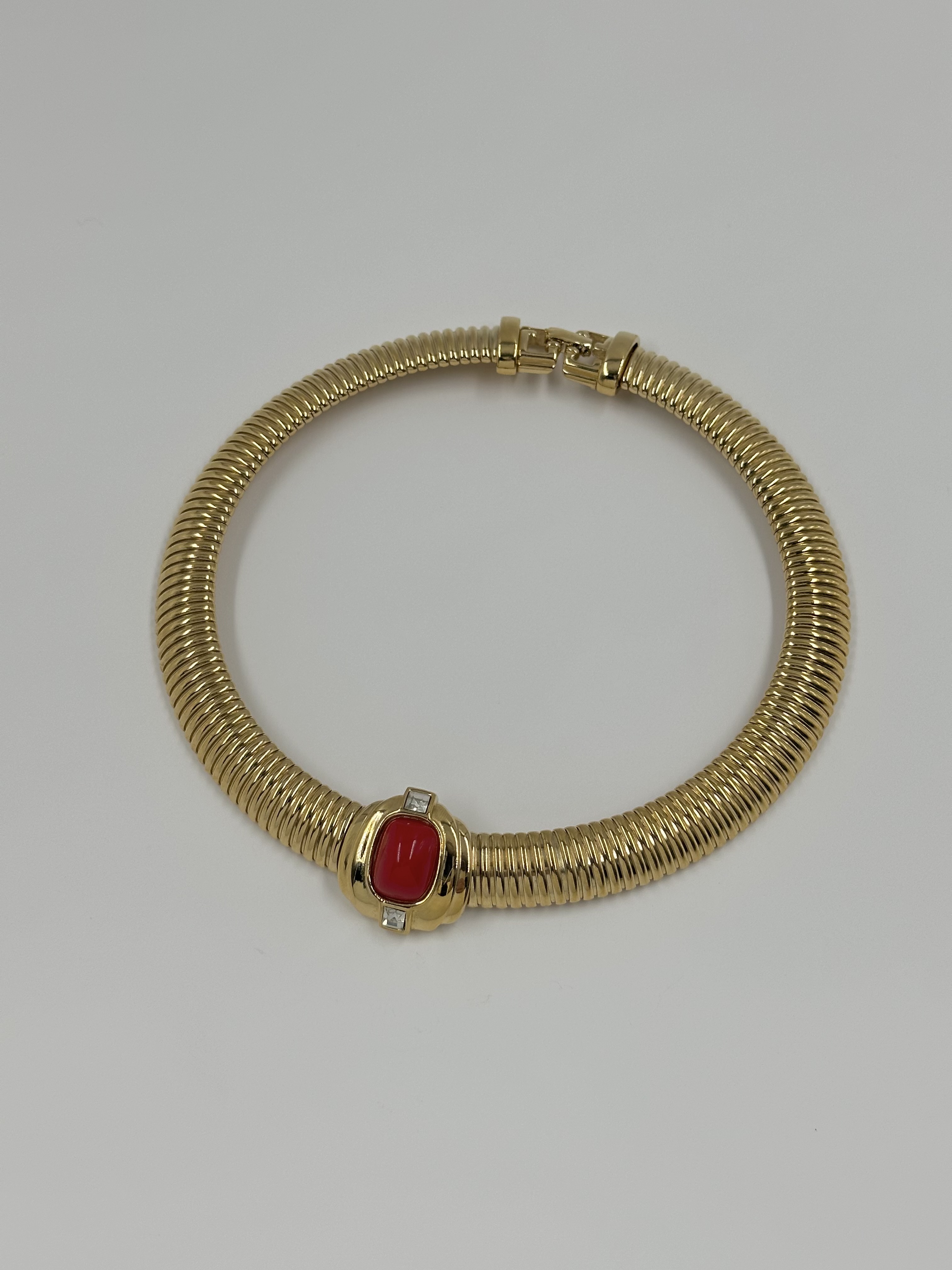 Бижутерный сплав, позолота, пластик, кристаллы. Размер по внутренней стороне 35,5см.