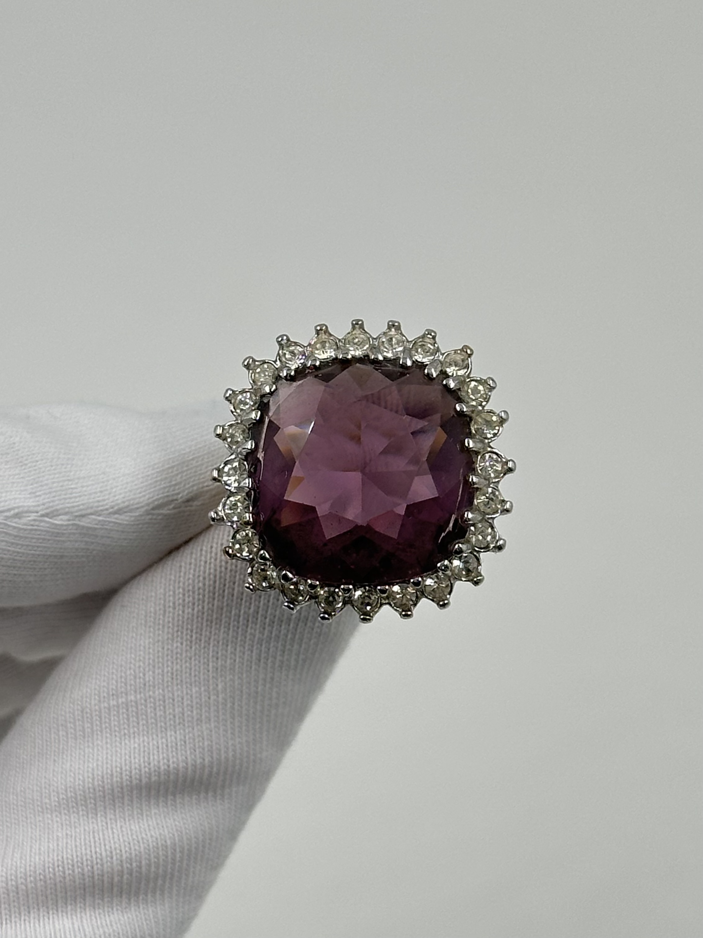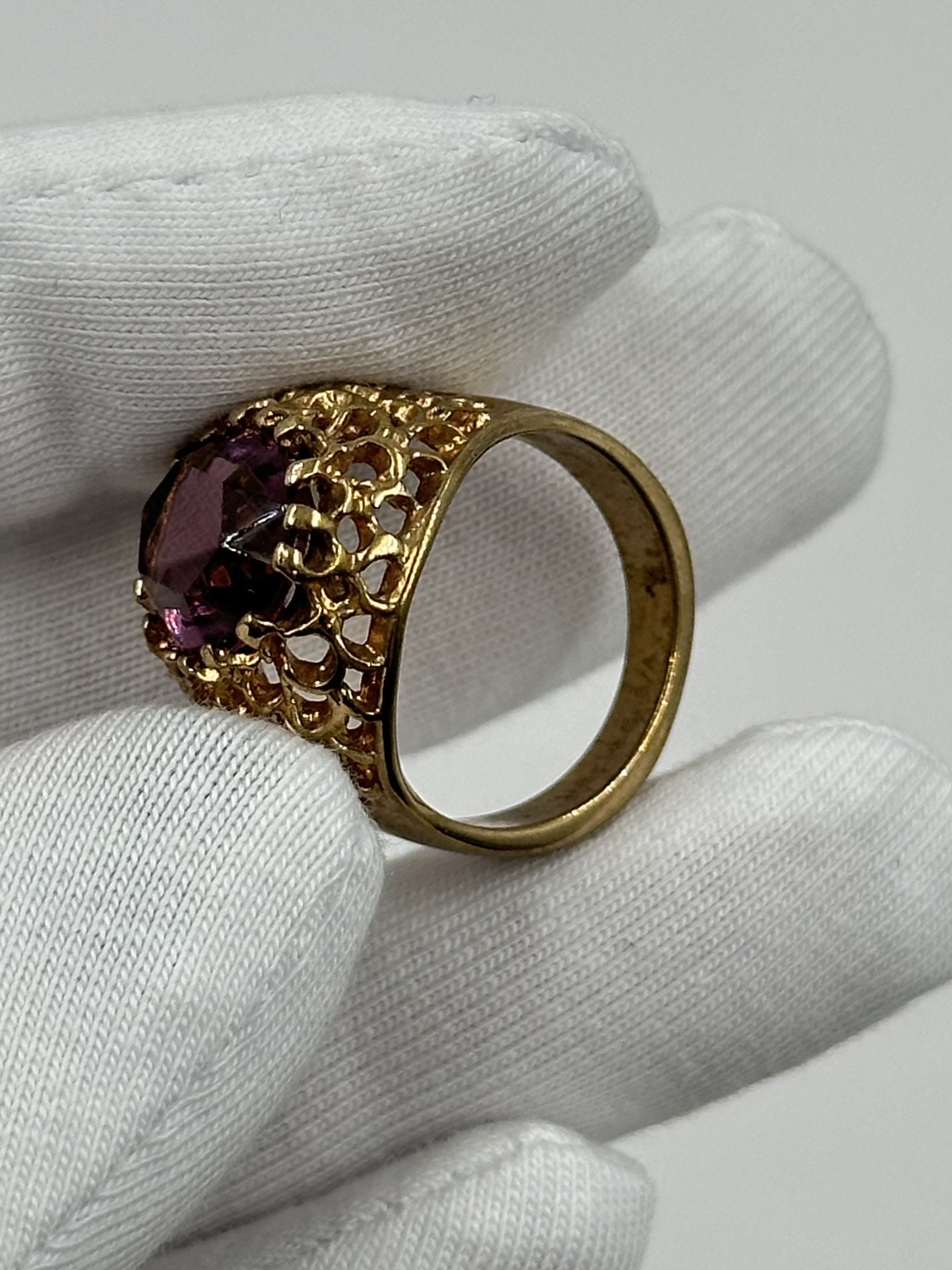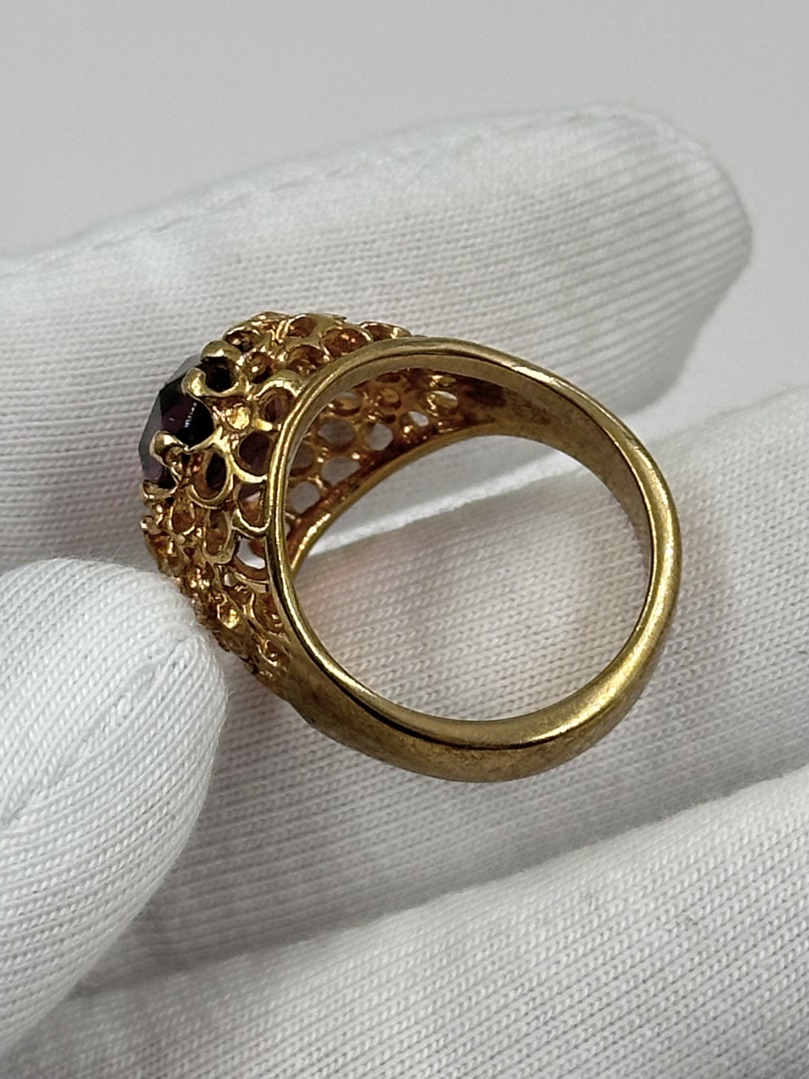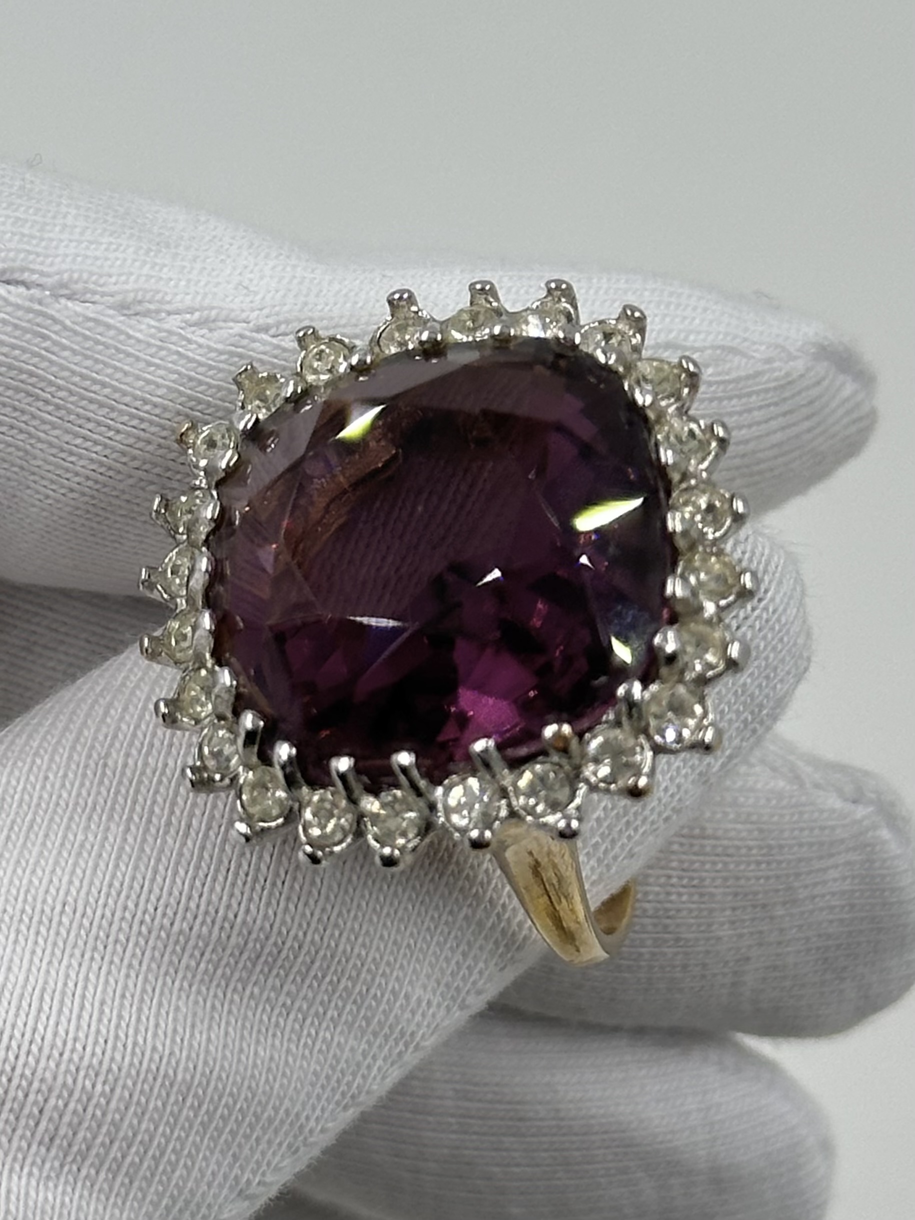 Бижутерный сплав, кристалл. Присутствуют потемнения позолоты, небольшие сколы на вставке. Размер 16