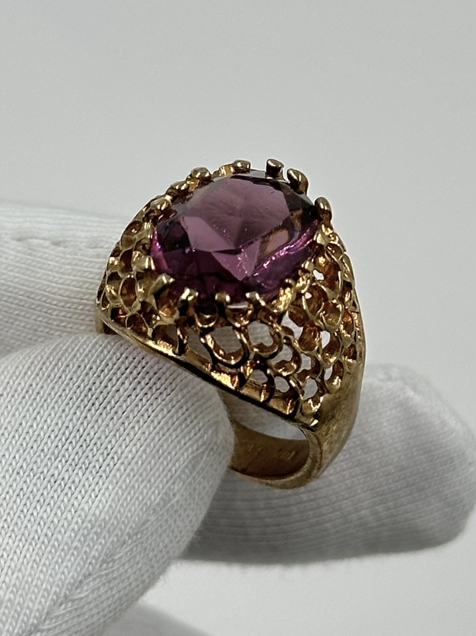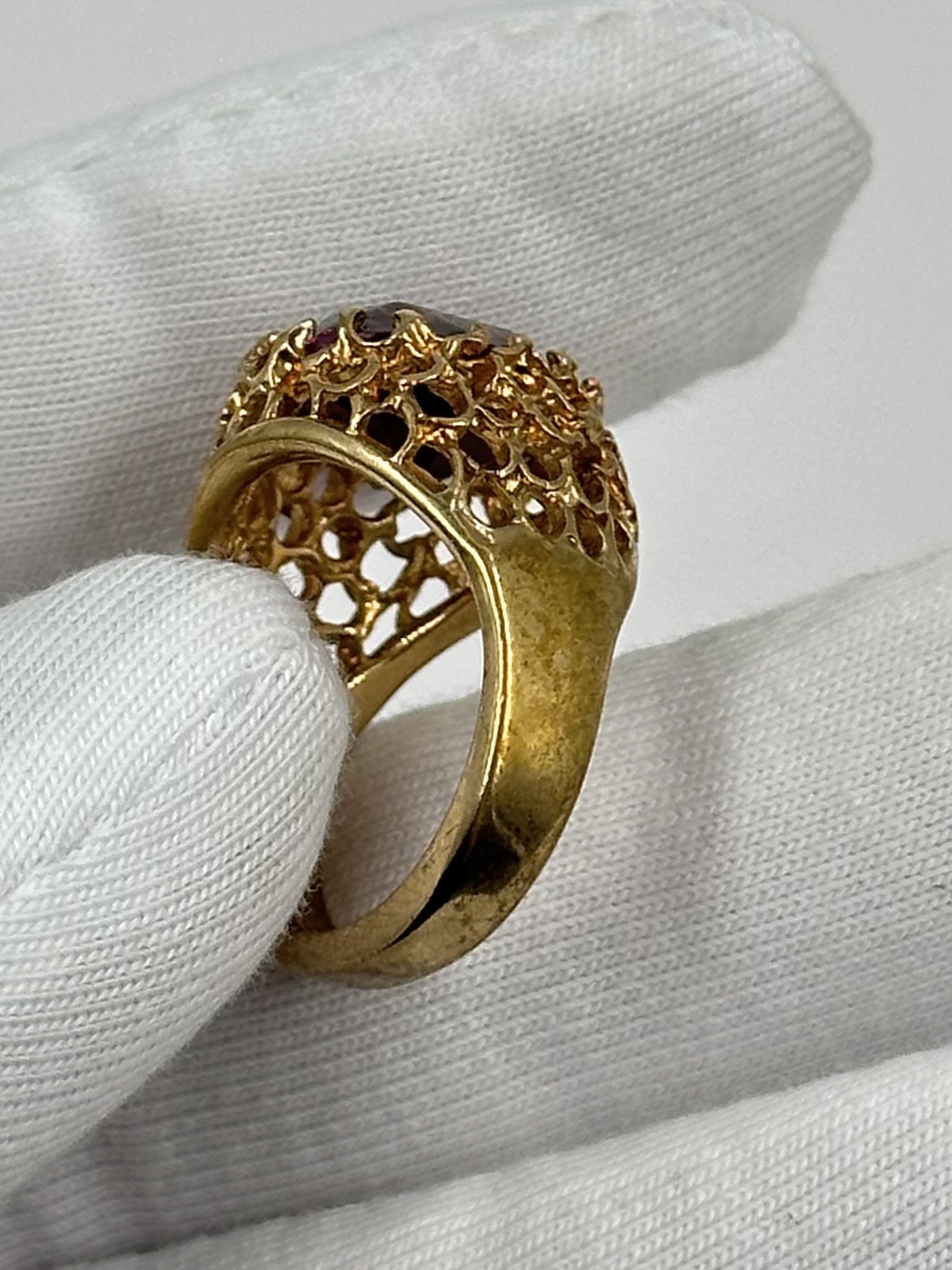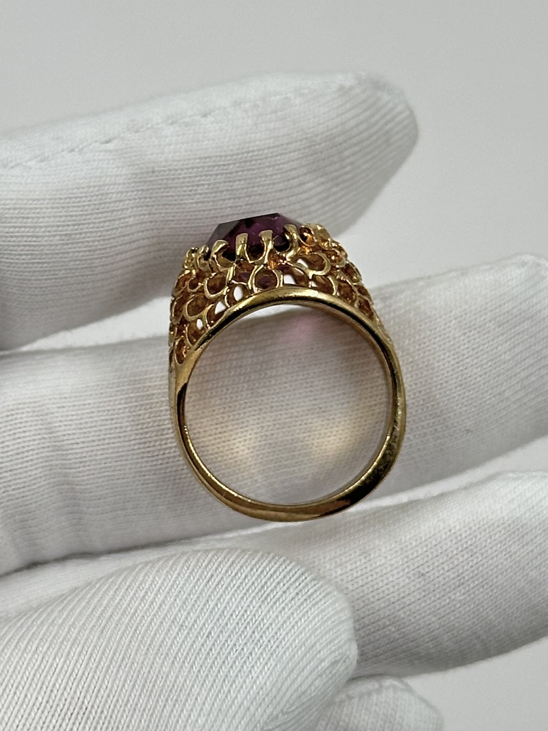Бижутерный сплав, кристалл. Присутствуют потемнения позолоты, небольшие сколы на вставке. Размер 16
