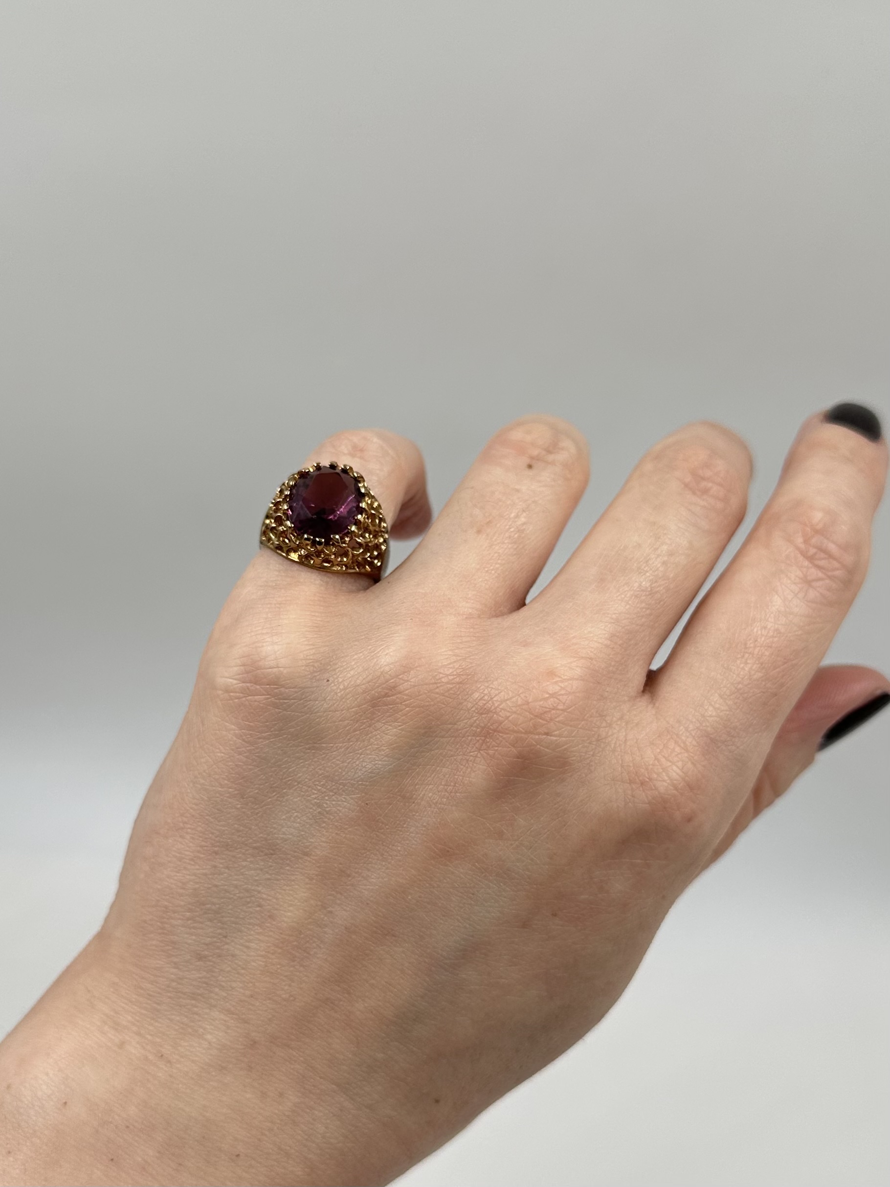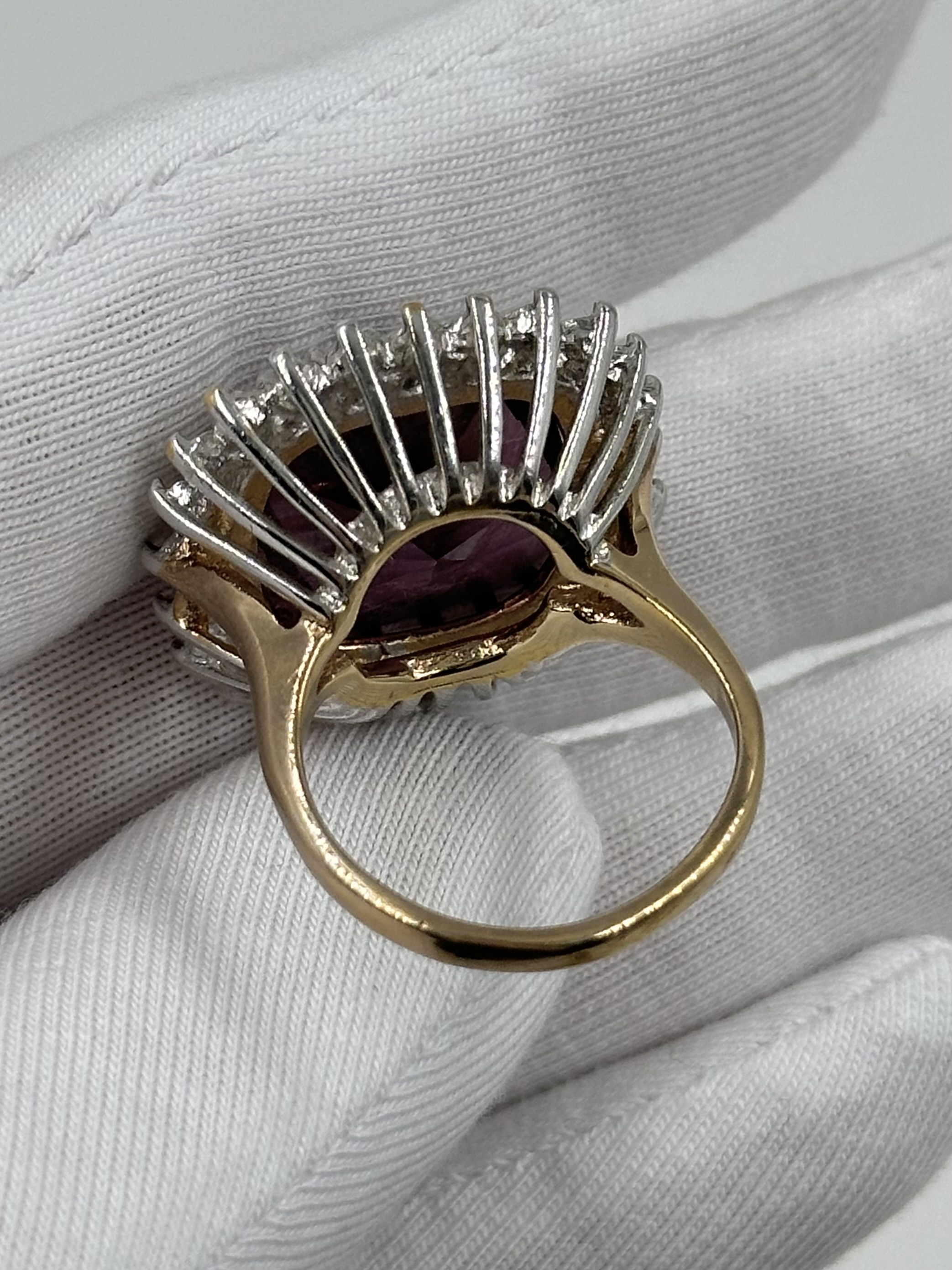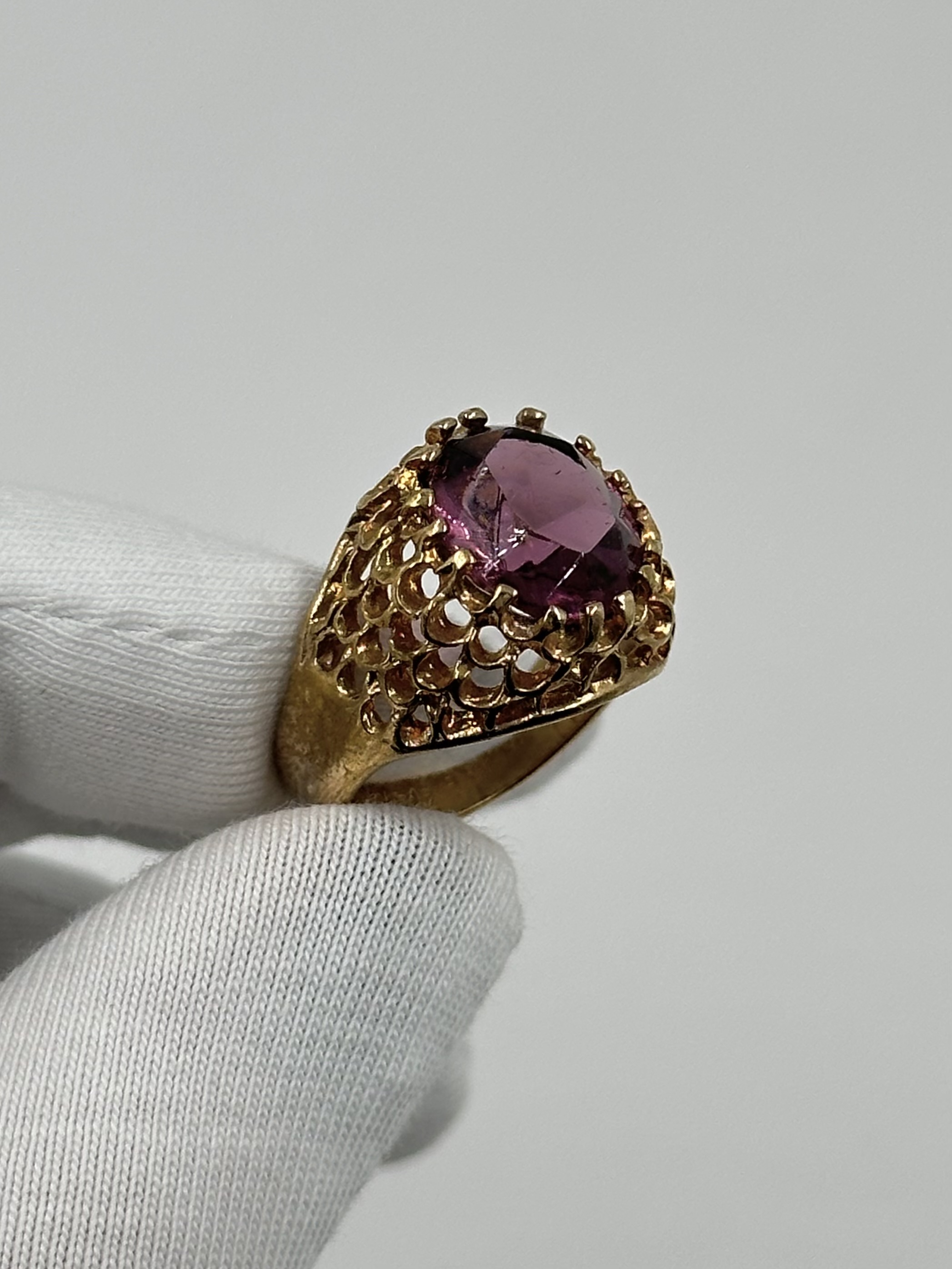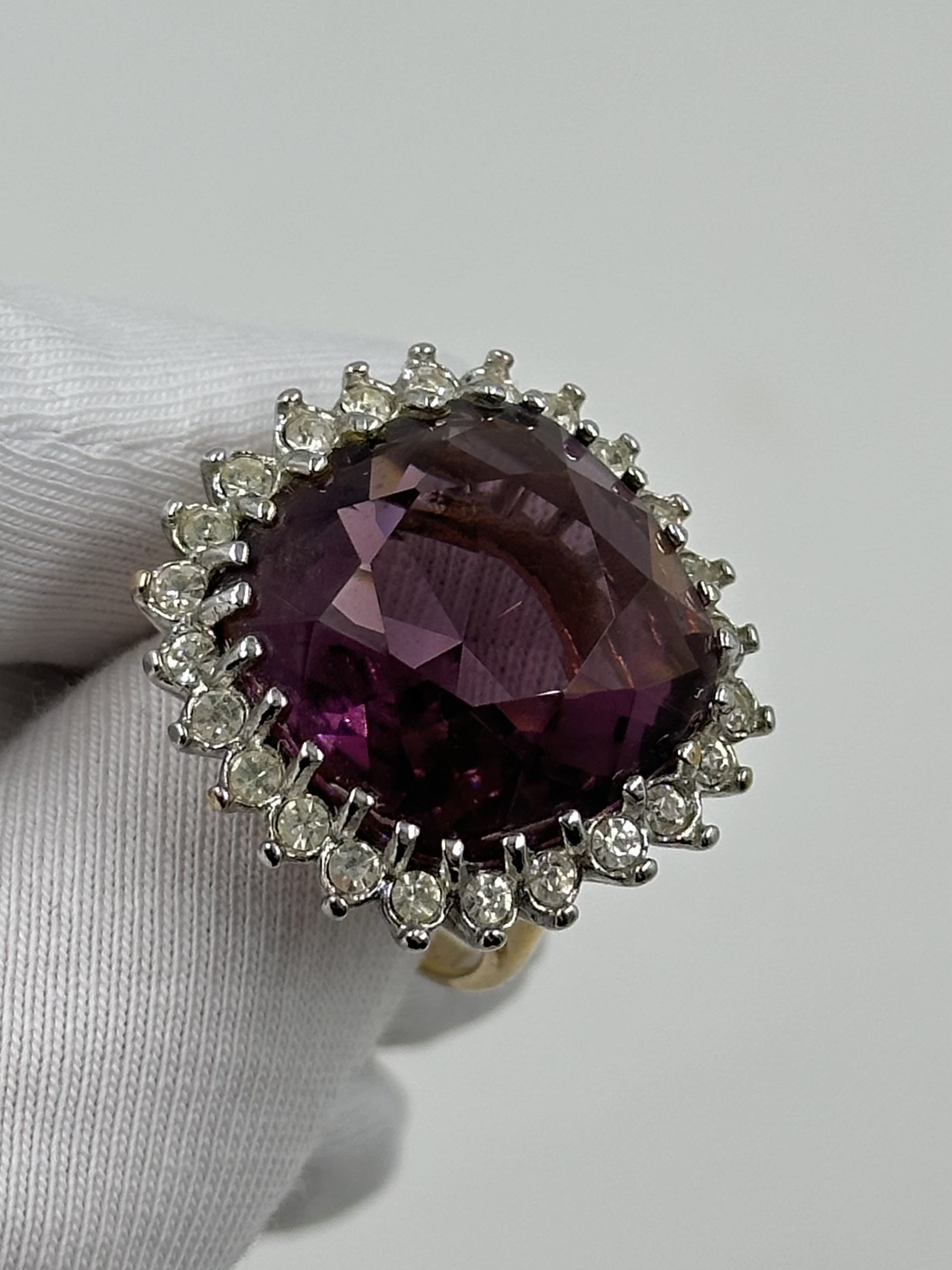 Бижутерный сплав, кристалл. Присутствуют потемнения позолоты, небольшие сколы на вставке. Размер 16