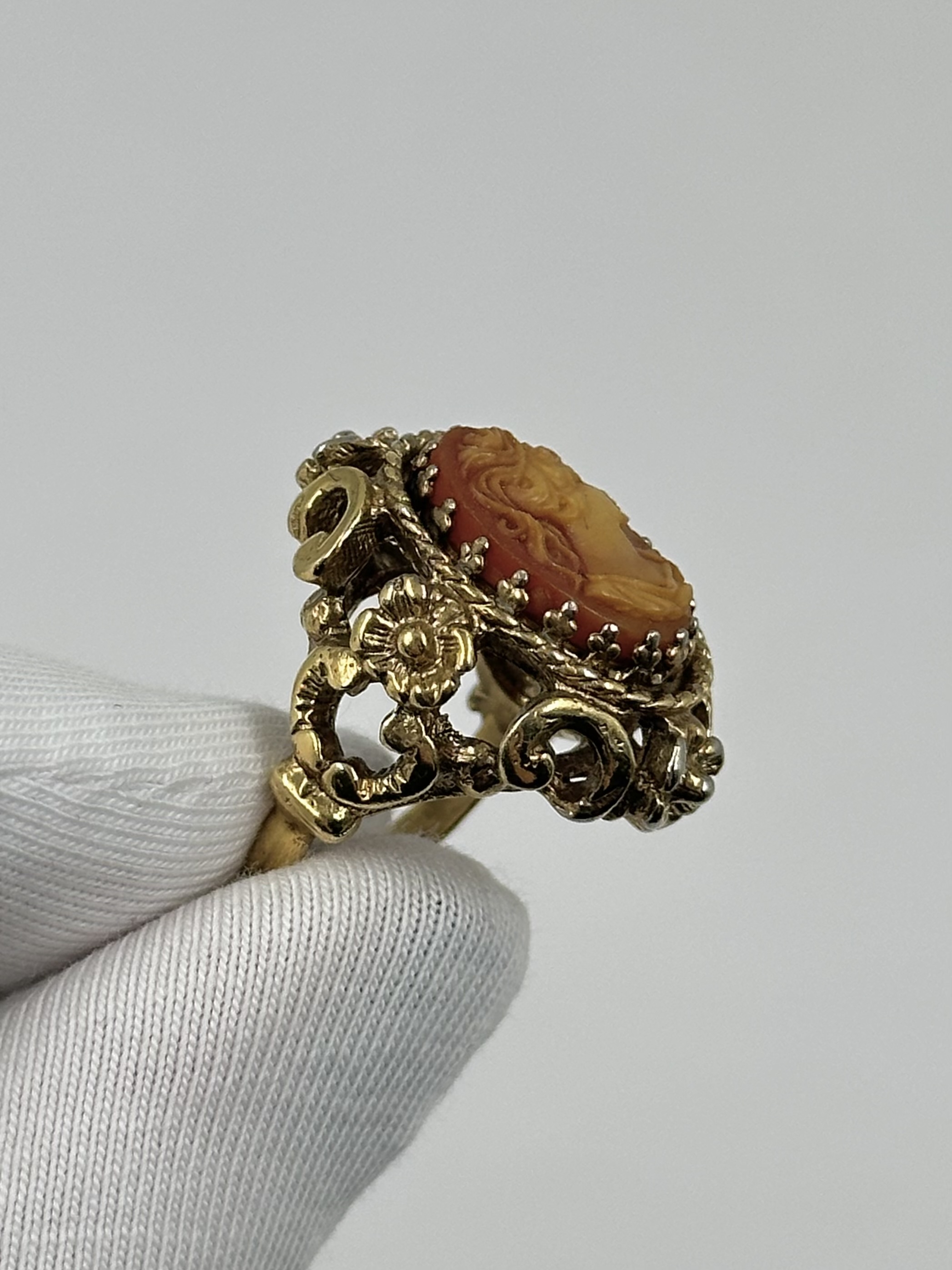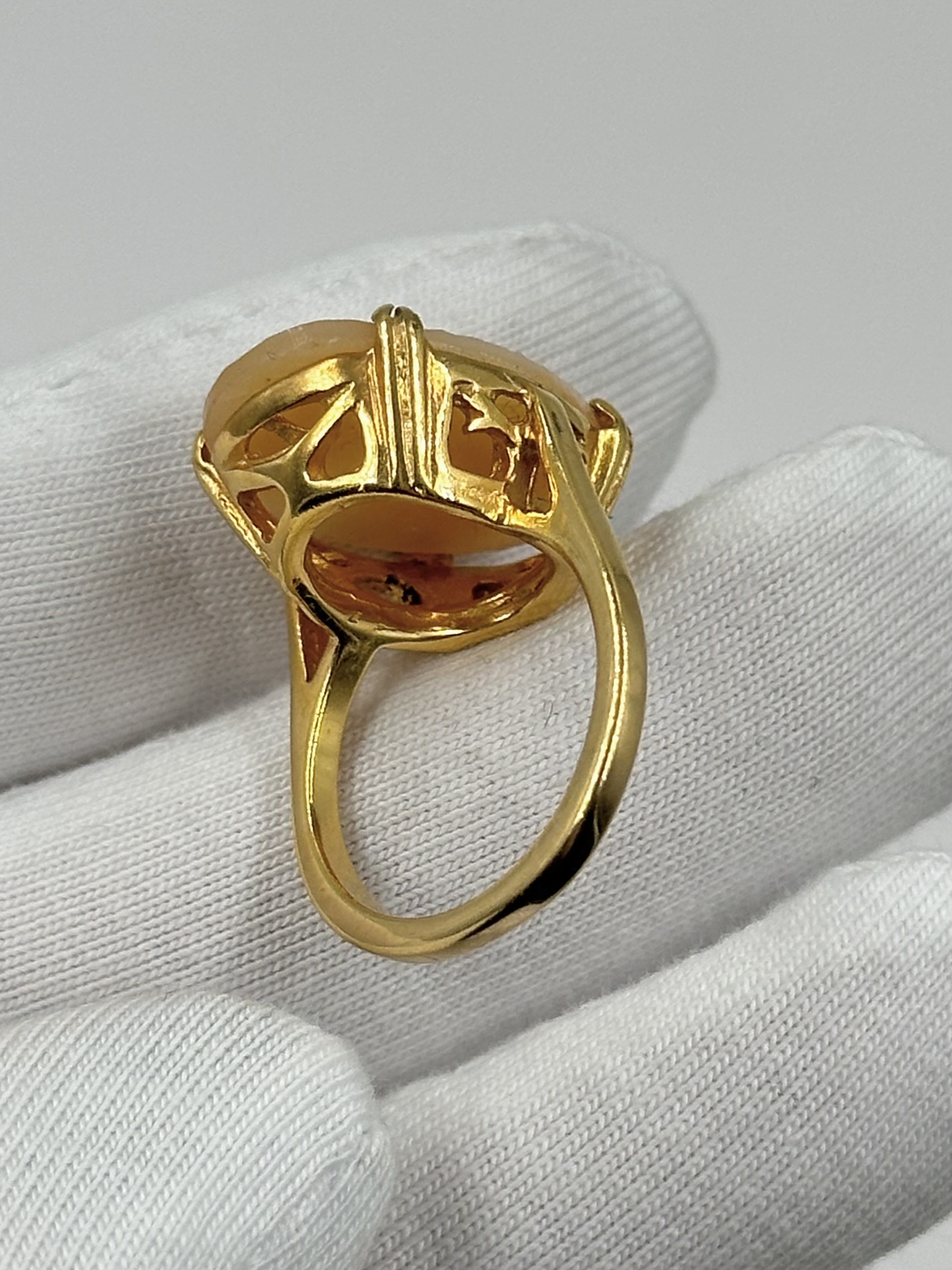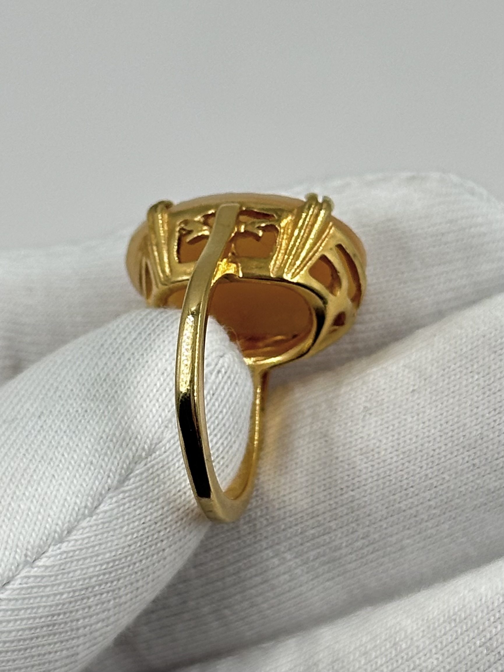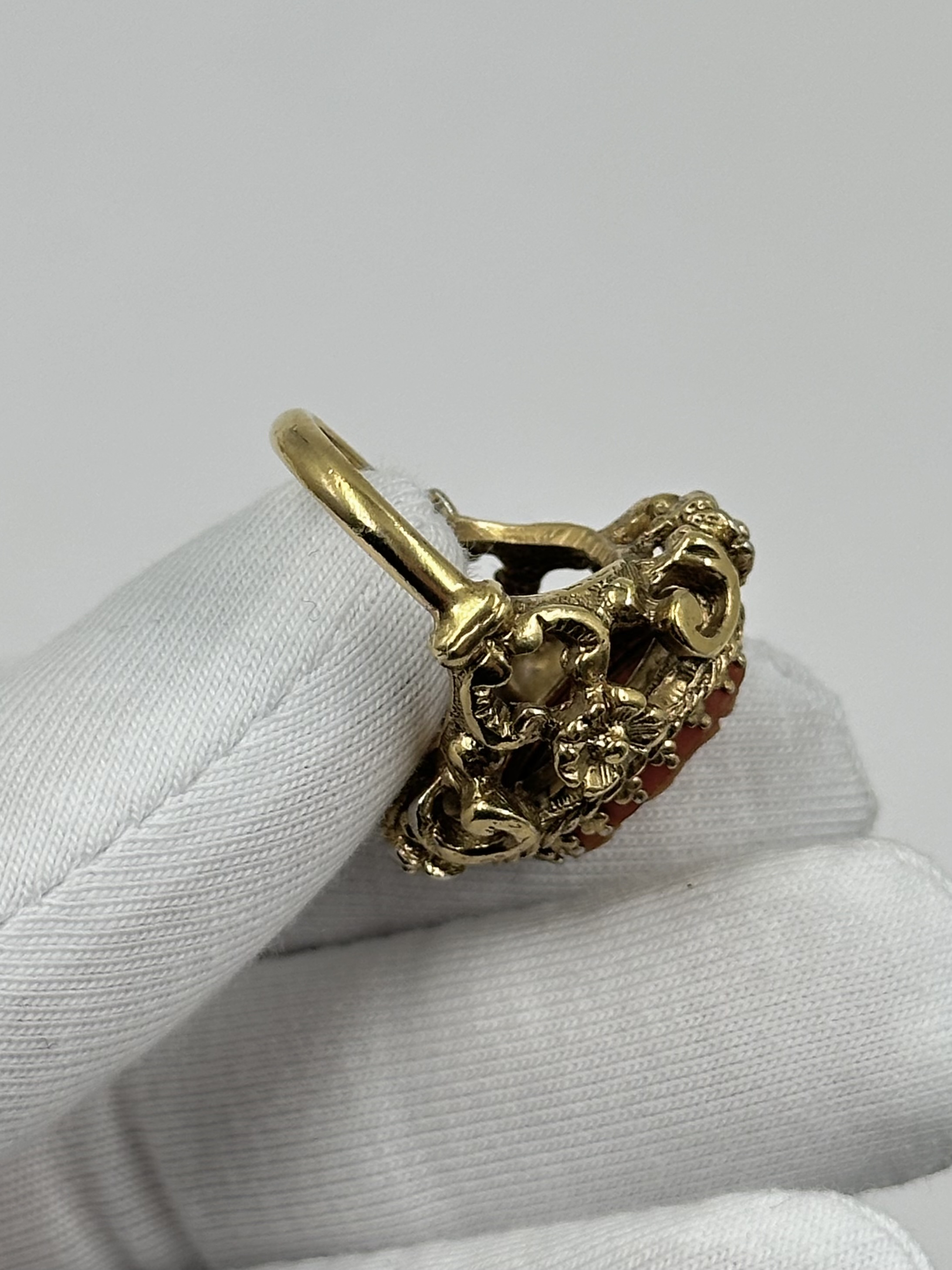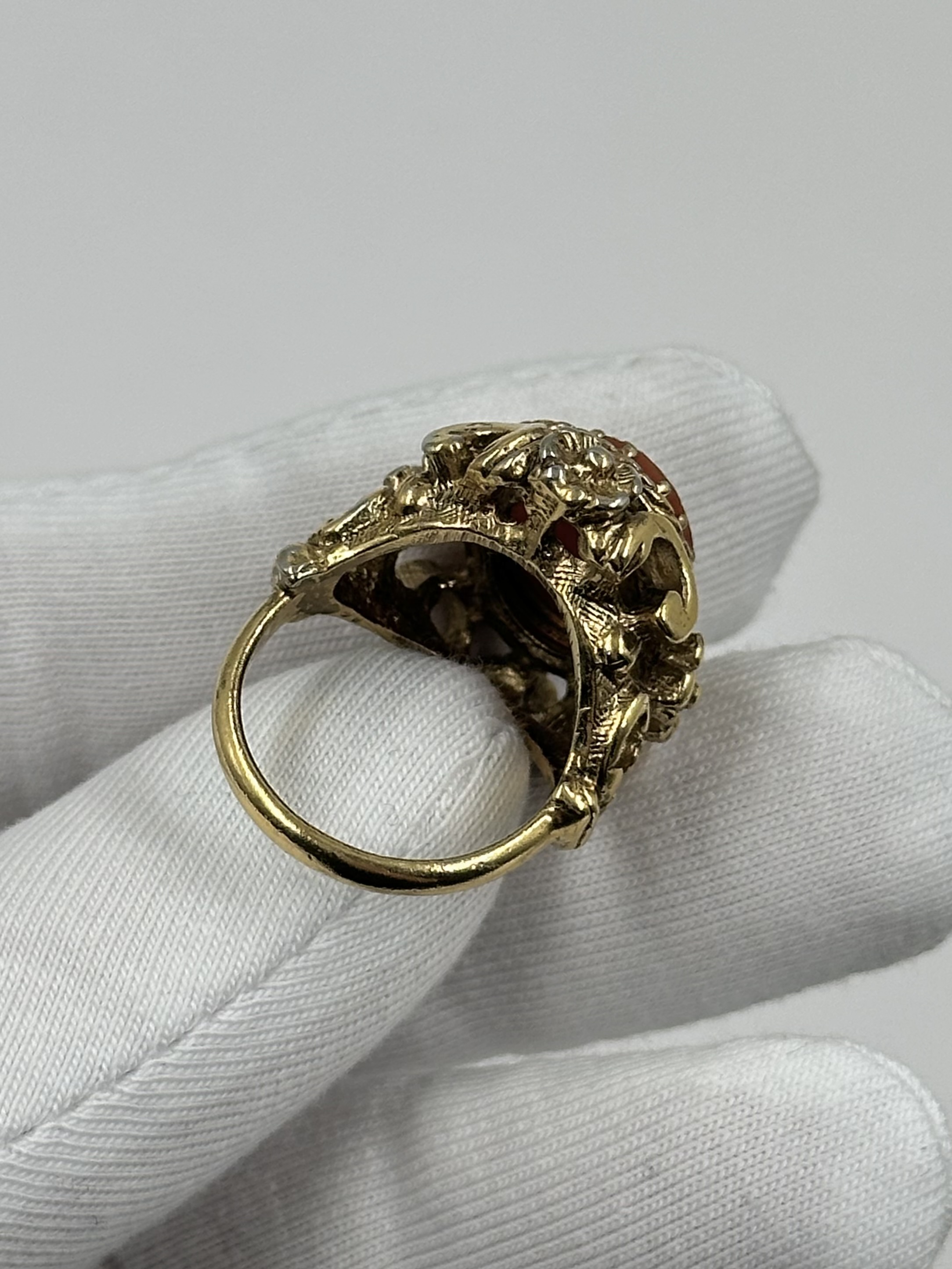 Бижутерный сплав, позолота, пластик. Присутствуют потертости покрытия. Размер 16