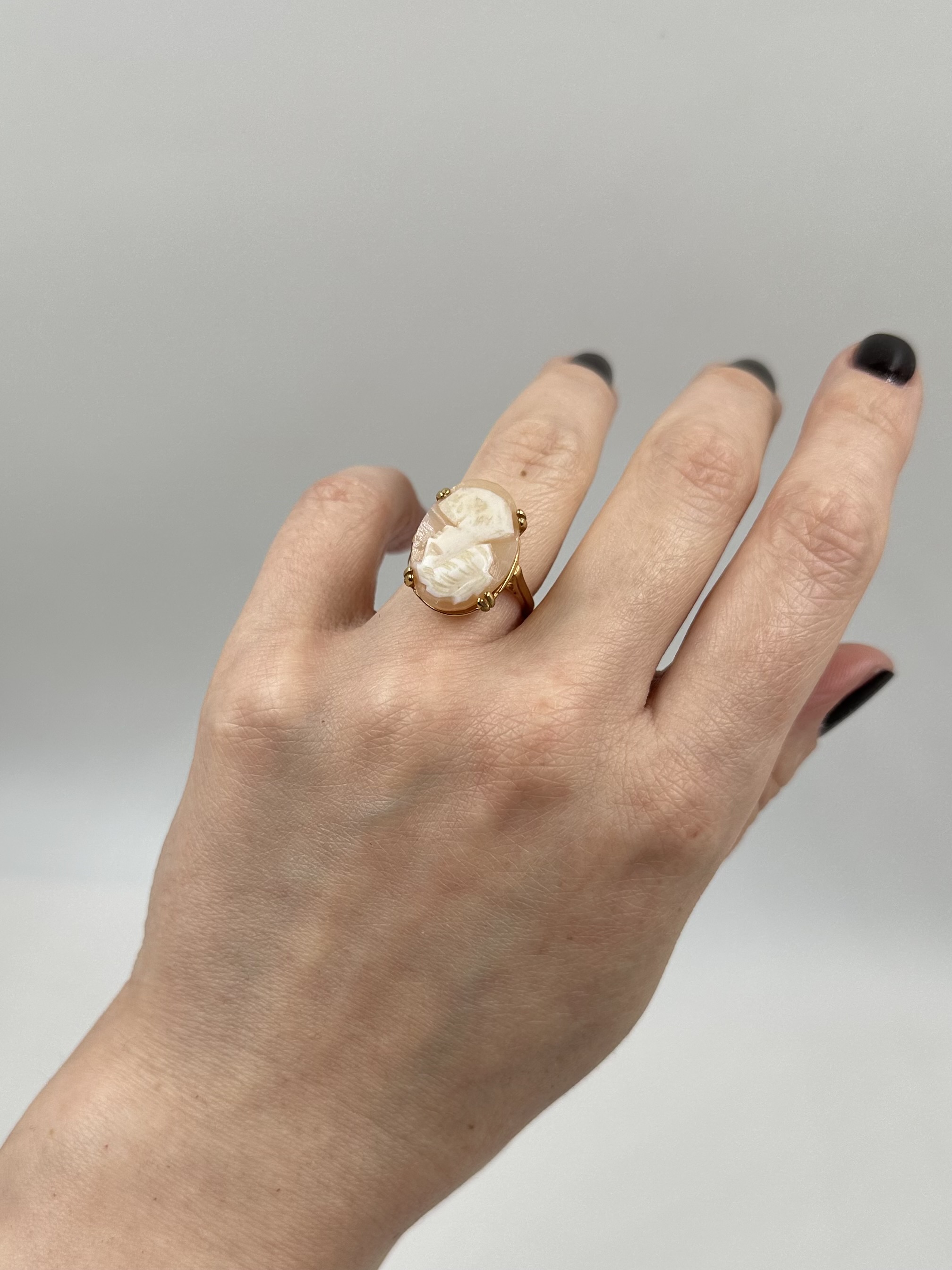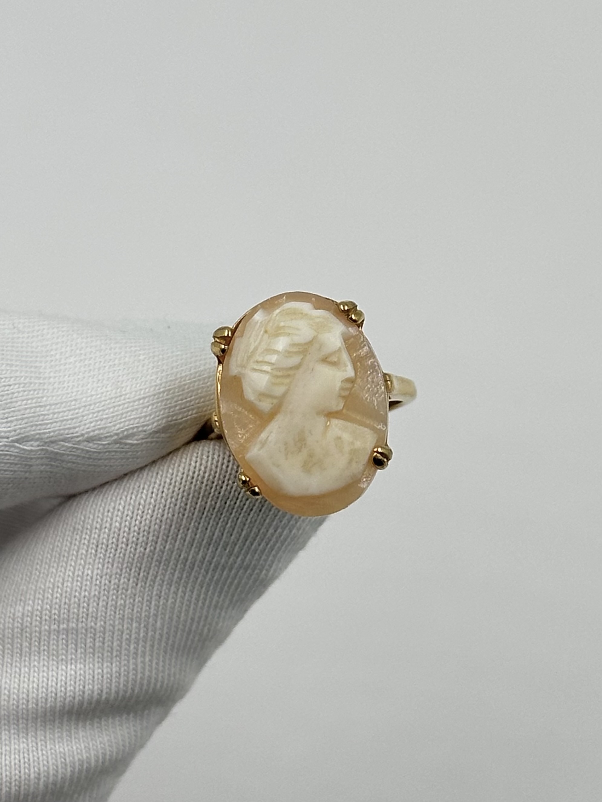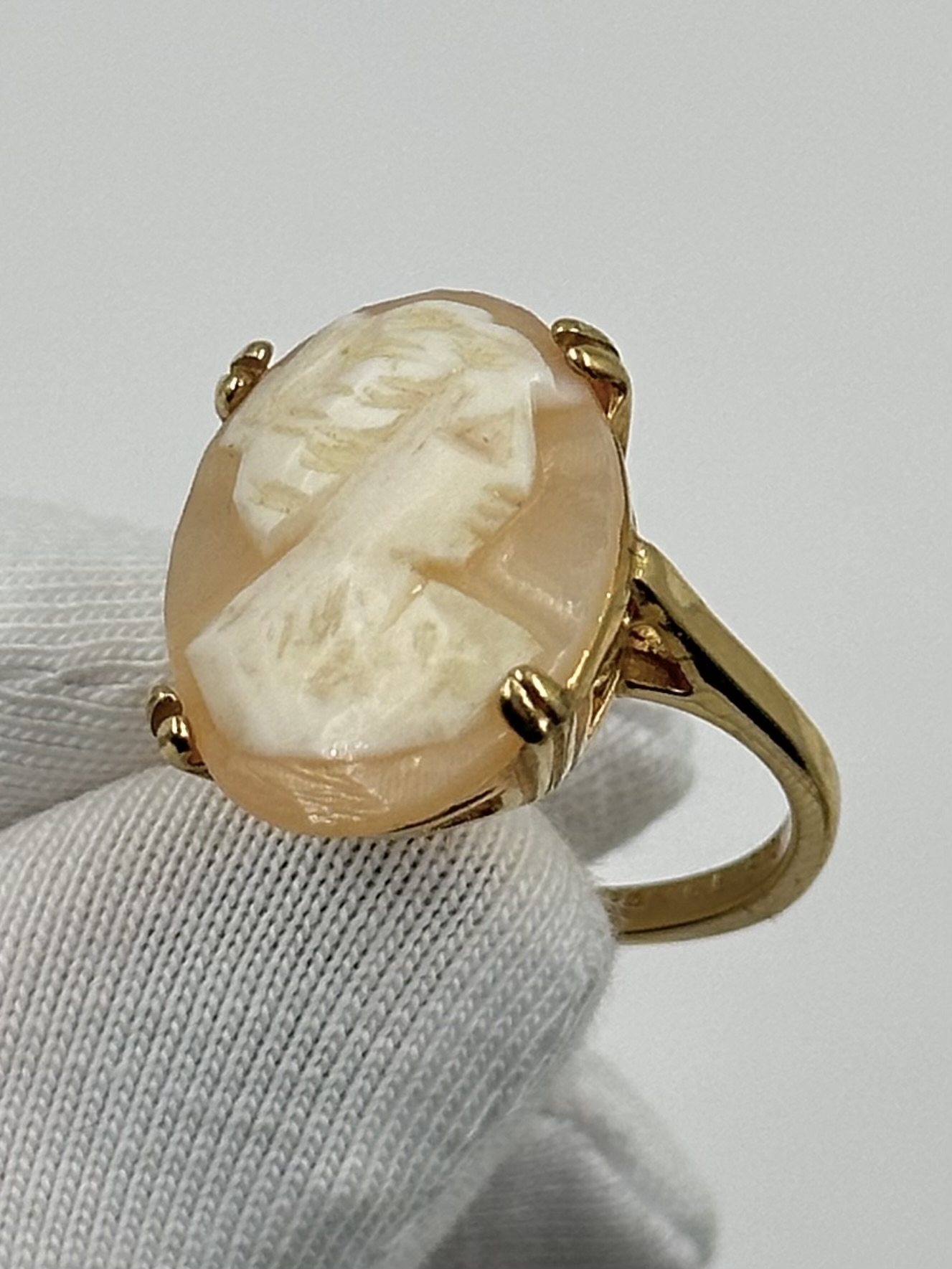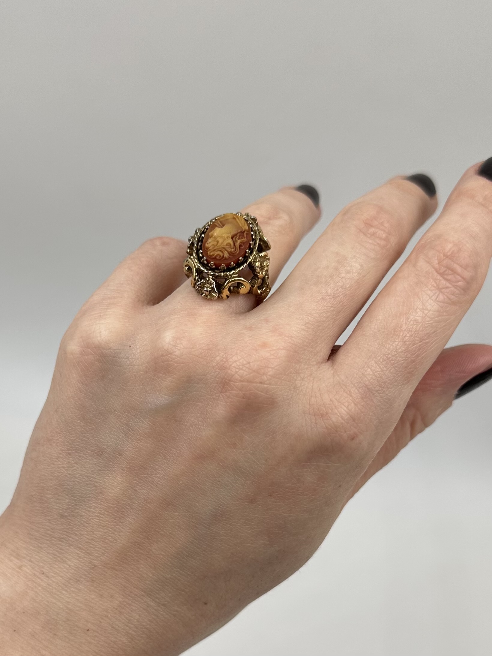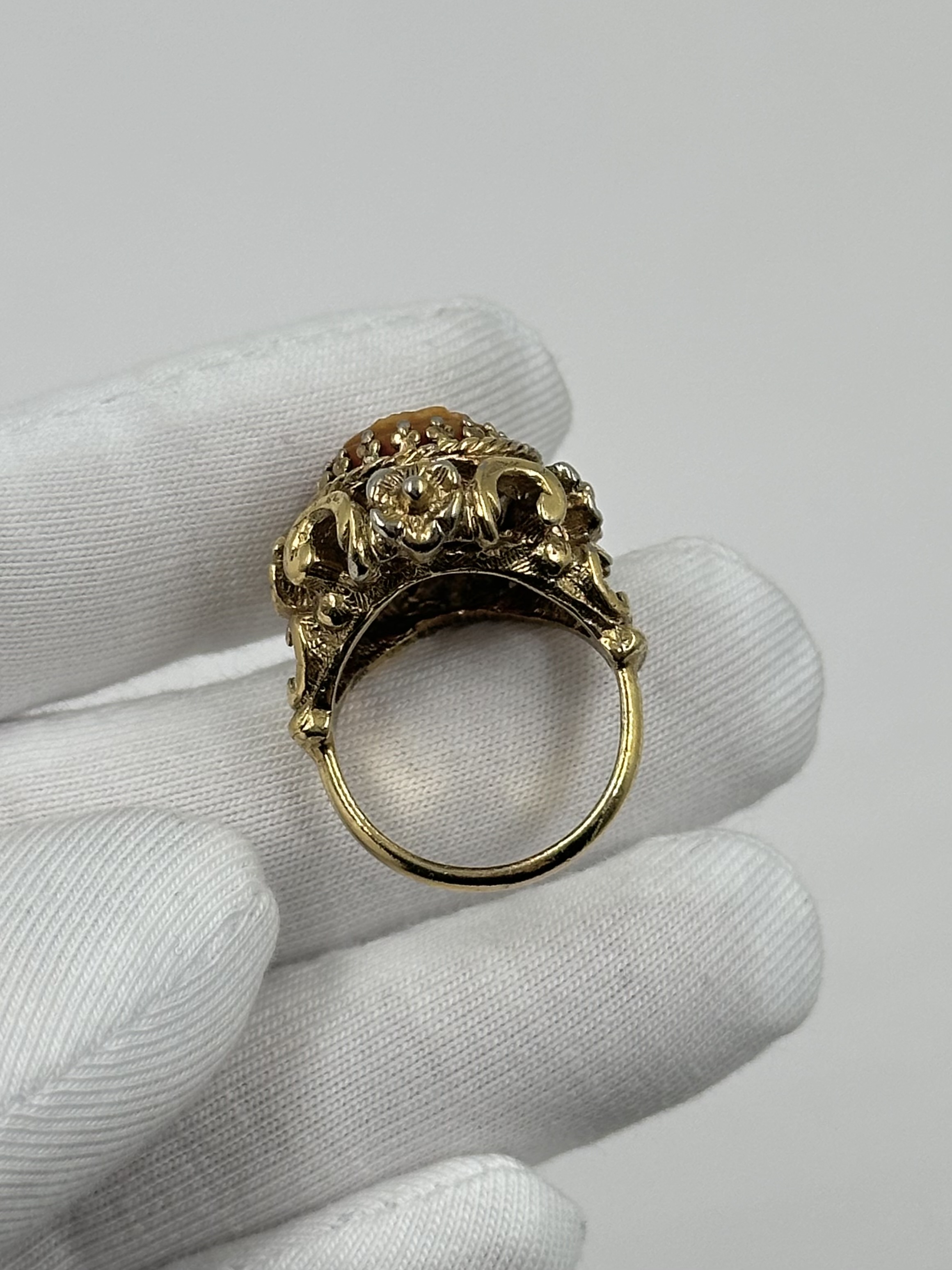 Бижутерный сплав, позолота, пластик. Присутствуют потертости покрытия. Размер 16