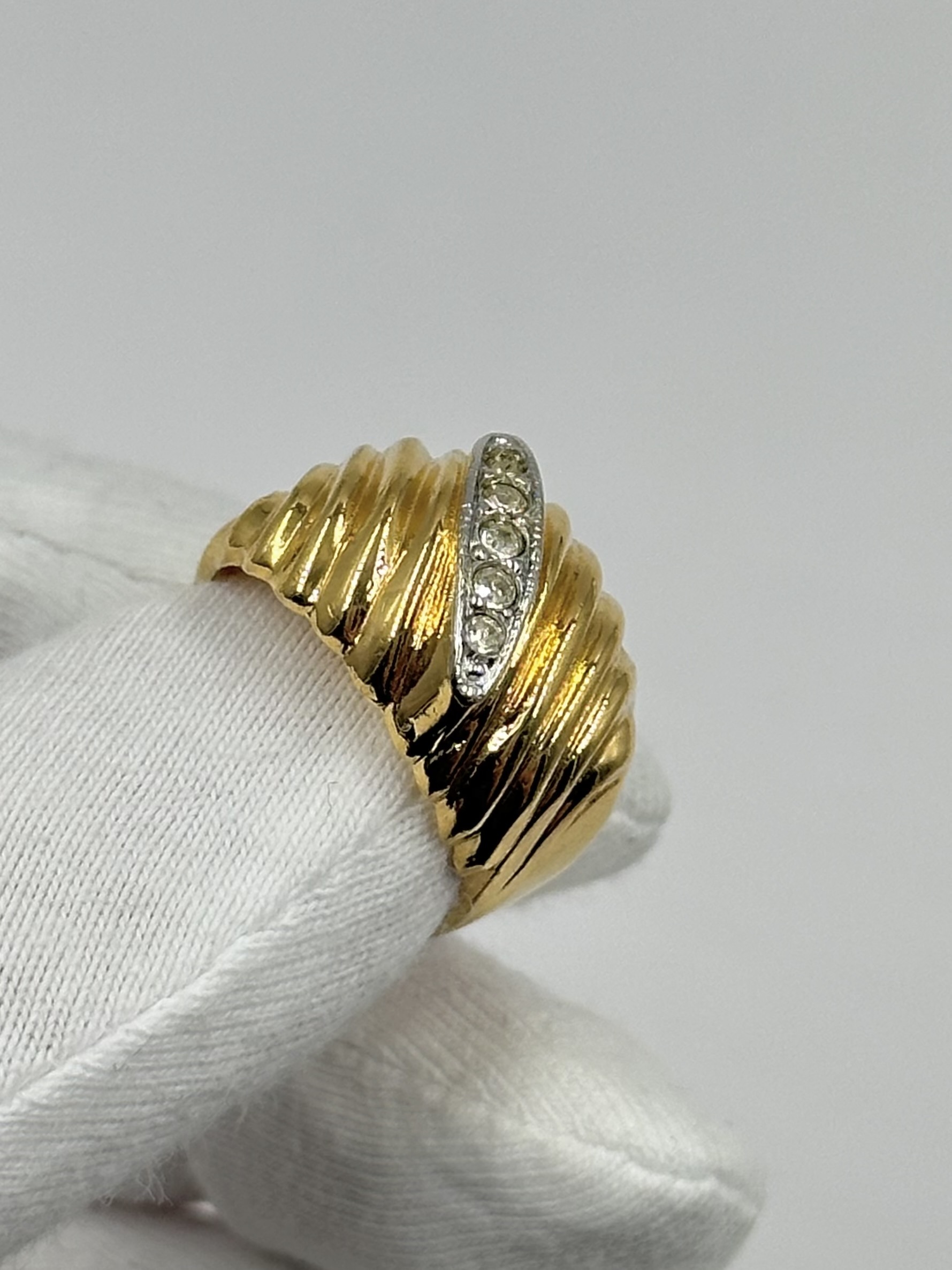 Бижутерный сплав, позолота, кристаллы. Присутствуют небольшие потемнения. Размер 15,5.