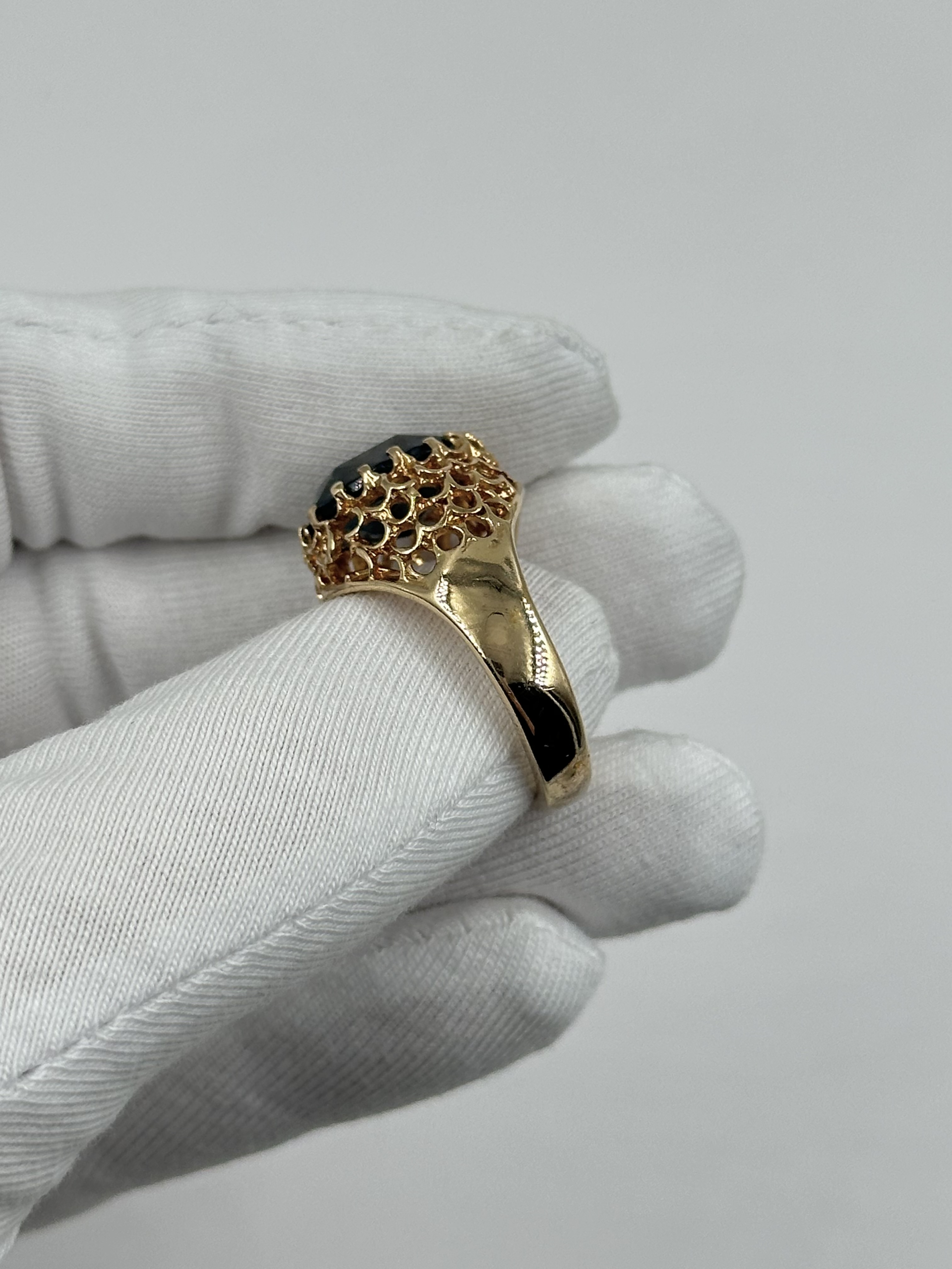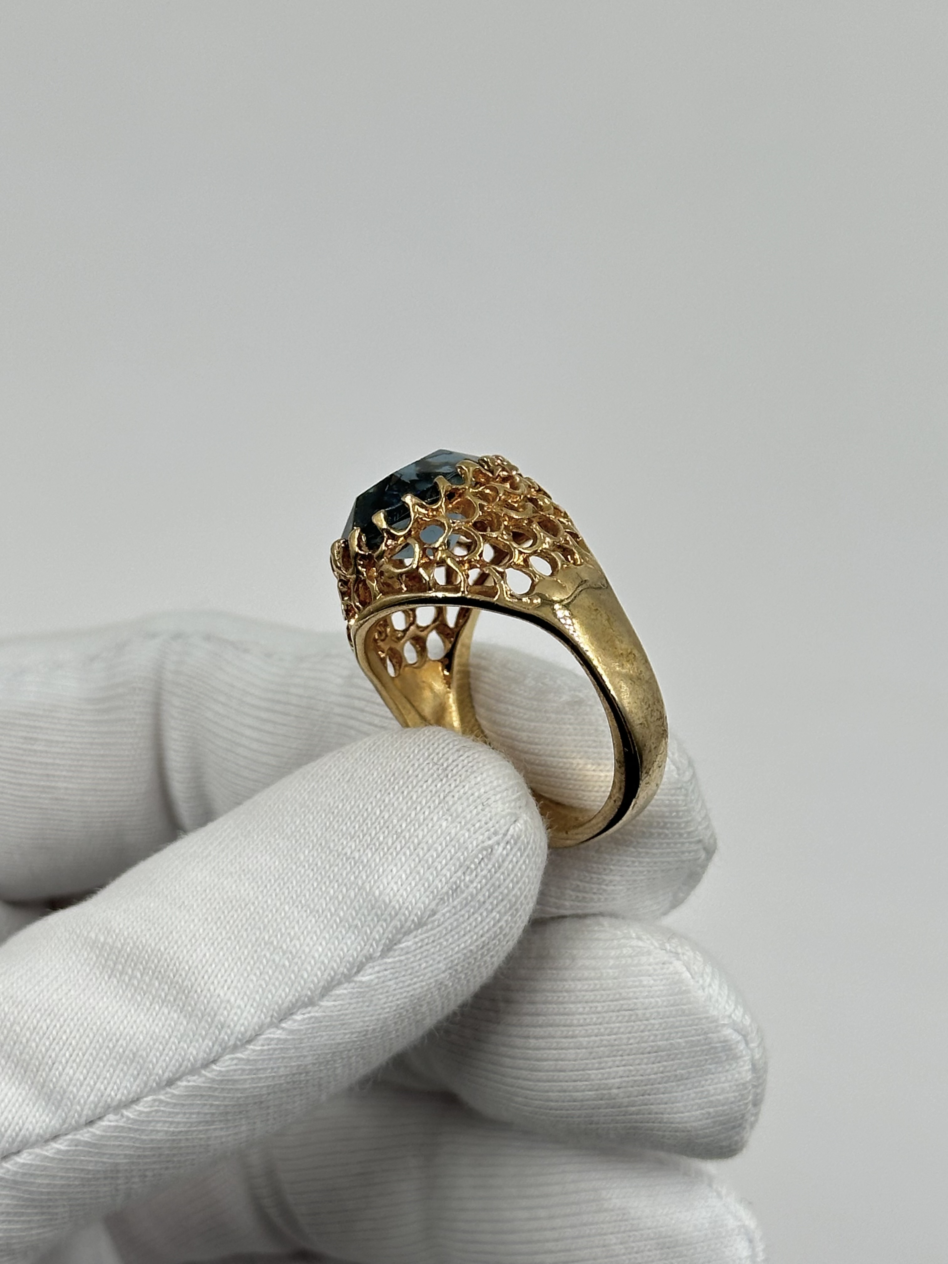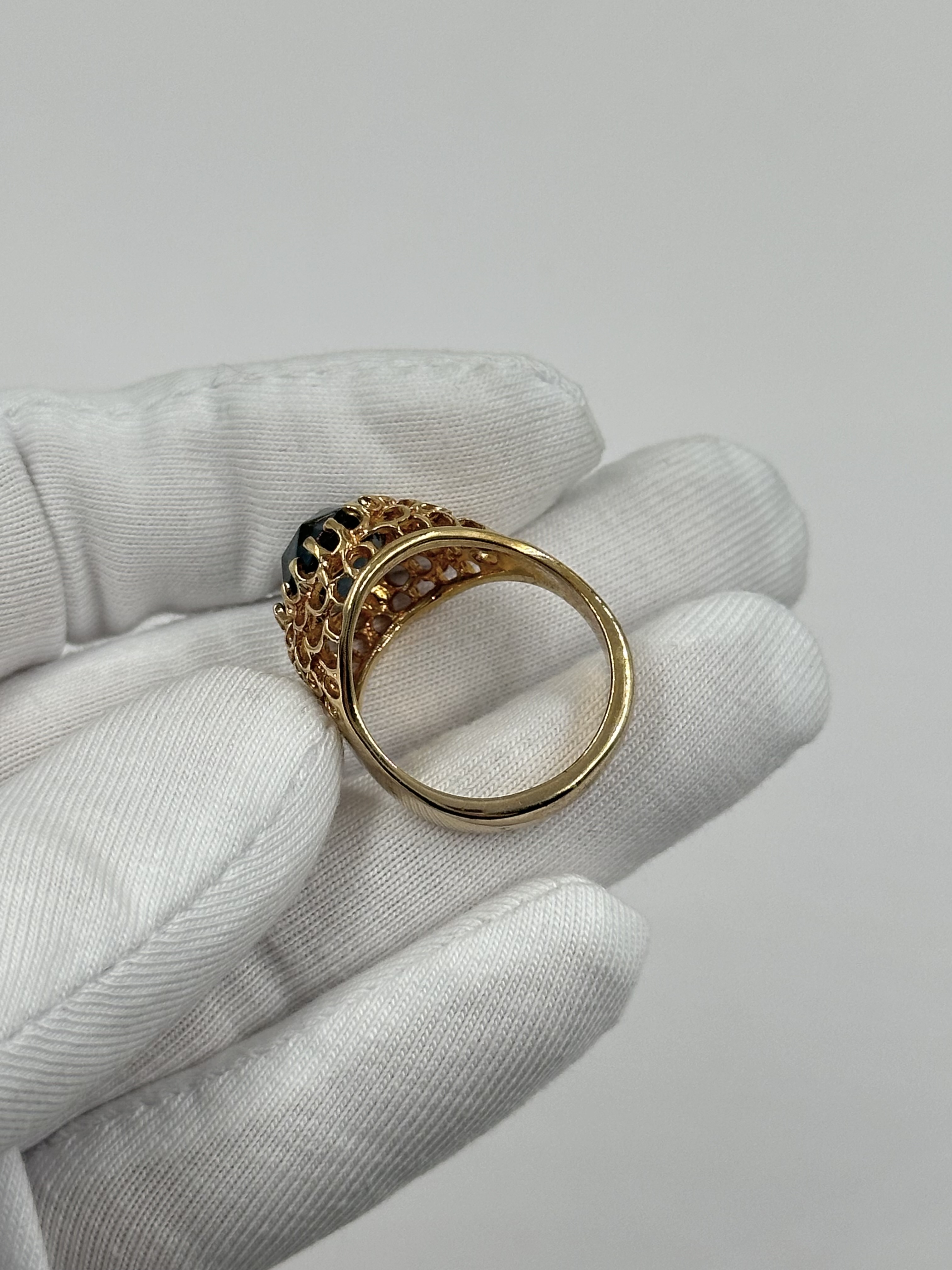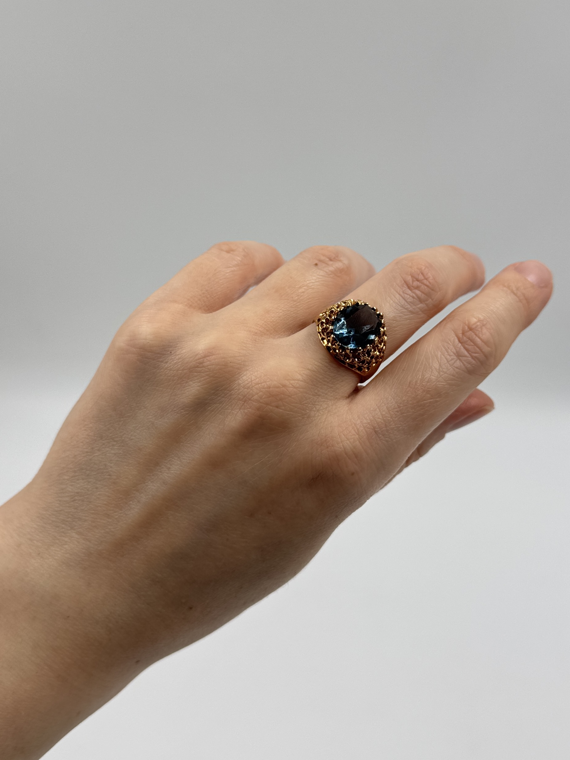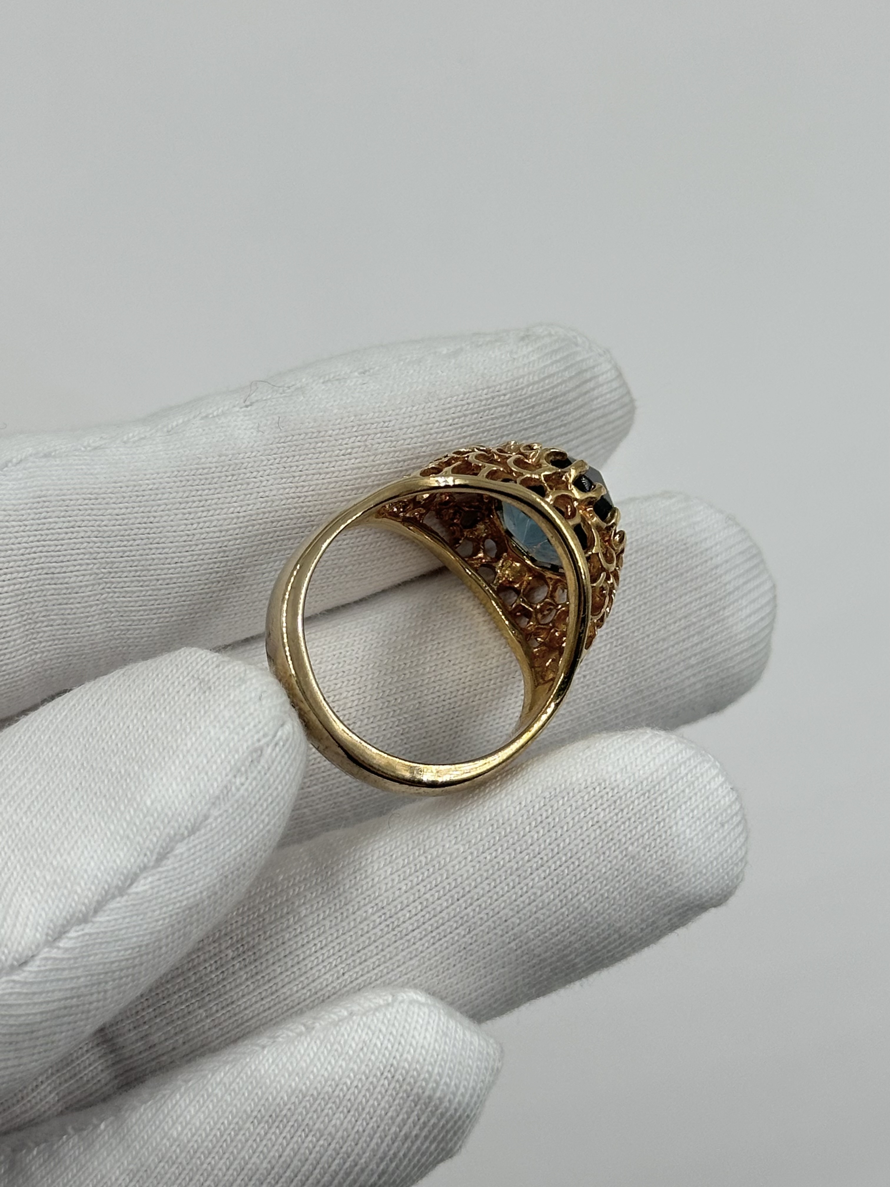 Бижутерный сплав, позолота, кристалл. Размер 17,75. Присутствуют небольшие потемнения позолоты.