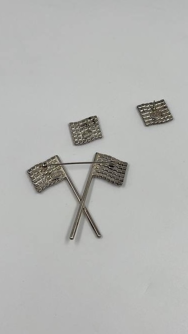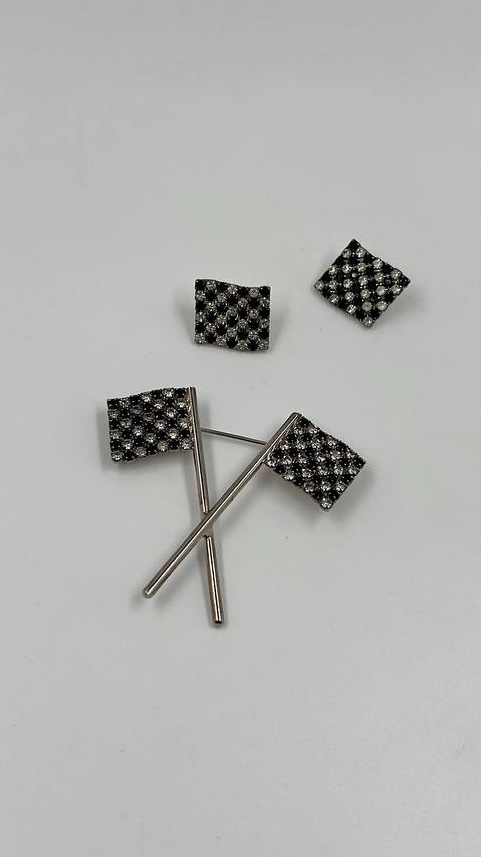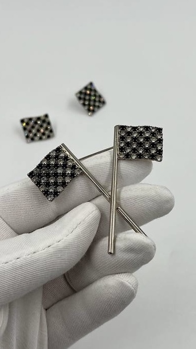 Бижутерный сплав, кристаллы. Размер броши 5,2 х 6см. Размер серег 1,5 х 1,8см.
