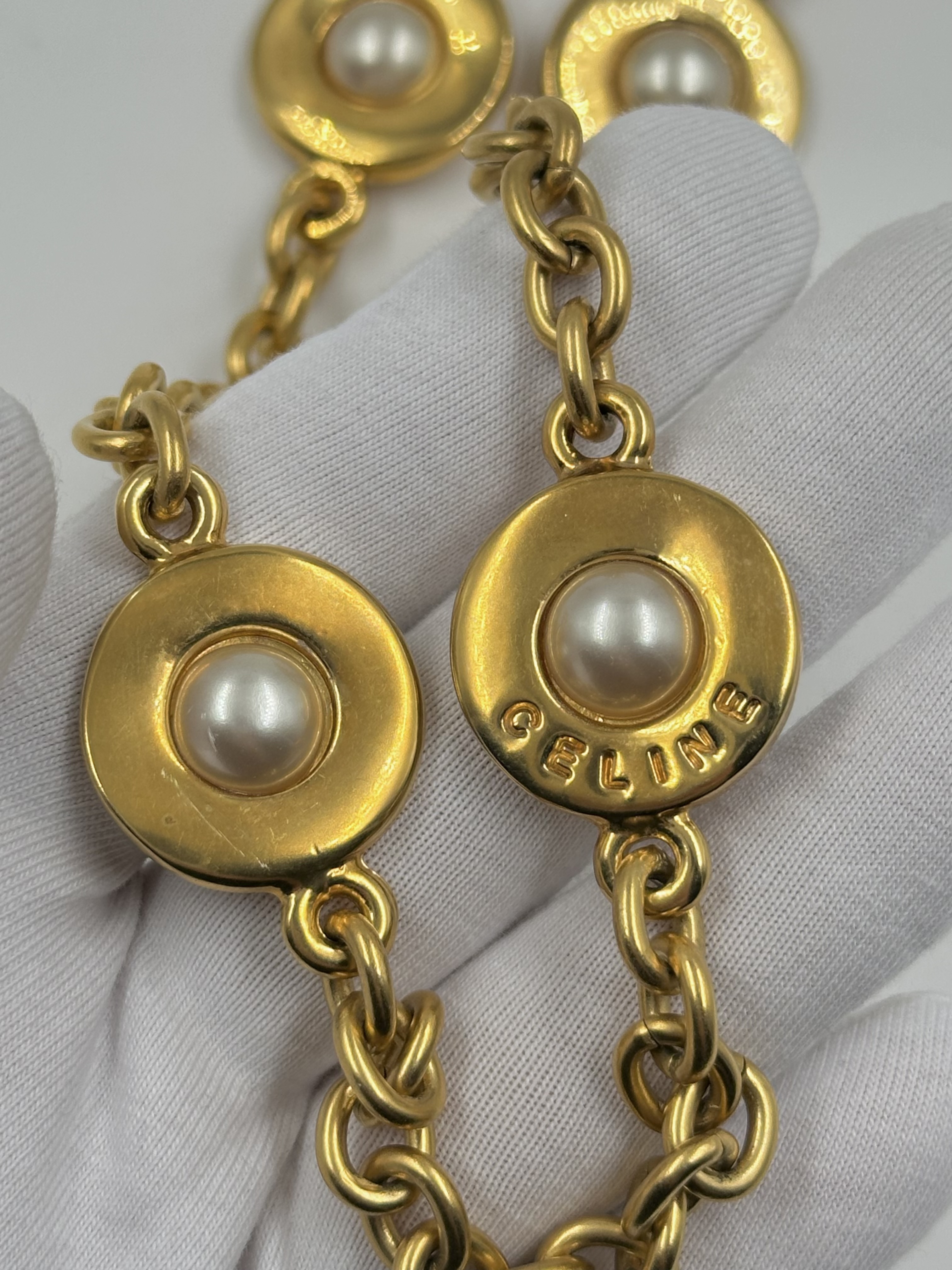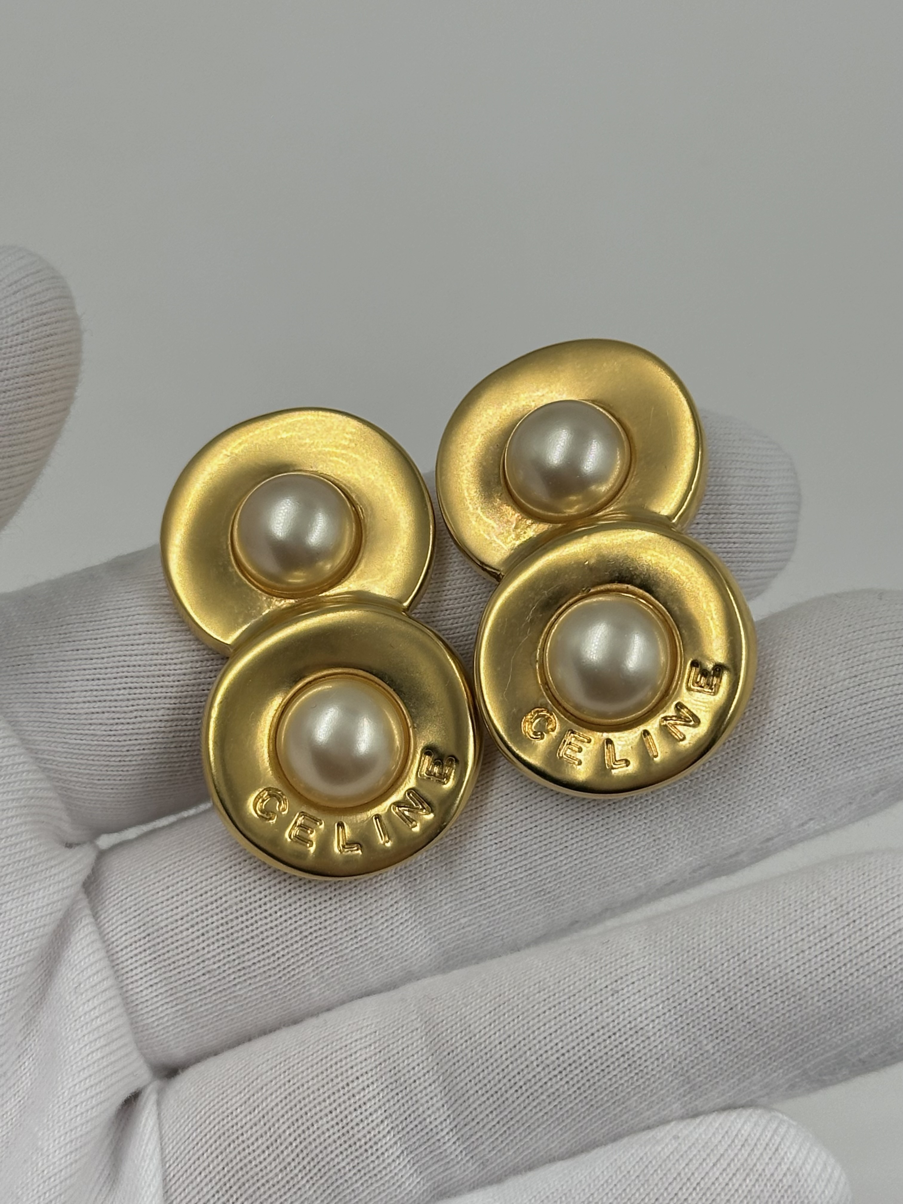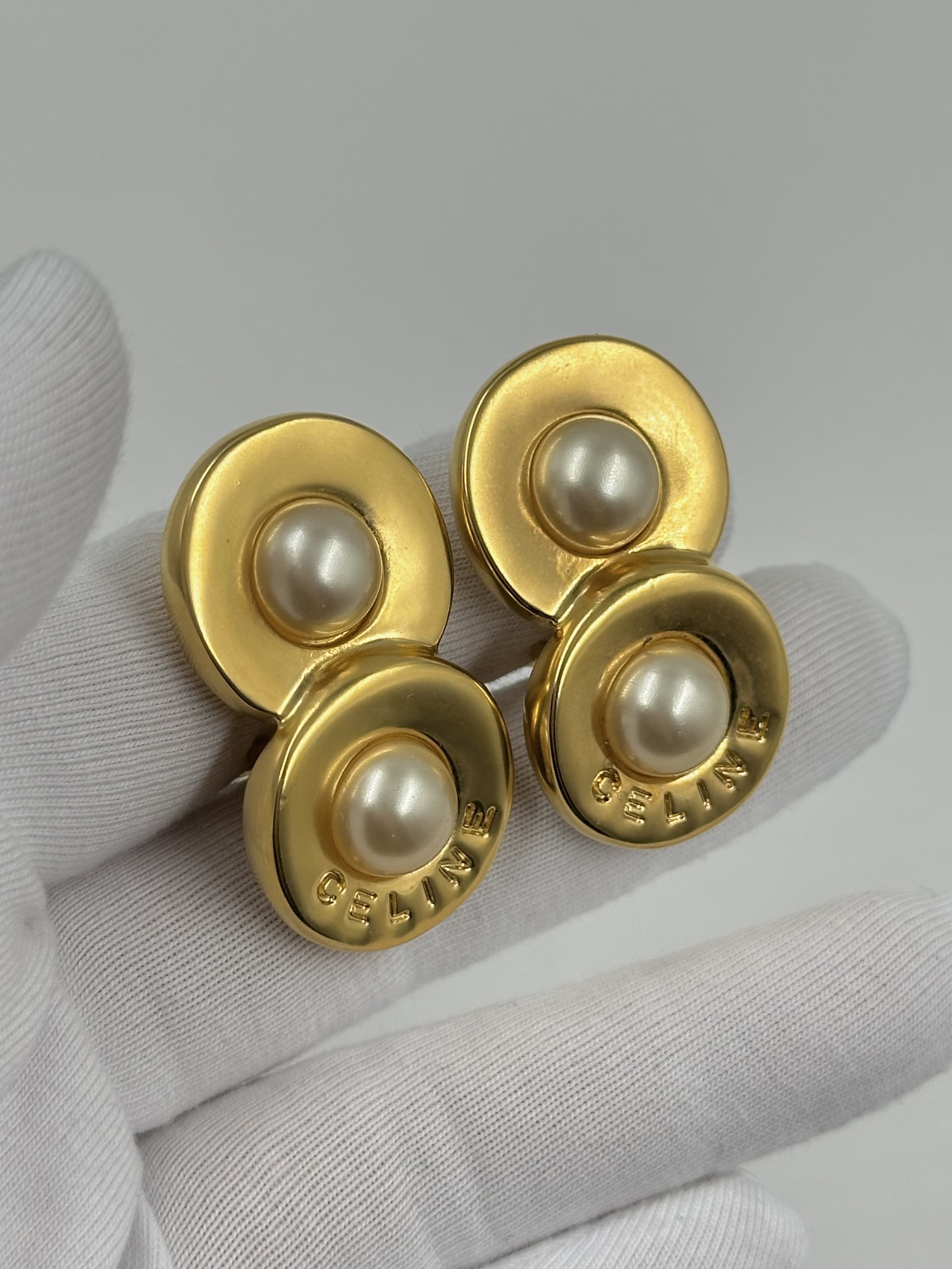 Бижутерный сплав, позолота, имитация жемчуга. Местами присутствуют царапины.