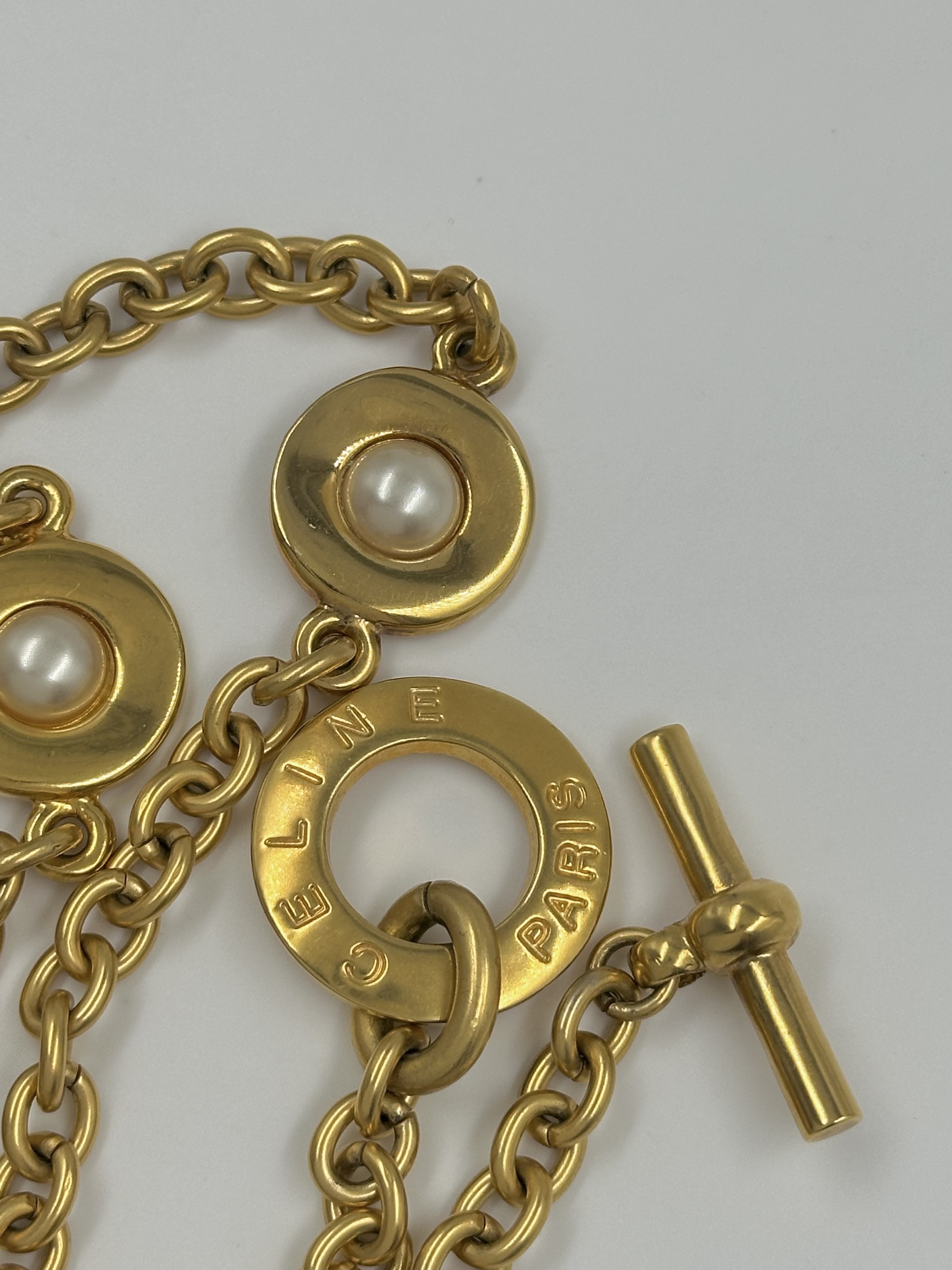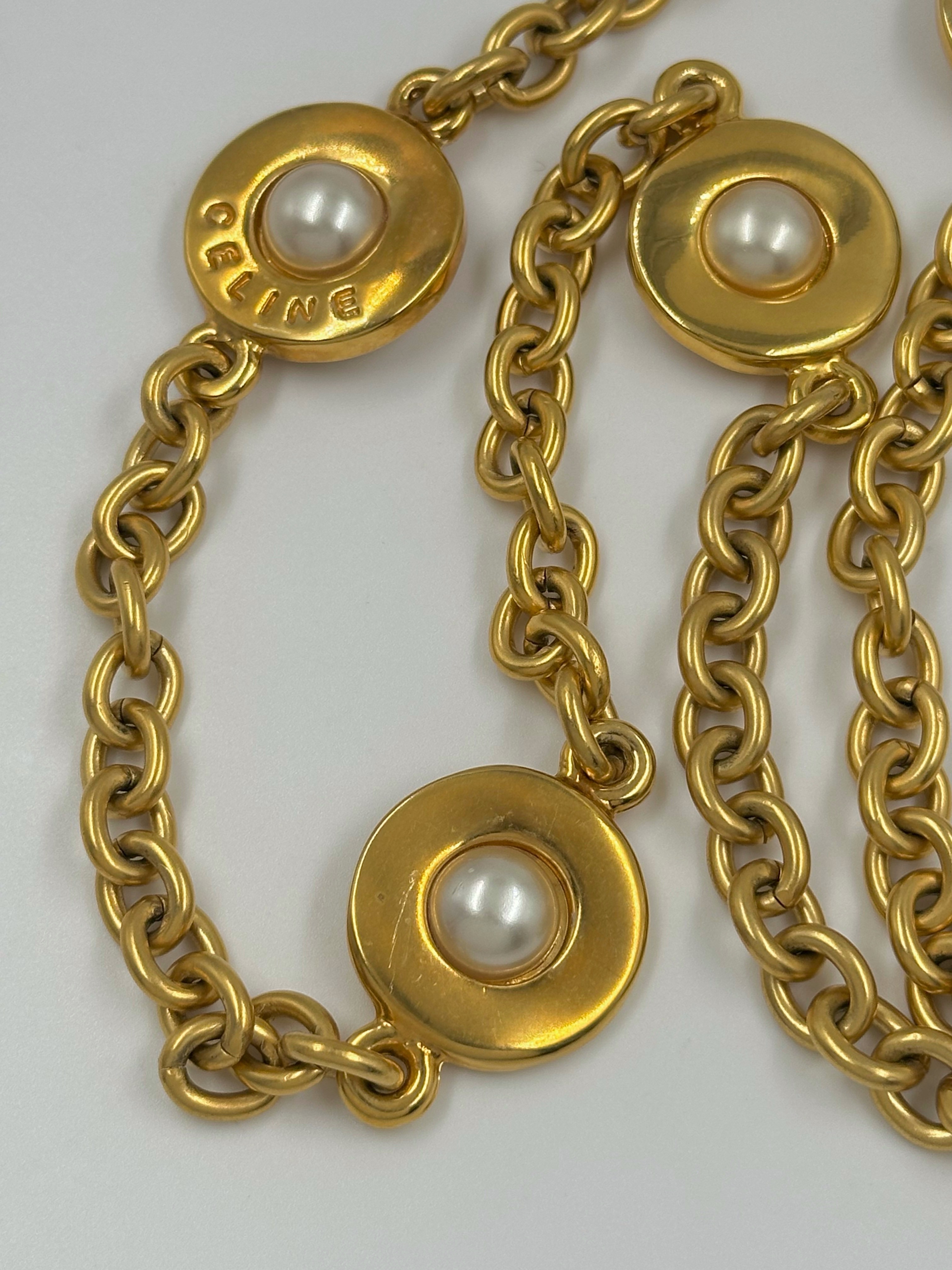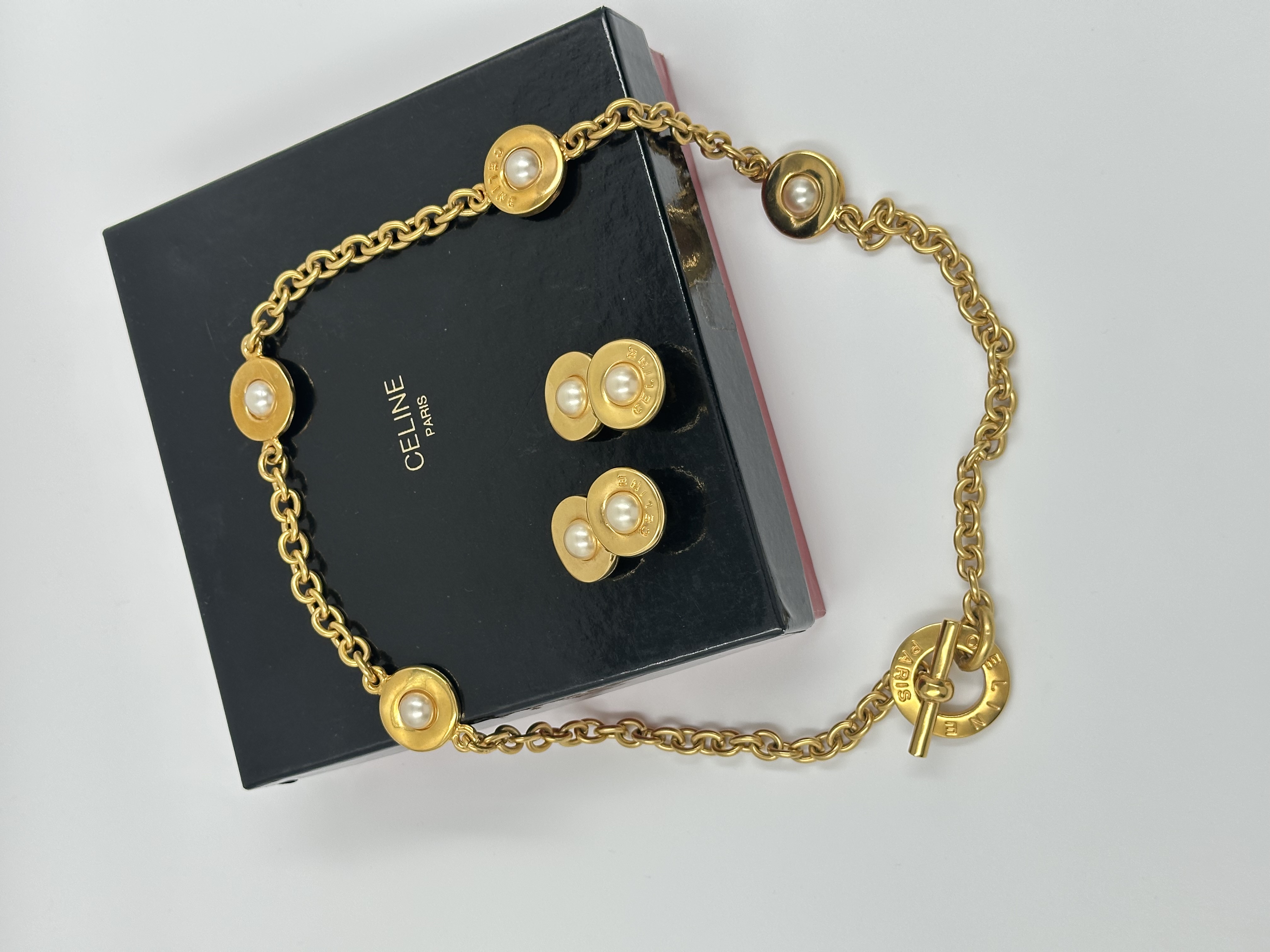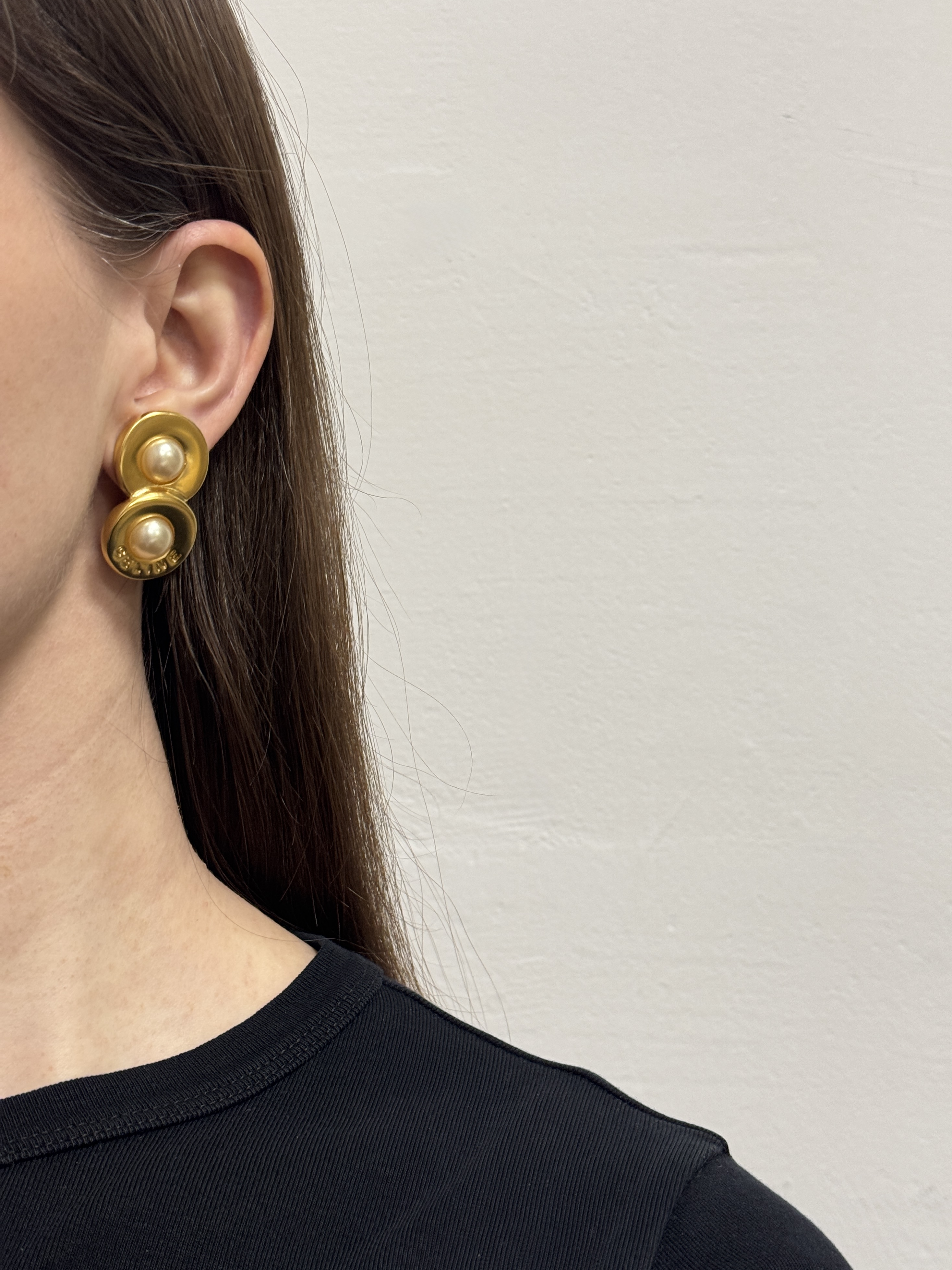 Бижутерный сплав, позолота, имитация жемчуга. Местами присутствуют царапины.