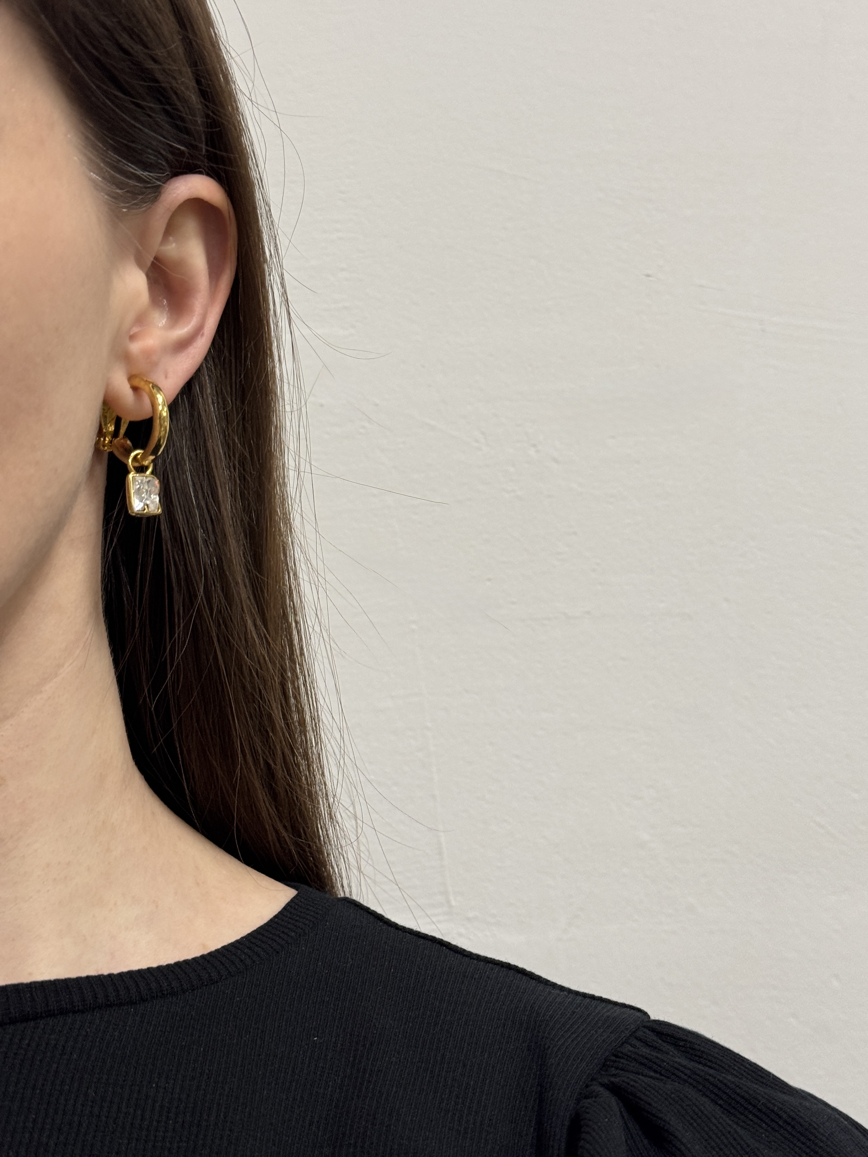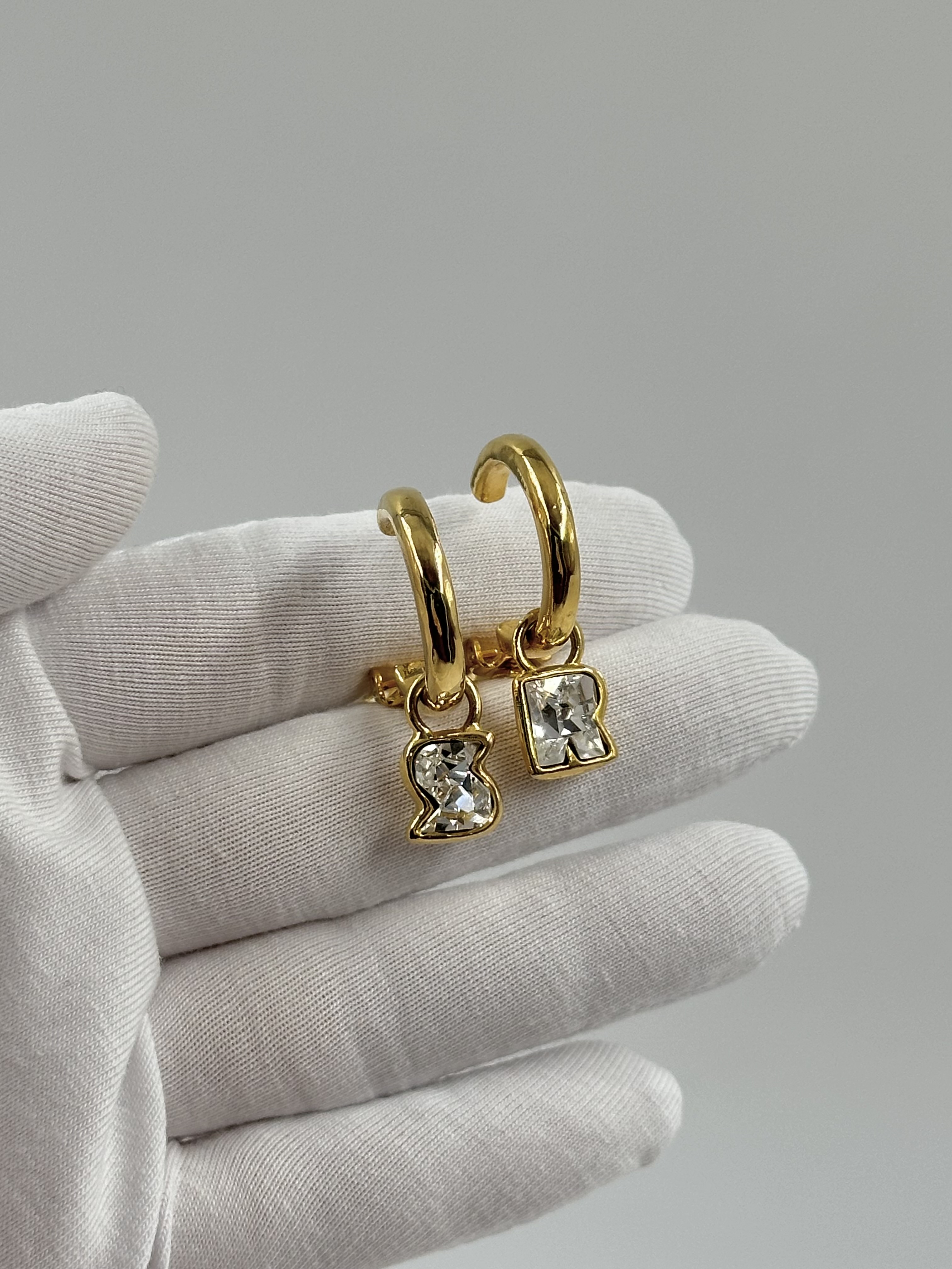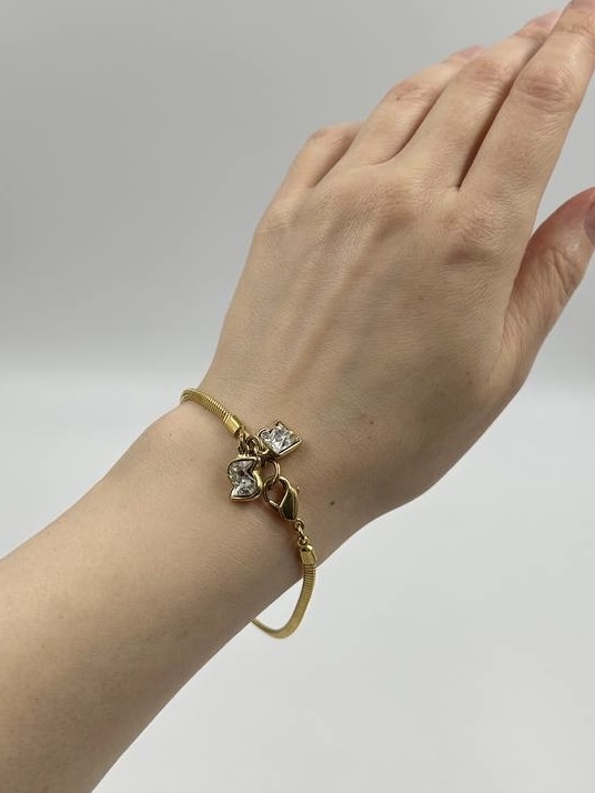 Комплект из трех предметов: клипсы-траснформеры, браслет, кулон на цепи из бижутерного сплава с позолотой с кристаллами. Присутствуют потертости позолоты на кулоне и браслете. Длина браслета 19,5-20,5см. Длина цепи 37-39,5см. Длина клипс с подвесками 3,2см, диаметр колец 2,2см.