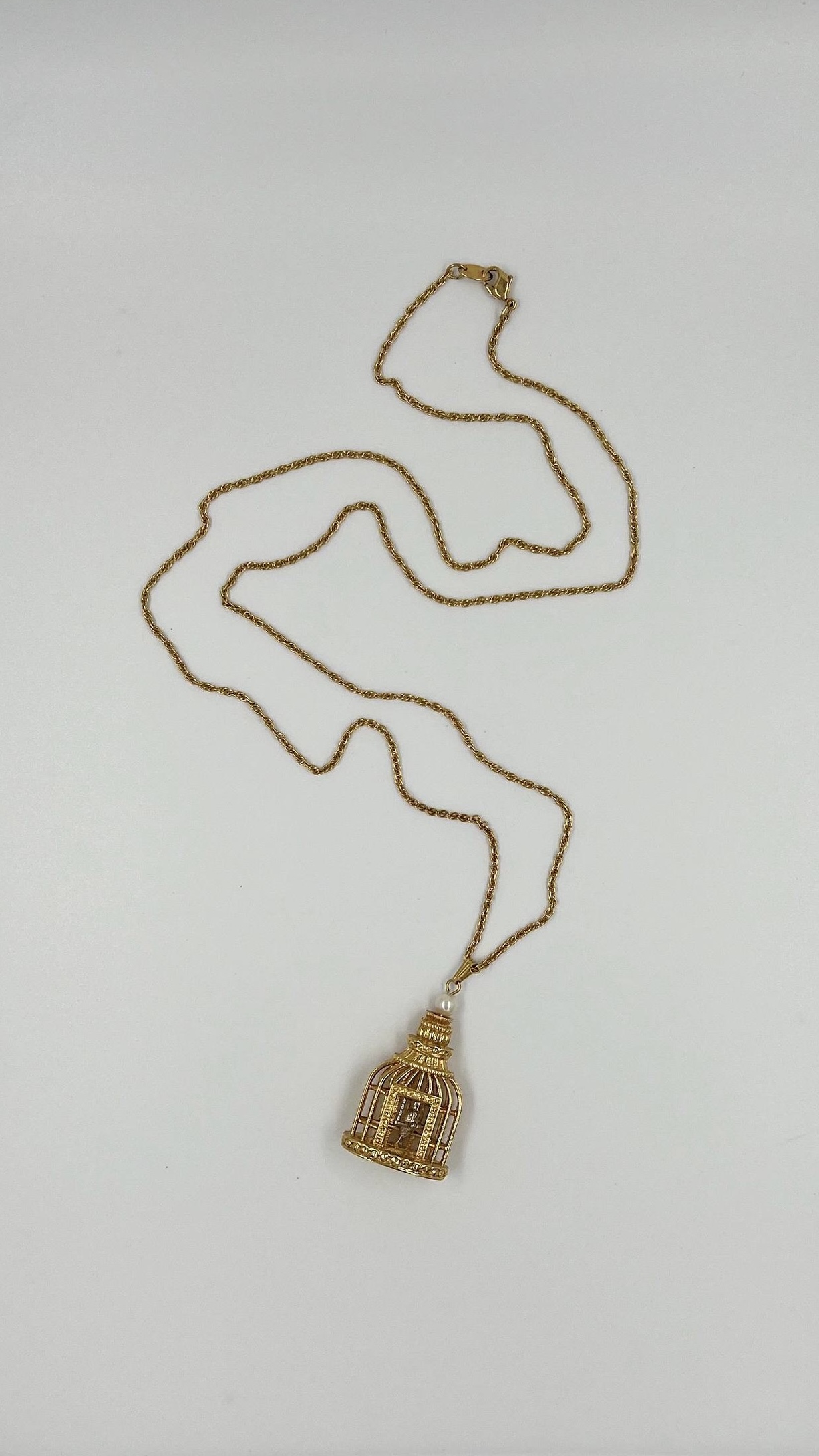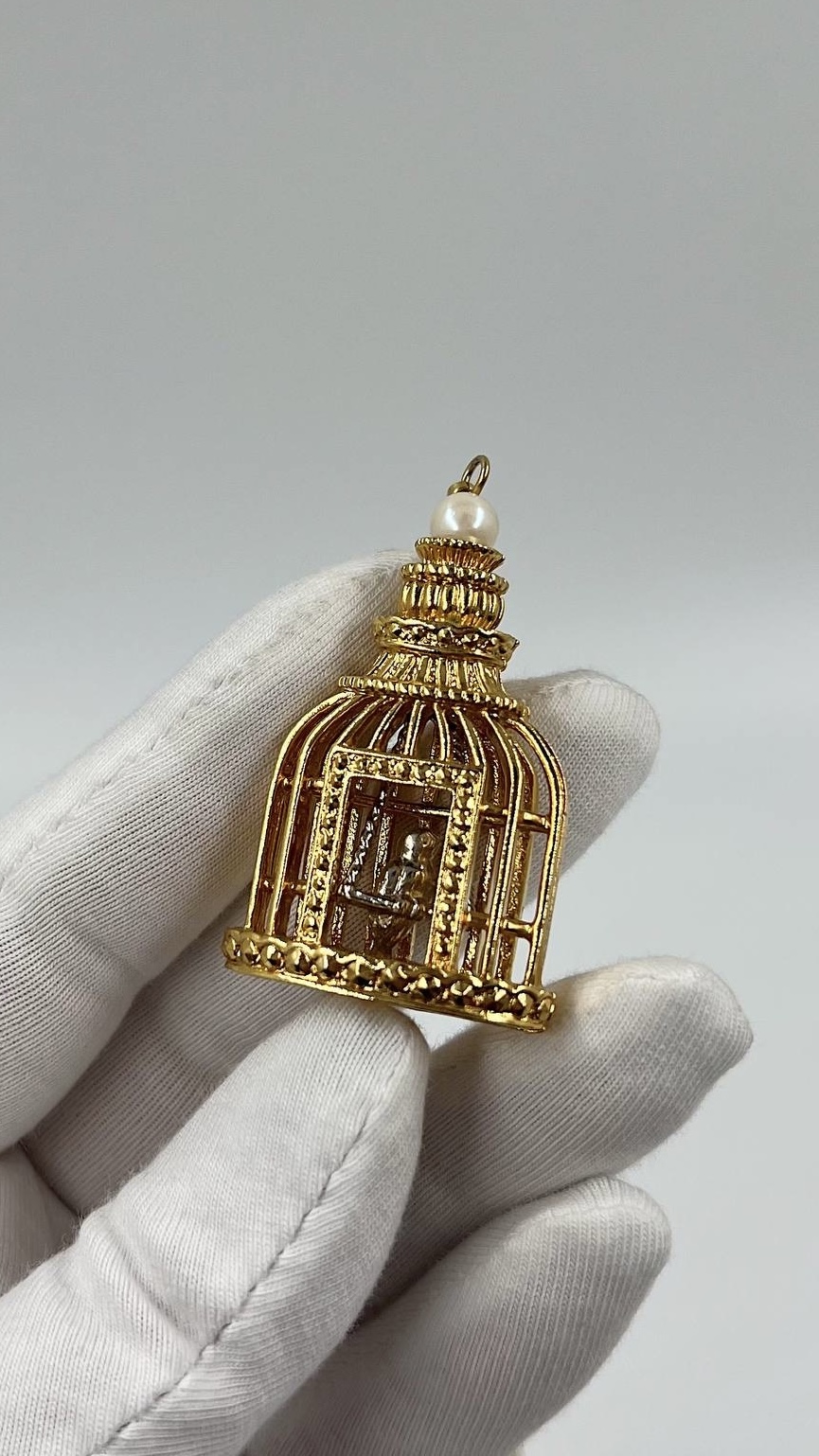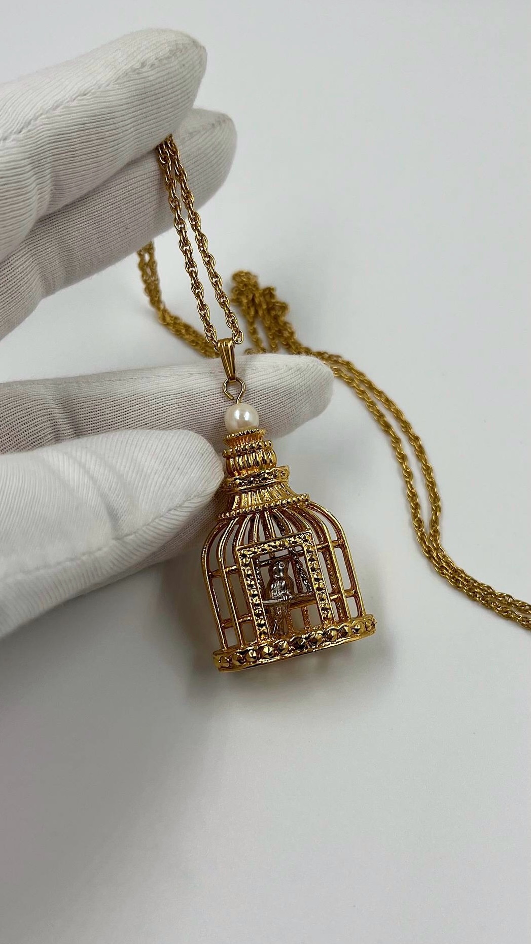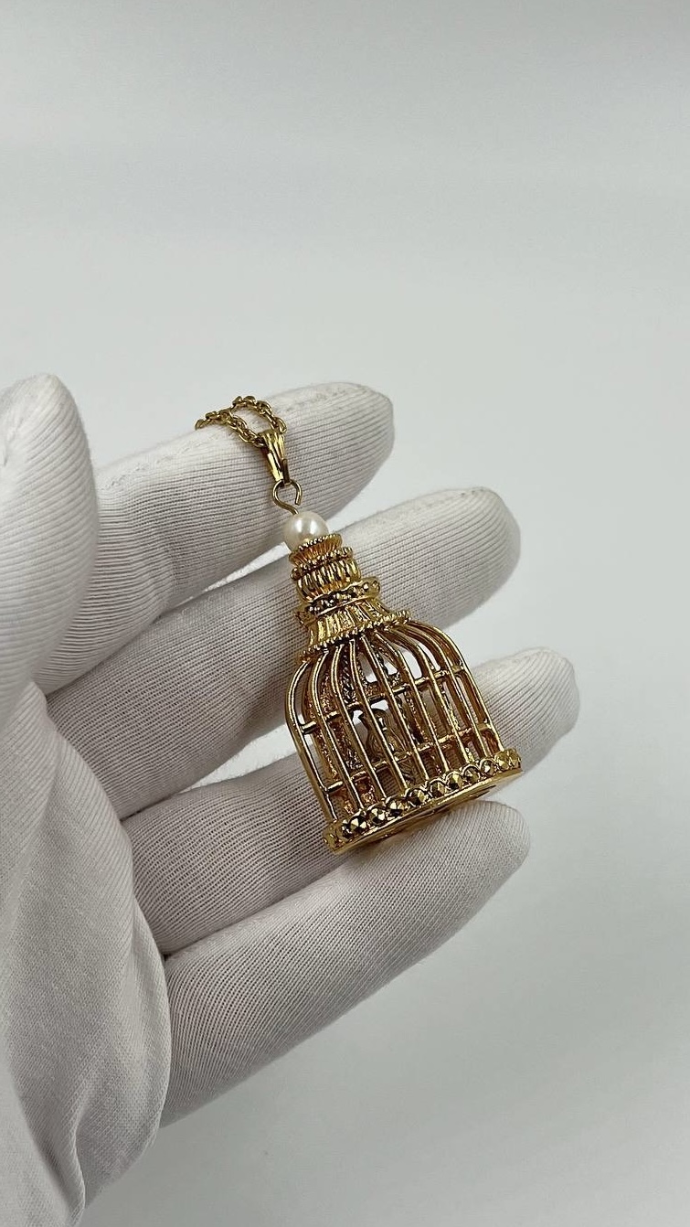 Бижутерный сплав, имитация жемчуга. Длина цепи 82см. Размер кулона 4,5см.
