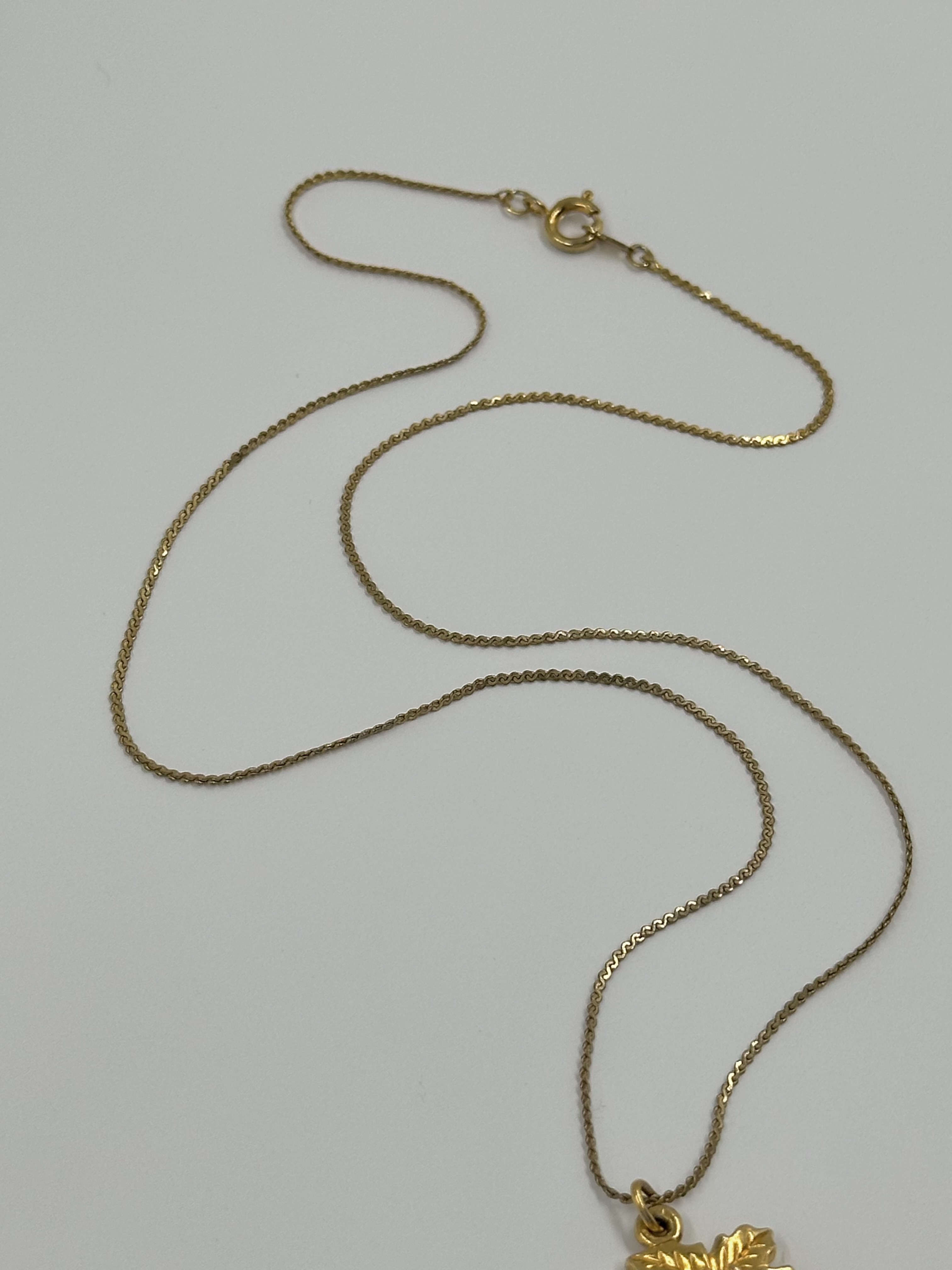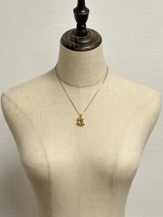 Бижутерный сплав, кристалл. На цепи присутствуют потемнения. Размер кулона 2,3 х 1,9см. Длина цепи 45см.