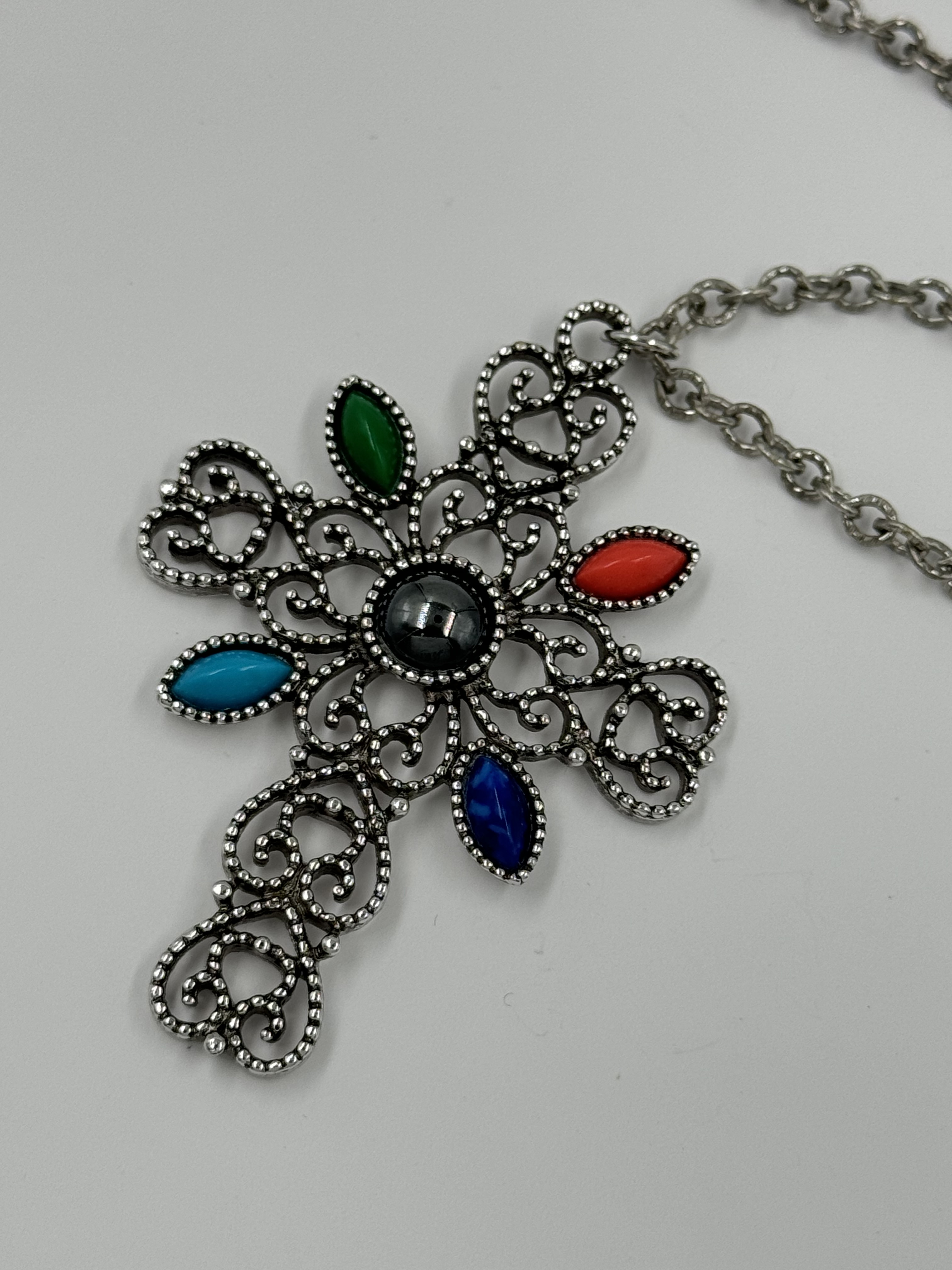 Бижутерный сплав. Длина цепи 61см. Размер кулона 7,5 х 5,2см.