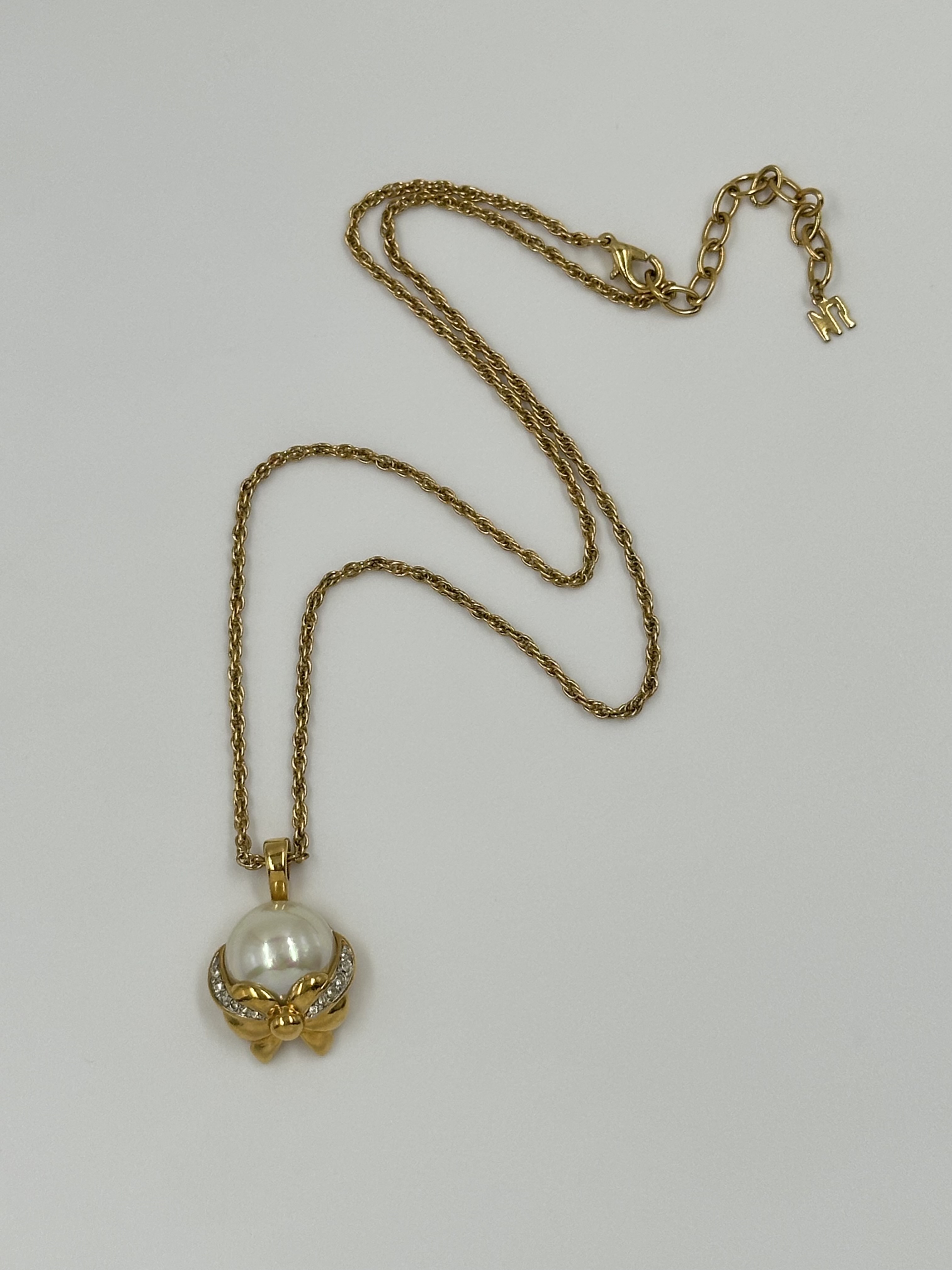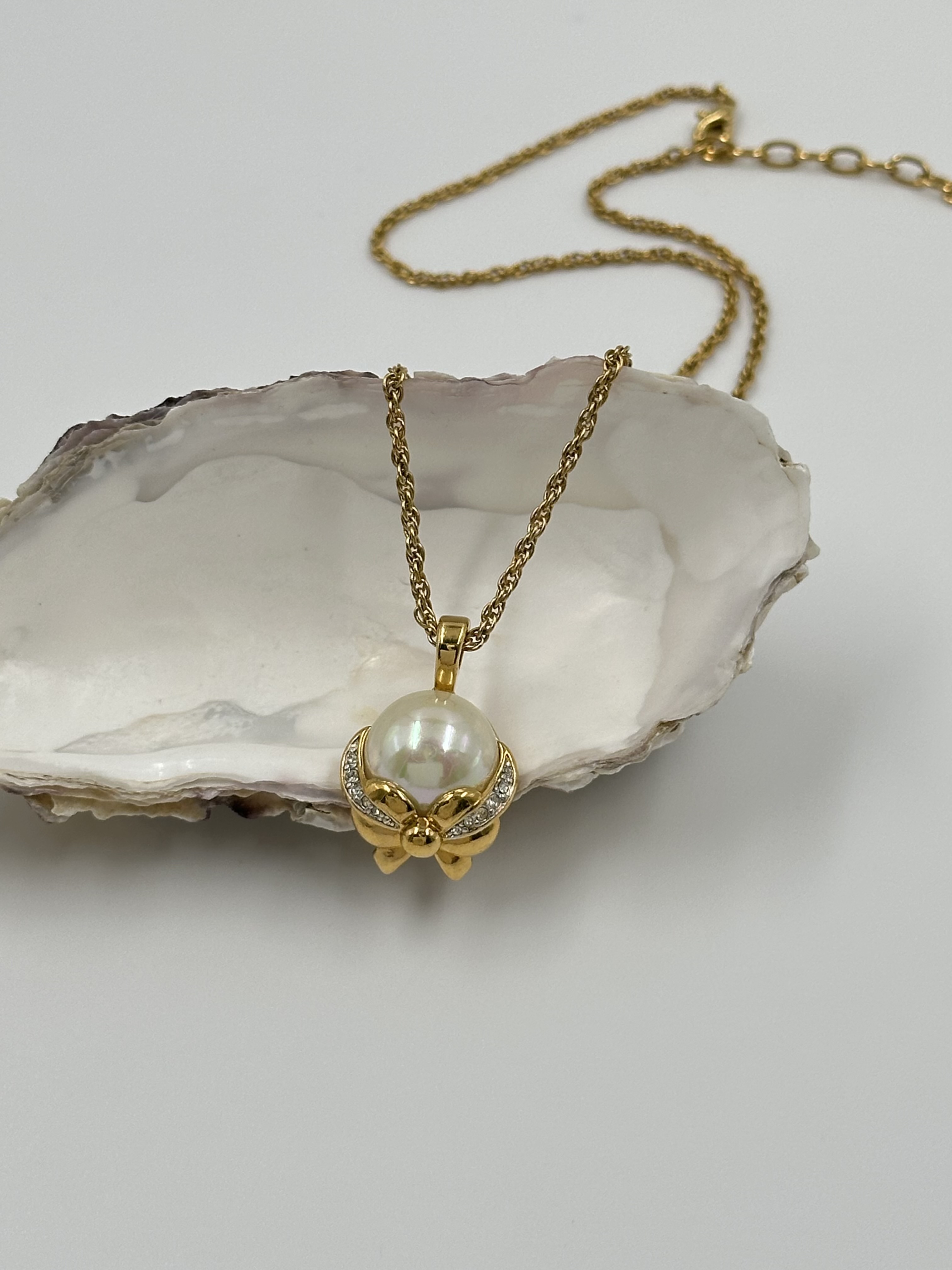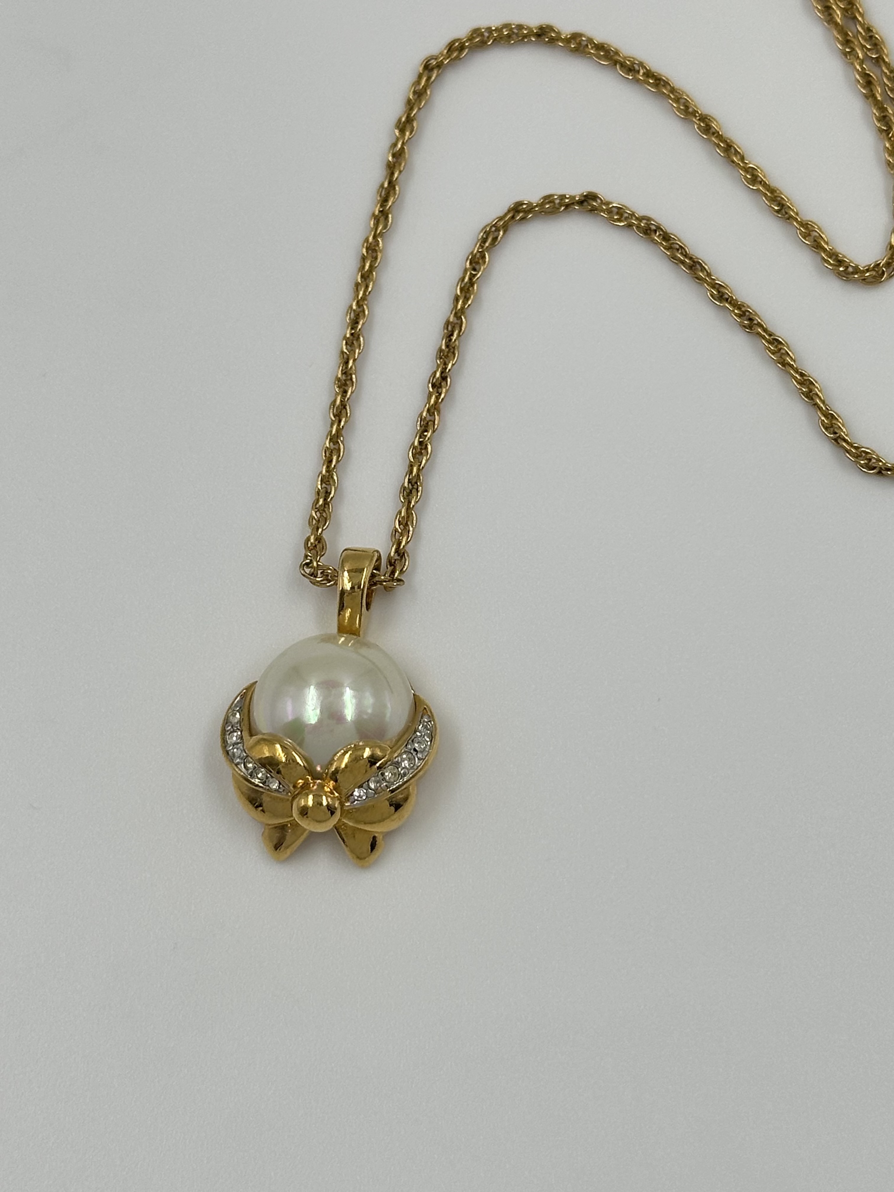 Бижутерный сплав, позолота, имитация жемчуга, кристаллы.