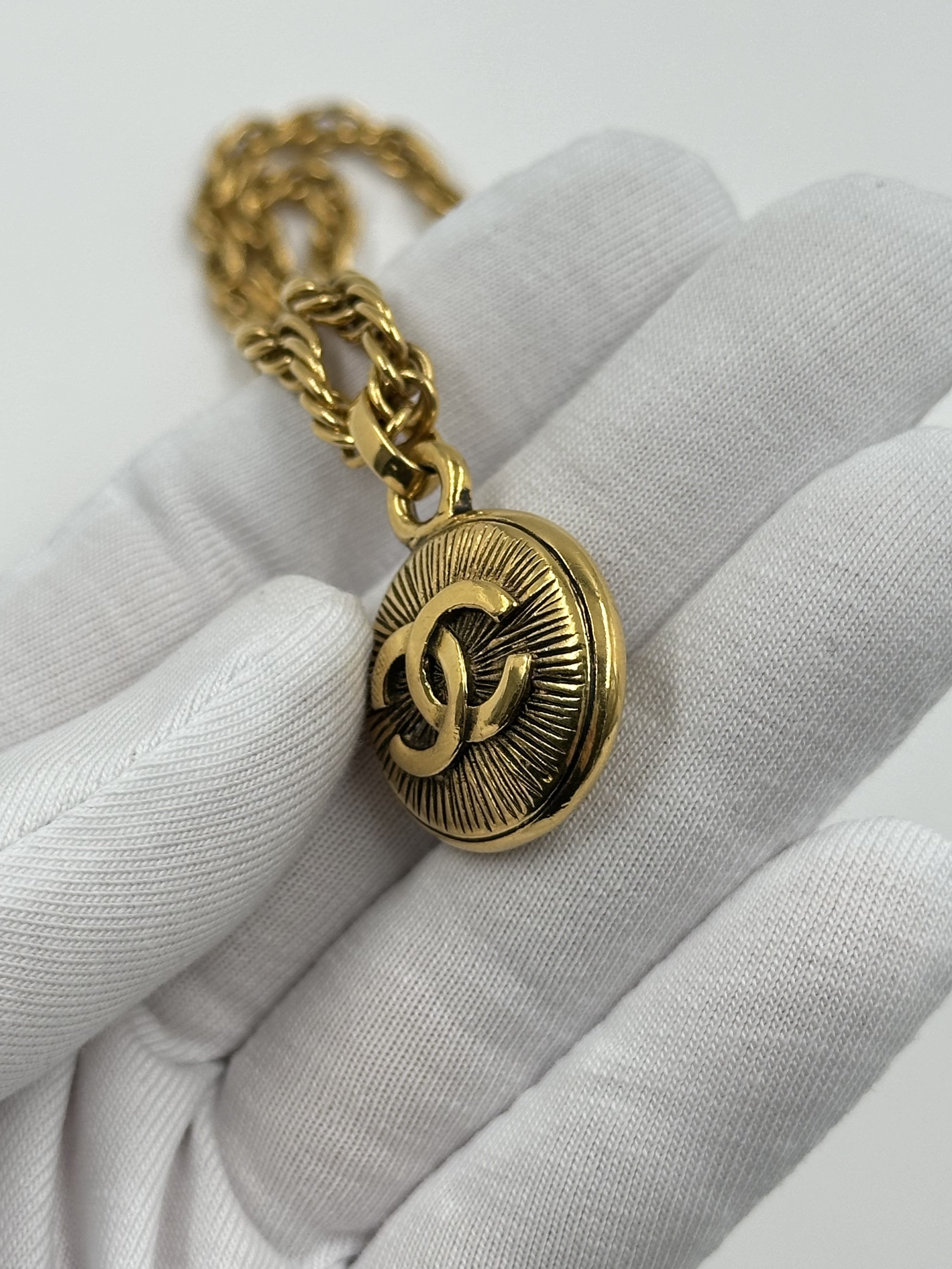 Бижутерный сплав, позолота. Размер кулона 2,2см. Длина цепи 42см. 1991-1992 годы.