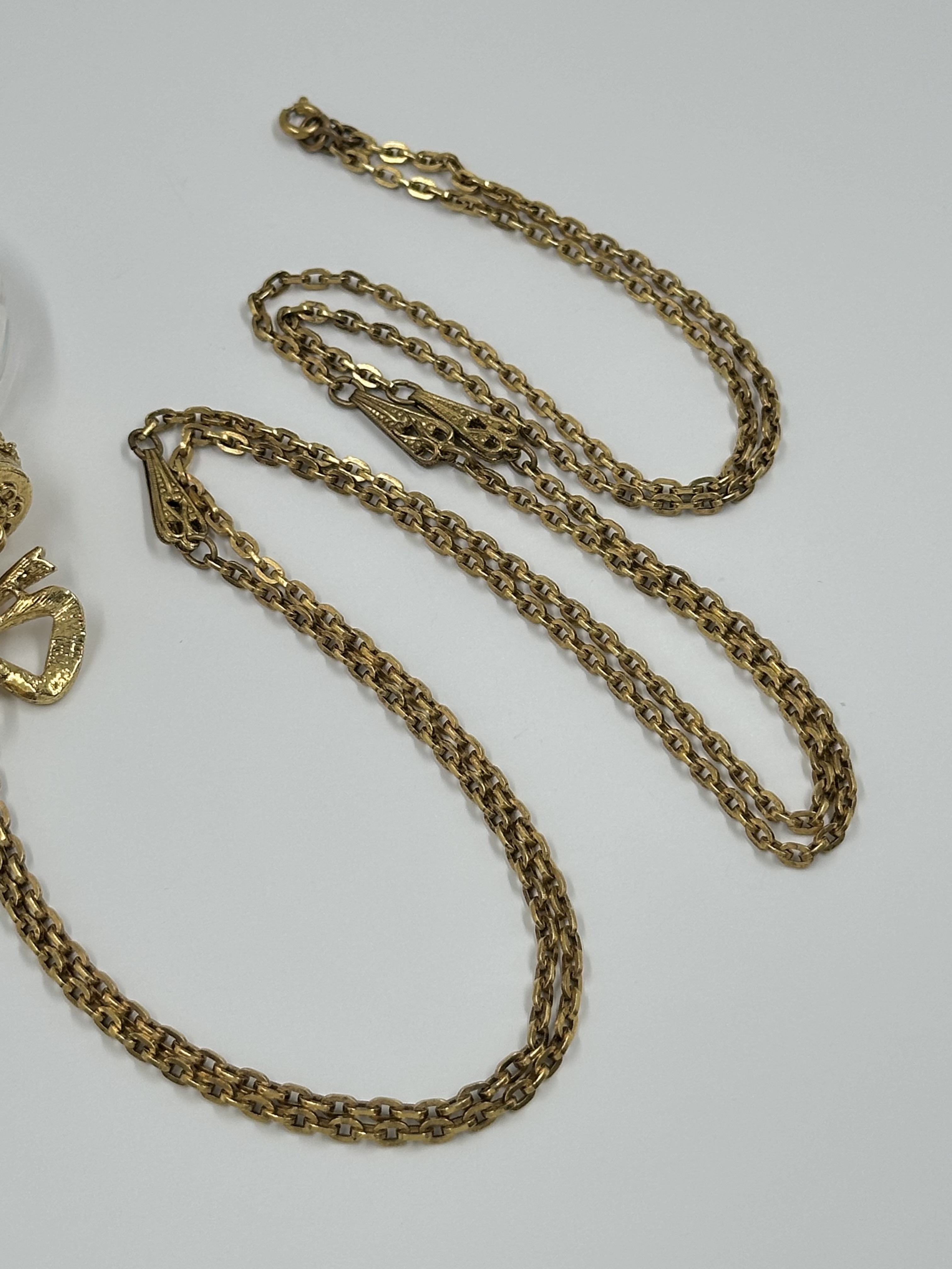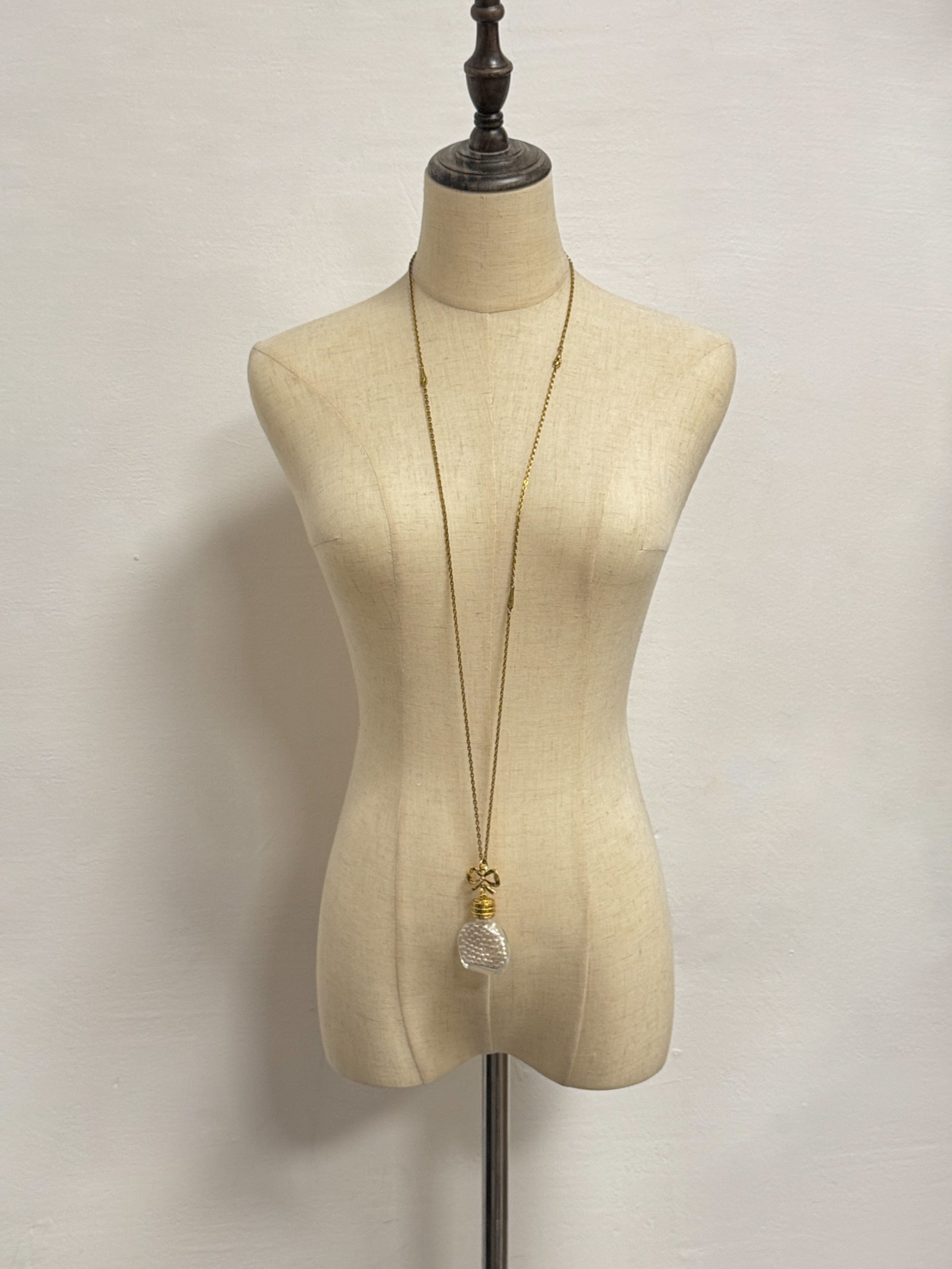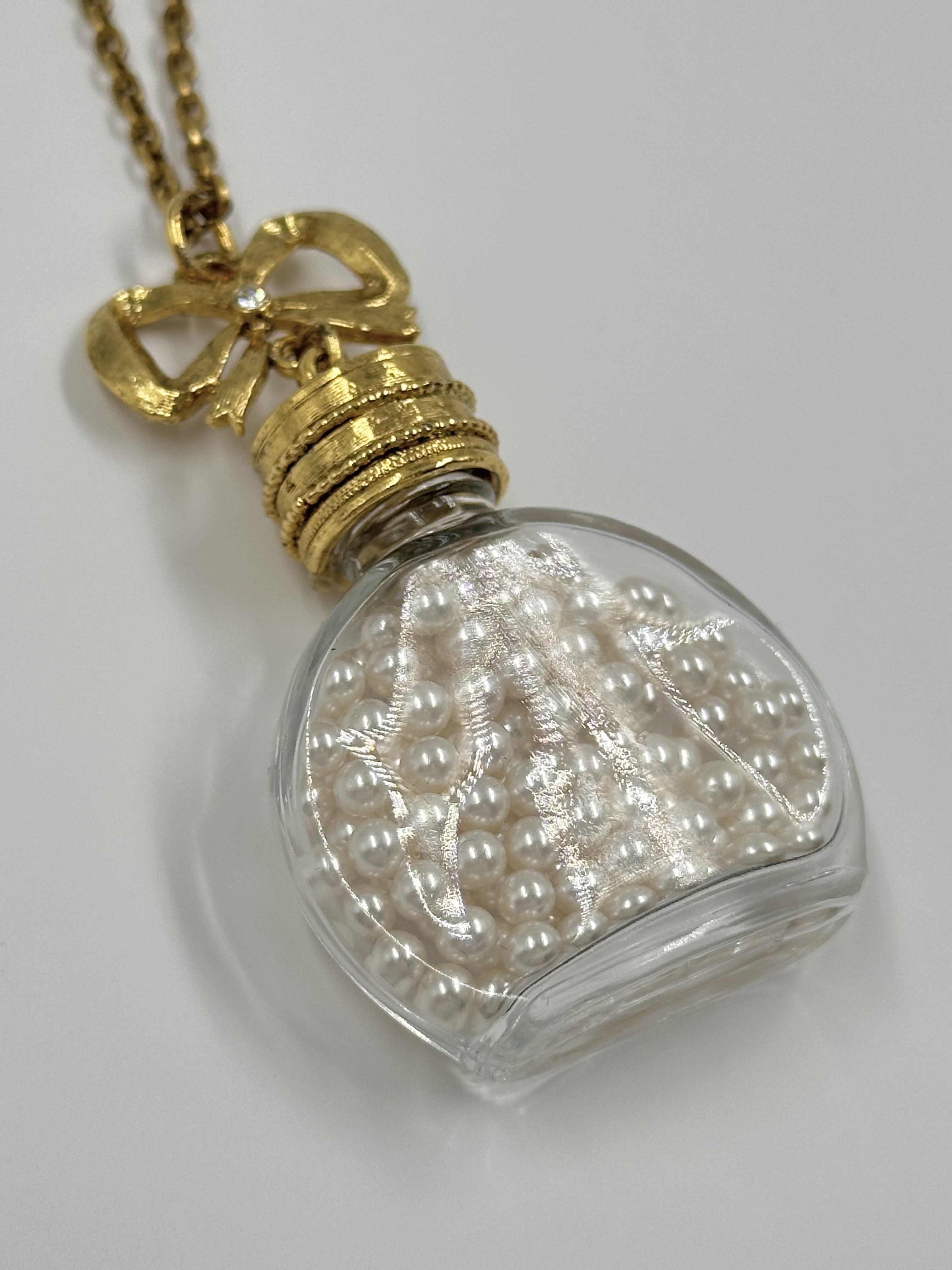 Бижутерный сплав, имитация жемчуга. Размер кулона 4,3 х 8см. Длина цепи 112см. На цепи небольшие потемнения.