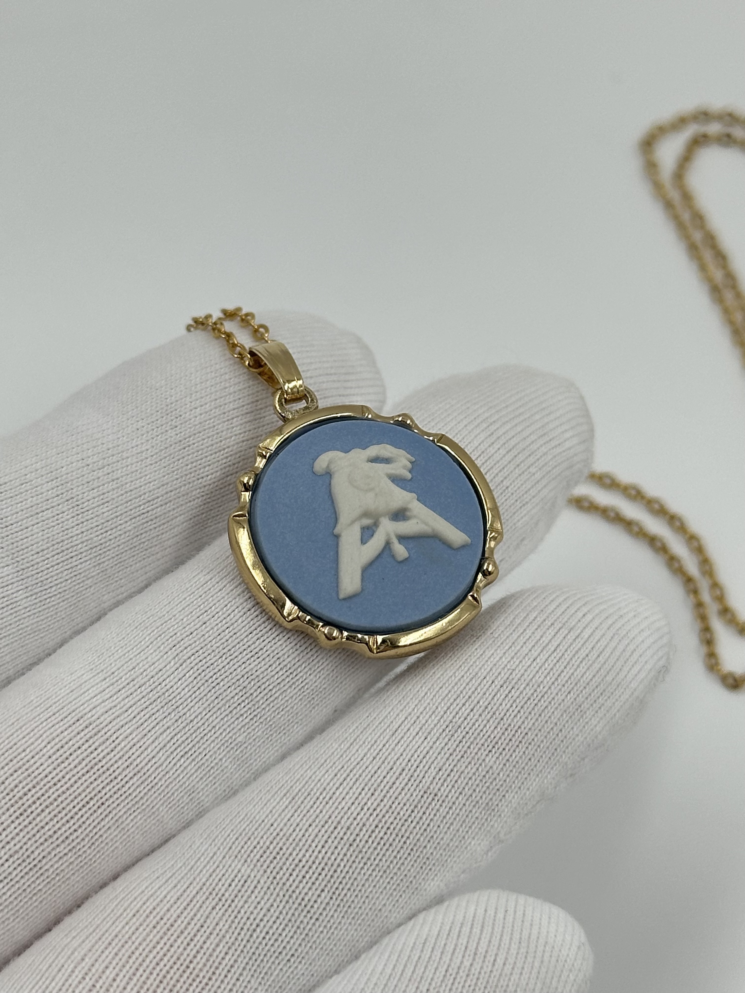 Бижутерный сплав, фарфор. На замке потемнение покрытия.