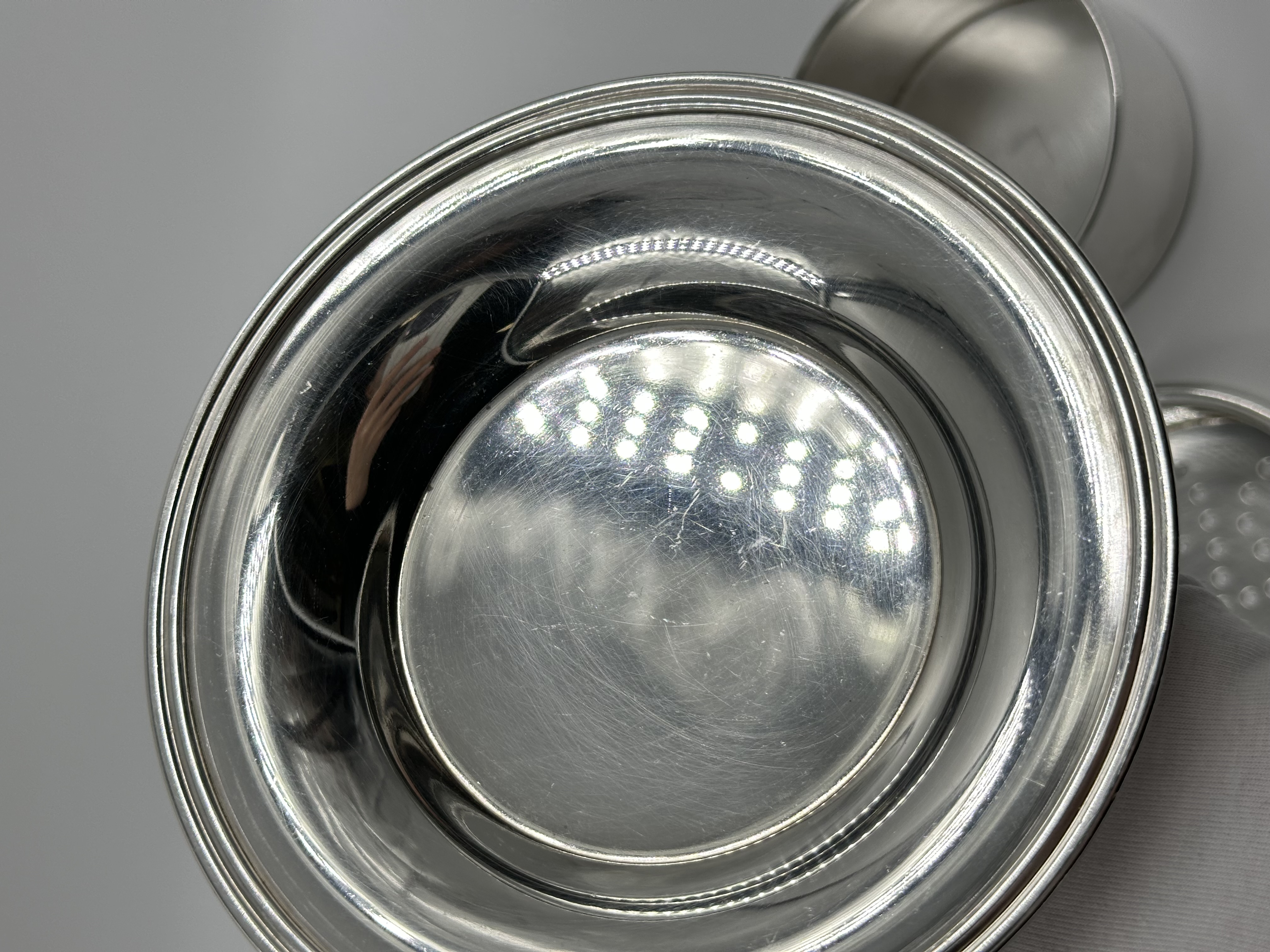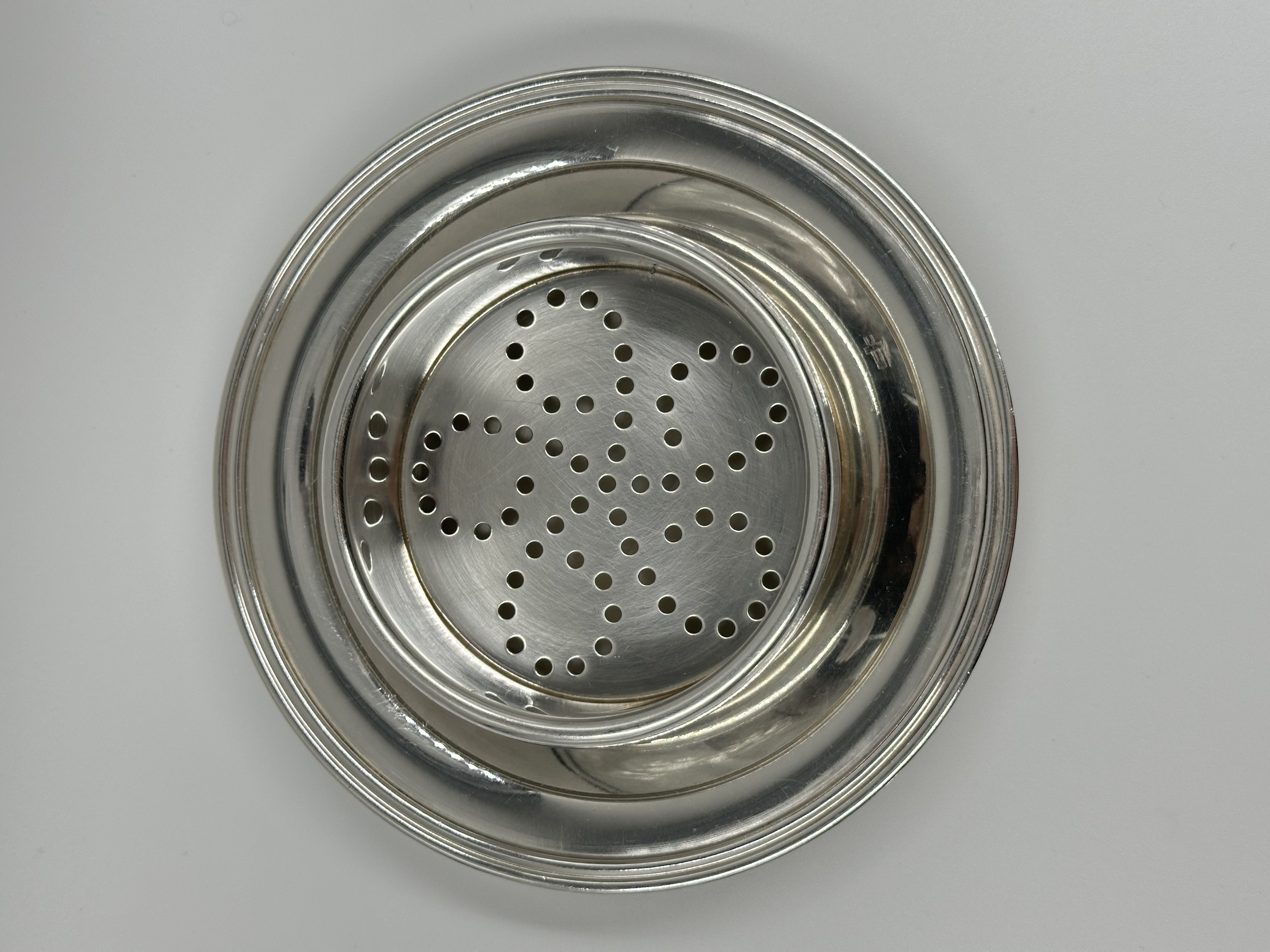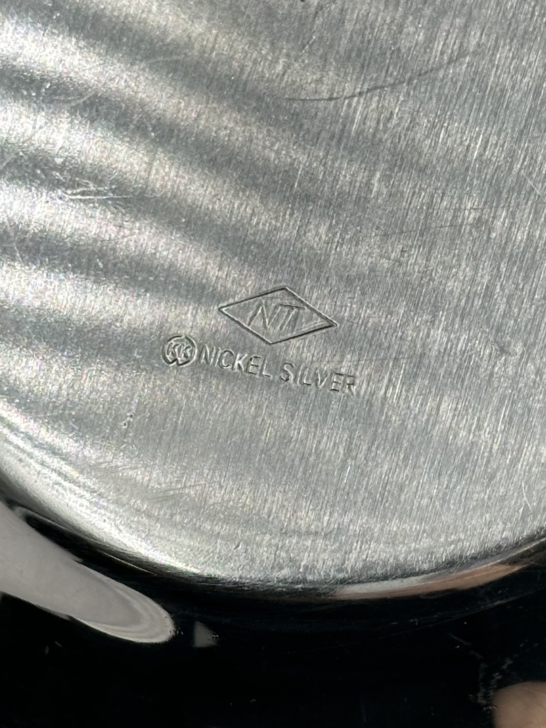 Материал - нейзильбер (сплав меди, цинка и никеля). Диаметр основания 14,3см.