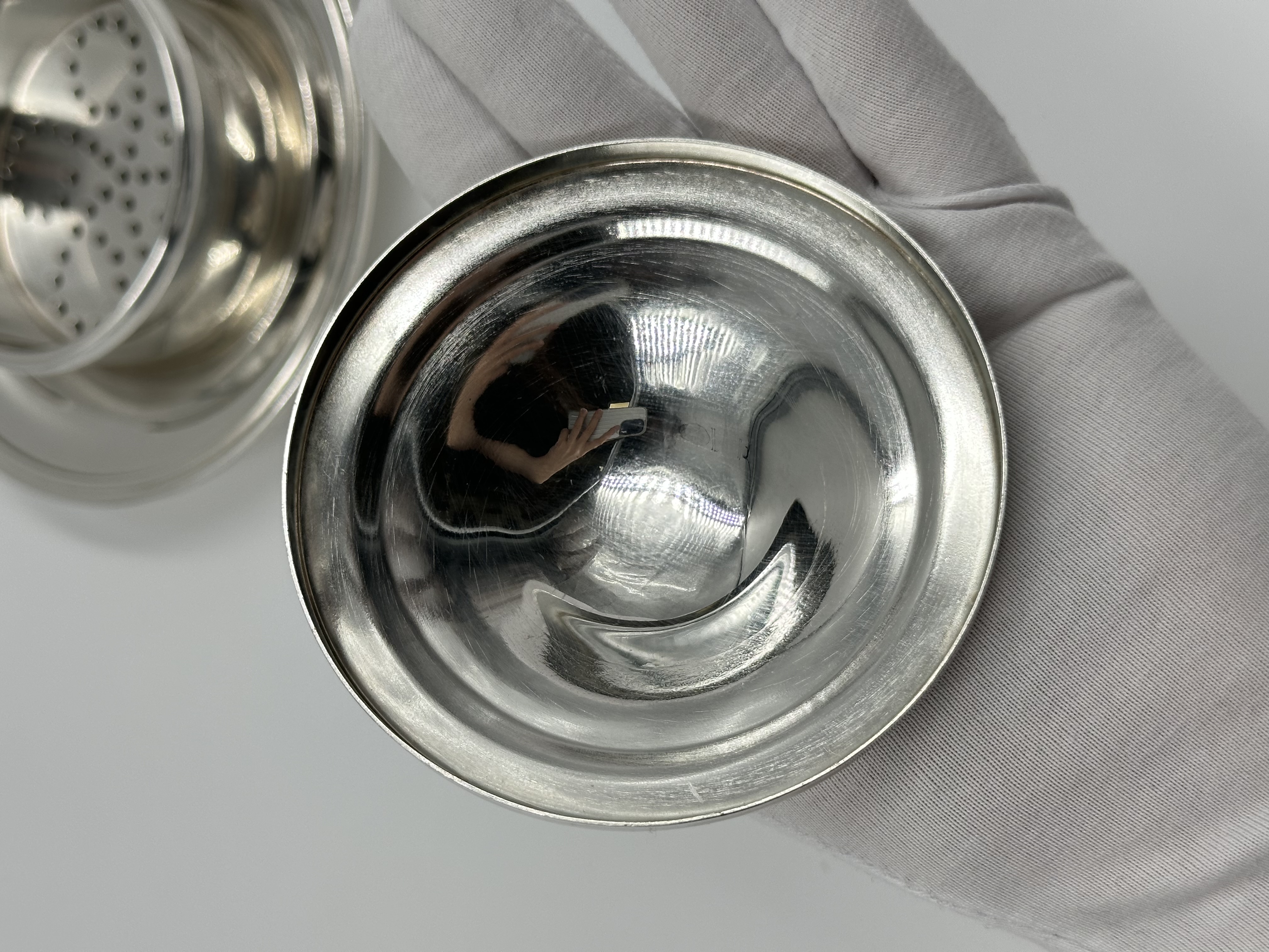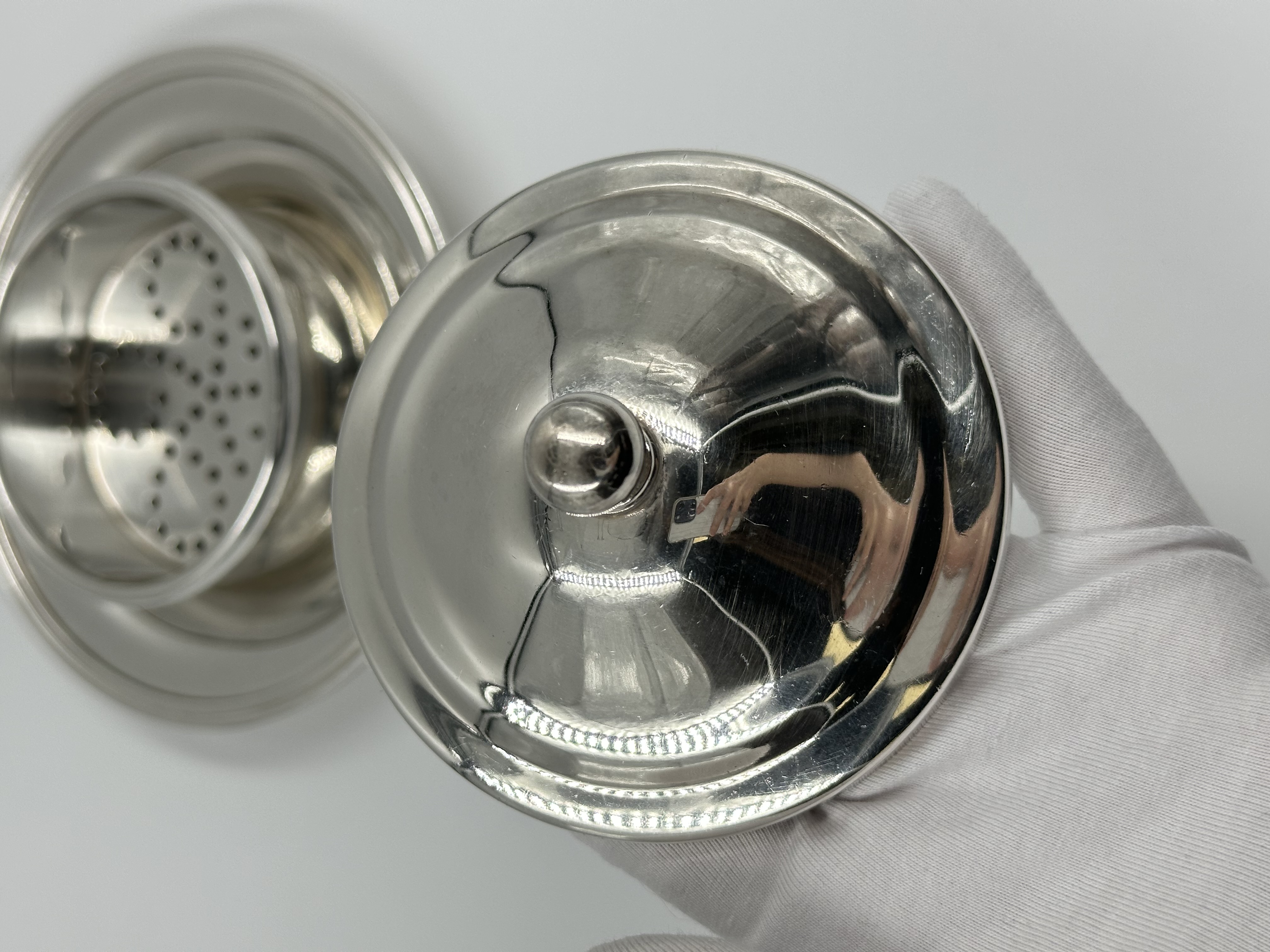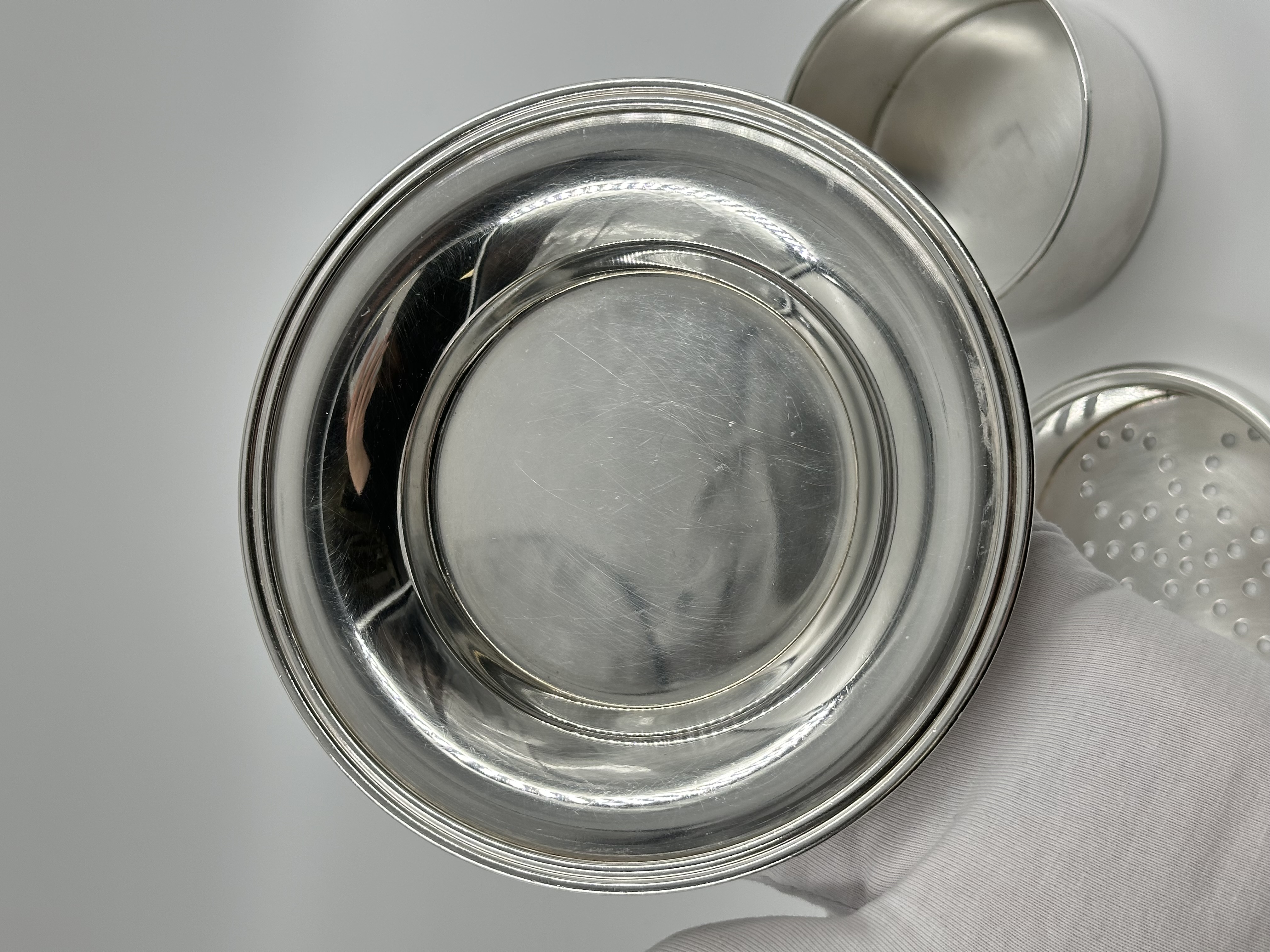Материал - нейзильбер (сплав меди, цинка и никеля). Диаметр основания 14,3см.