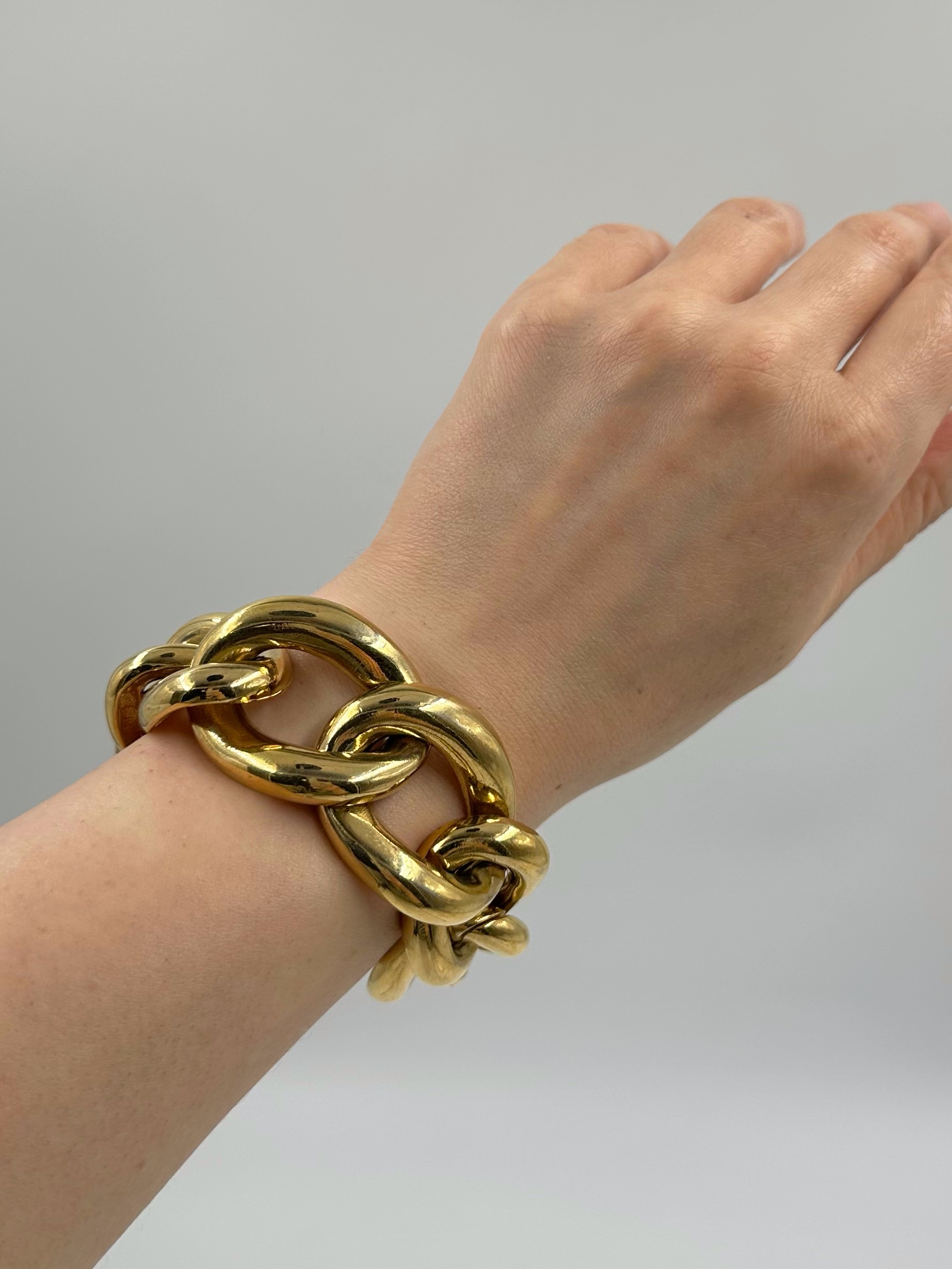Бижутерный сплав, позолота. На запястье до 16,5см. Присутствуют небольшие потертости.