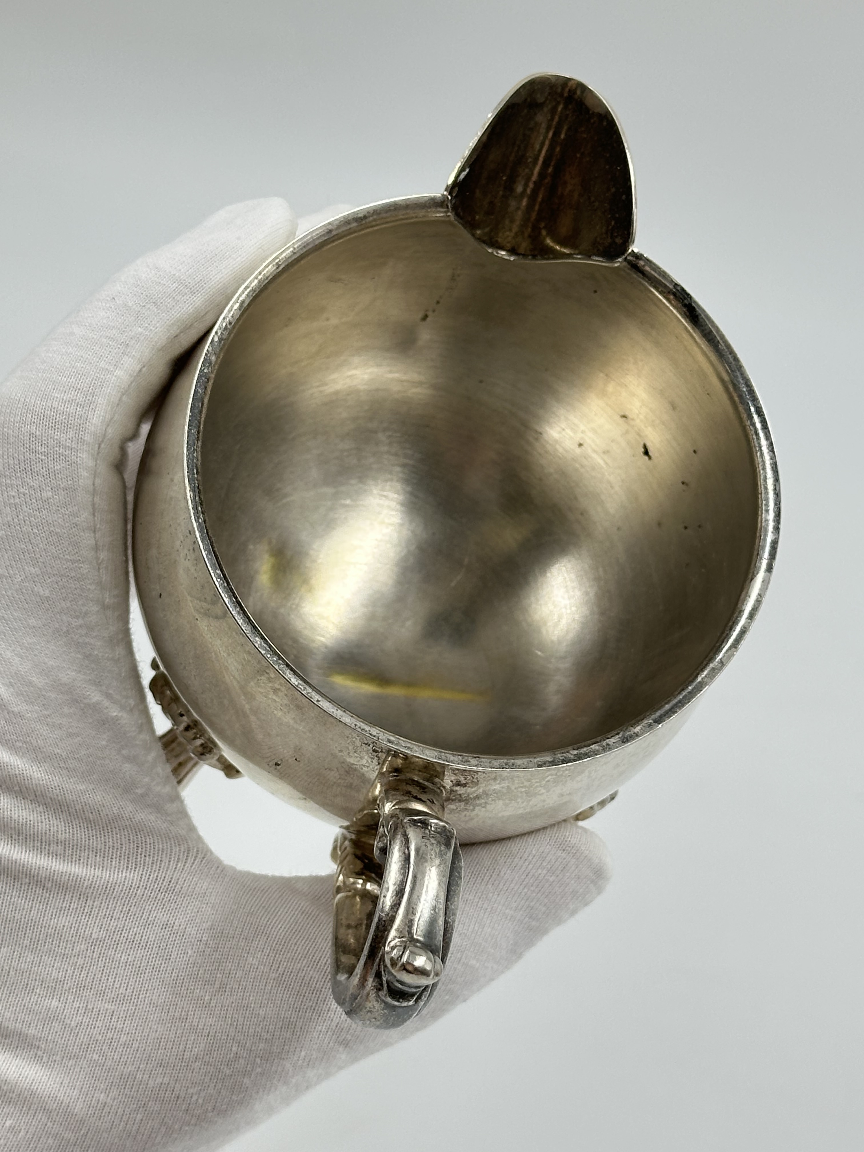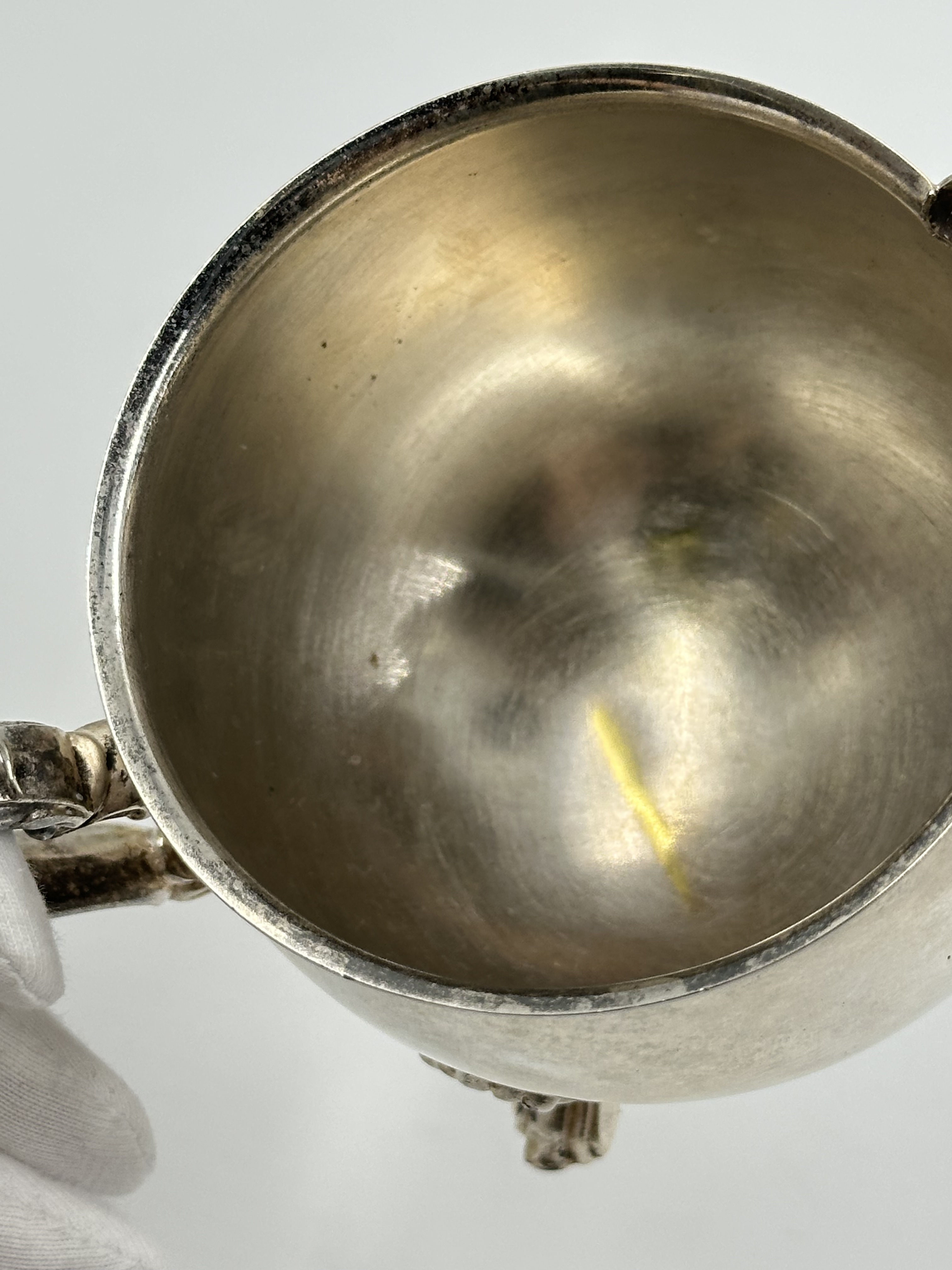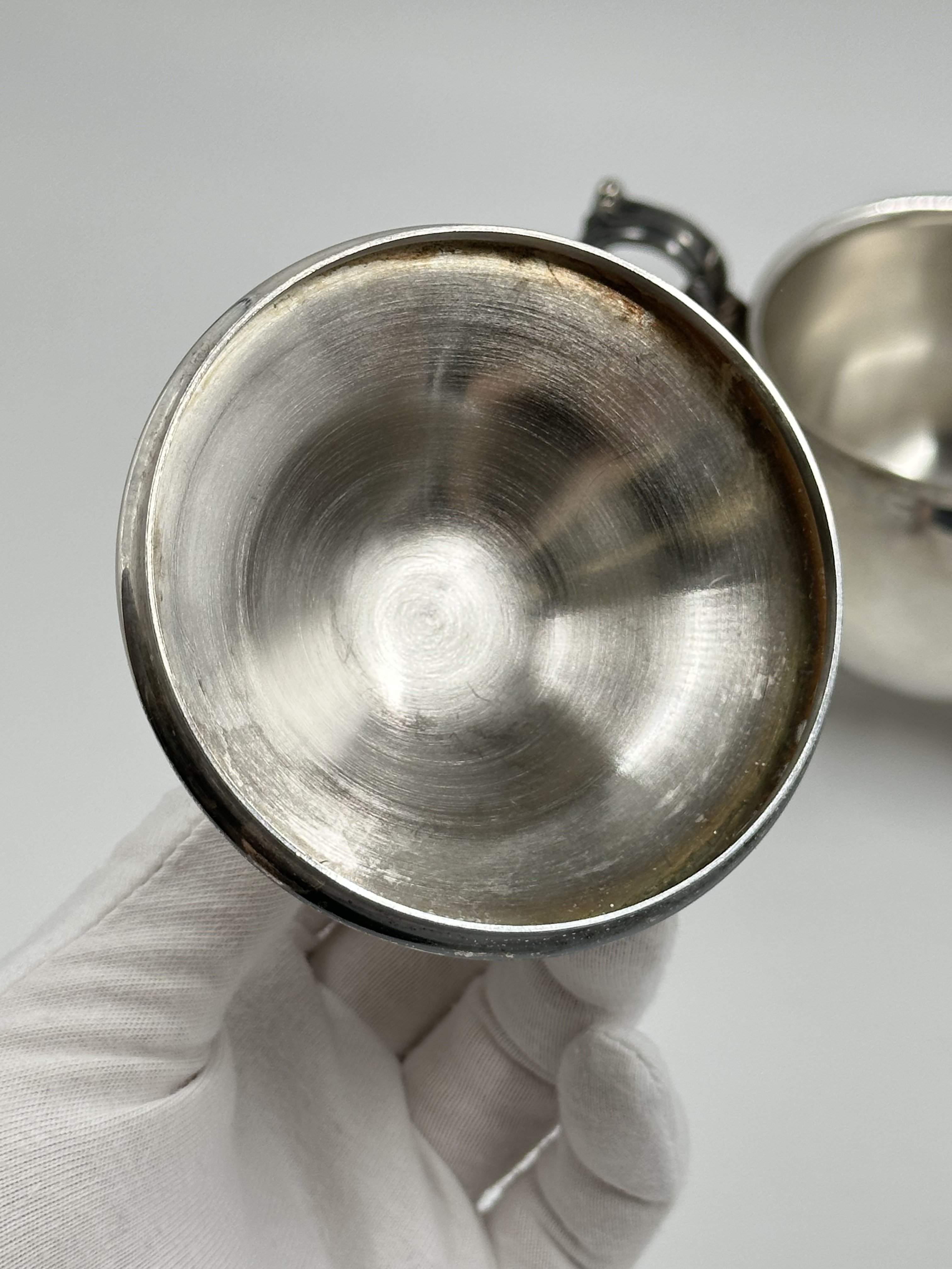 Серебрение. Высота с ручкой 7,7см. На дне присутсвует сход покрытия.
