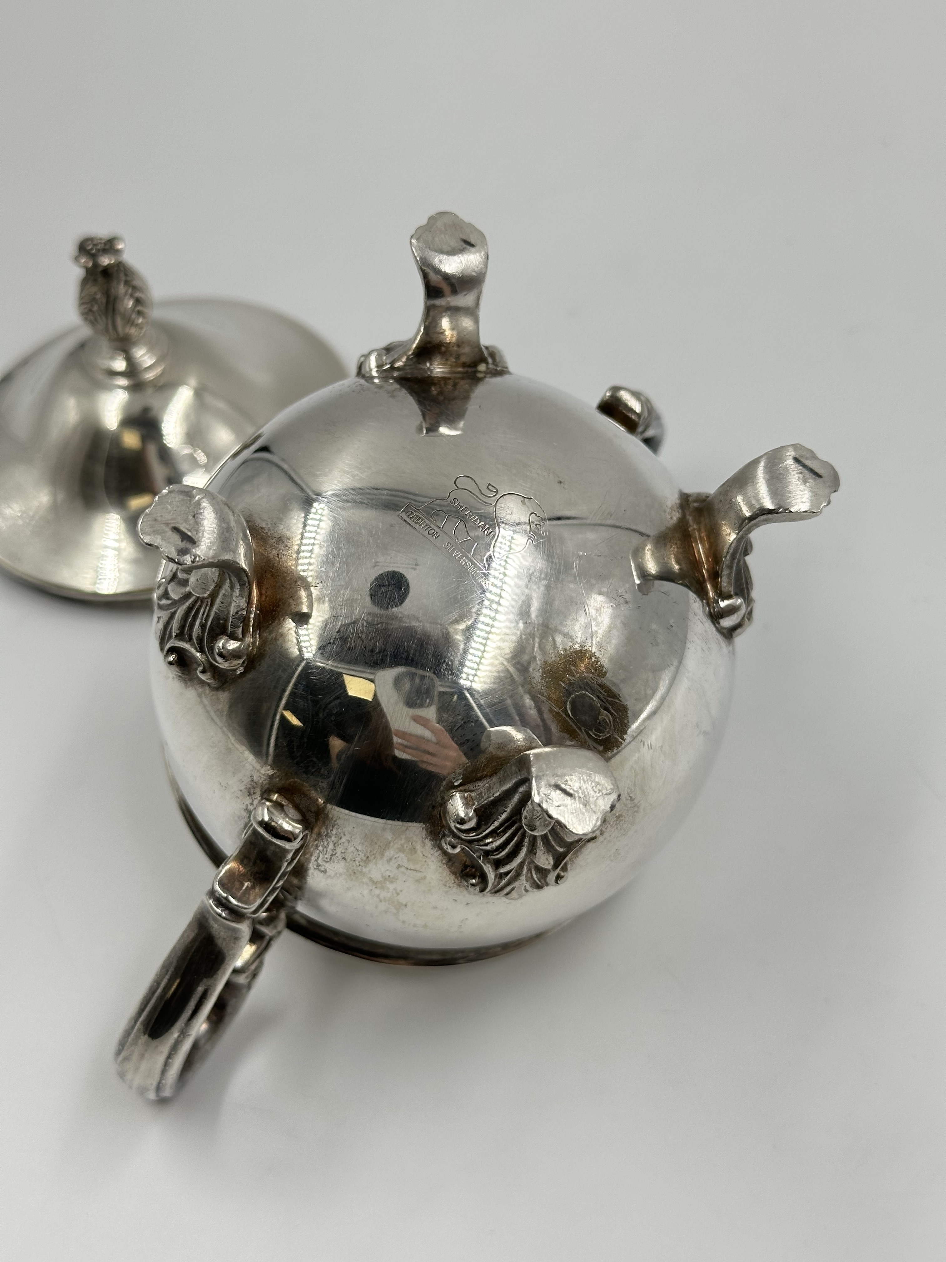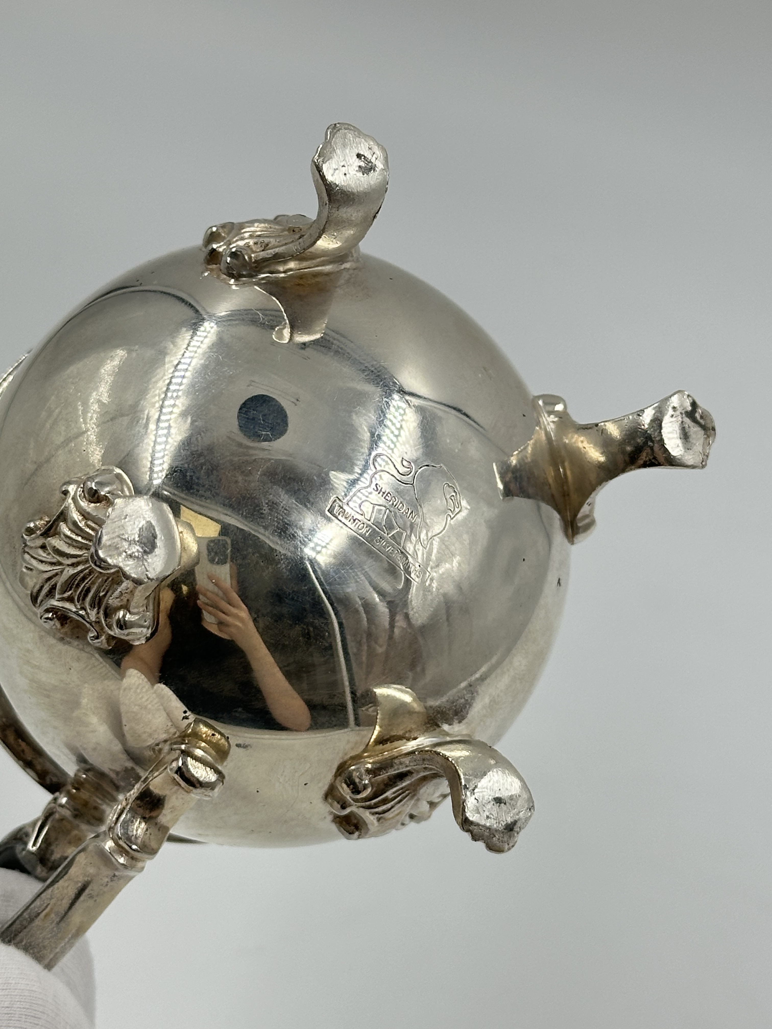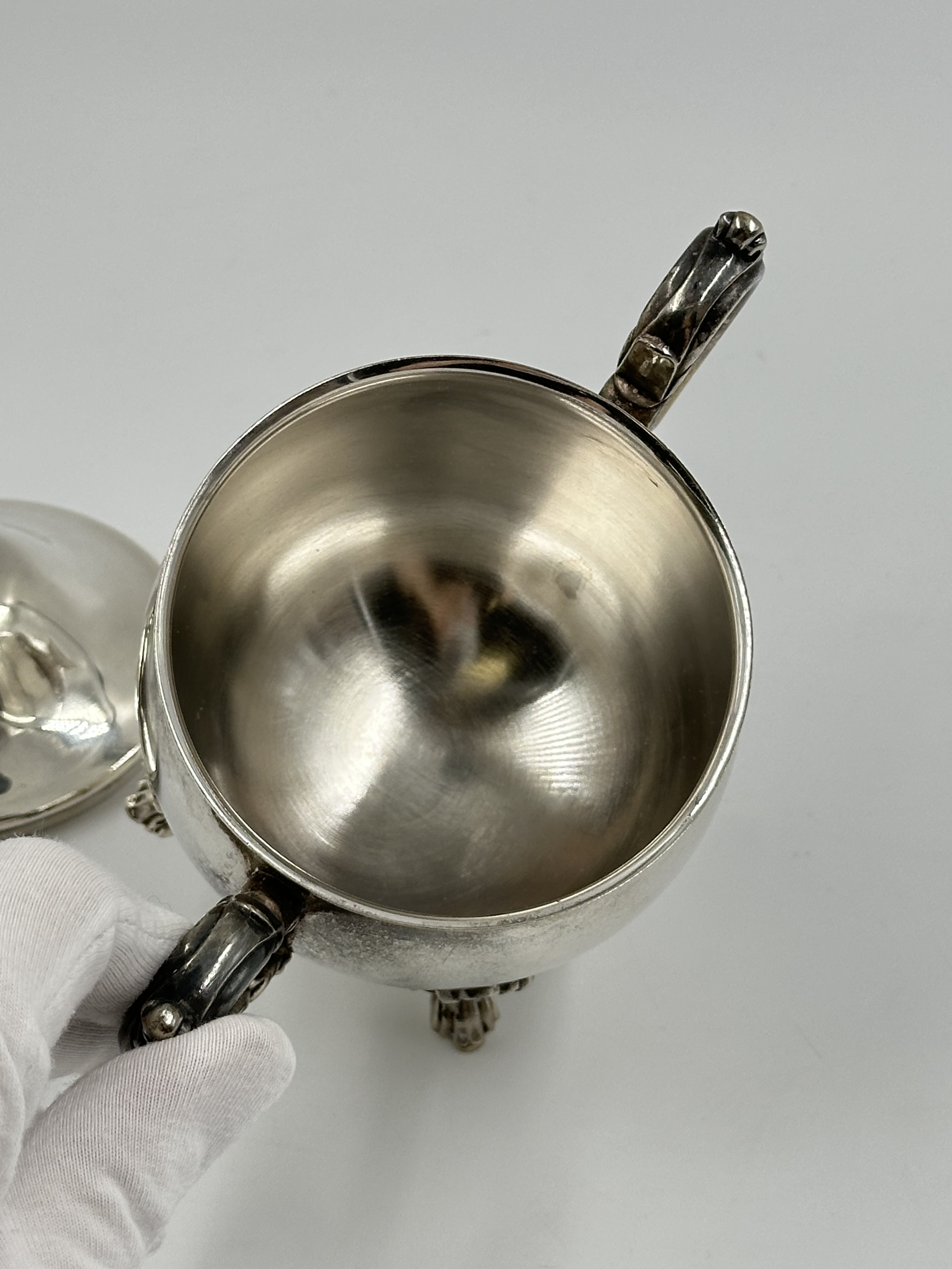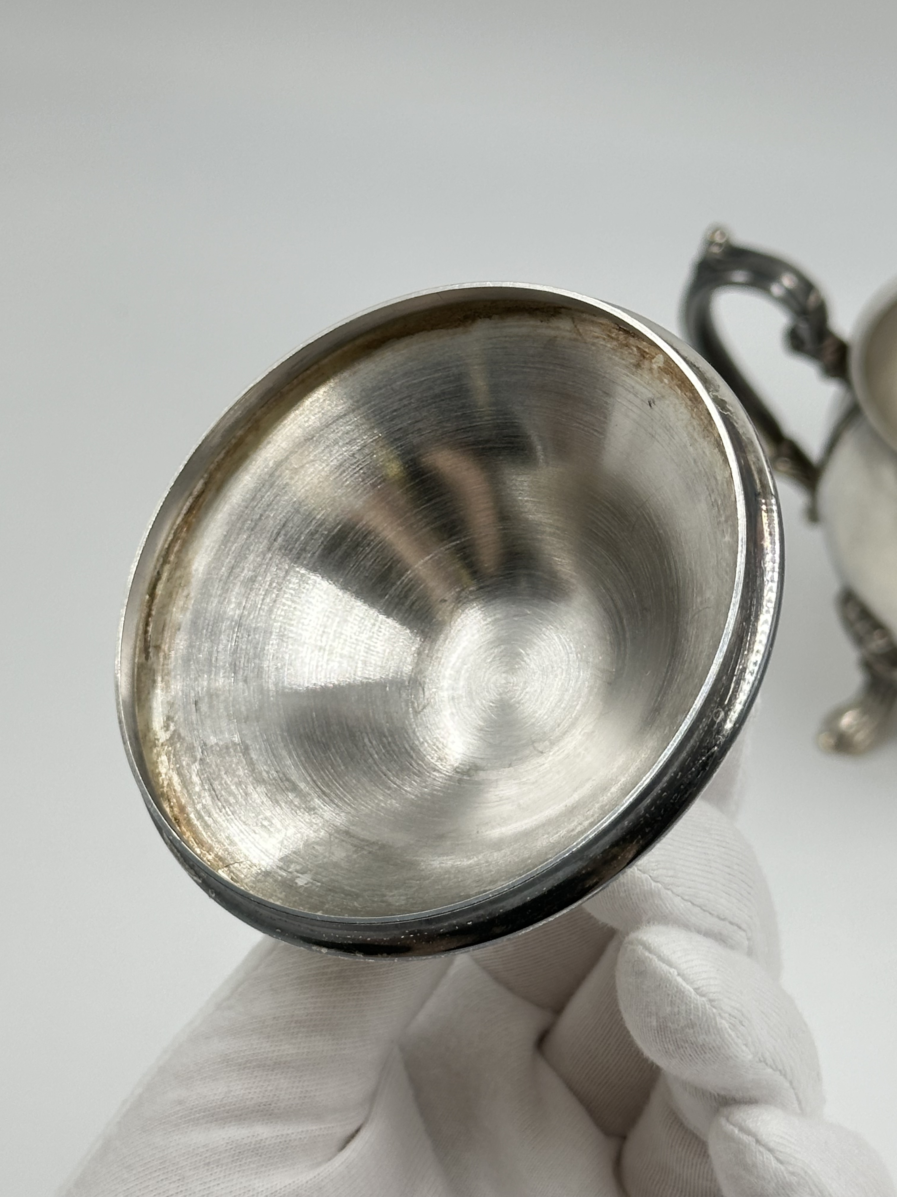 Серебрение. Высота с ручкой 7,7см. На дне присутсвует сход покрытия.