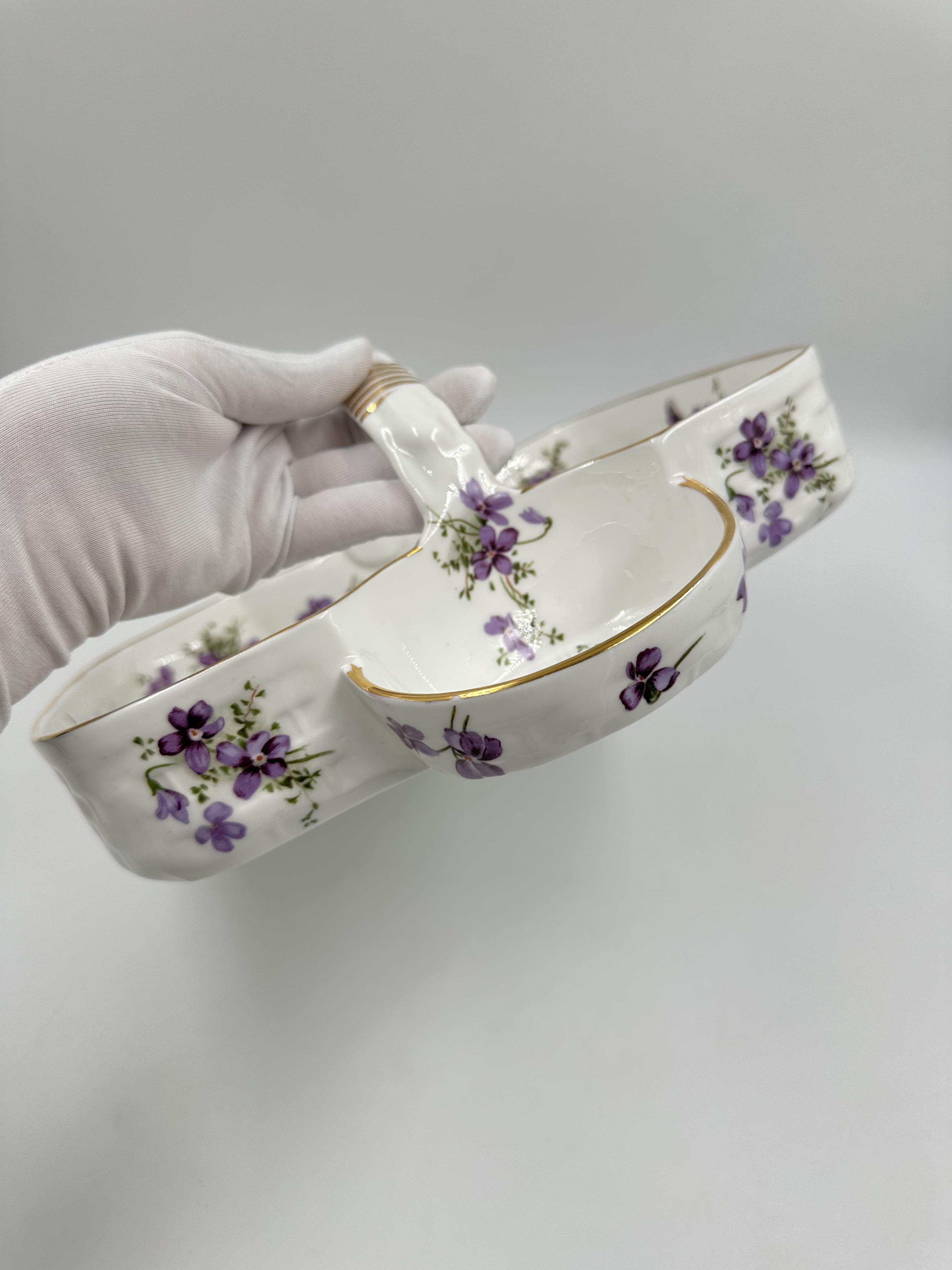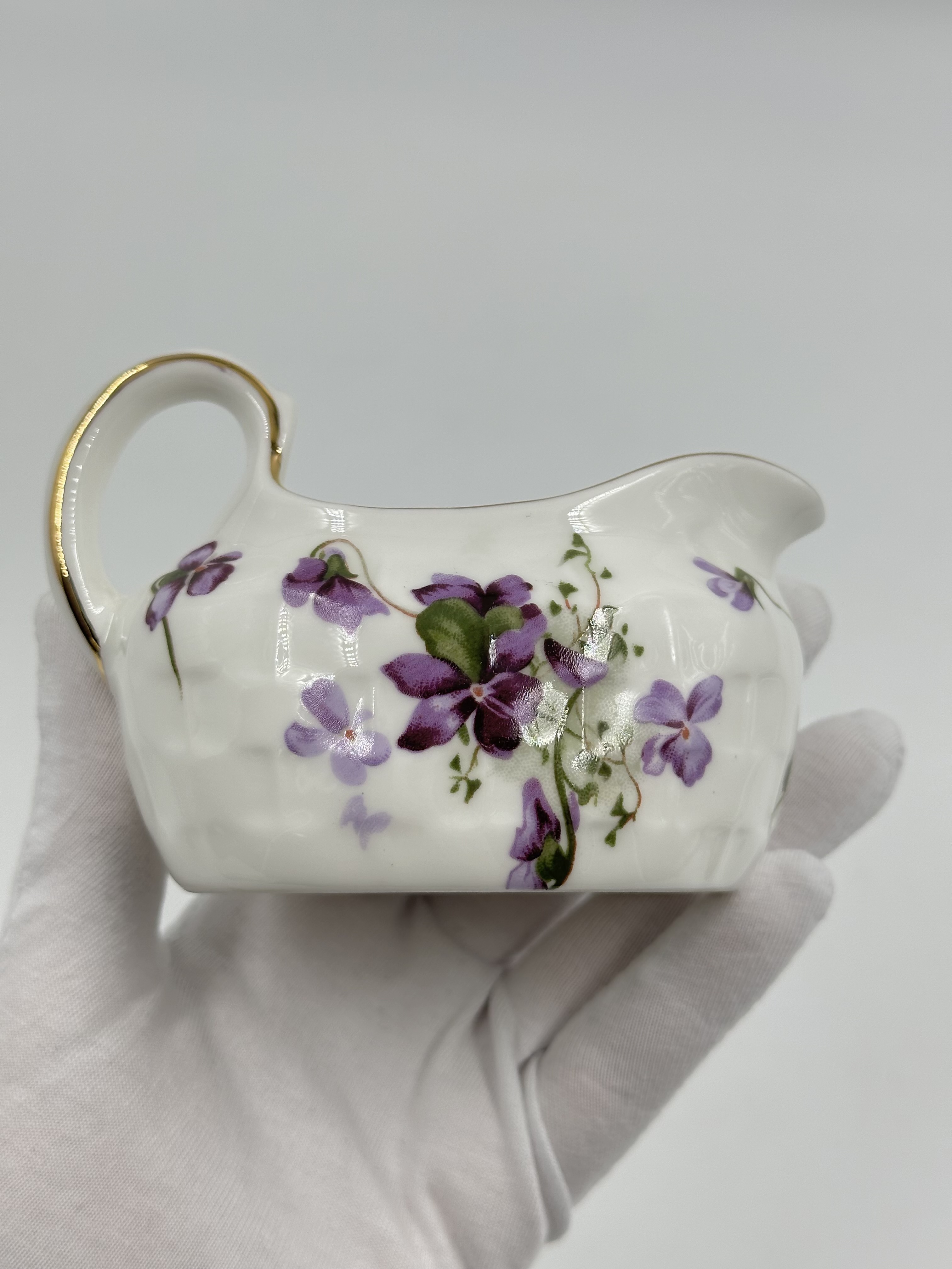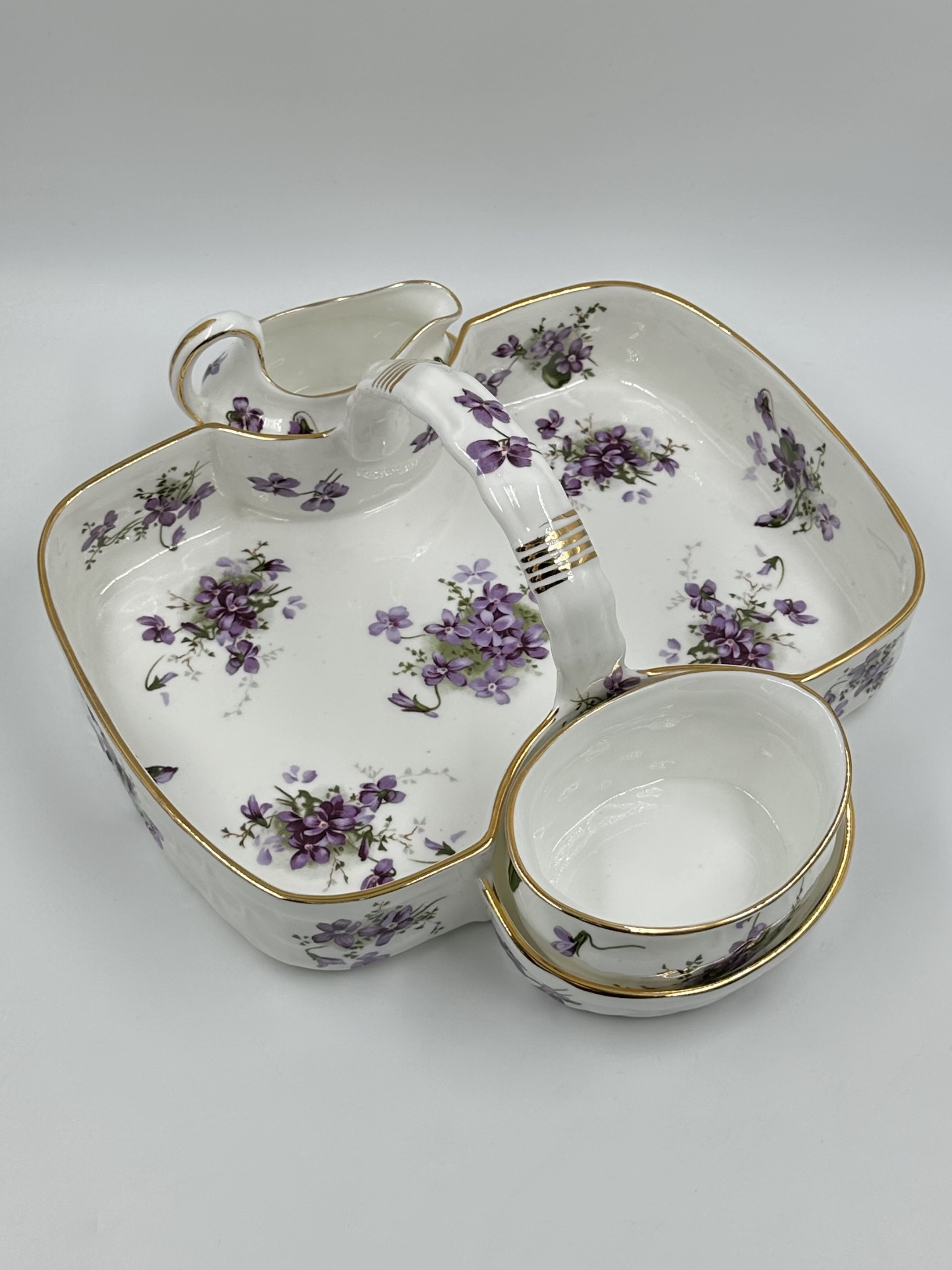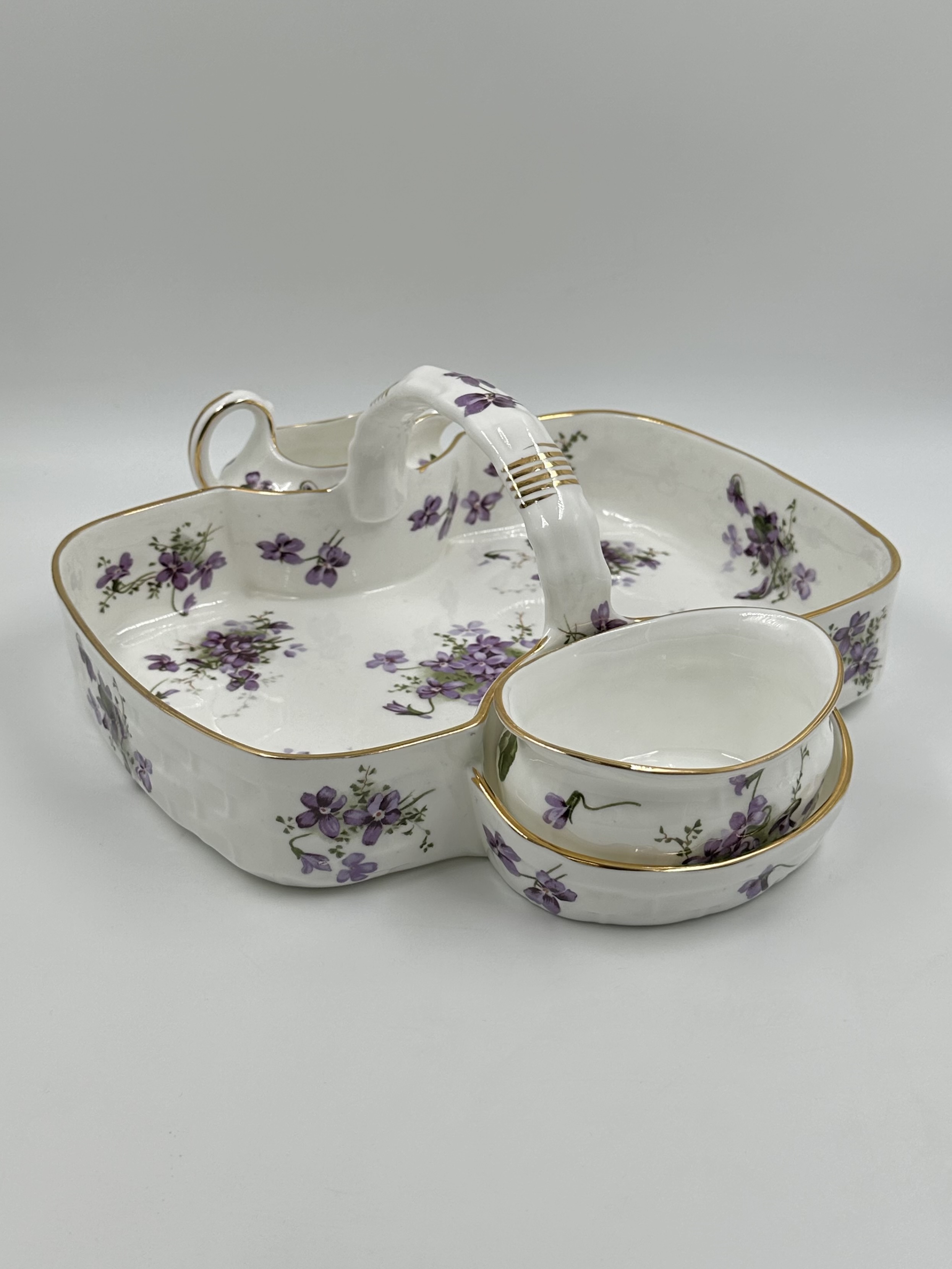 Набор из блюда в виде корзины, сливочника и сахарницы.