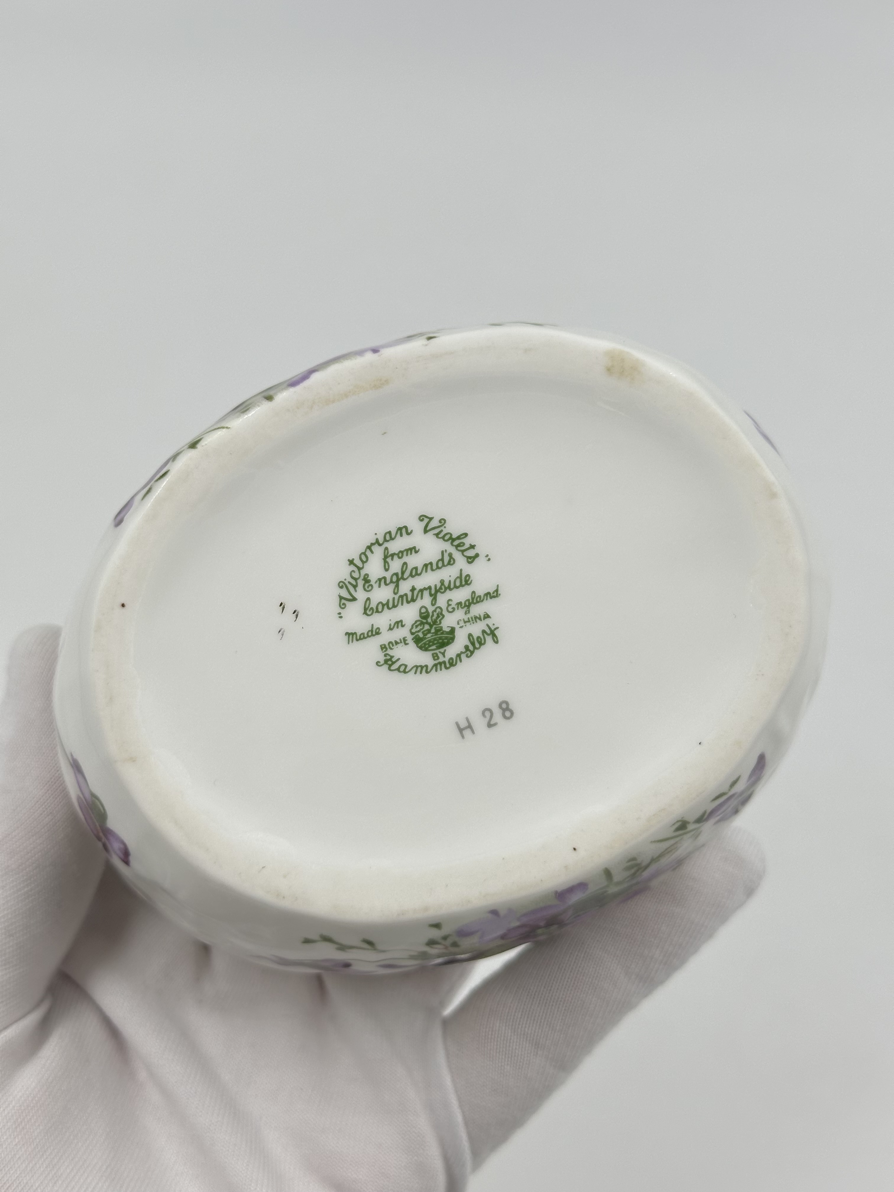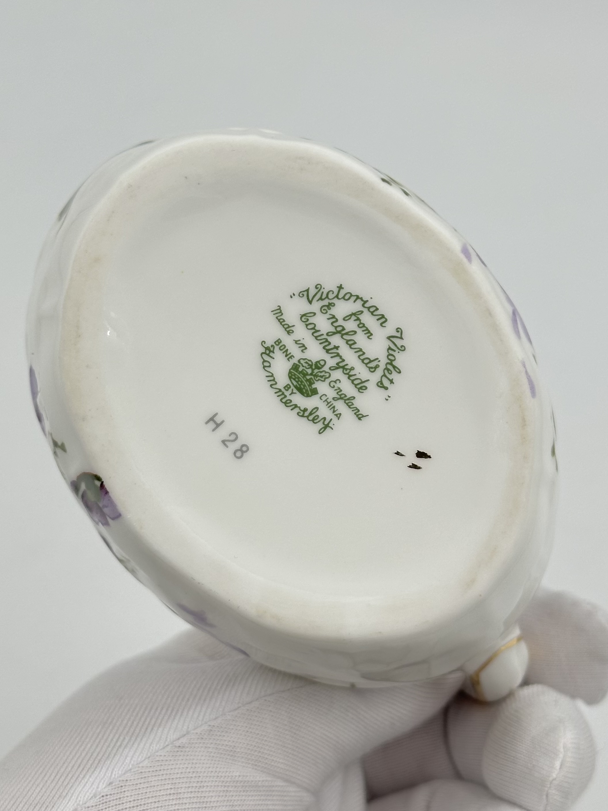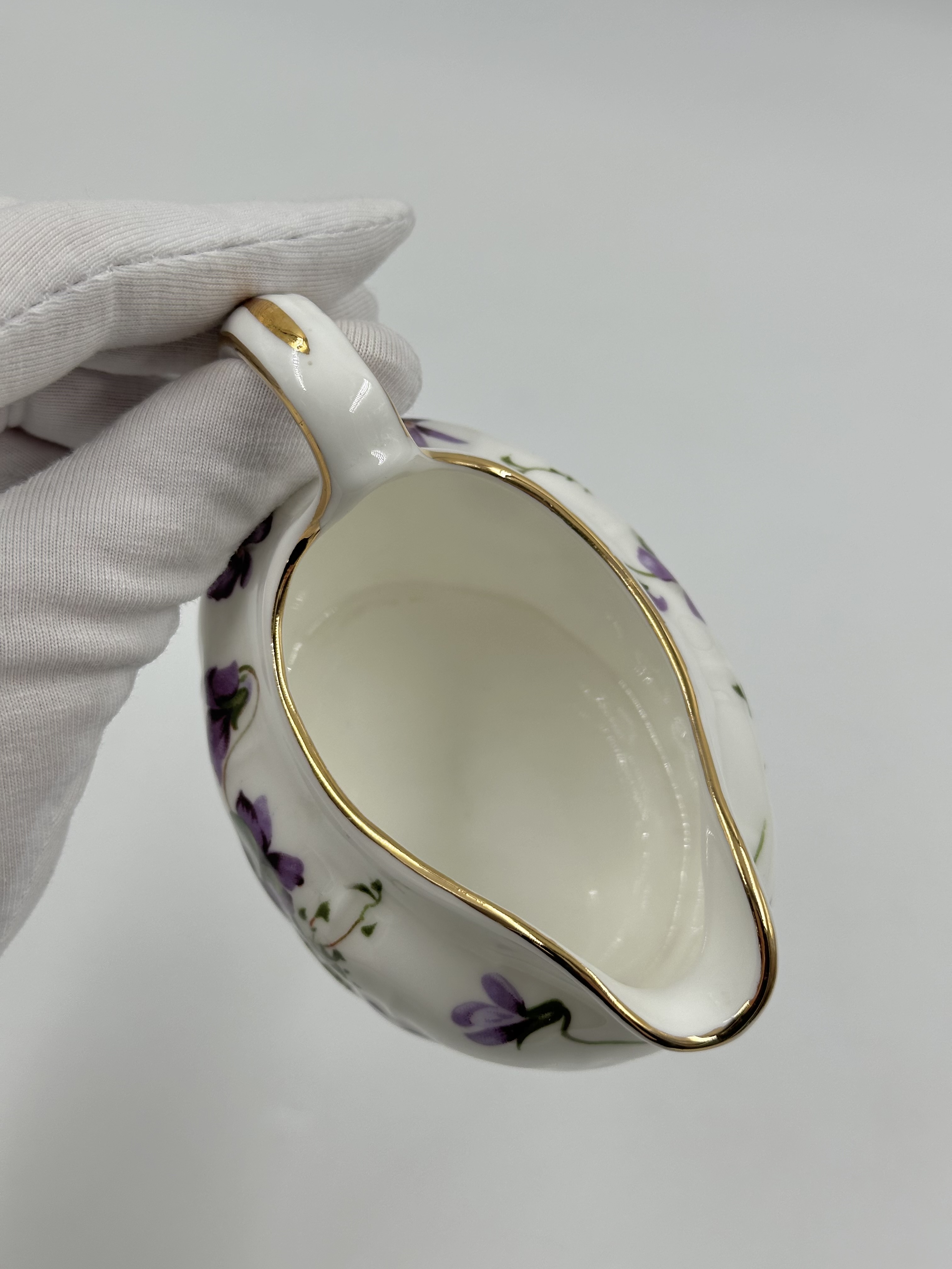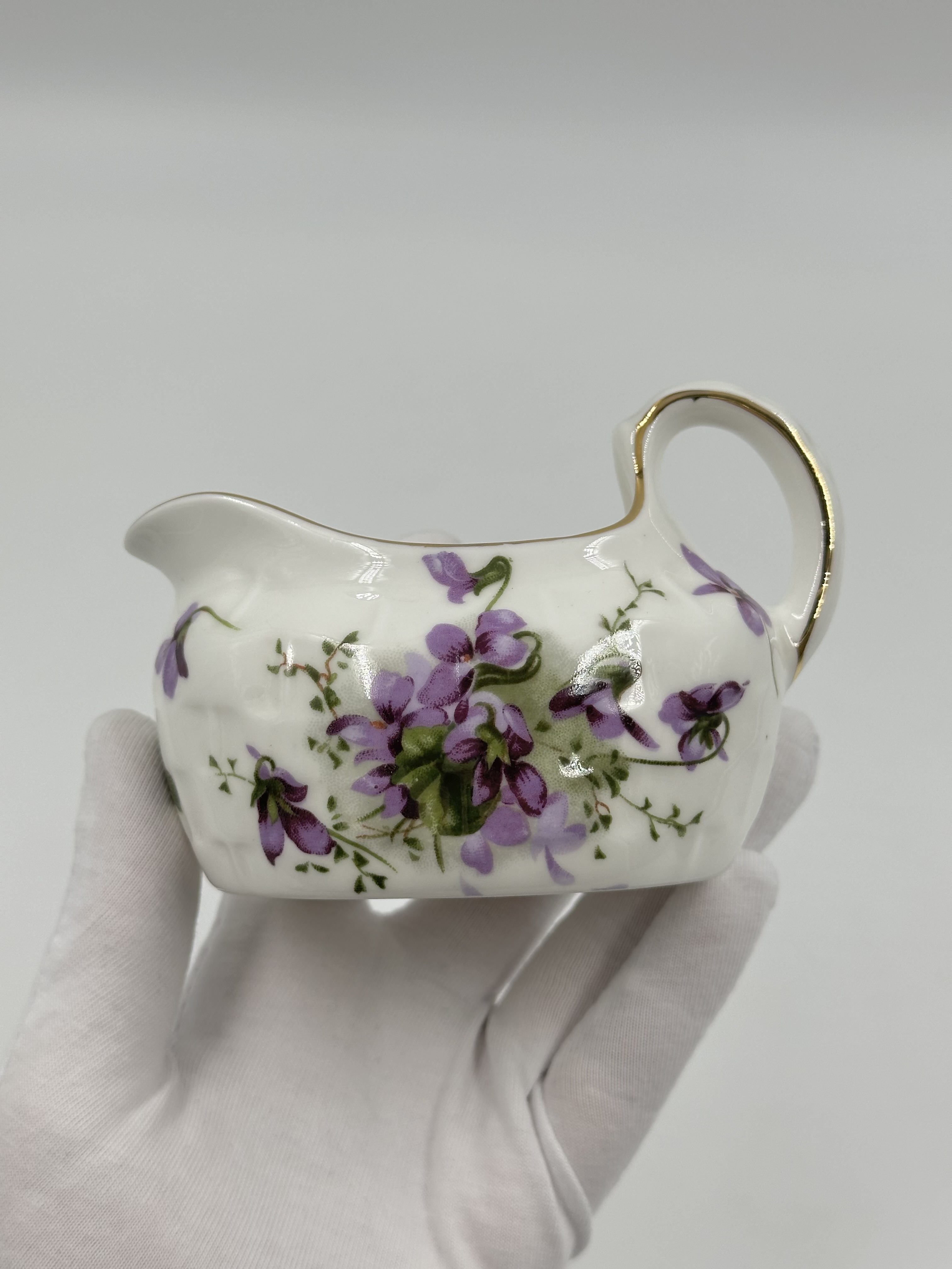 Набор из блюда в виде корзины, сливочника и сахарницы.