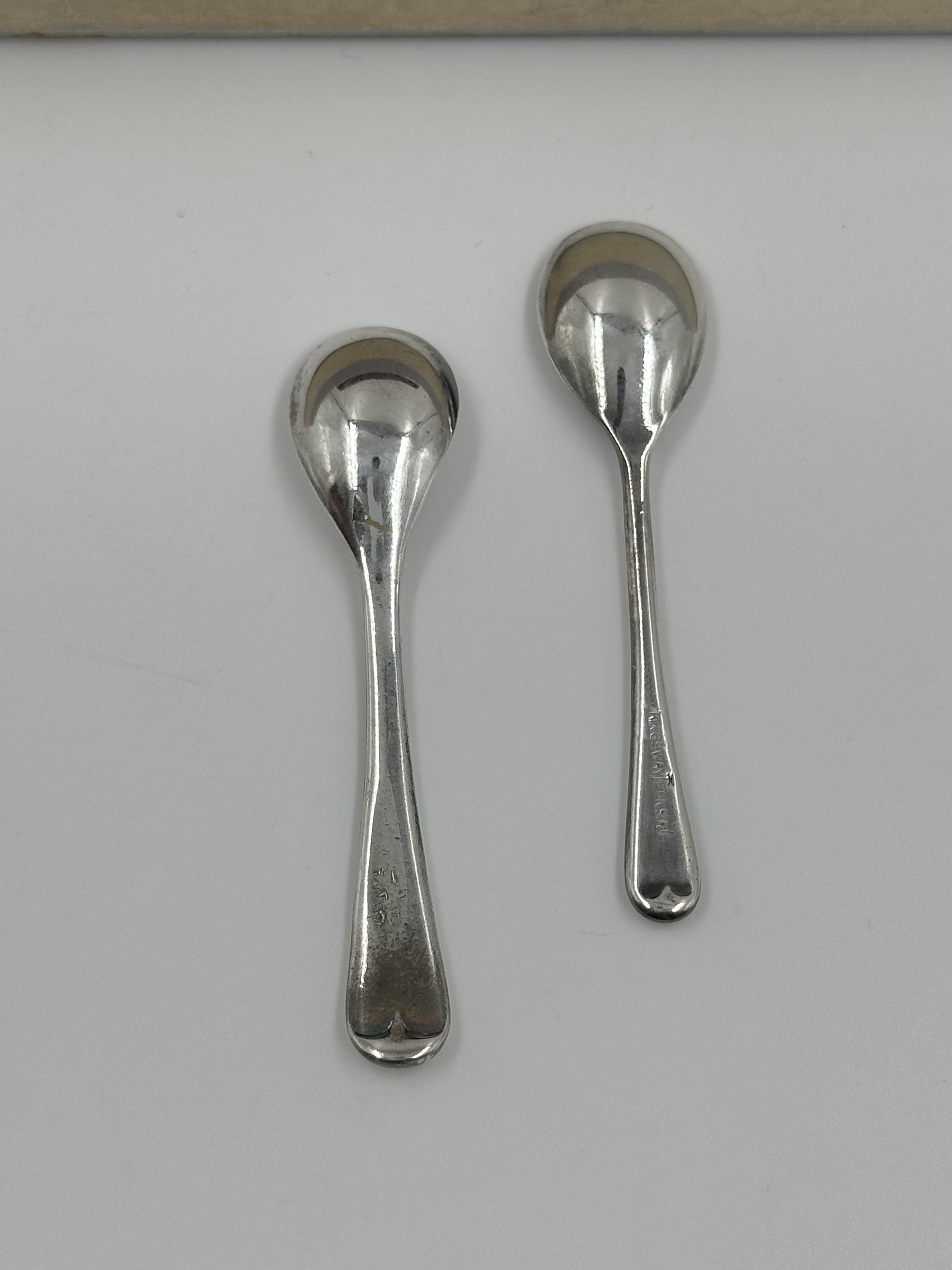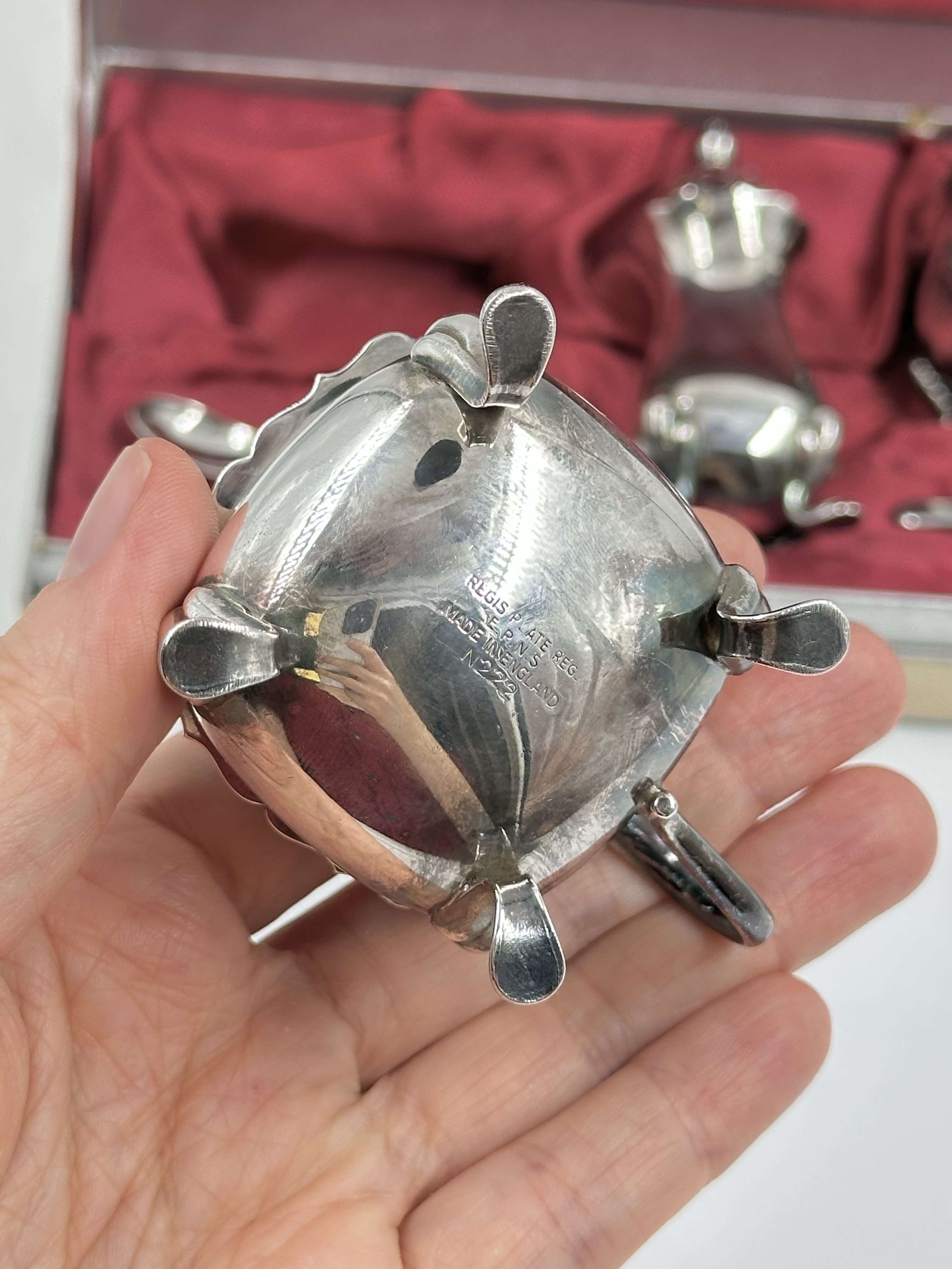 Серебрение, стекло. Ложки отличаются. Отличное состояние.