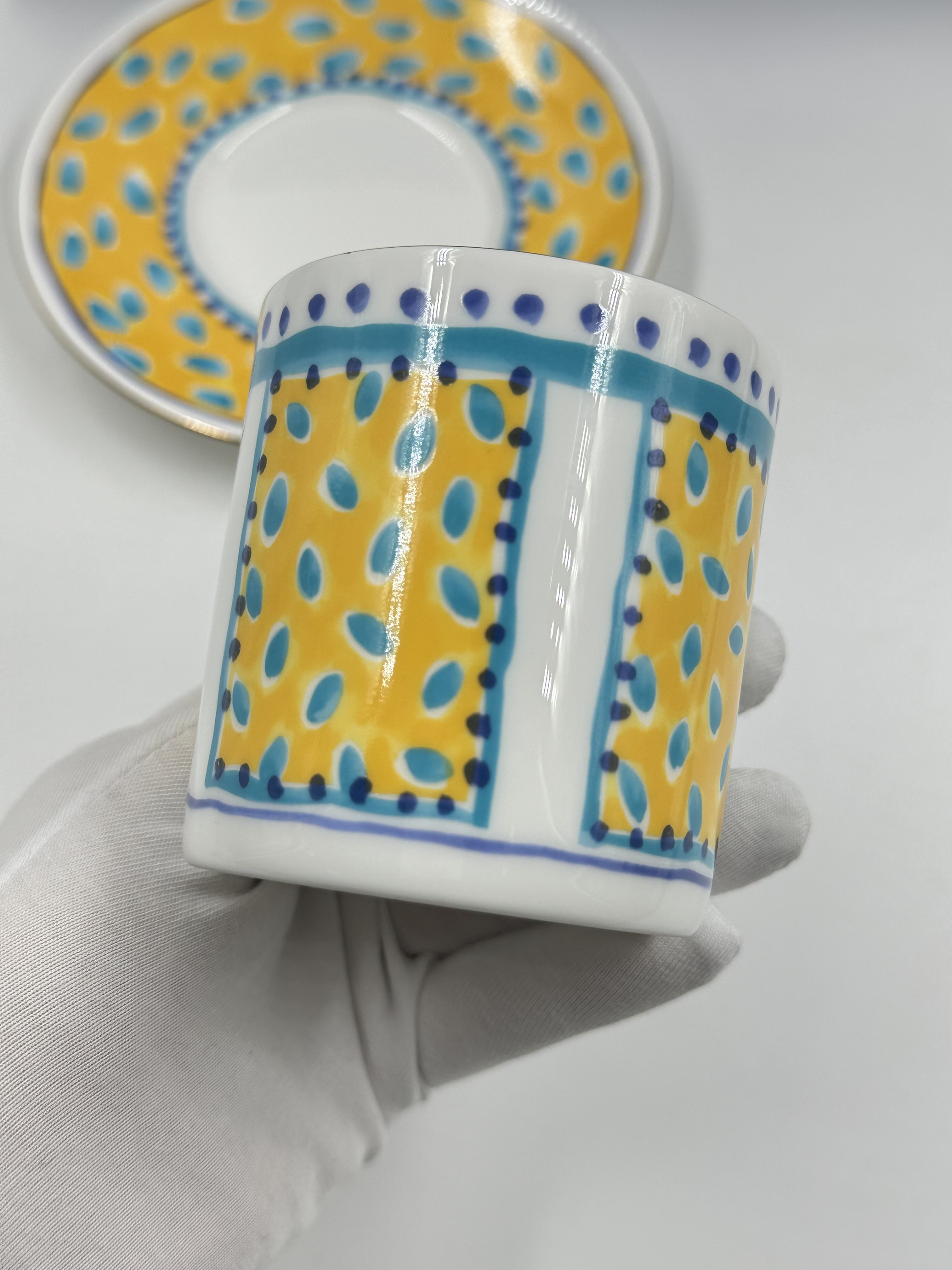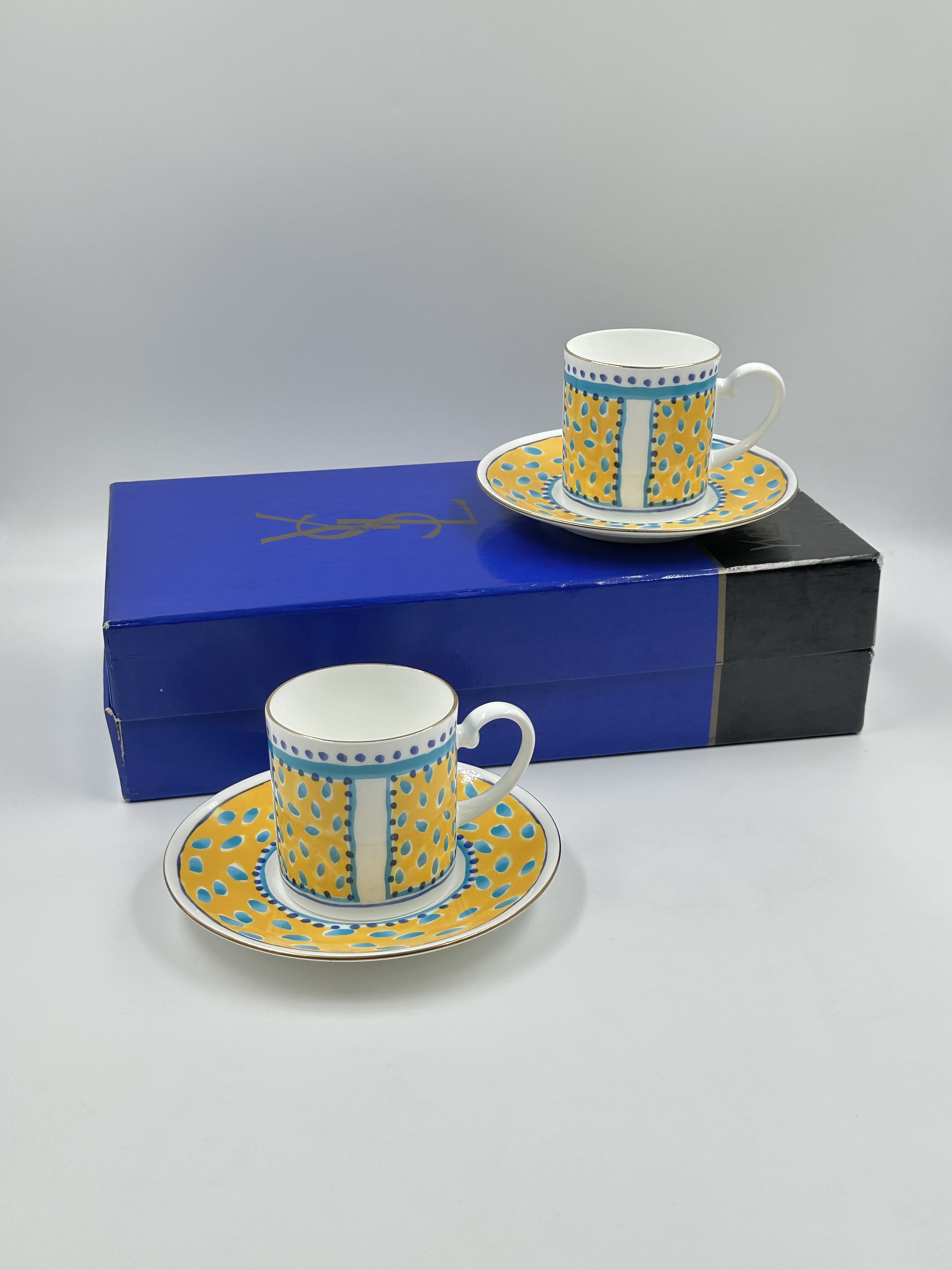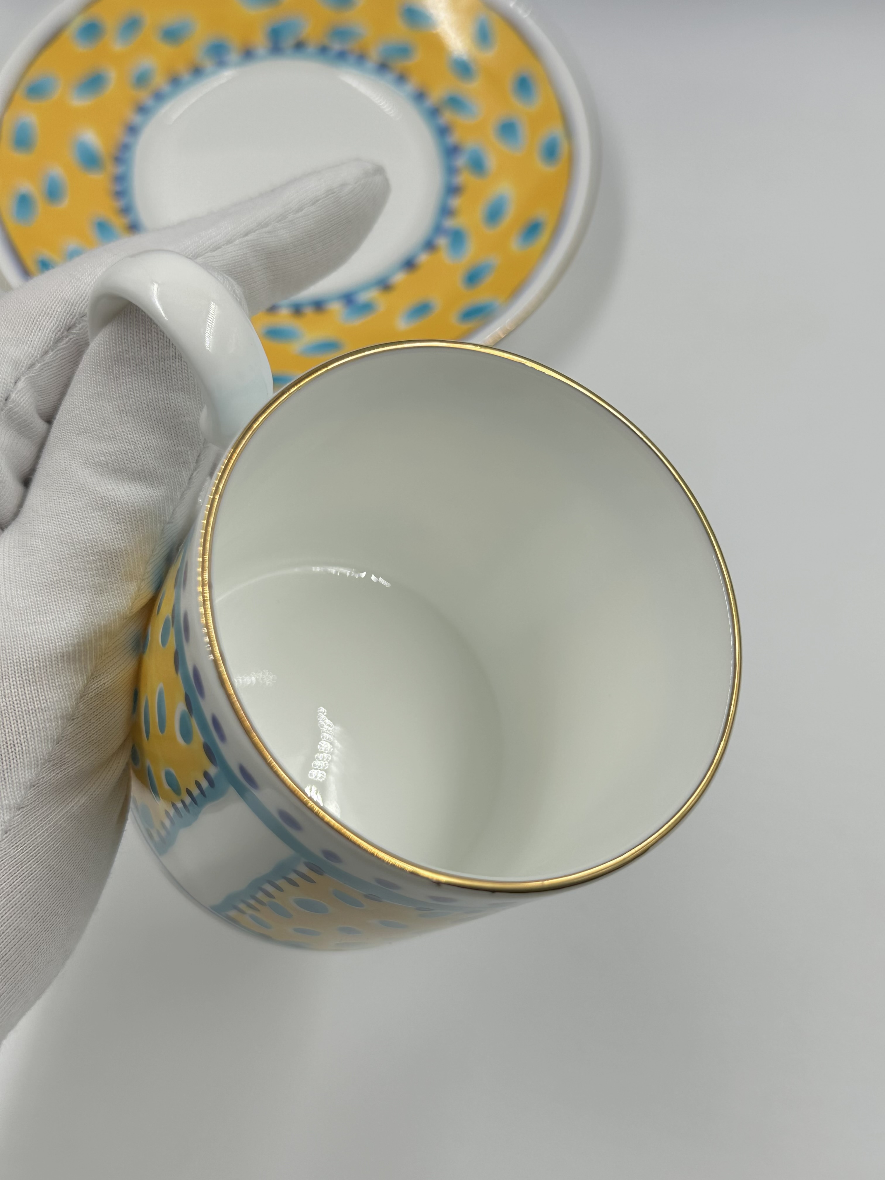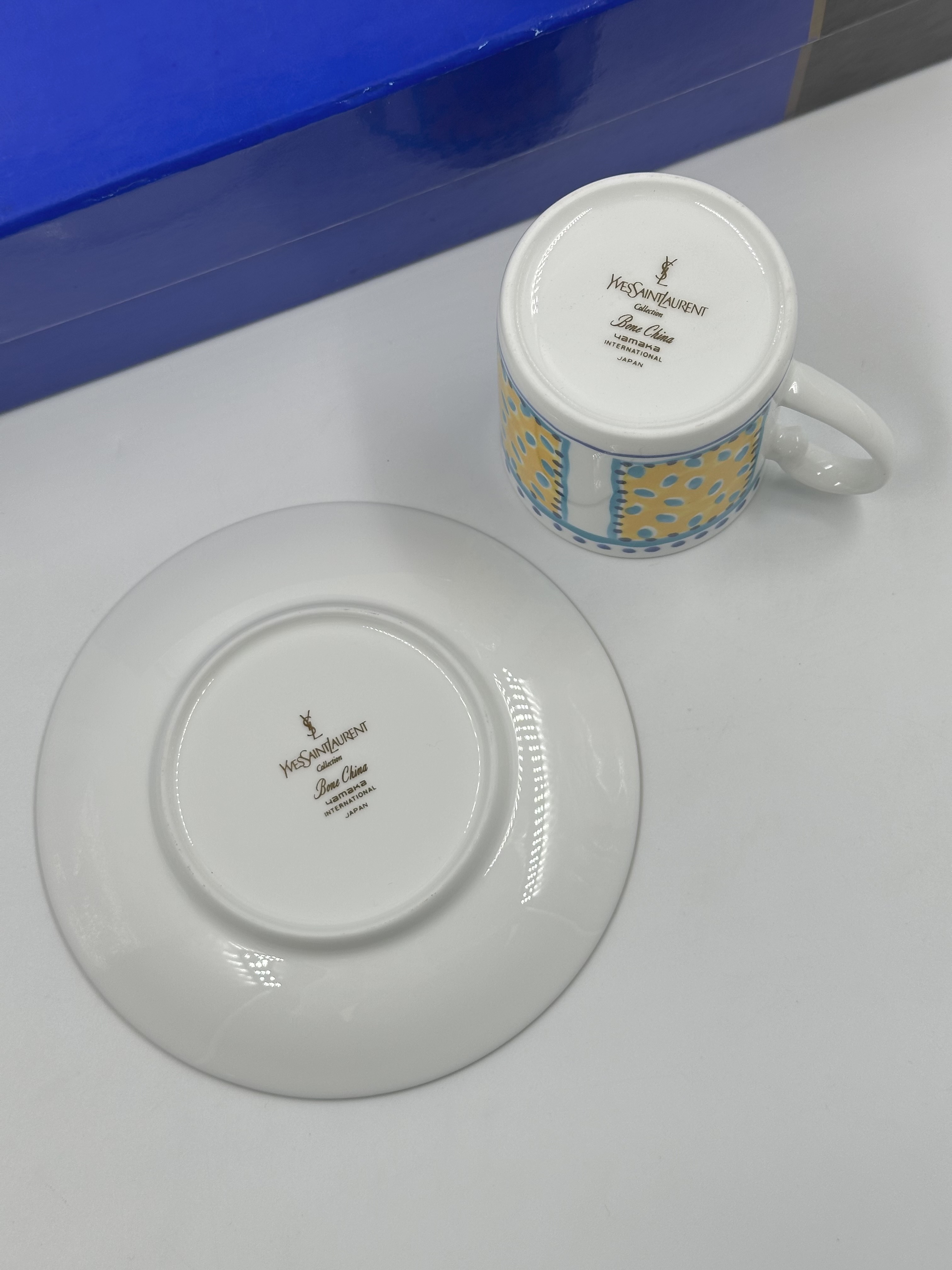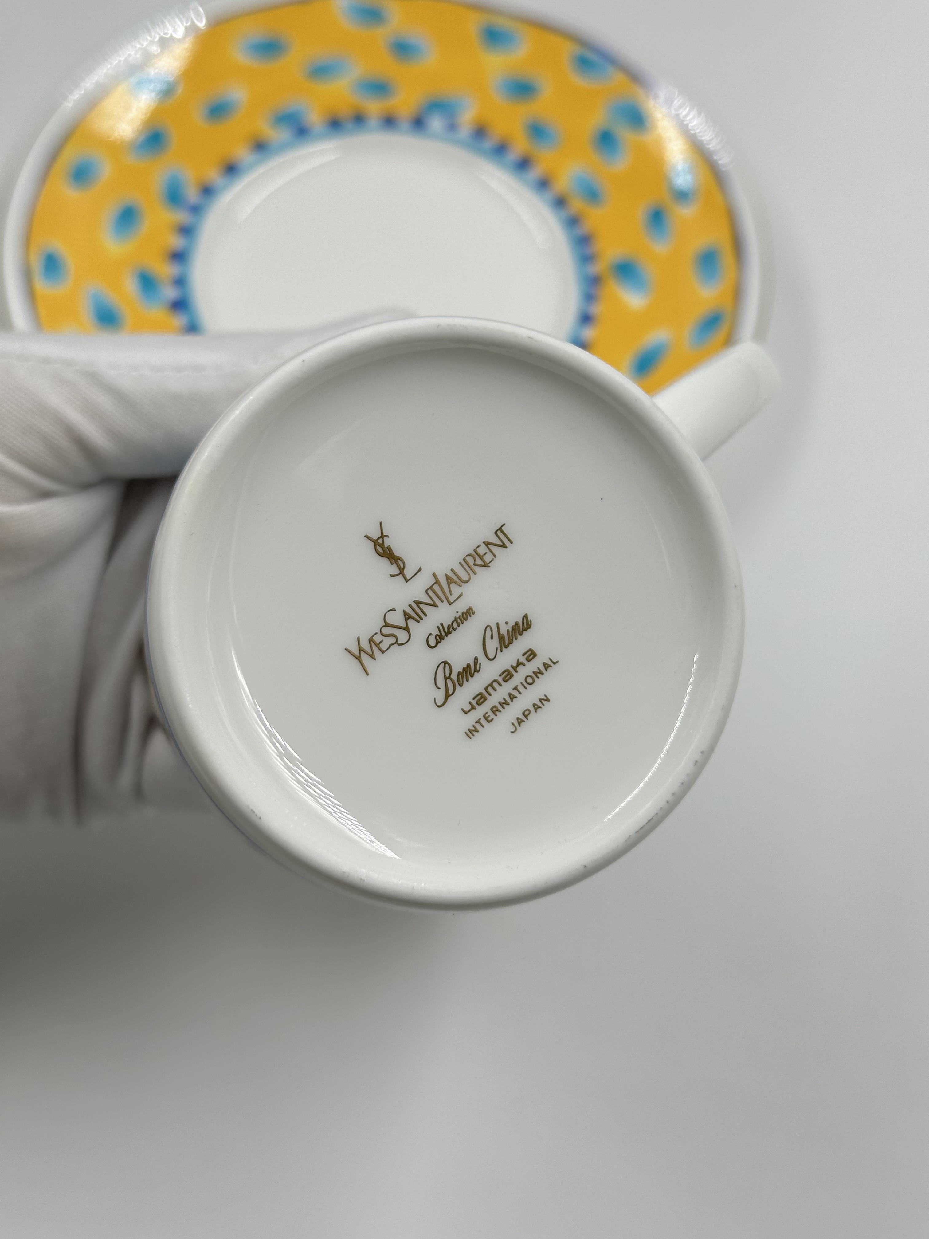 Фарфор. Диаметр блюдца 14,5см, объём чашки 200мл.