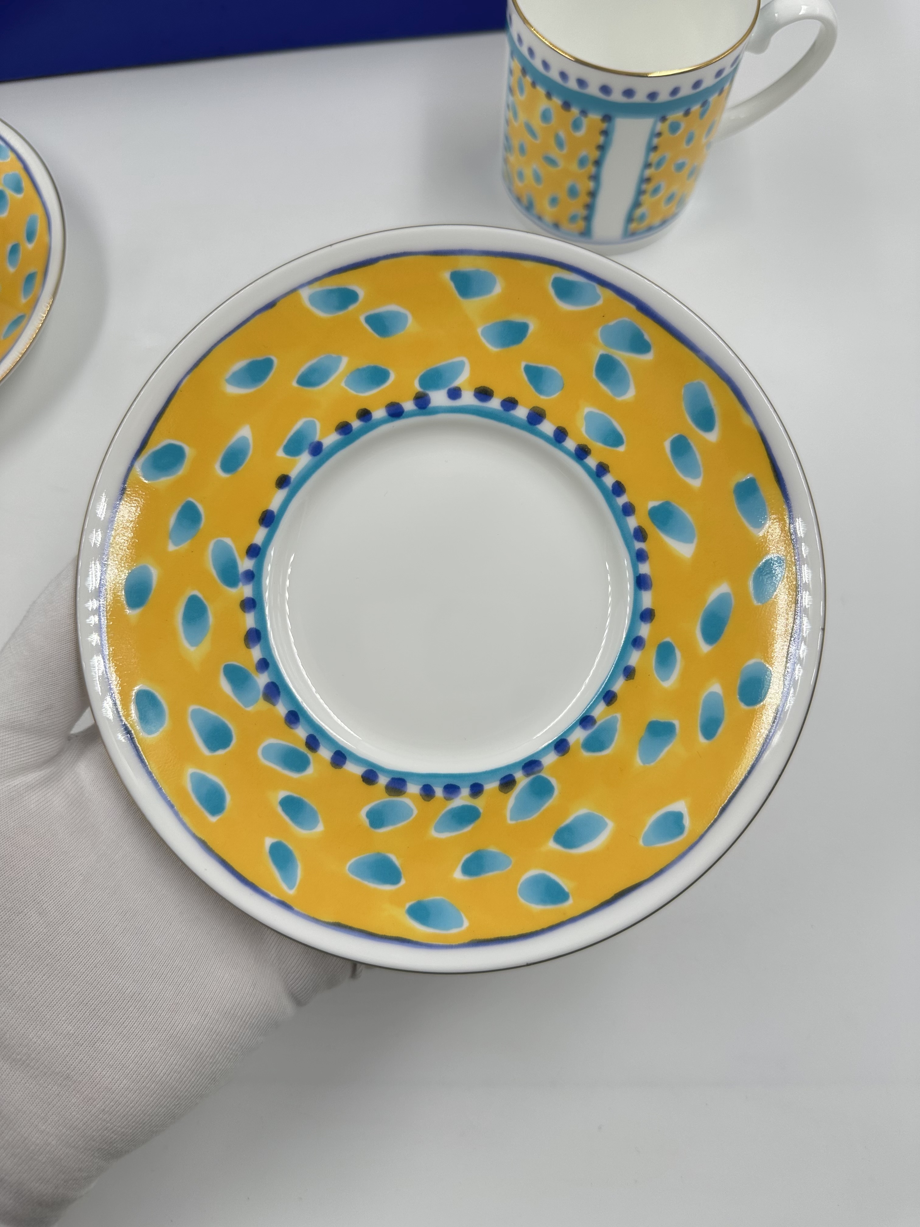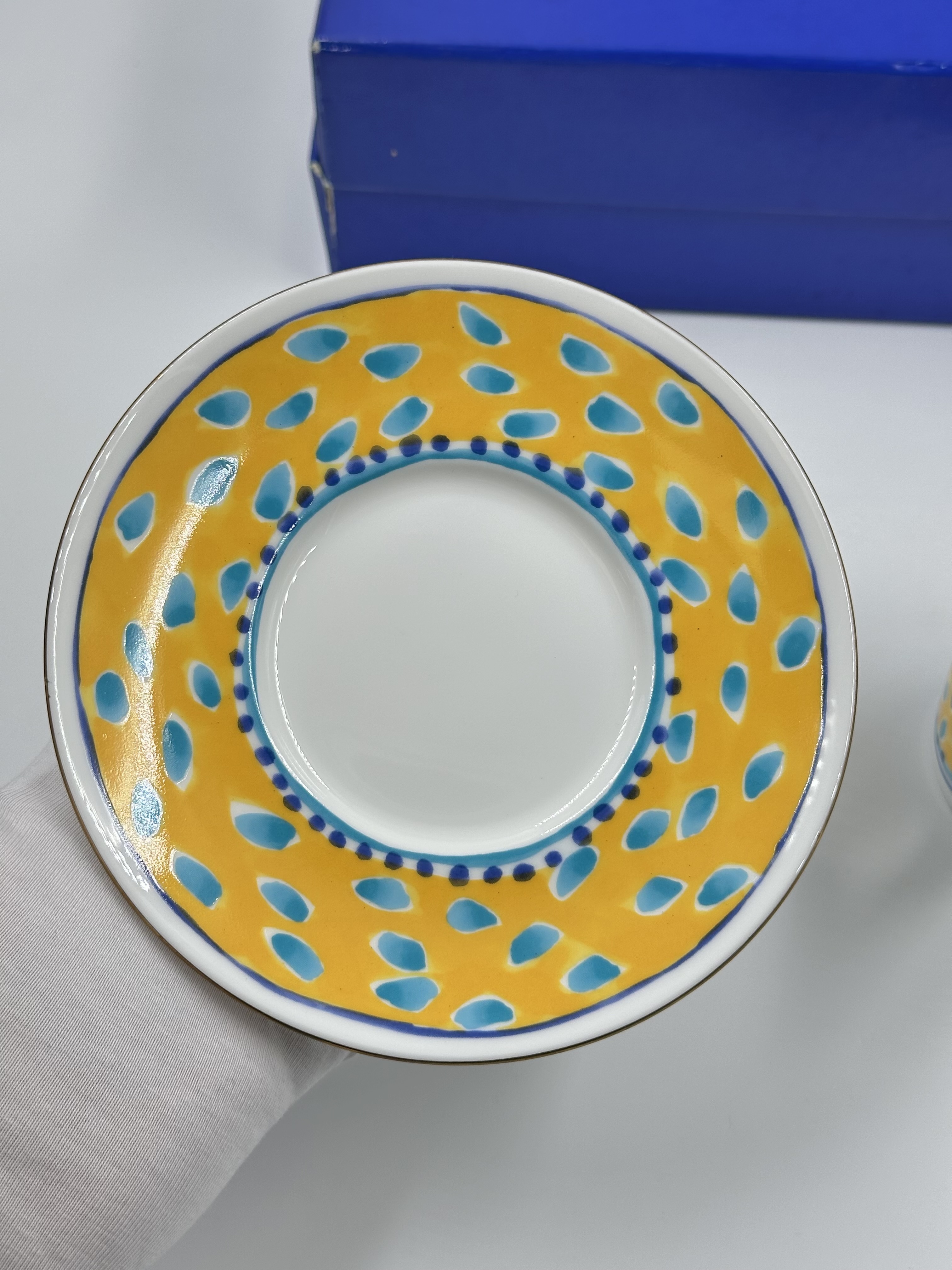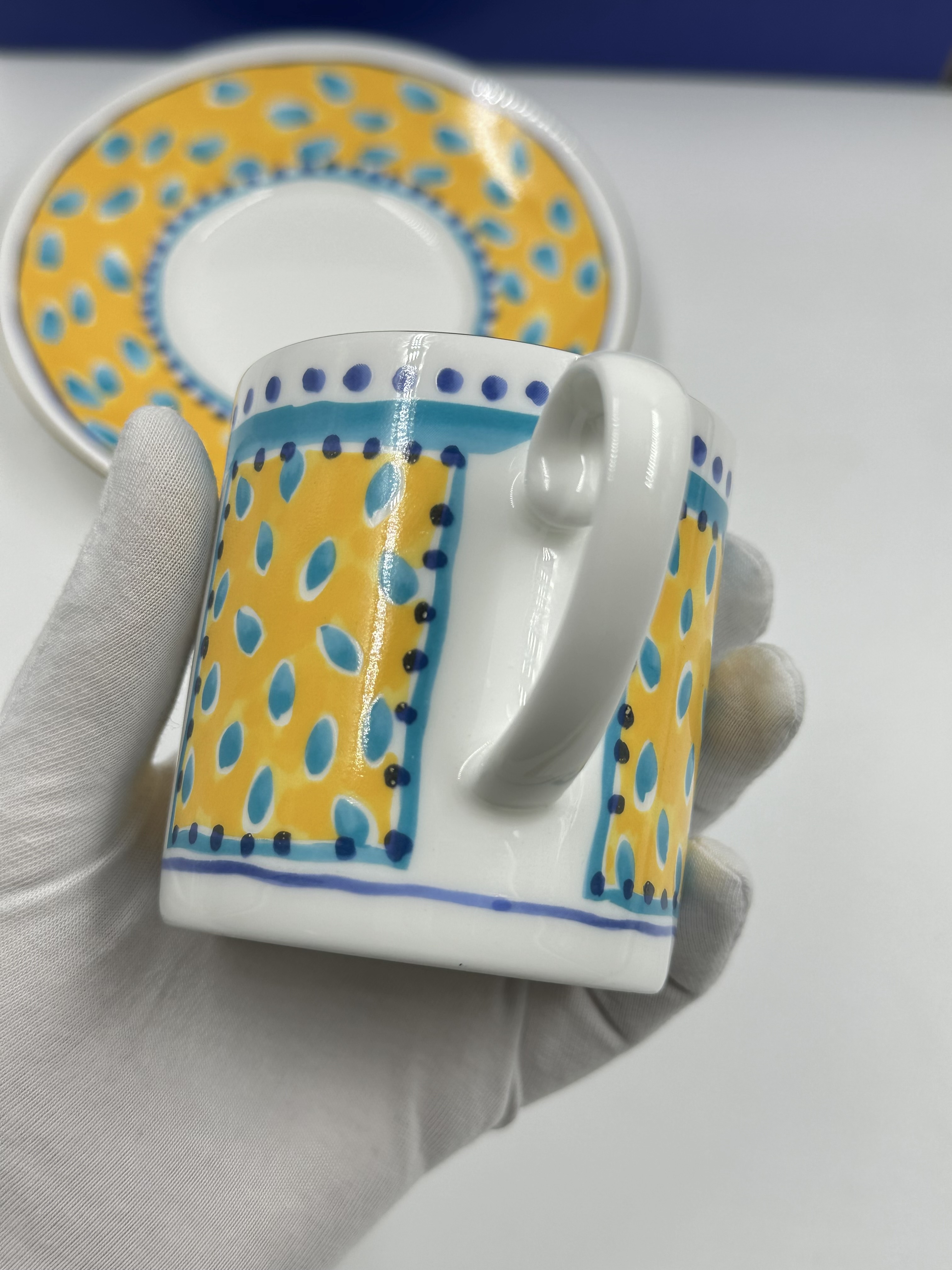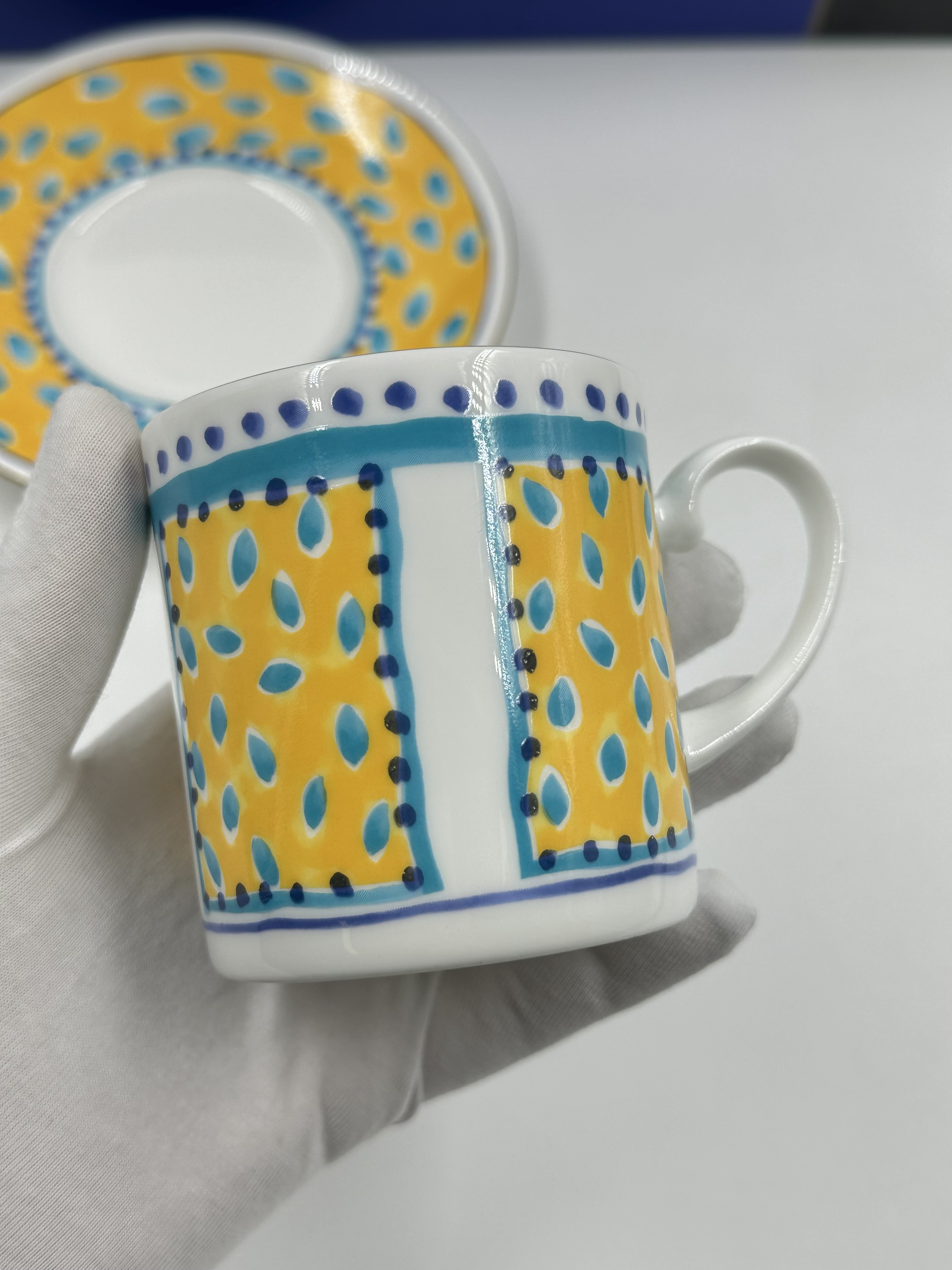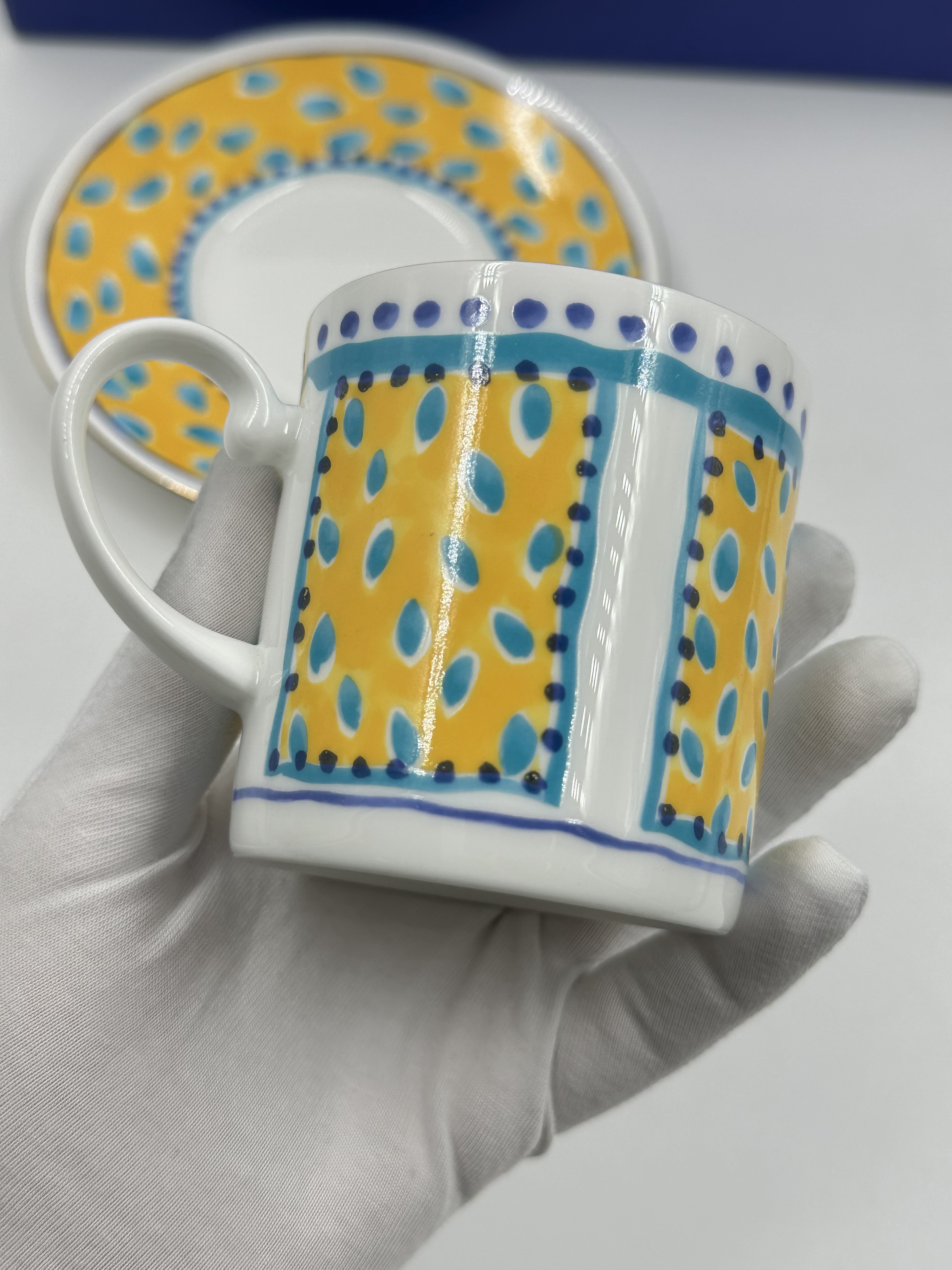 Фарфор. Диаметр блюдца 14,5см, объём чашки 200мл.