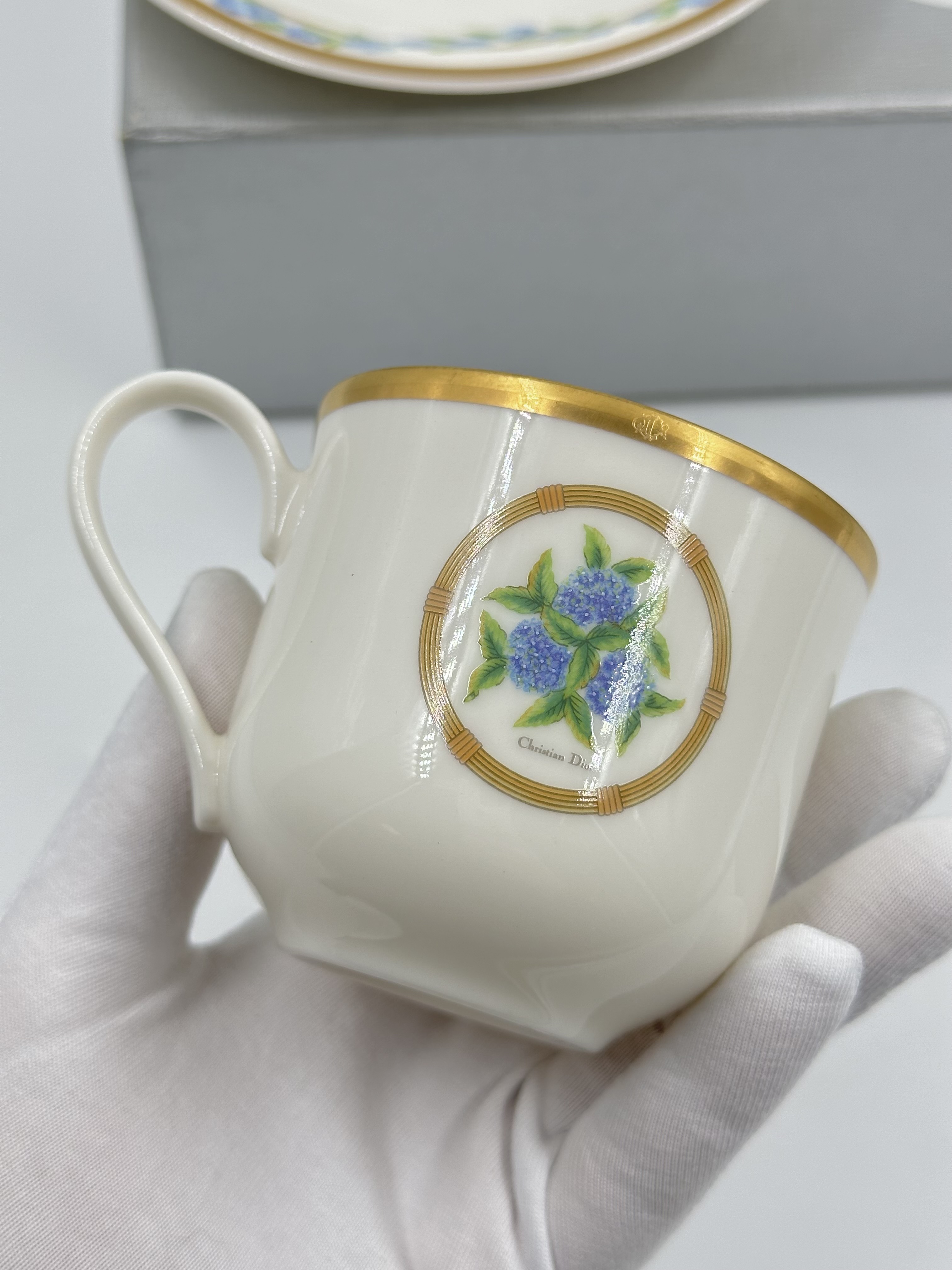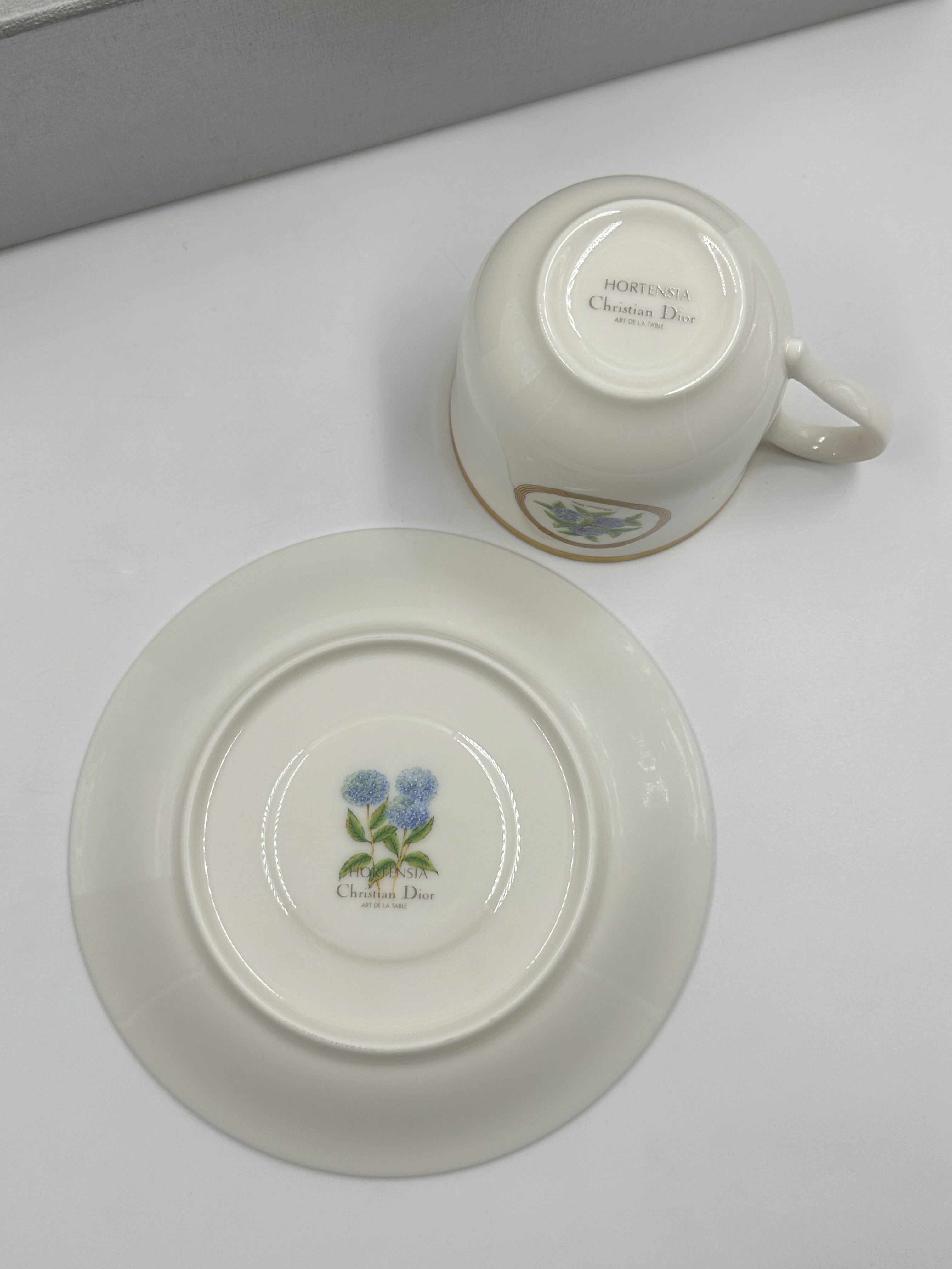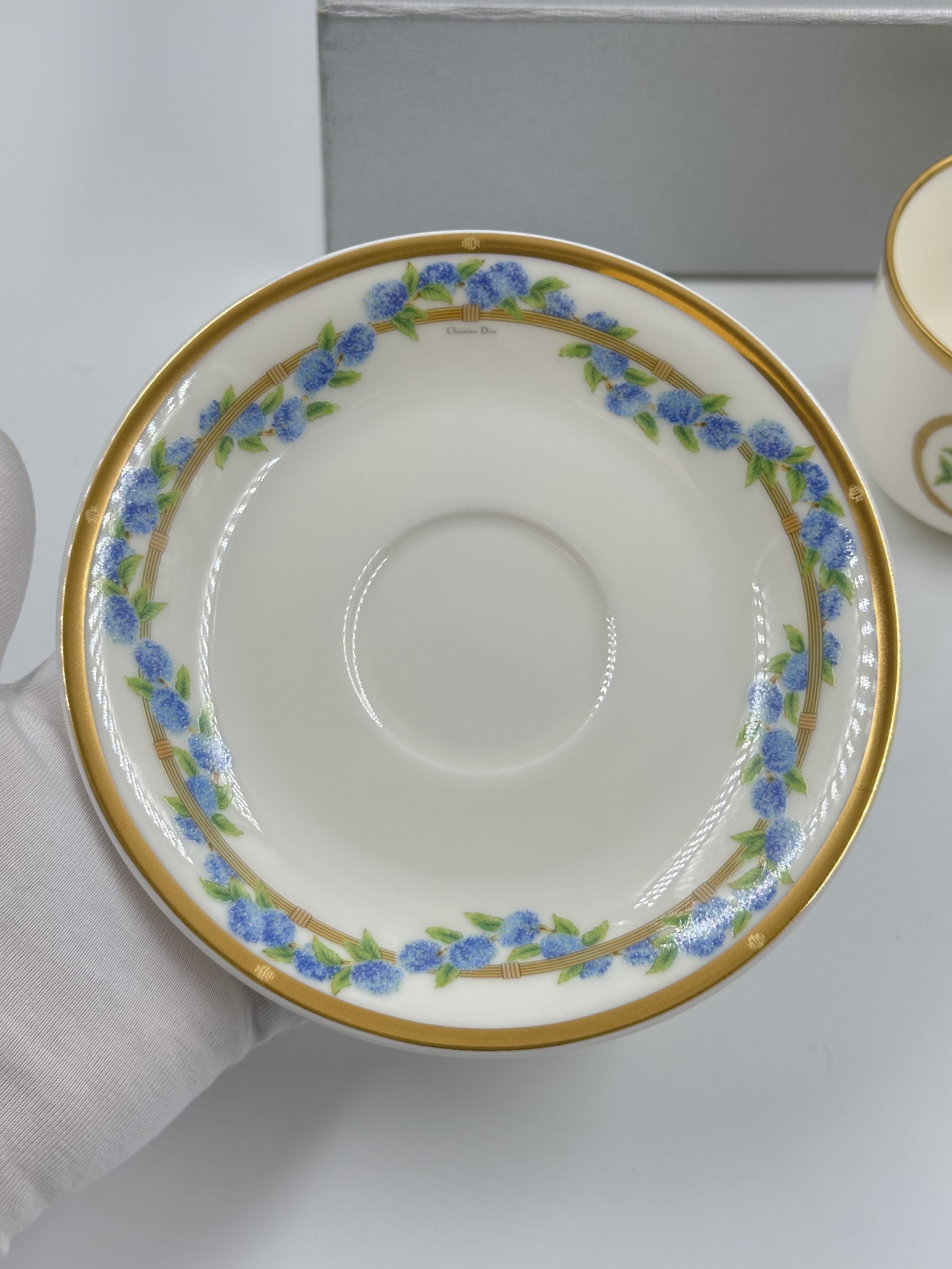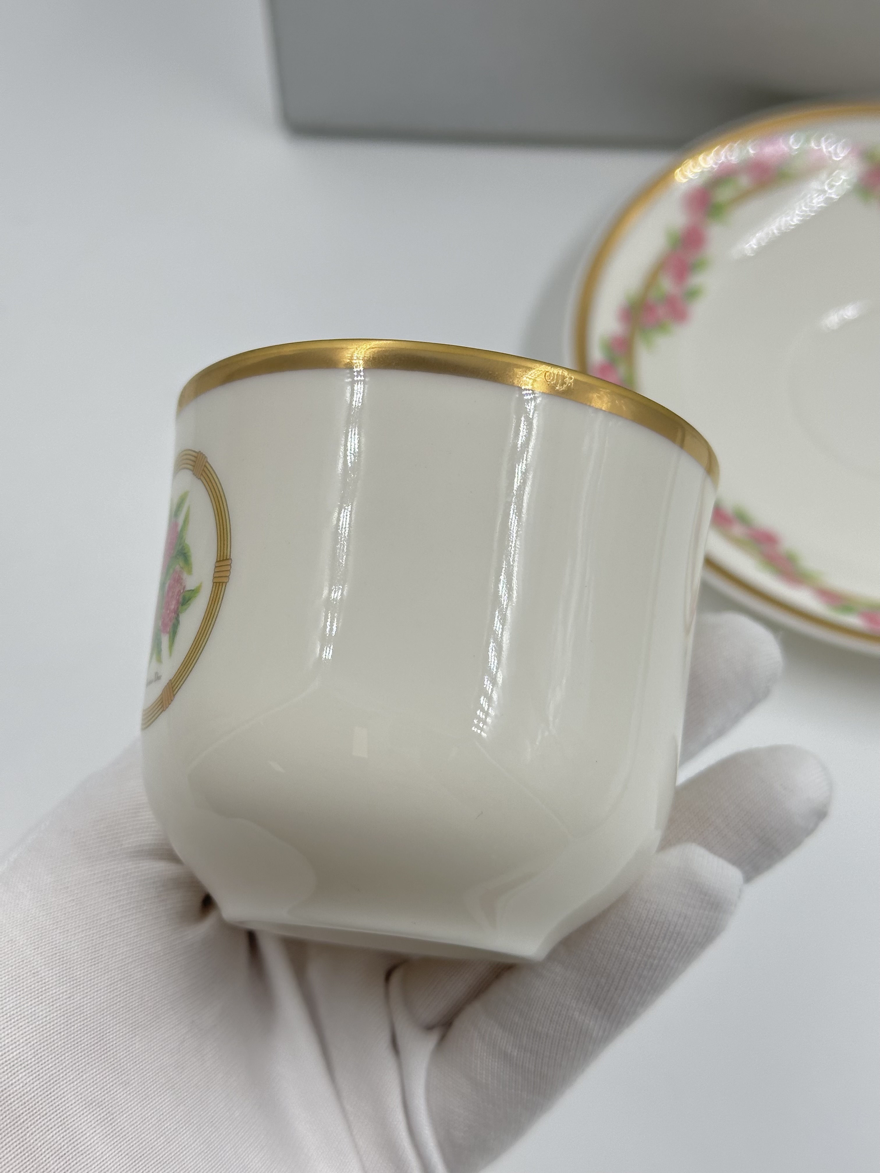 Фарфор. Диаметр блюдца 14,5см. Объём чашки 200мл.