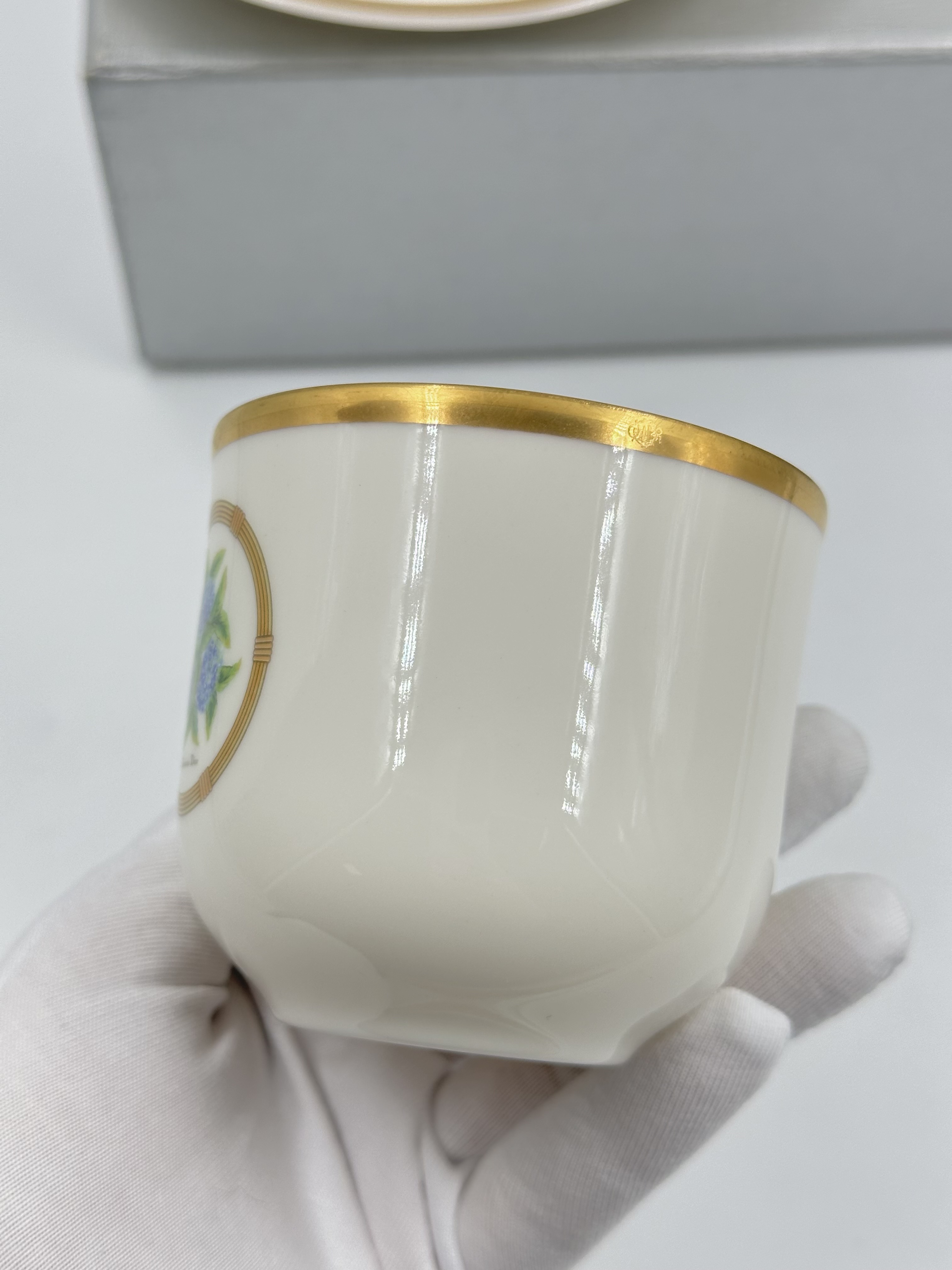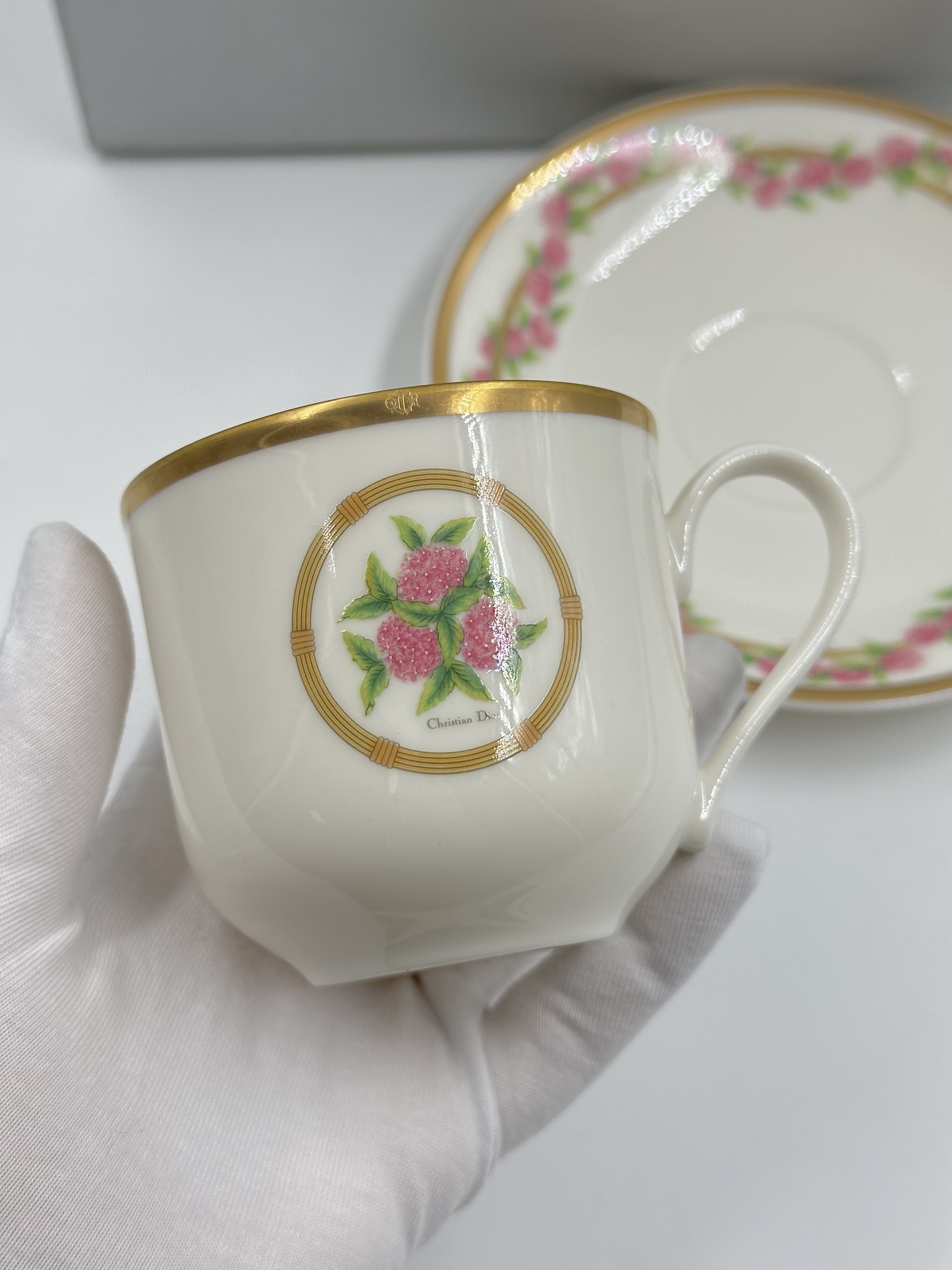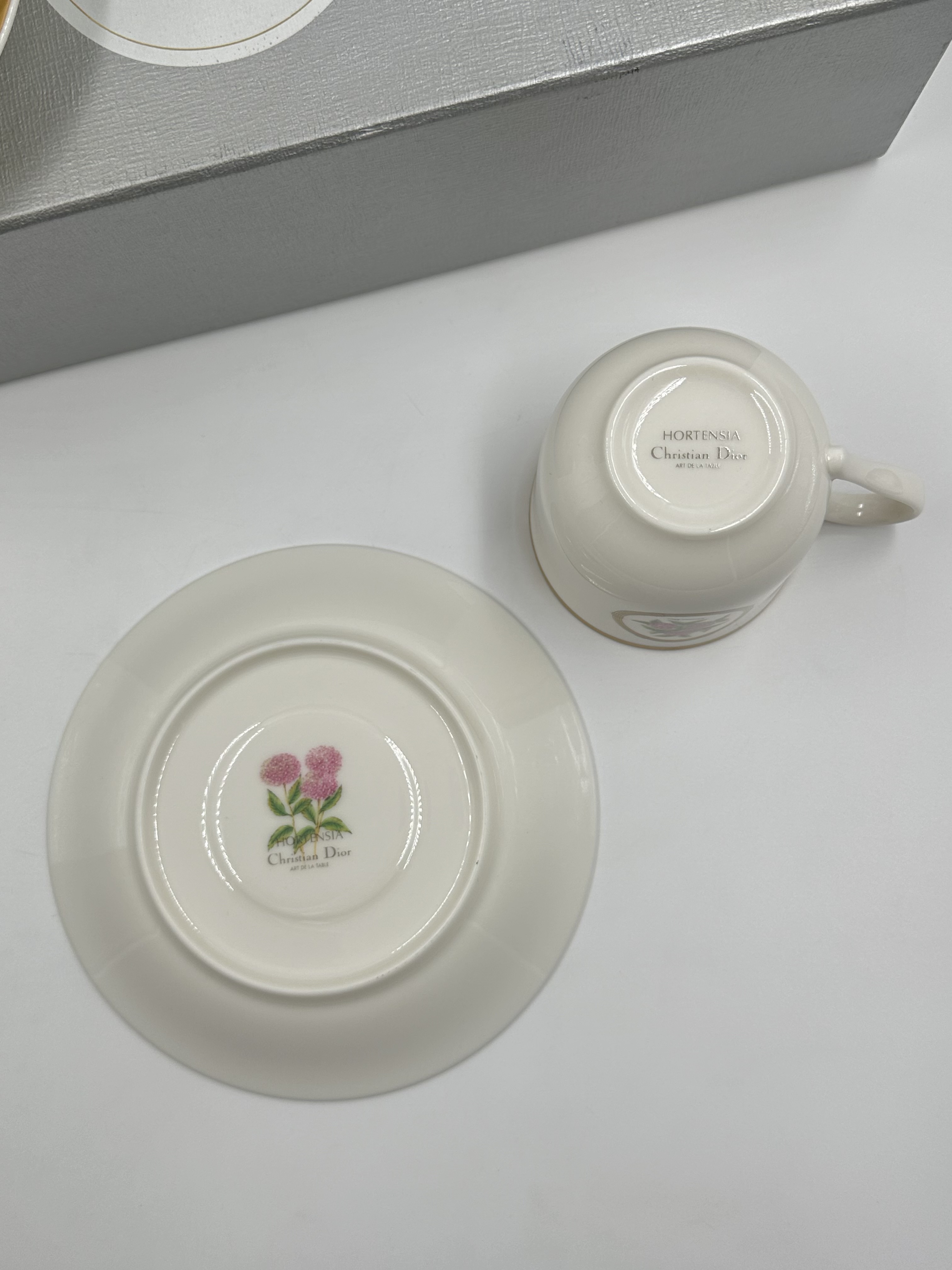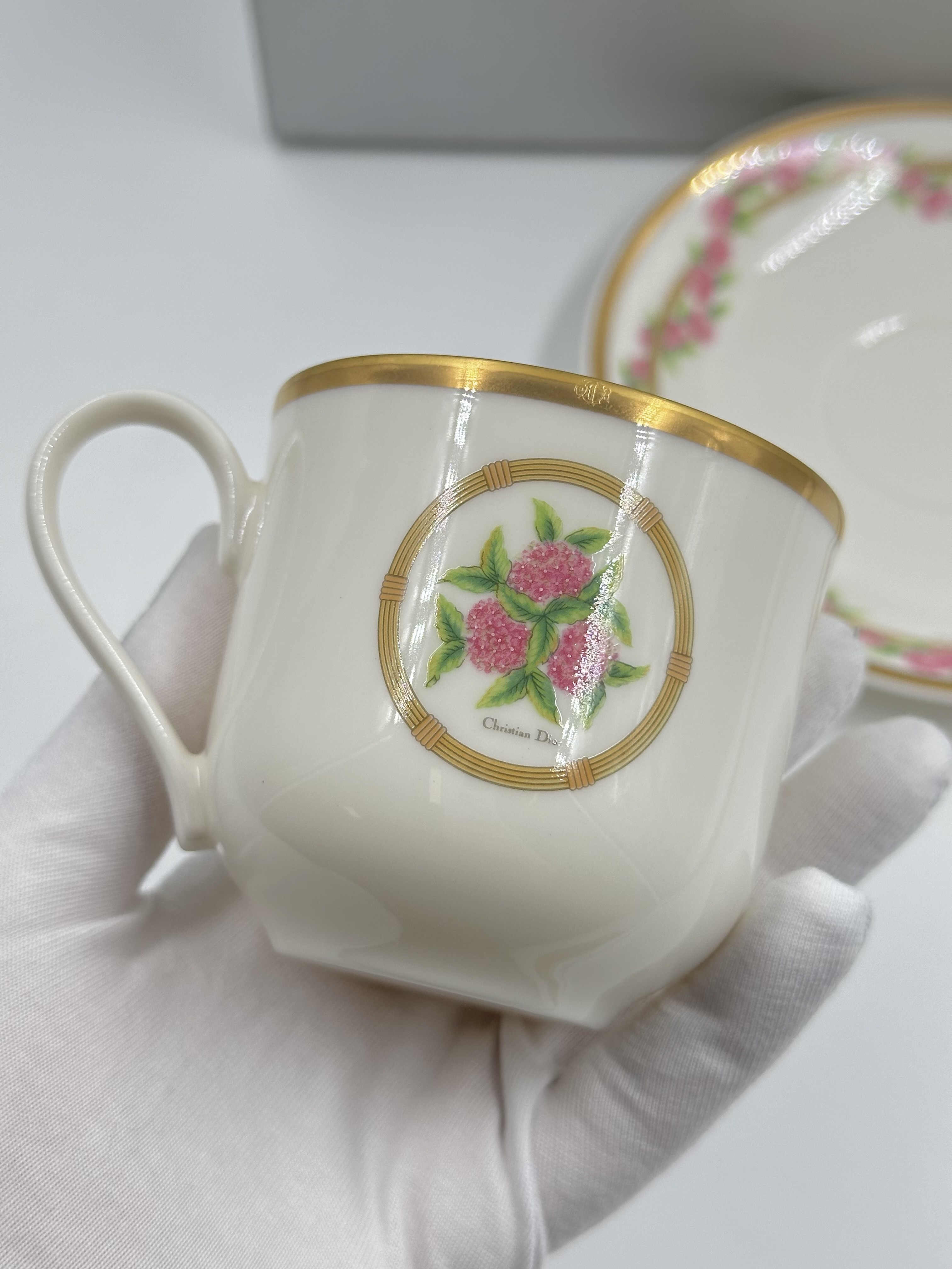 Фарфор. Диаметр блюдца 14,5см. Объём чашки 200мл.
