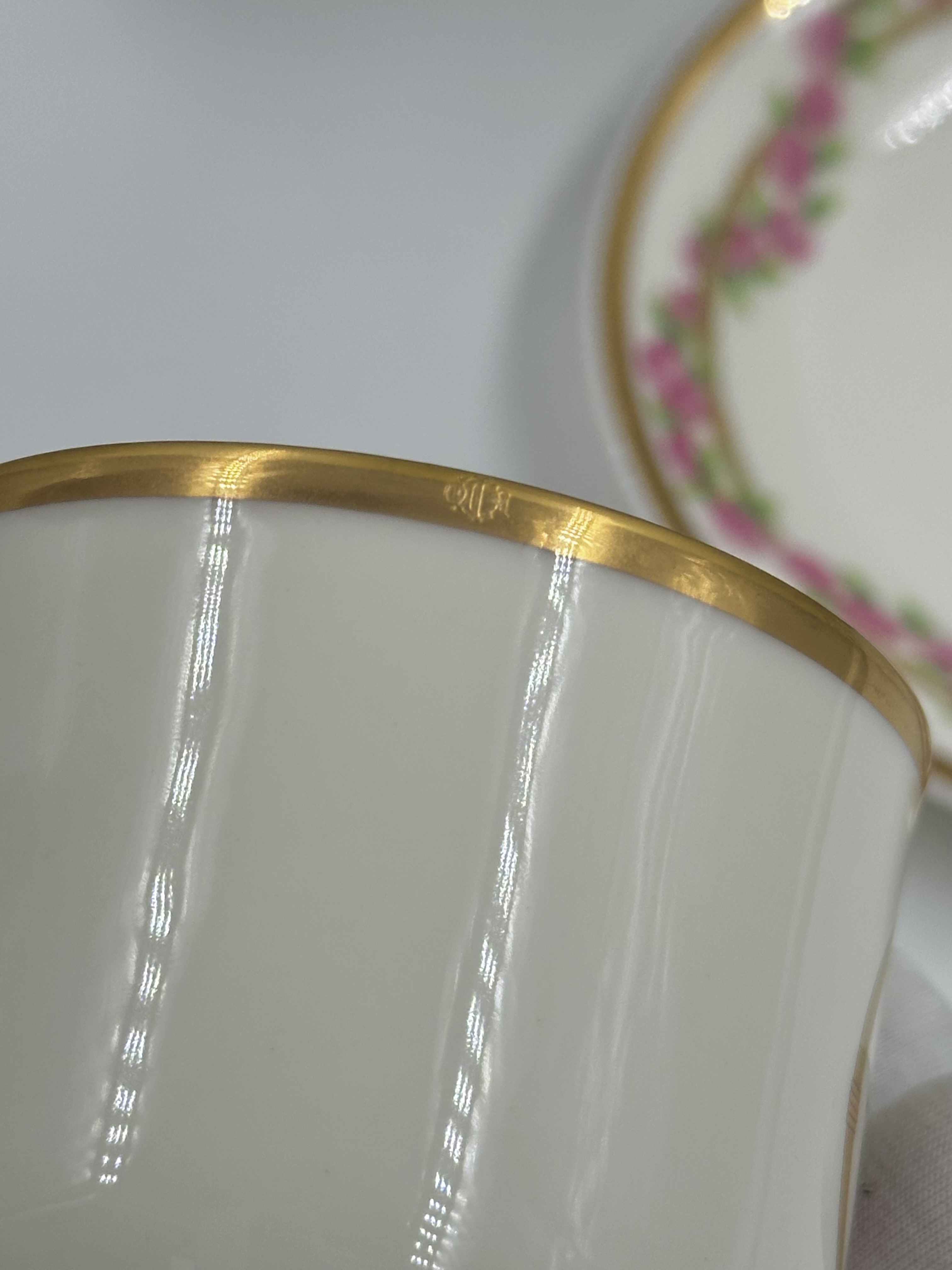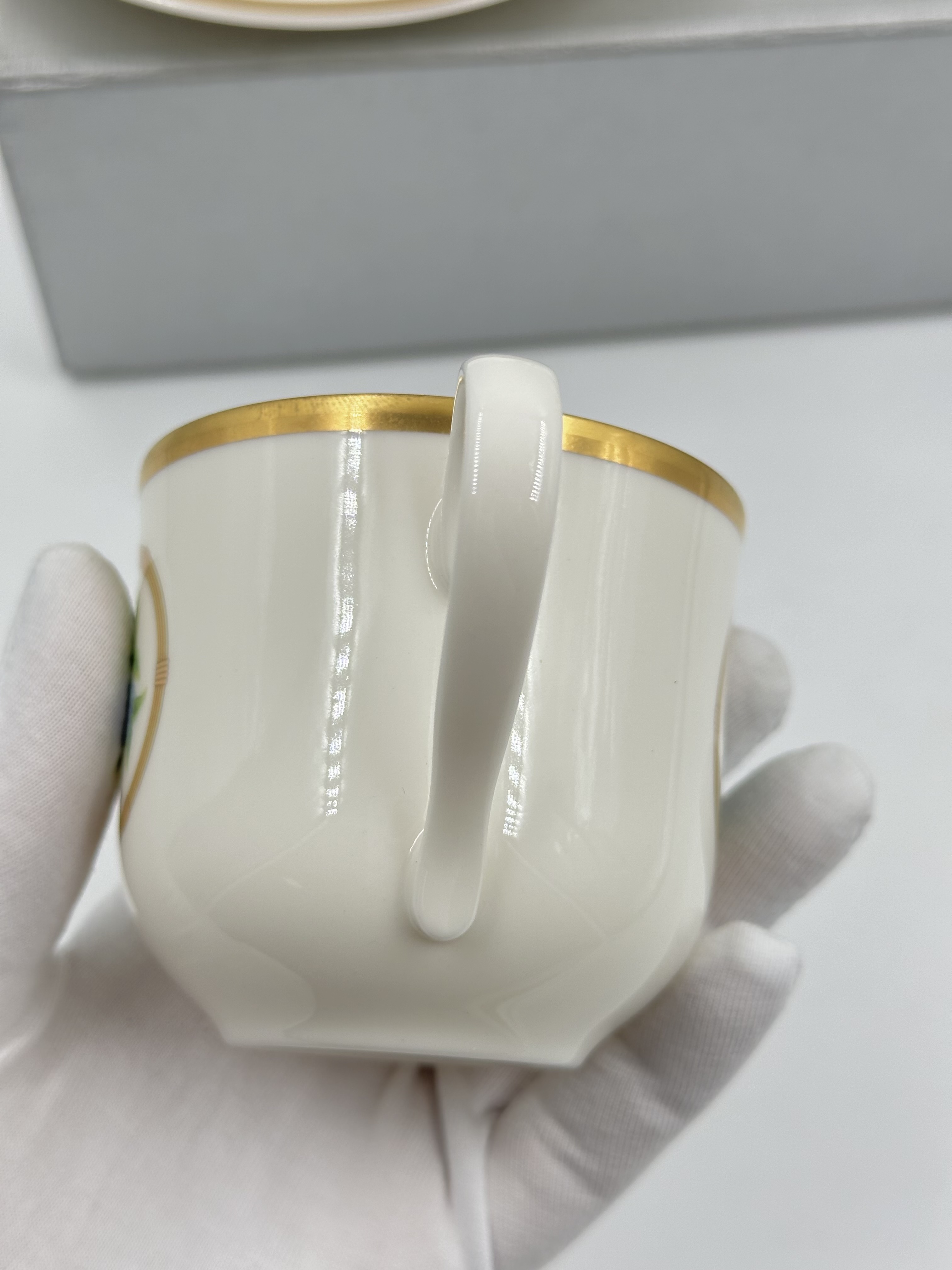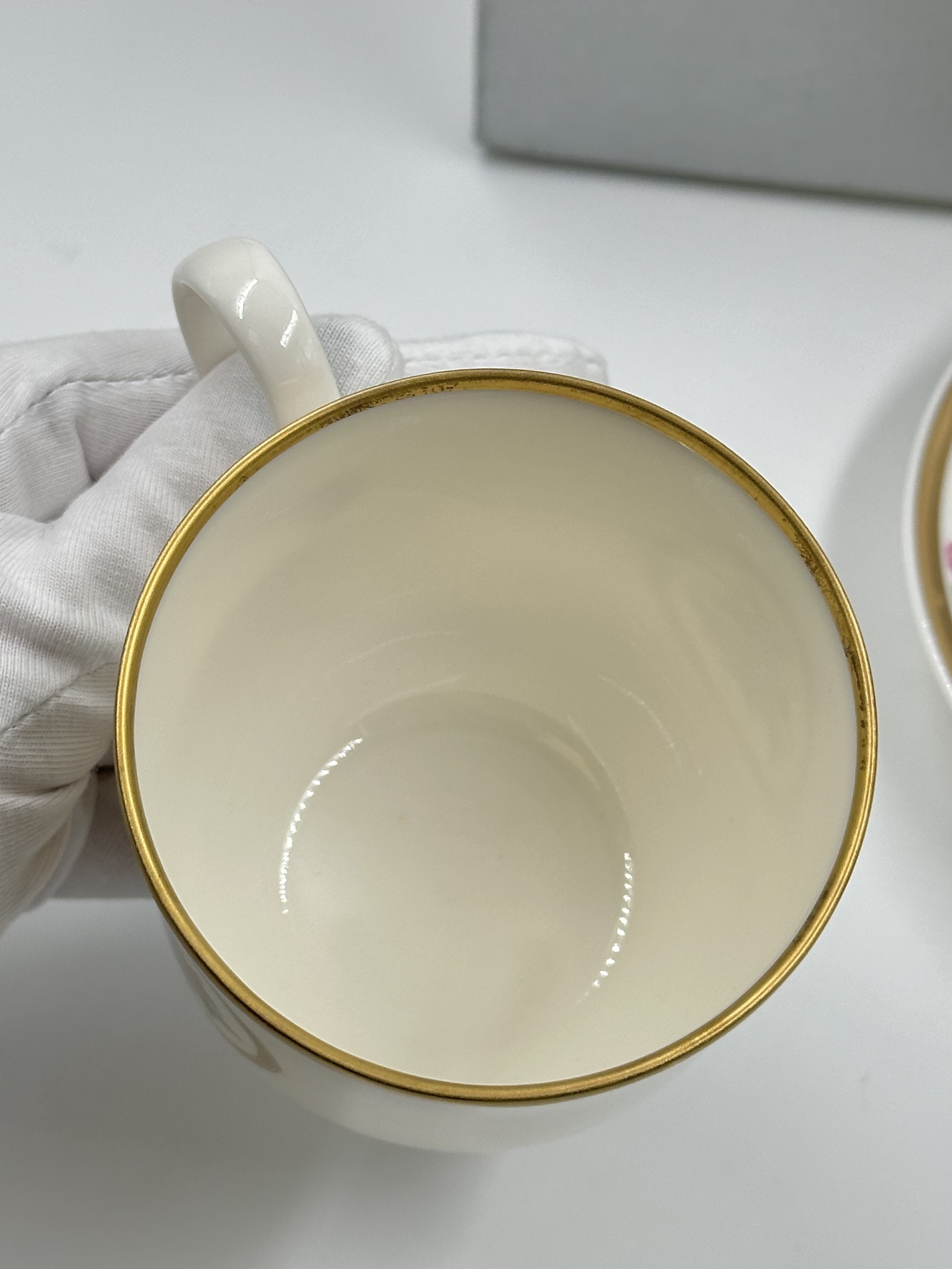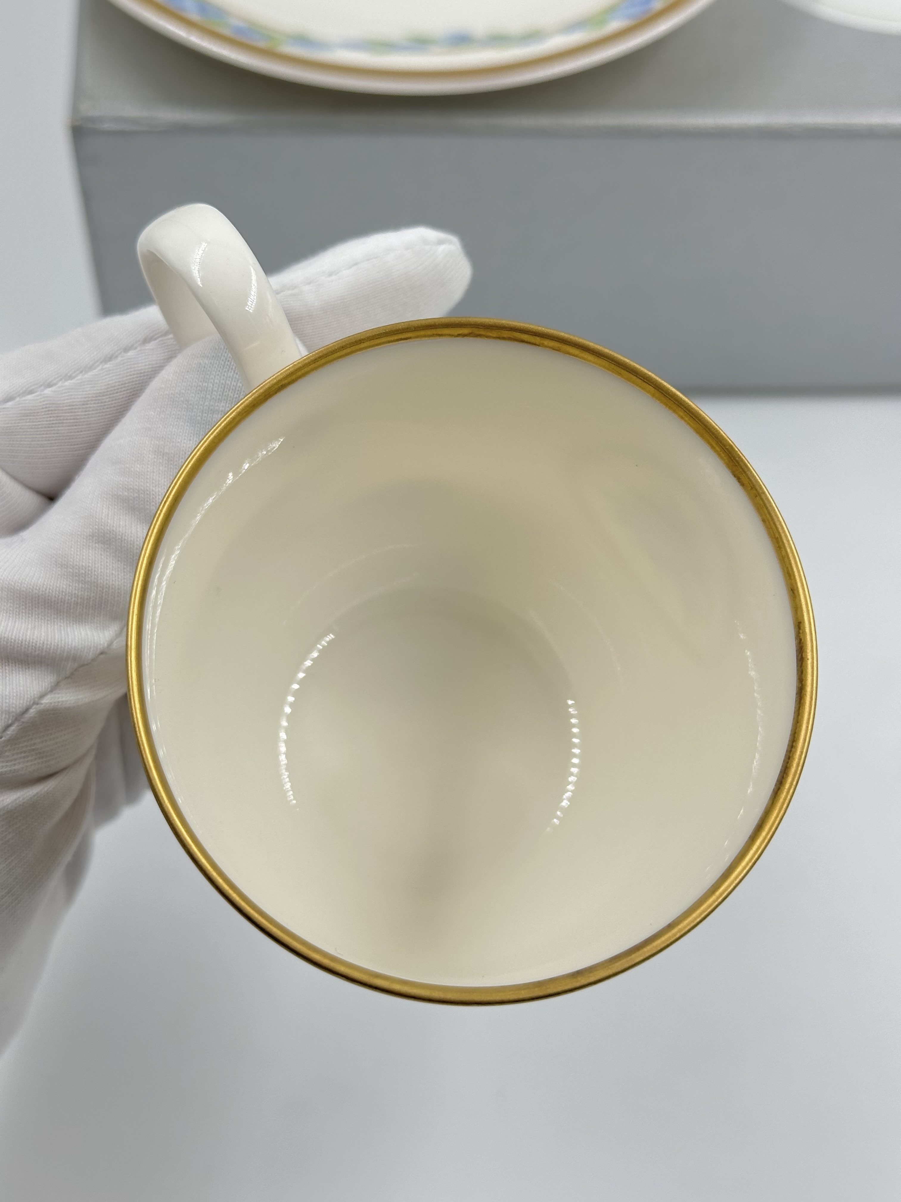 Фарфор. Диаметр блюдца 14,5см. Объём чашки 200мл.