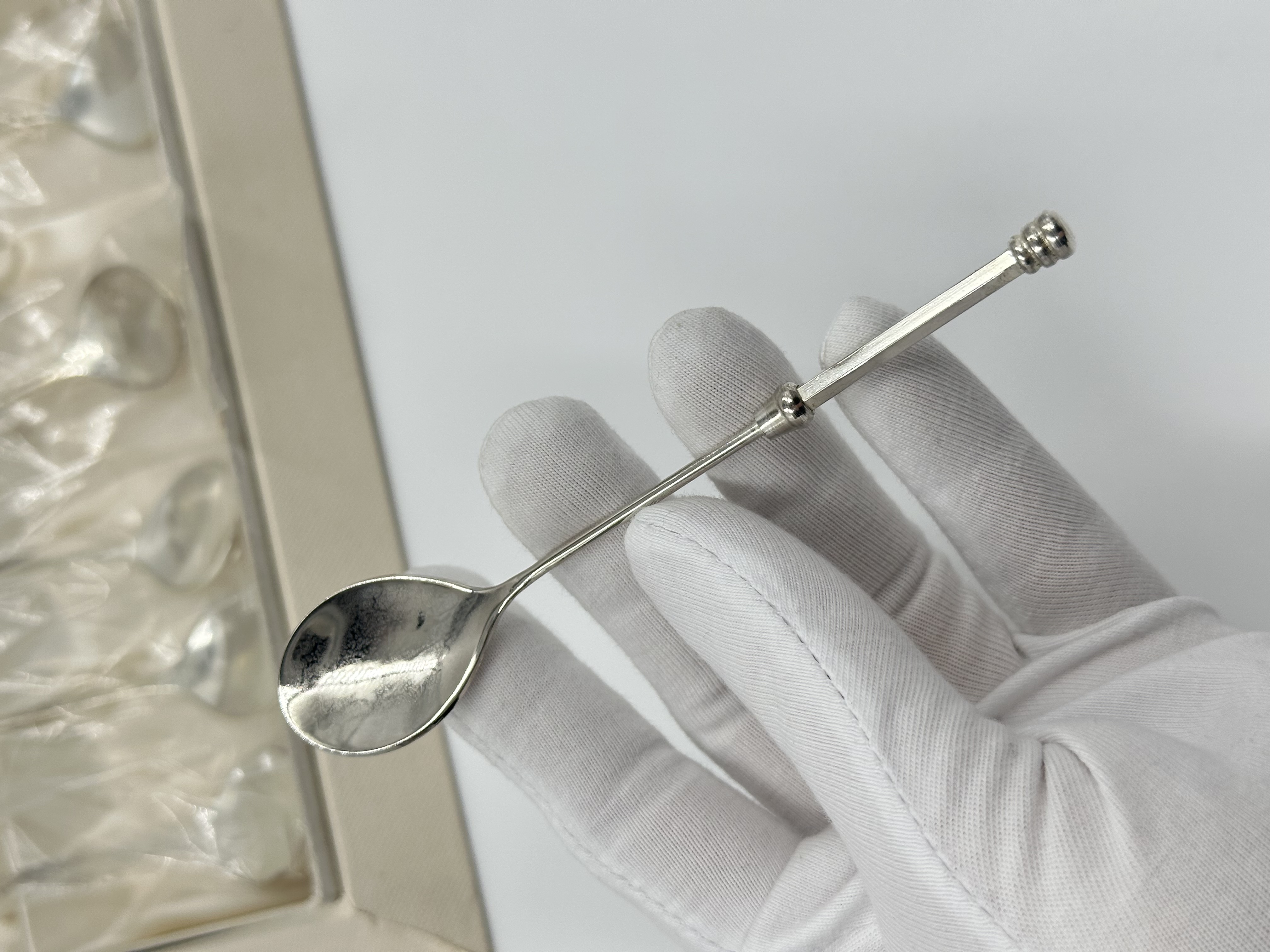 Набор из 6 посееребренных ложек. Присутствуют следы времени. Длина 11,3см.