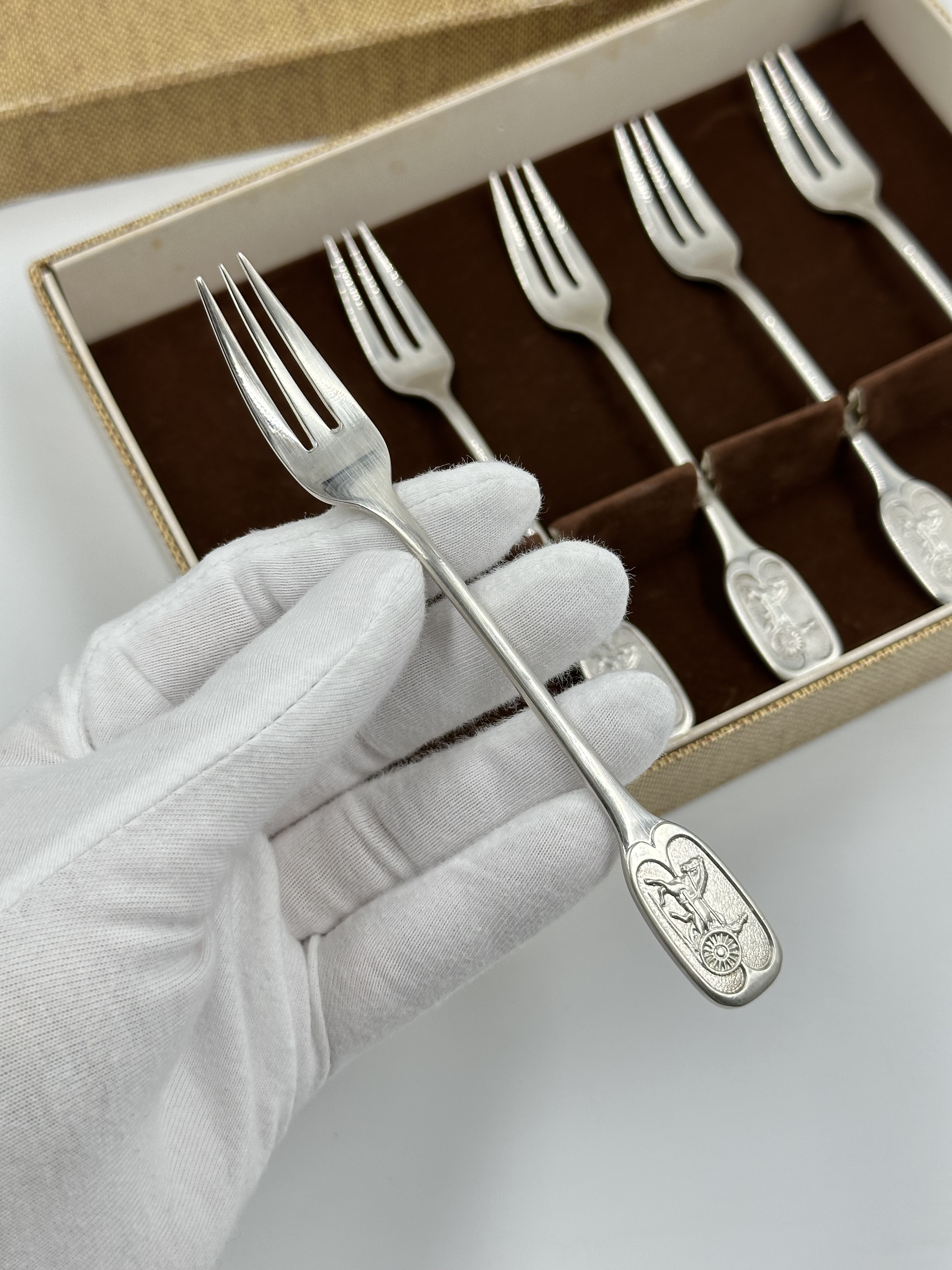 Набор из 5 посеребренных вилок. Длина 12,5см.
