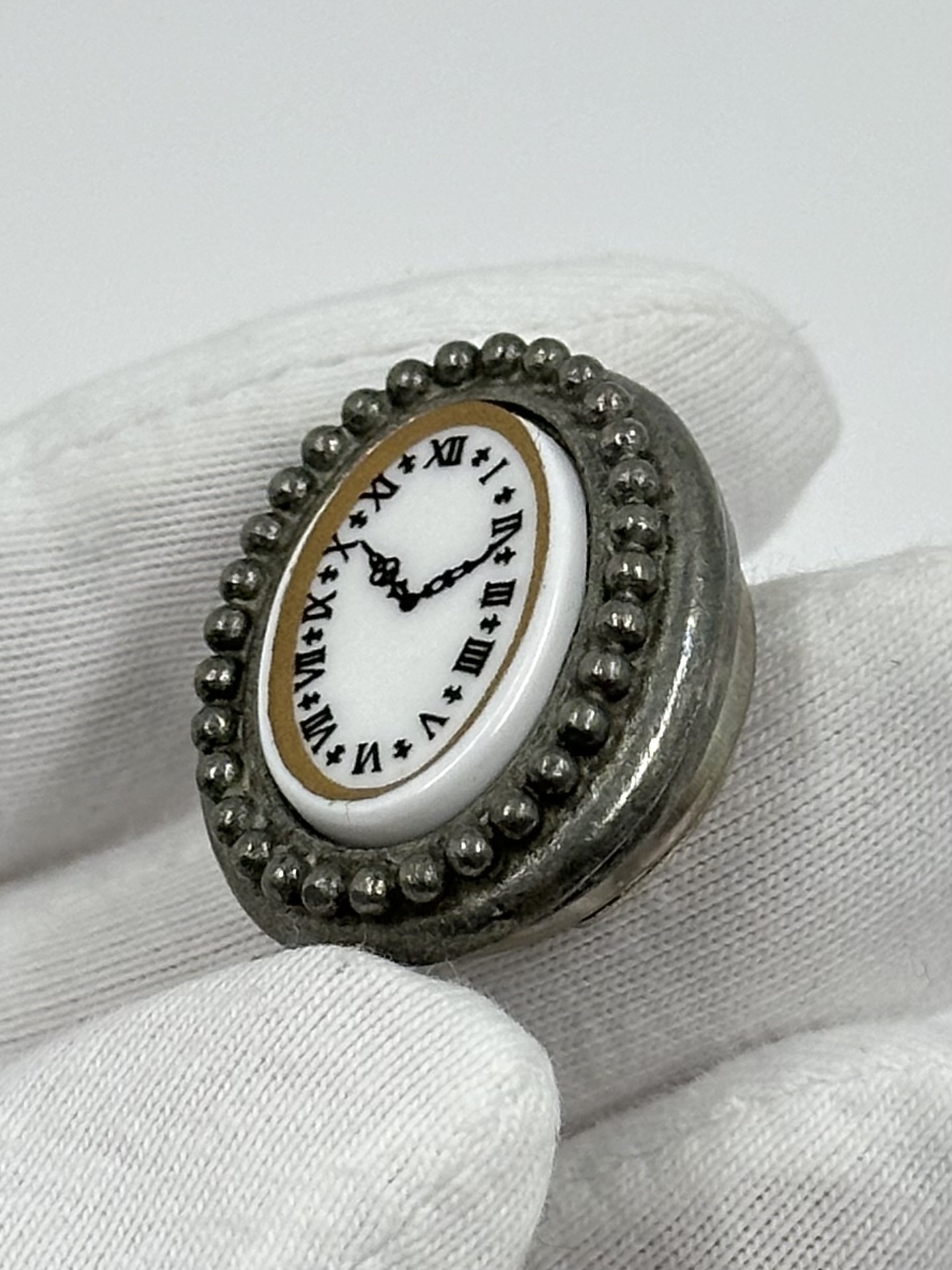 Бижутерный сплав, пластик. Размер 2,1 x 2,4см. На пуговицу до 1,6см.