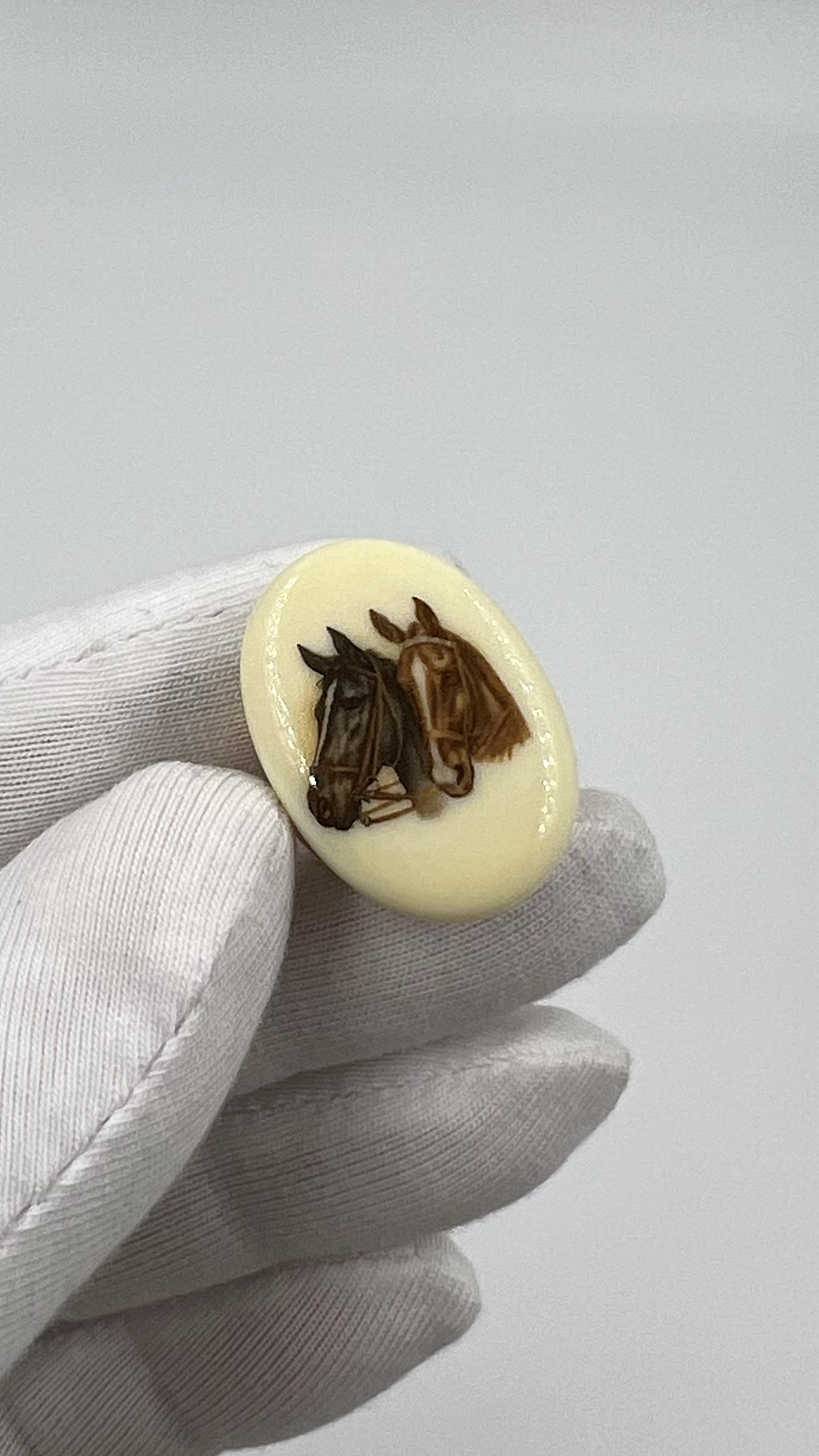 Бижутерный сплав, пластик. Размер 2,5х1,8см, на пуговицу до 1,3см.