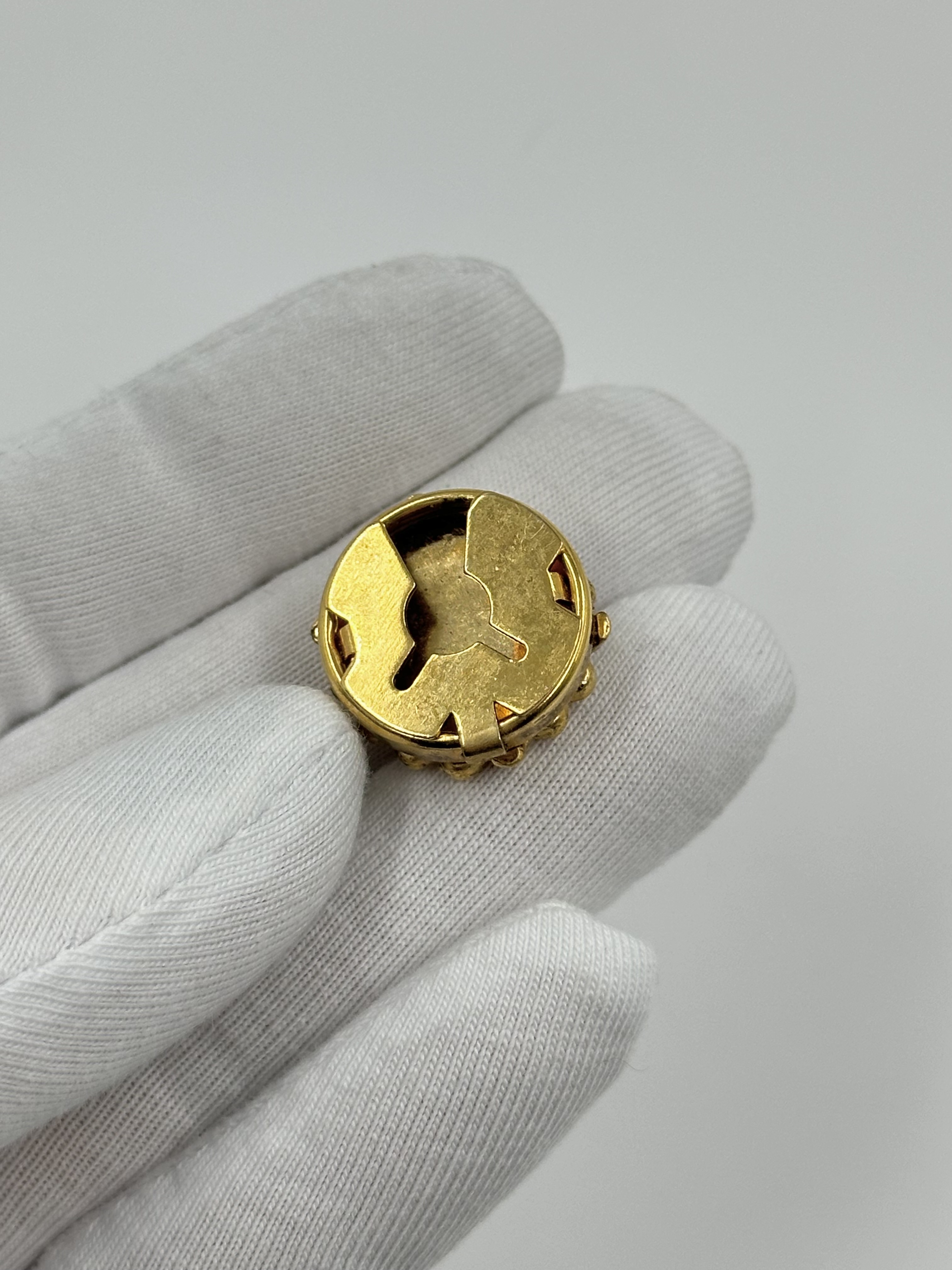 Бижутерный сплав, пластик. Размер 1,9см, на пуговицу до 1,3см. Присутствует сход покрытия.