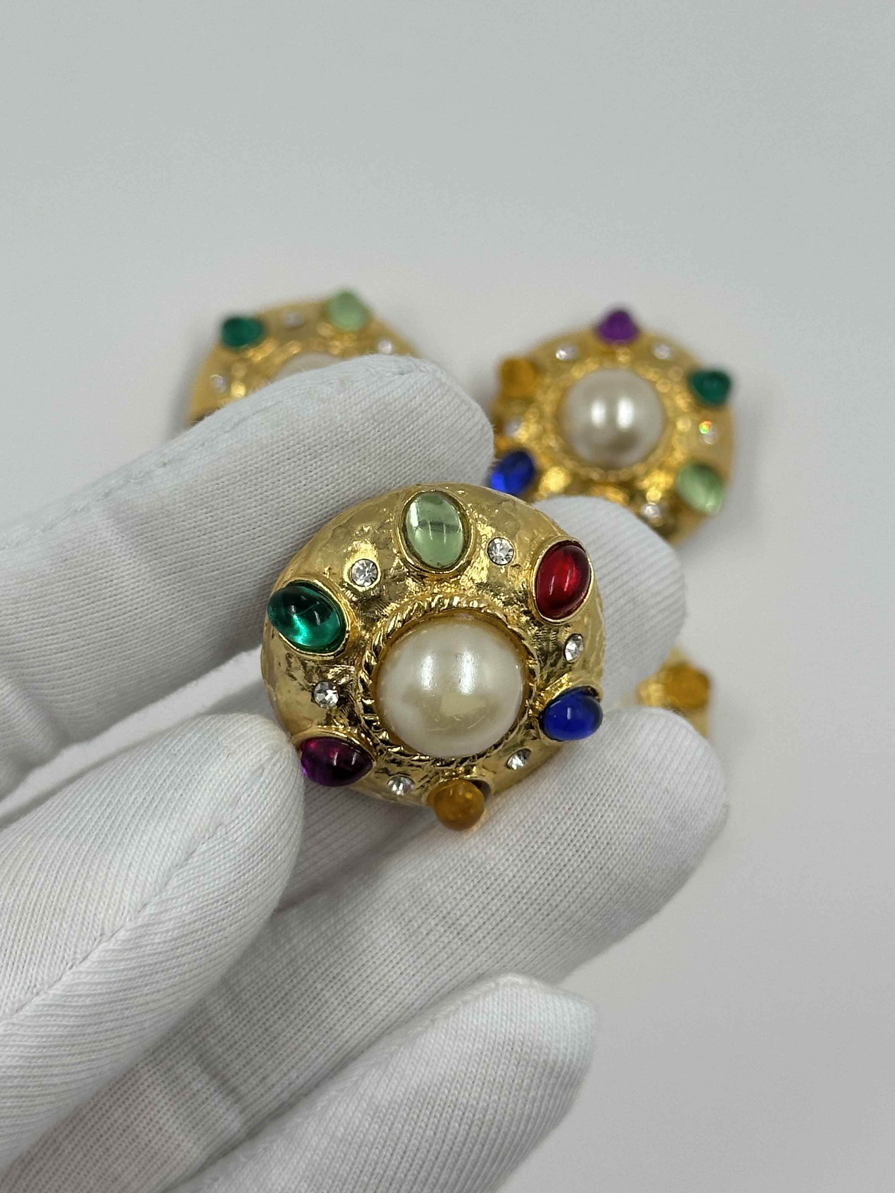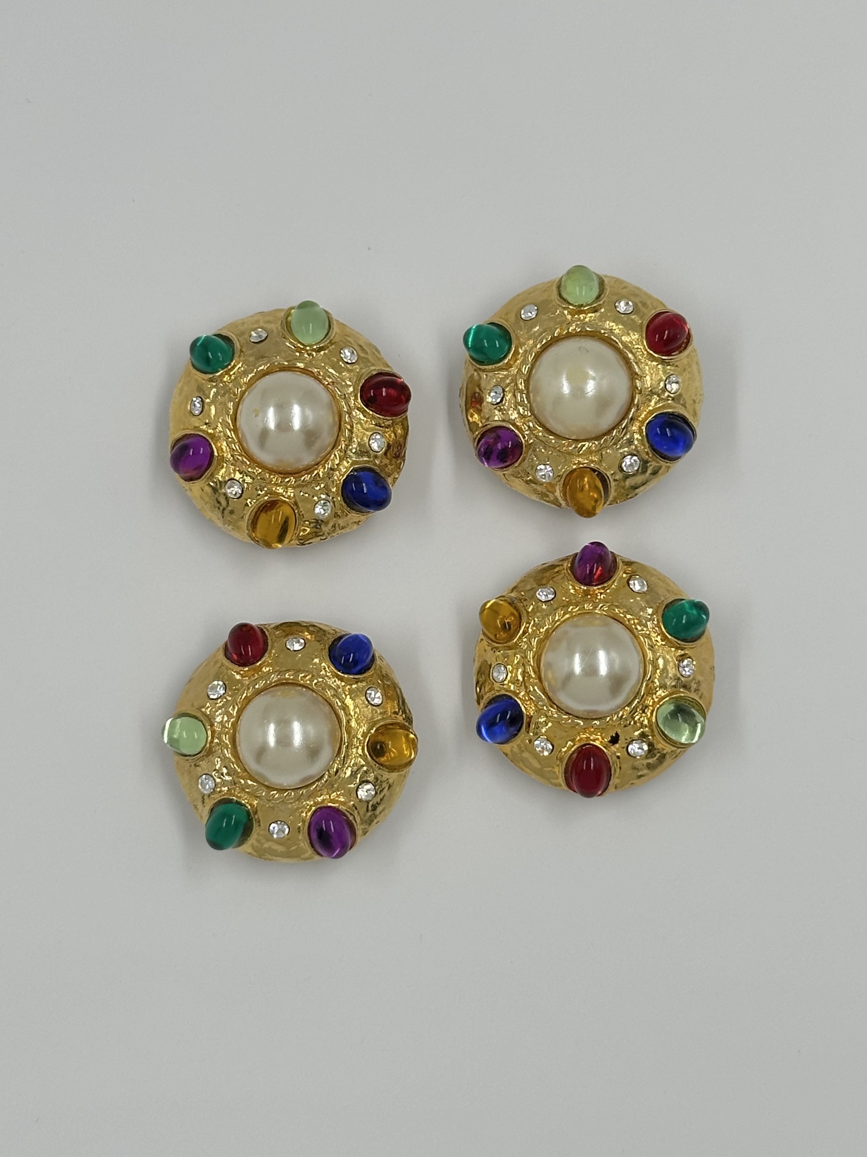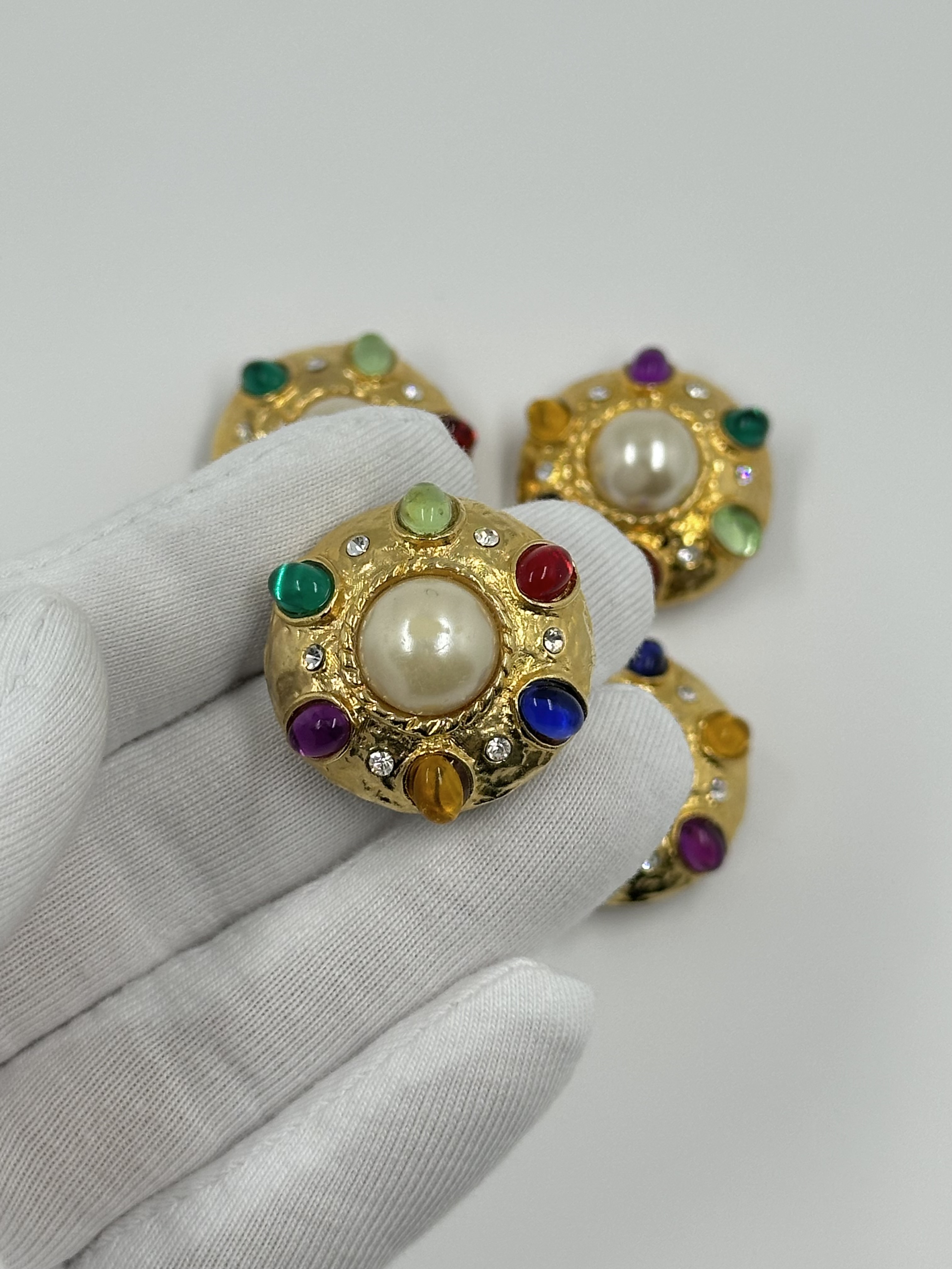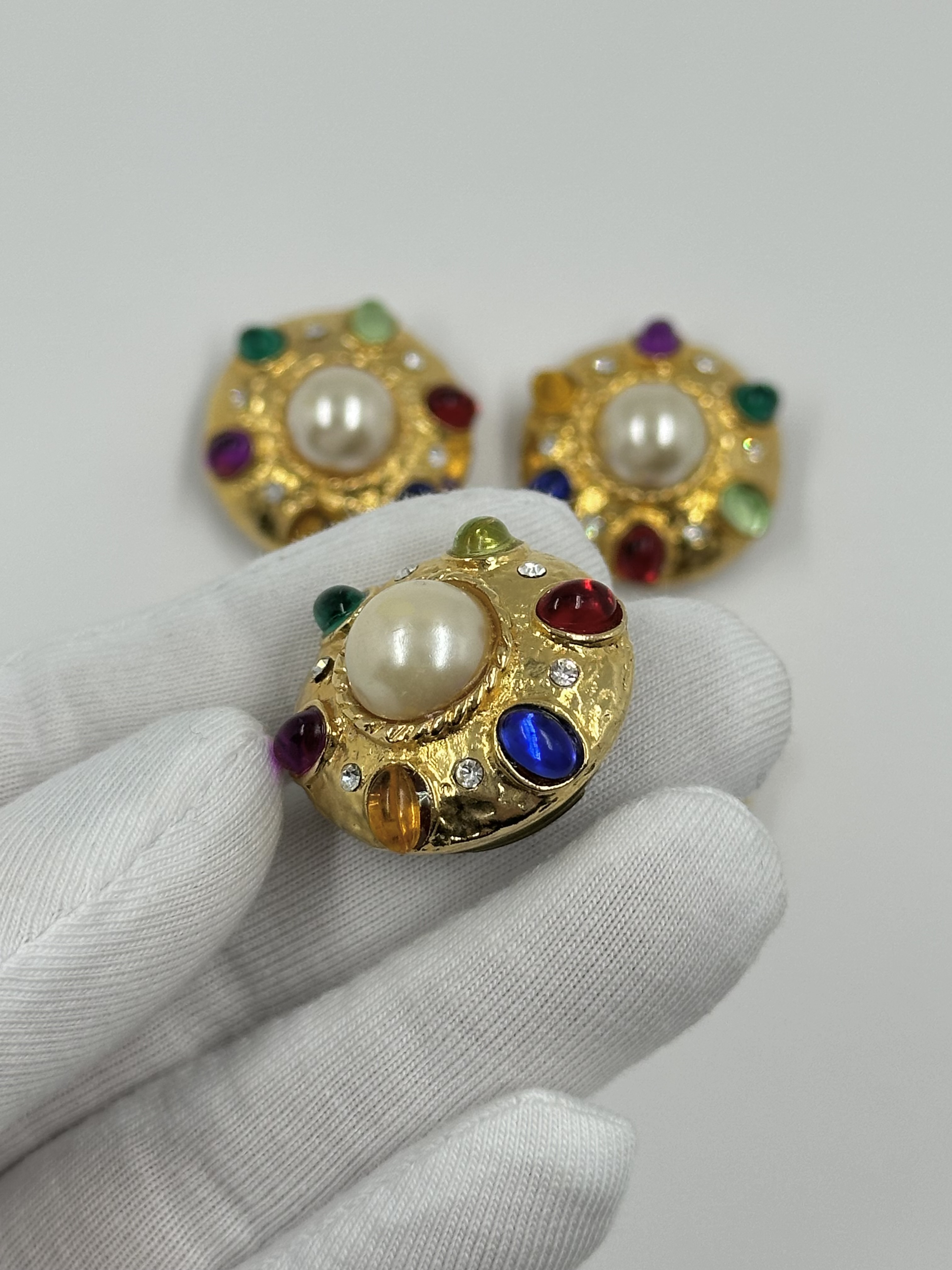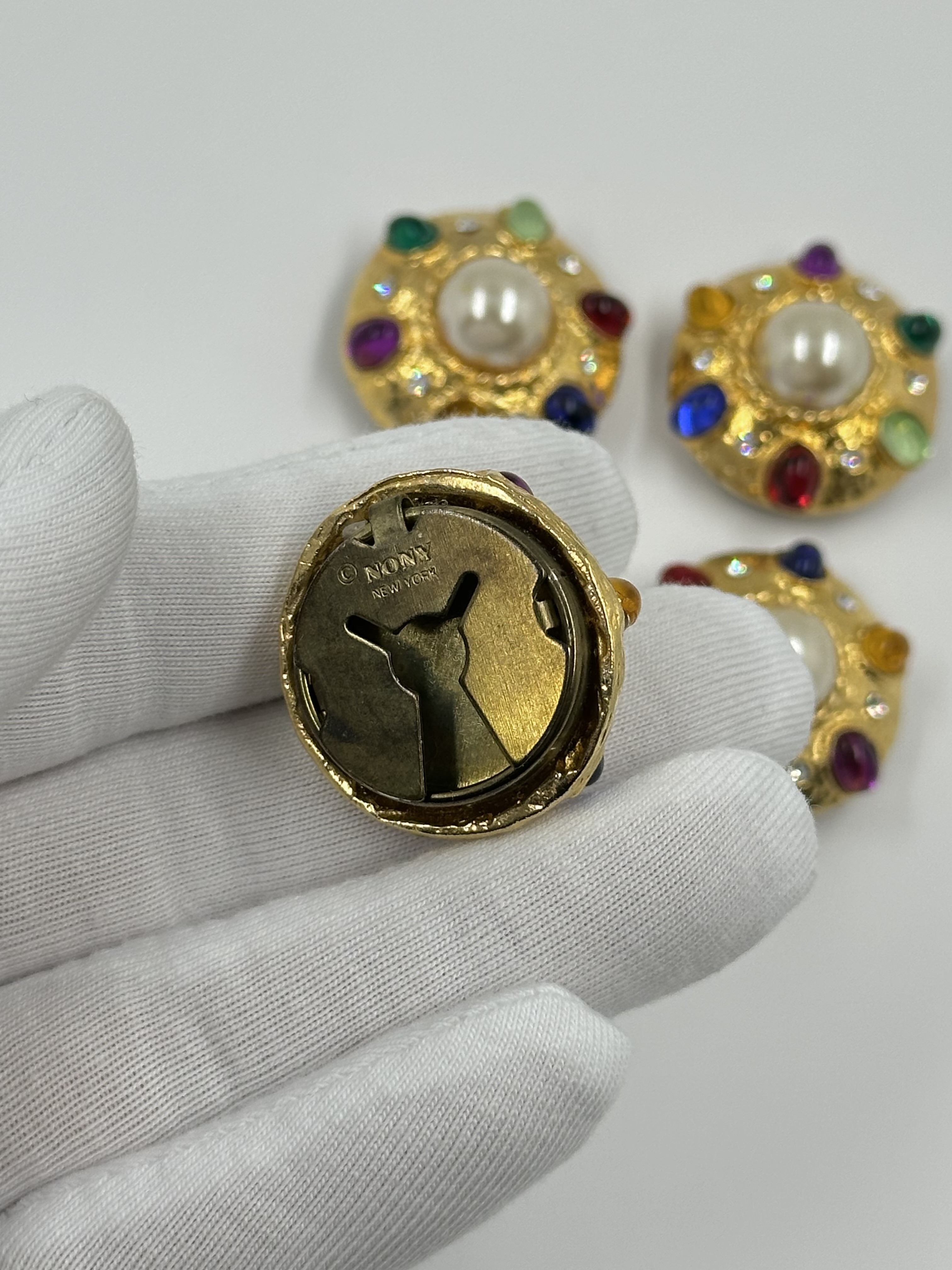 Бижутерный сплав, пластик, стекло. Размер 2,6см, на пуговицу до 1,7см. На «жемчуге» небольшие потертости.